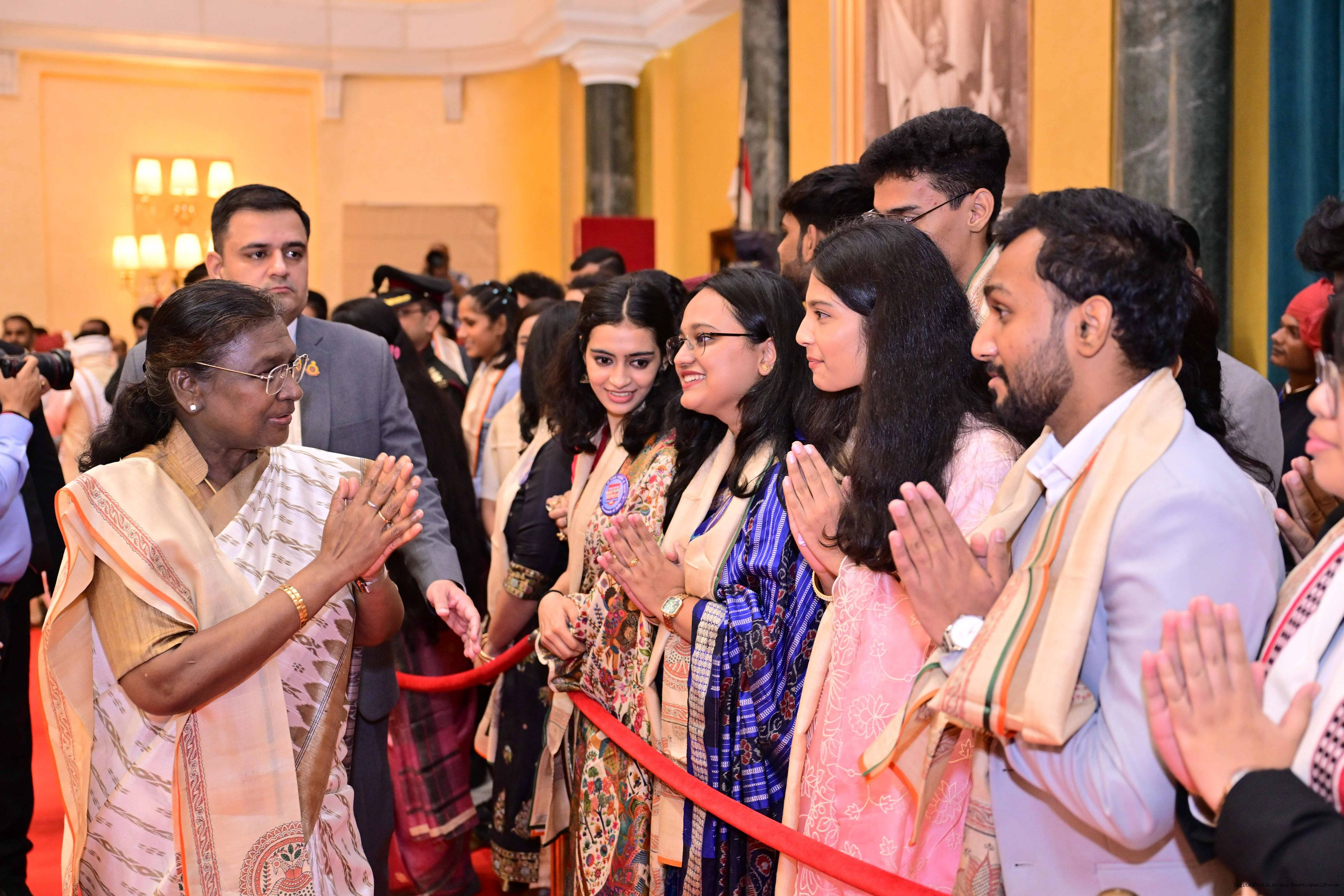 | Caption: | The President of India, Smt Droupadi Murmu hosting 'At Home' Reception on the occasion of 79nd Independence Day, at Rashtrapati Bhavan Cultural Centre on August 15, 2025. |