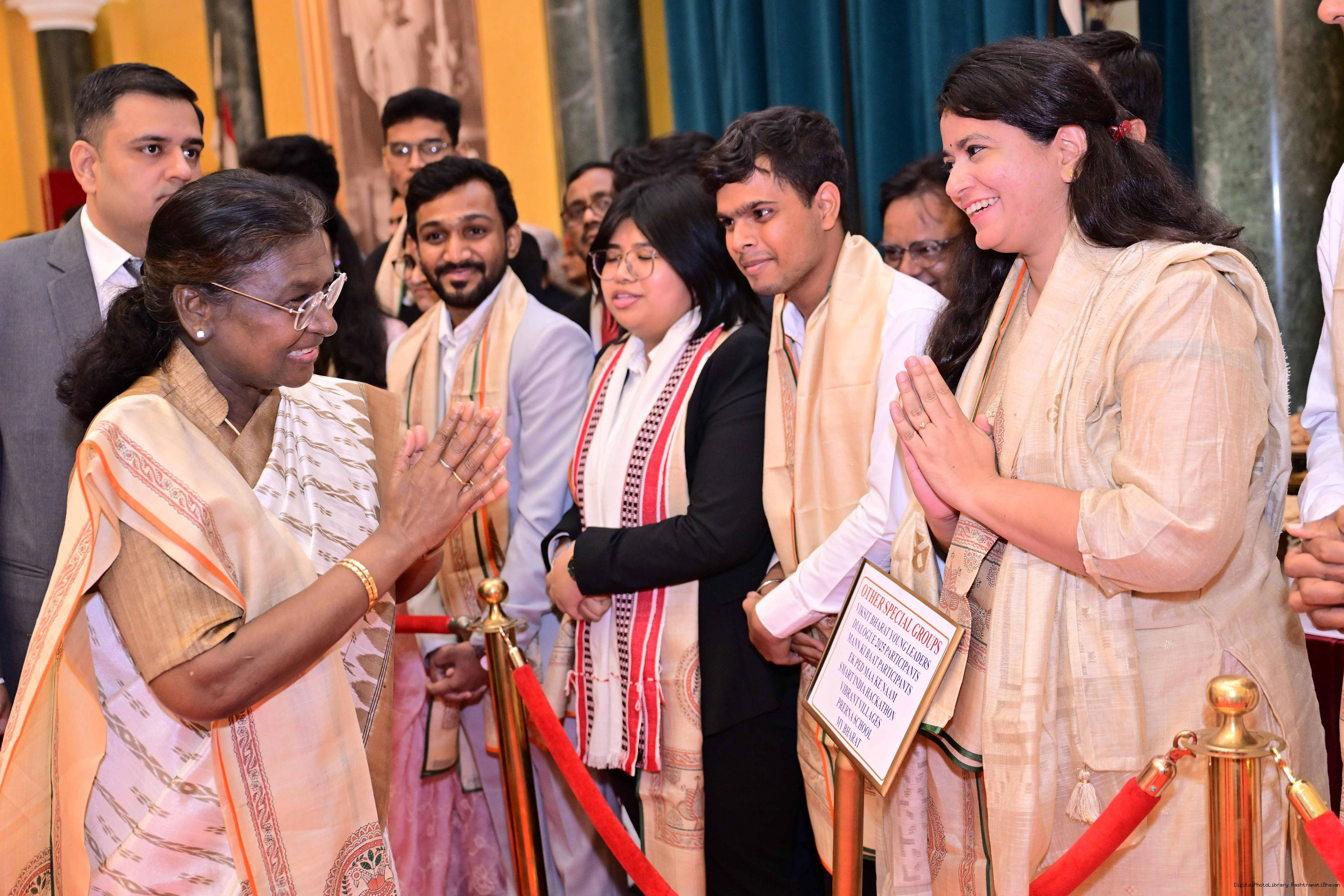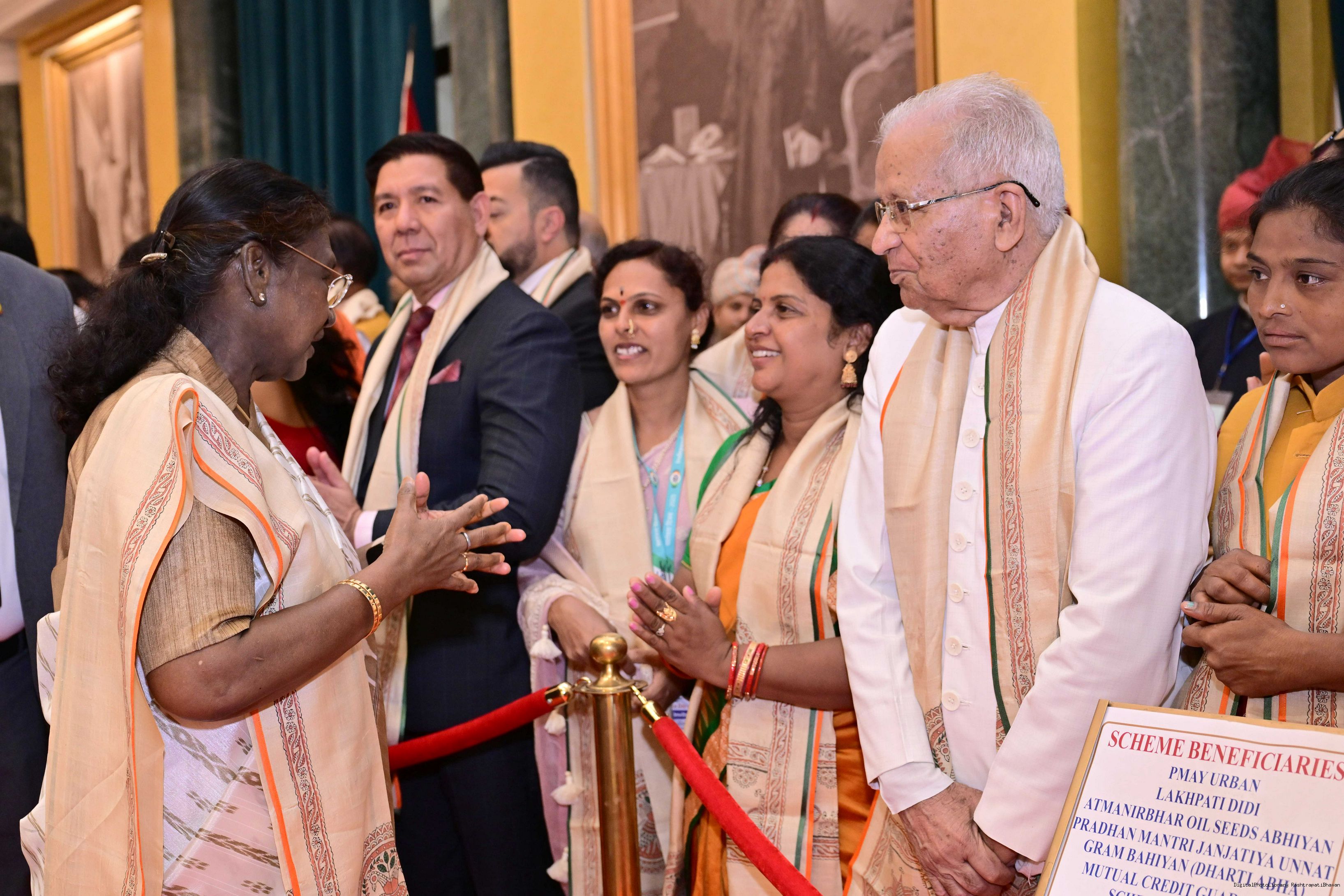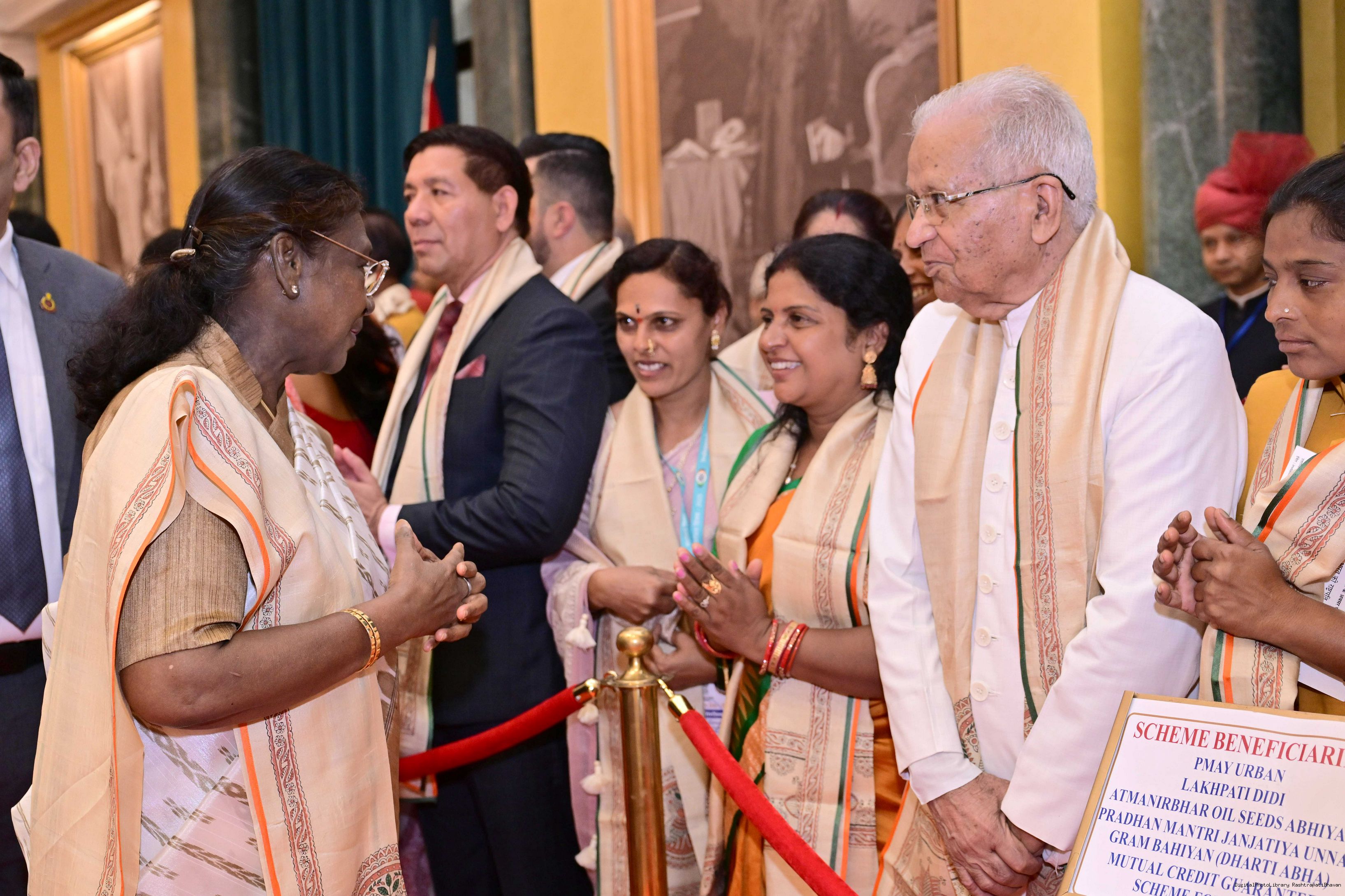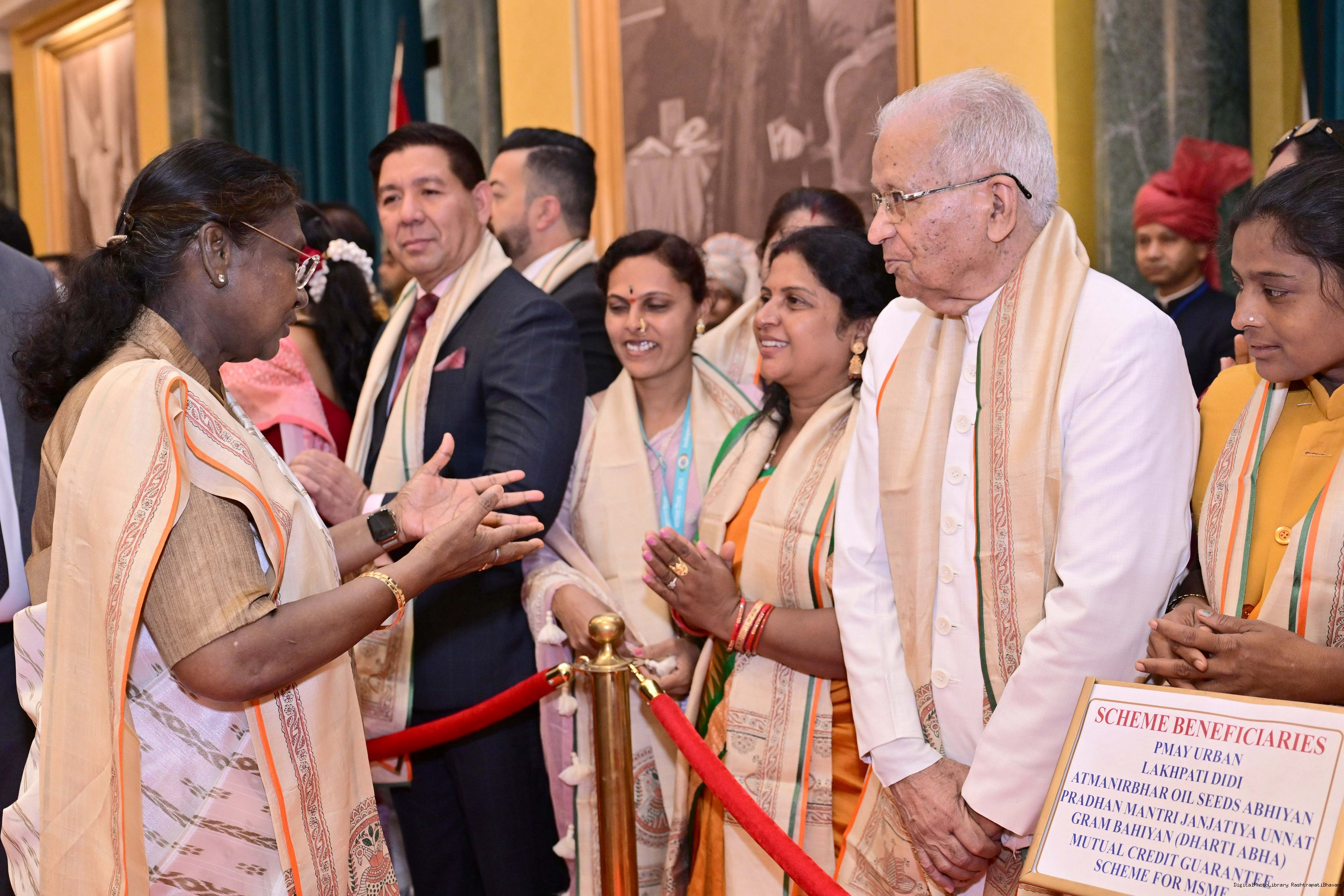 | Caption: | The President of India, Smt Droupadi Murmu hosting 'At Home' Reception on the occasion of 79nd Independence Day, at Rashtrapati Bhavan Cultural Centre on August 15, 2025. |