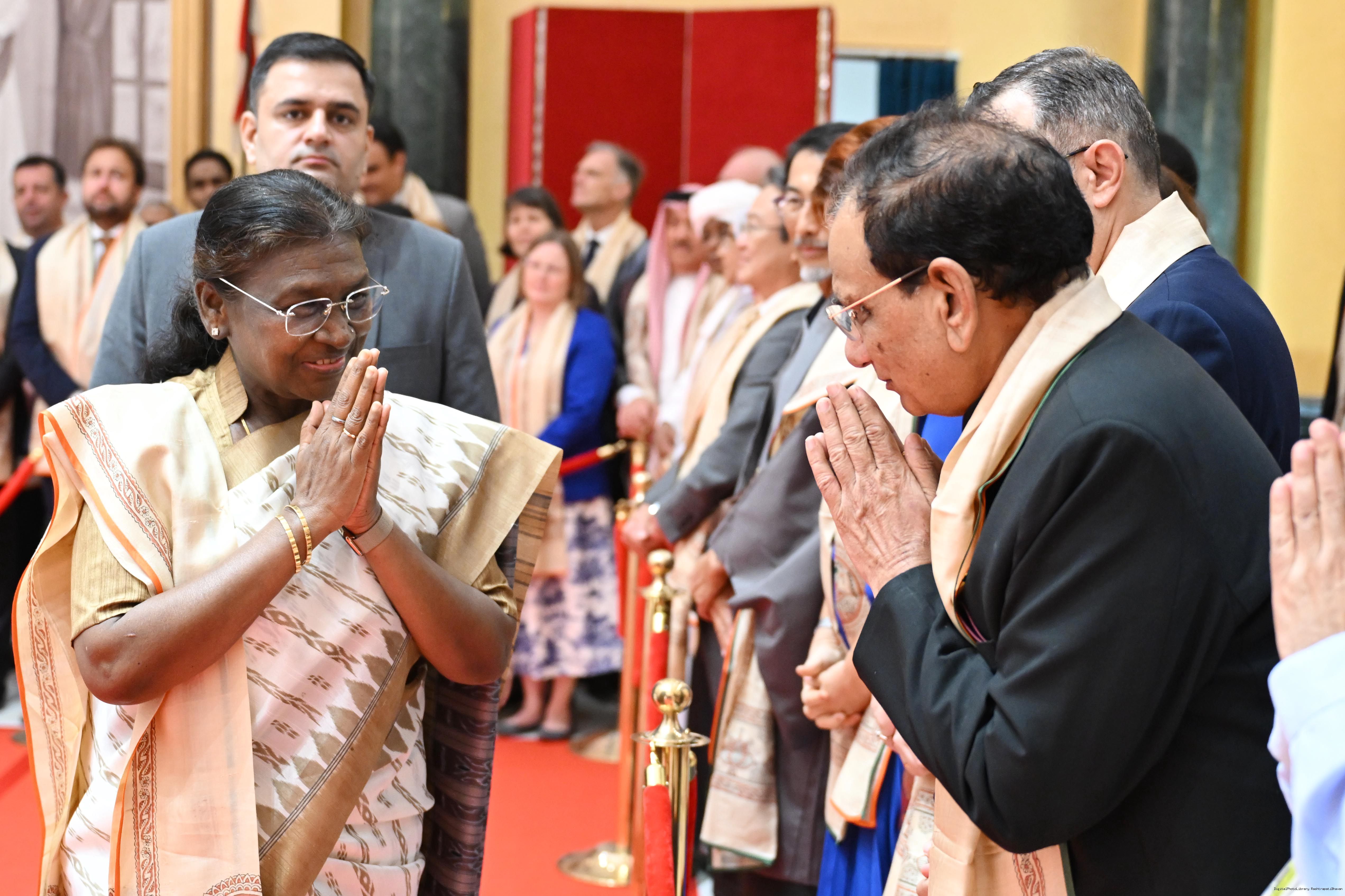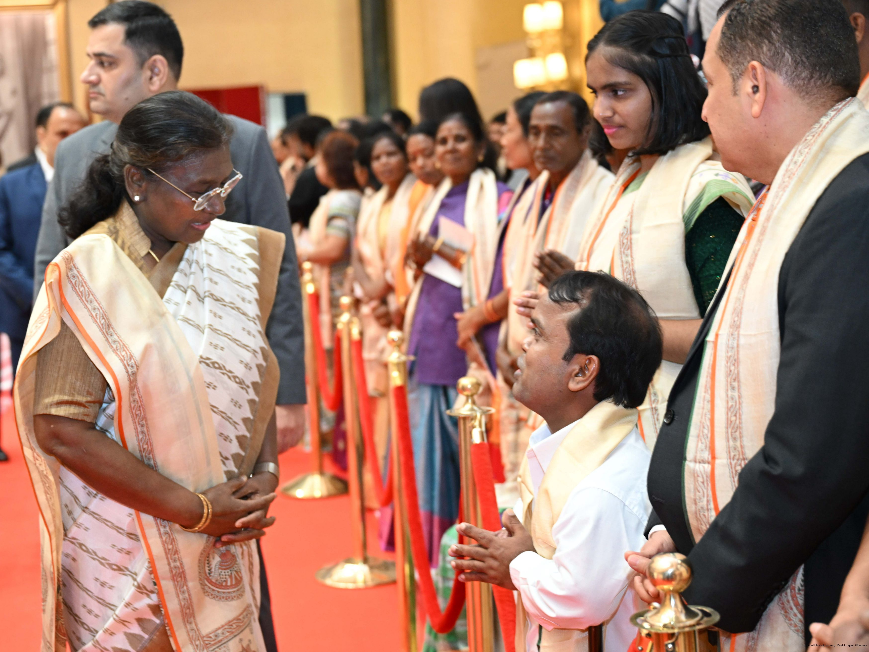 | Caption: | The President of India, Smt Droupadi Murmu hosting 'At Home' Reception on the occasion of 79nd Independence Day, at Rashtrapati Bhavan Cultural Centre on August 15, 2025. |