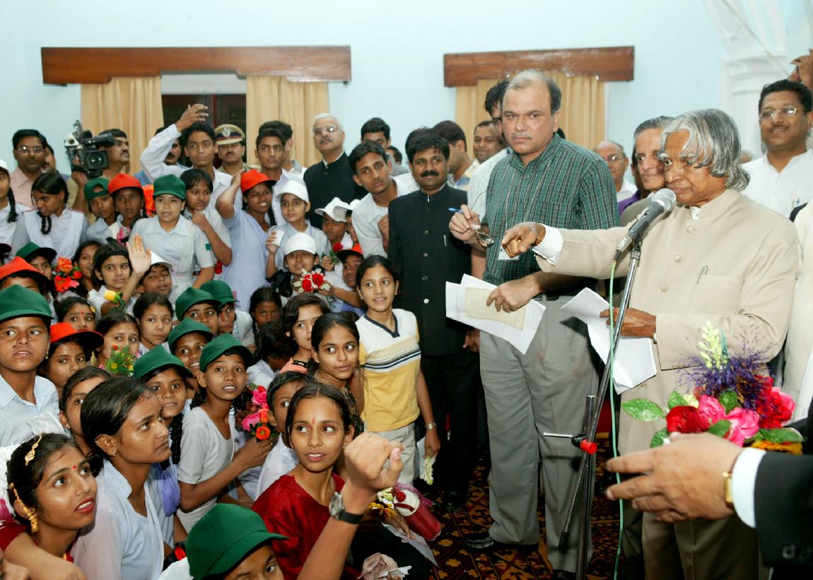 | Caption: | The President of India, Dr A P J Abdul Kalam addressing to the Children at Raj Bhavan Dehradun in Uttaranchal on June 01, 2004 |