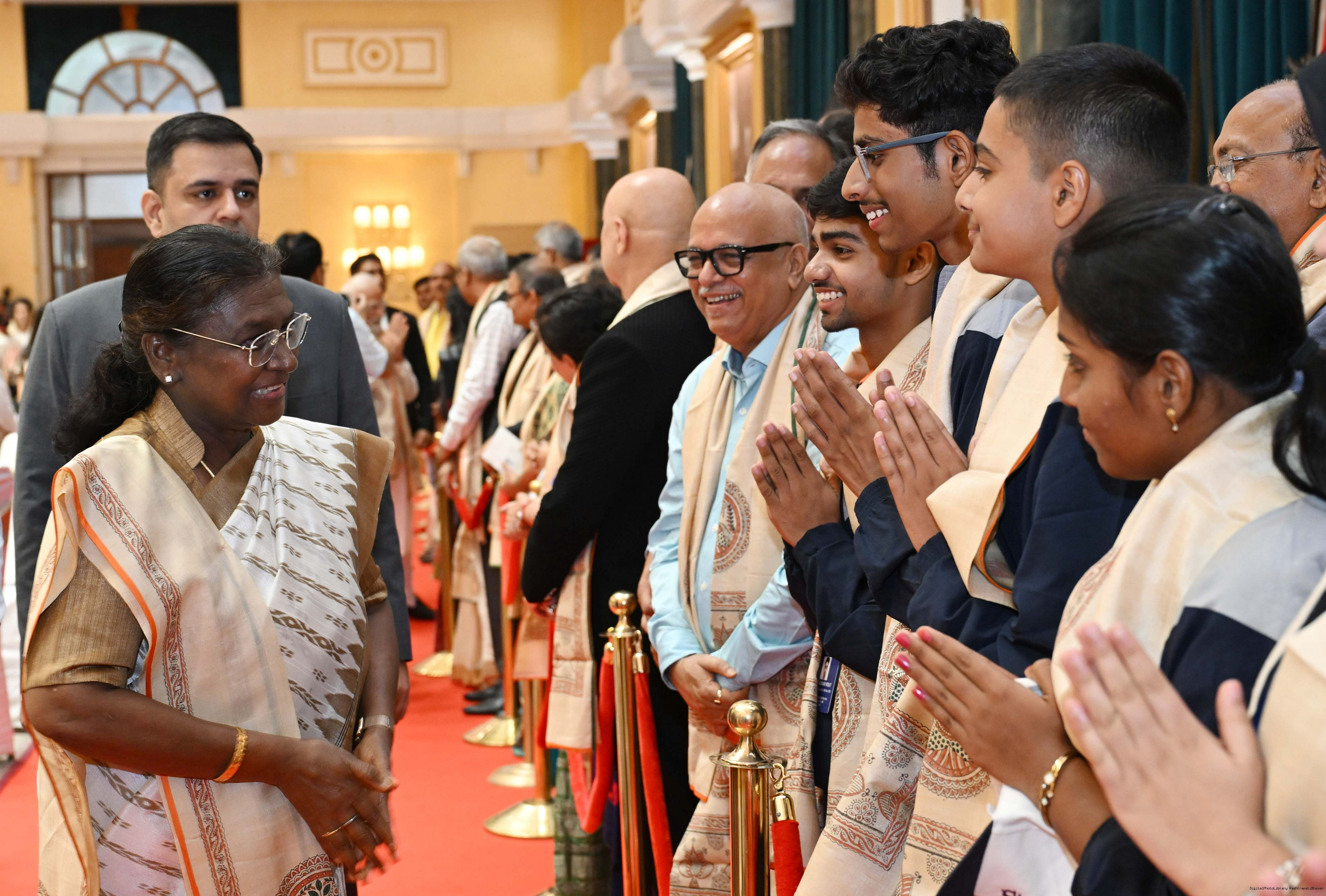 | Caption: | The President of India, Smt Droupadi Murmu hosting 'At Home' Reception on the occasion of 79nd Independence Day, at Rashtrapati Bhavan Cultural Centre on August 15, 2025. |