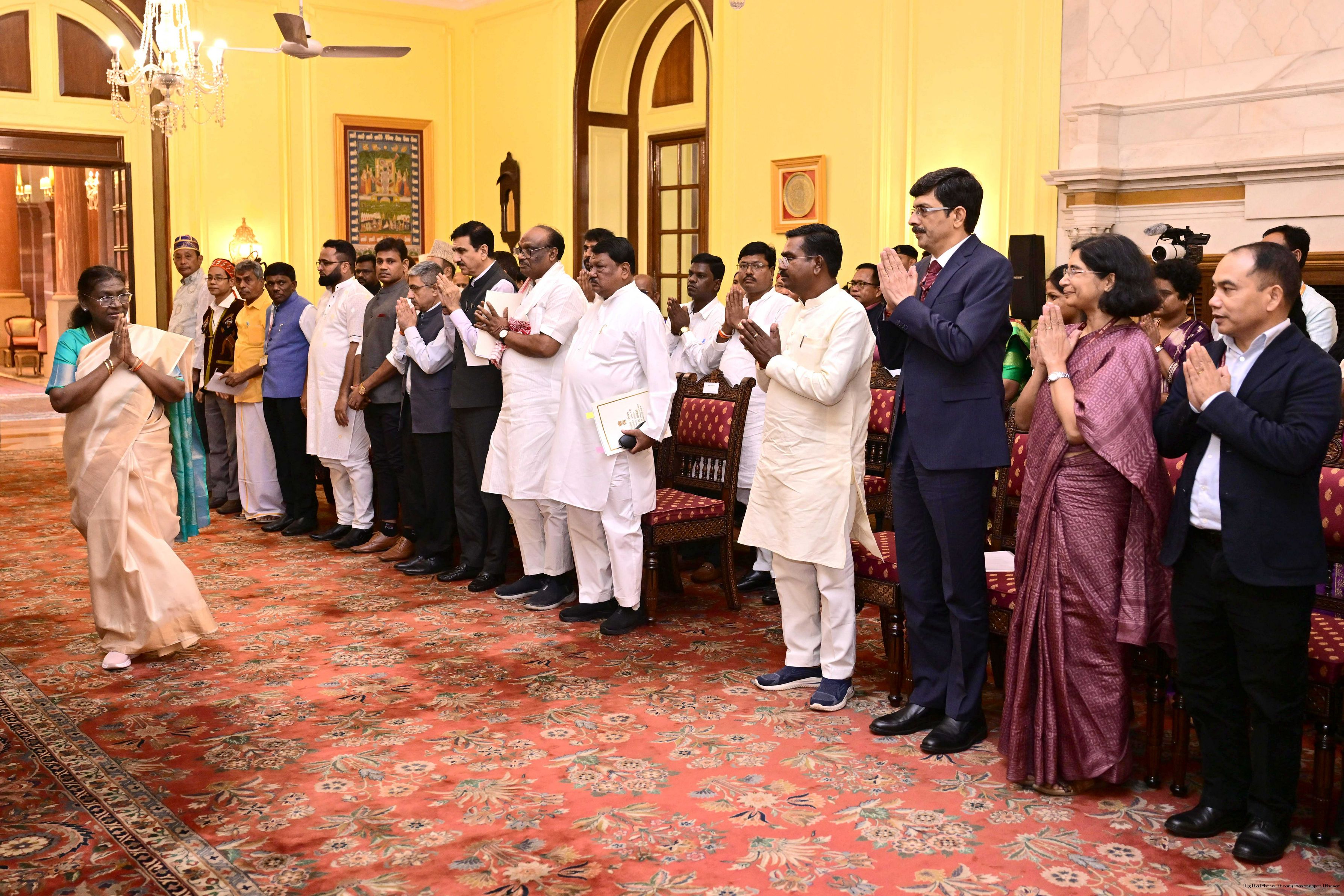 | Category: | The President met with Tribal Leaders accompanied by ministers and officials of Tribals Affairs on August 18, 2025. |