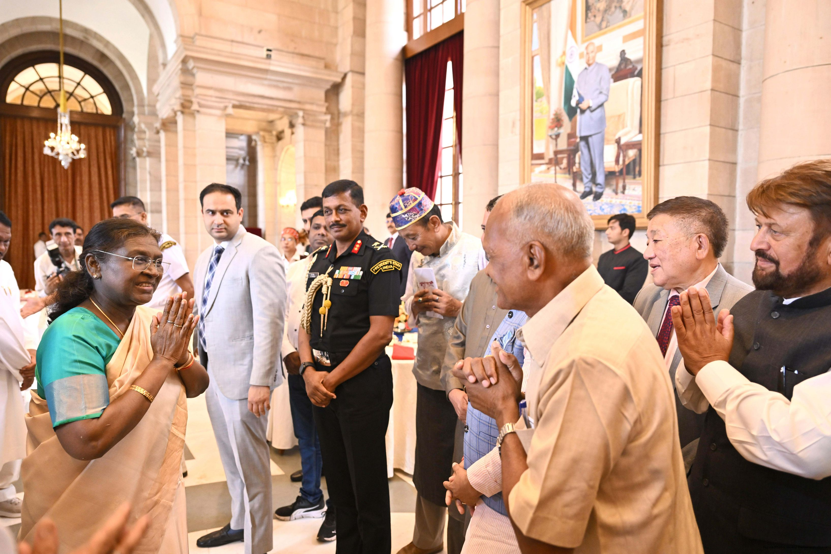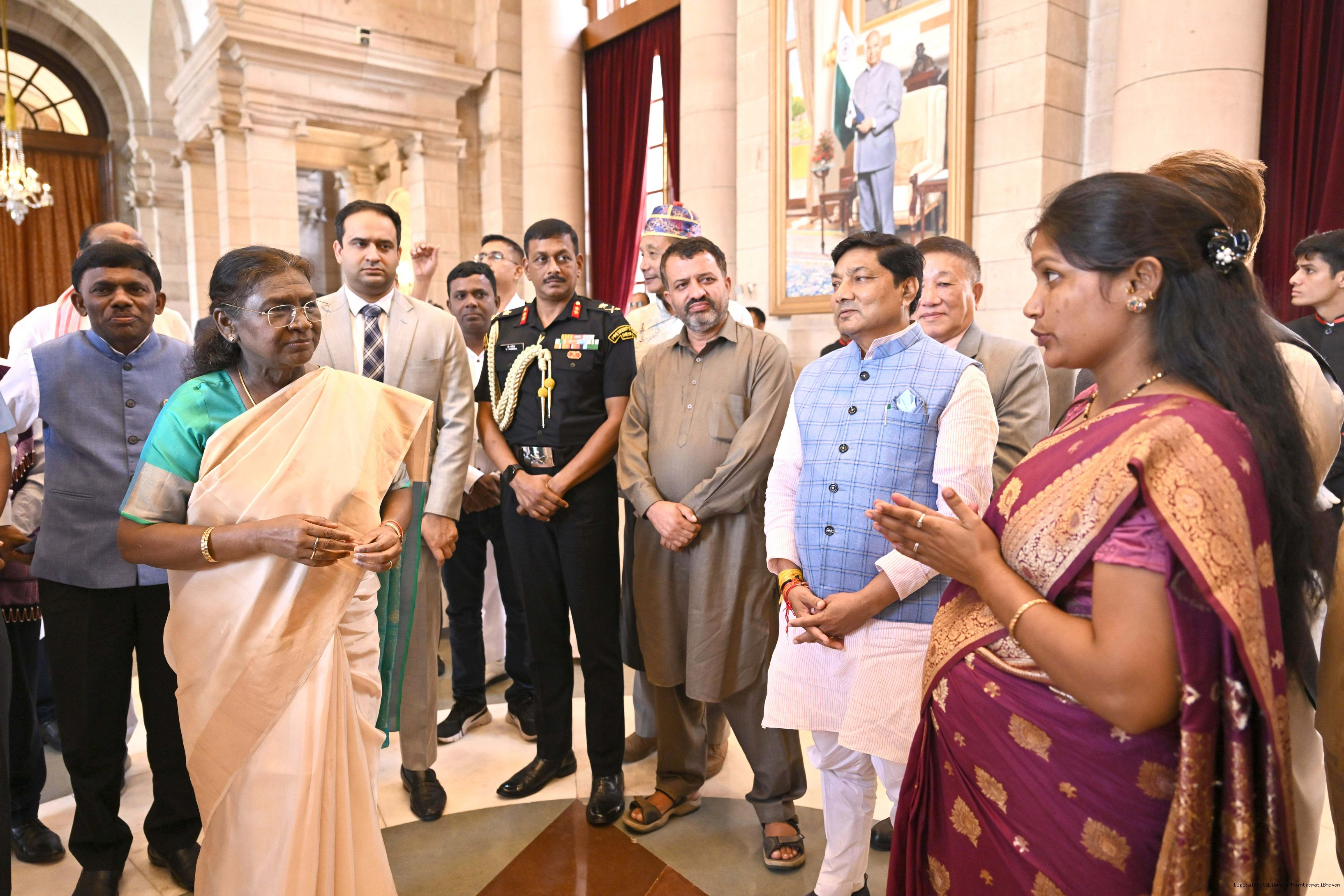| Caption: | A group of eminent tribal individuals from diverse backgrounds, representing various states, called on the President of India, Smt Droupadi Murmu at Rashtrapati Bhavan at Rashtrapati Bhavan on August 18, 2025. |