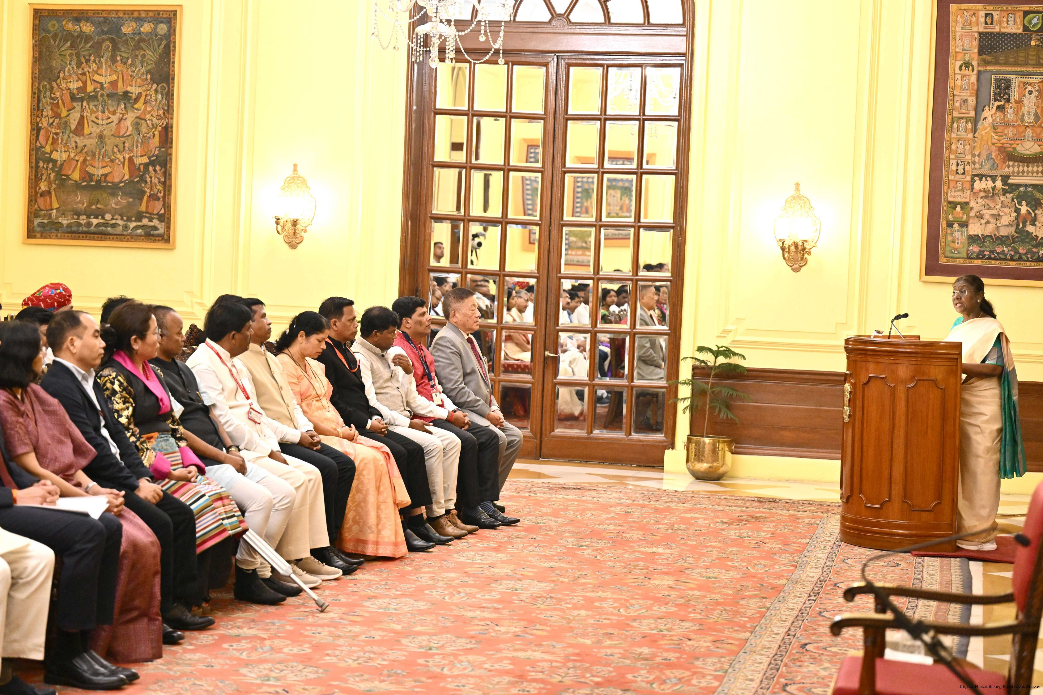 | Category: | The President met with Tribal Leaders accompanied by ministers and officials of Tribals Affairs on August 18, 2025. |