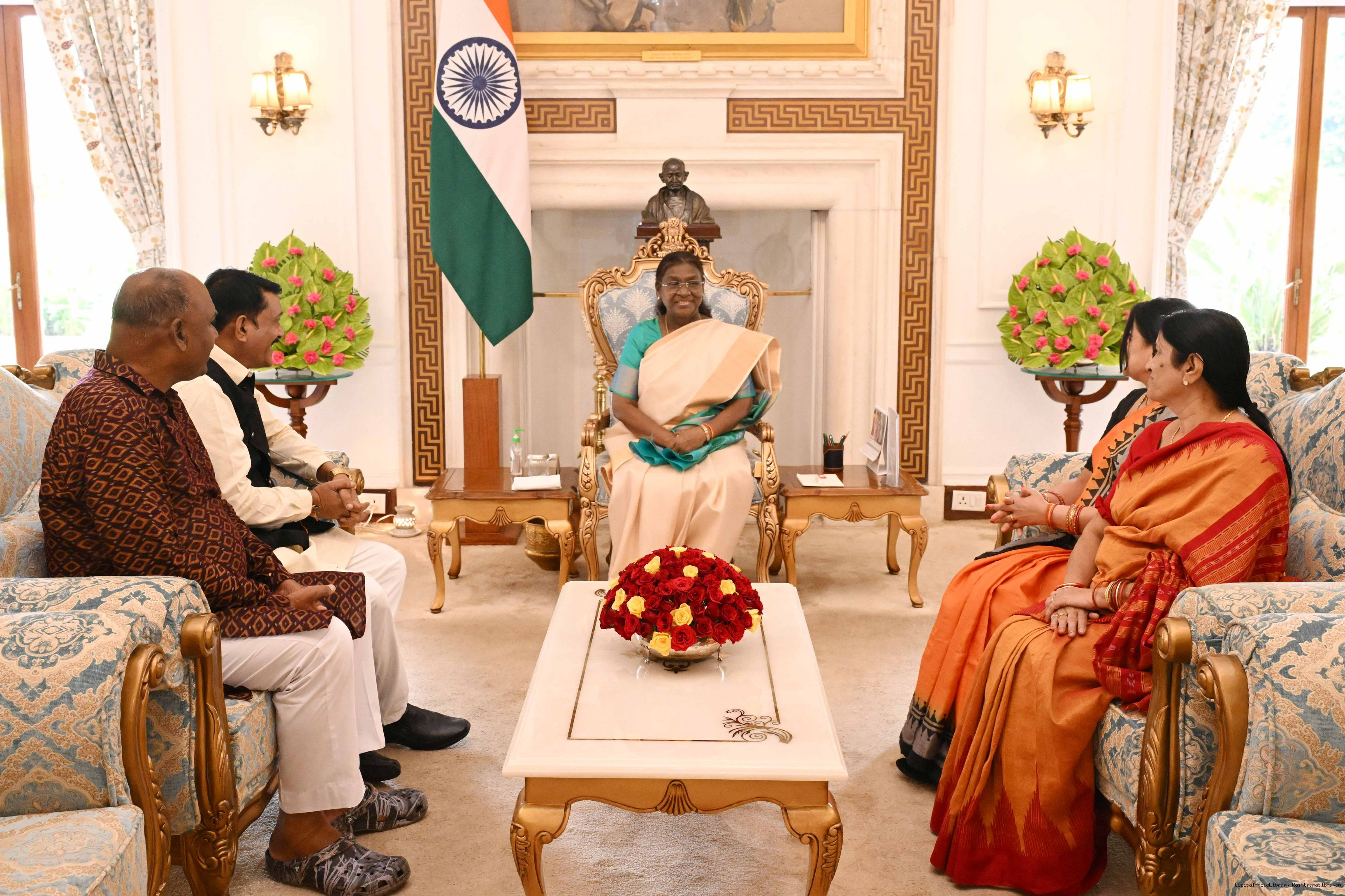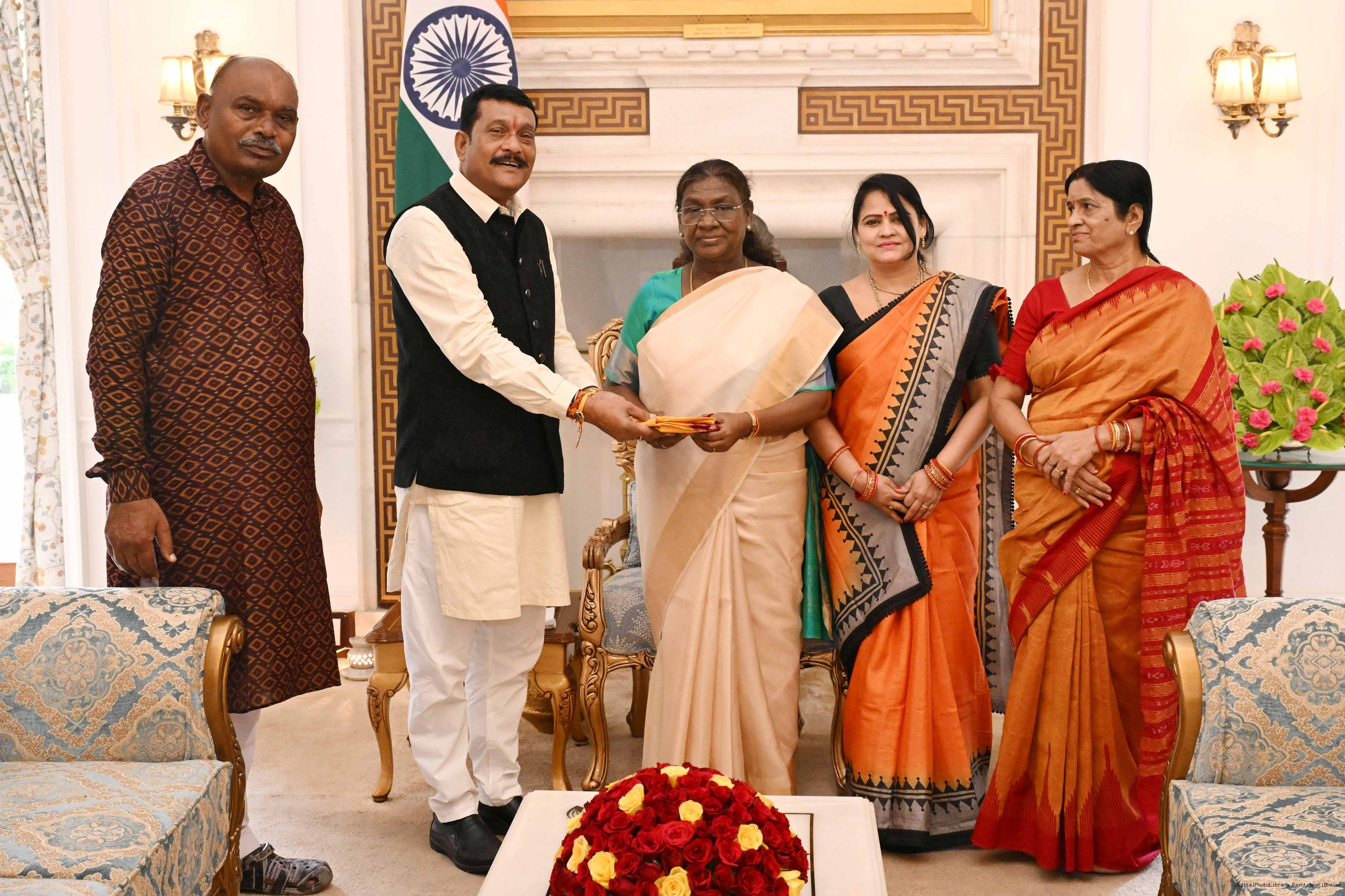 | Caption: | Shri Pradeep Purohit, MP (LS) from Bargarh, Odisha along with spouse and others meeting with the President of India, Smt Droupadi Murmu at Rashtrapati Bhavan on August 18, 2025. |