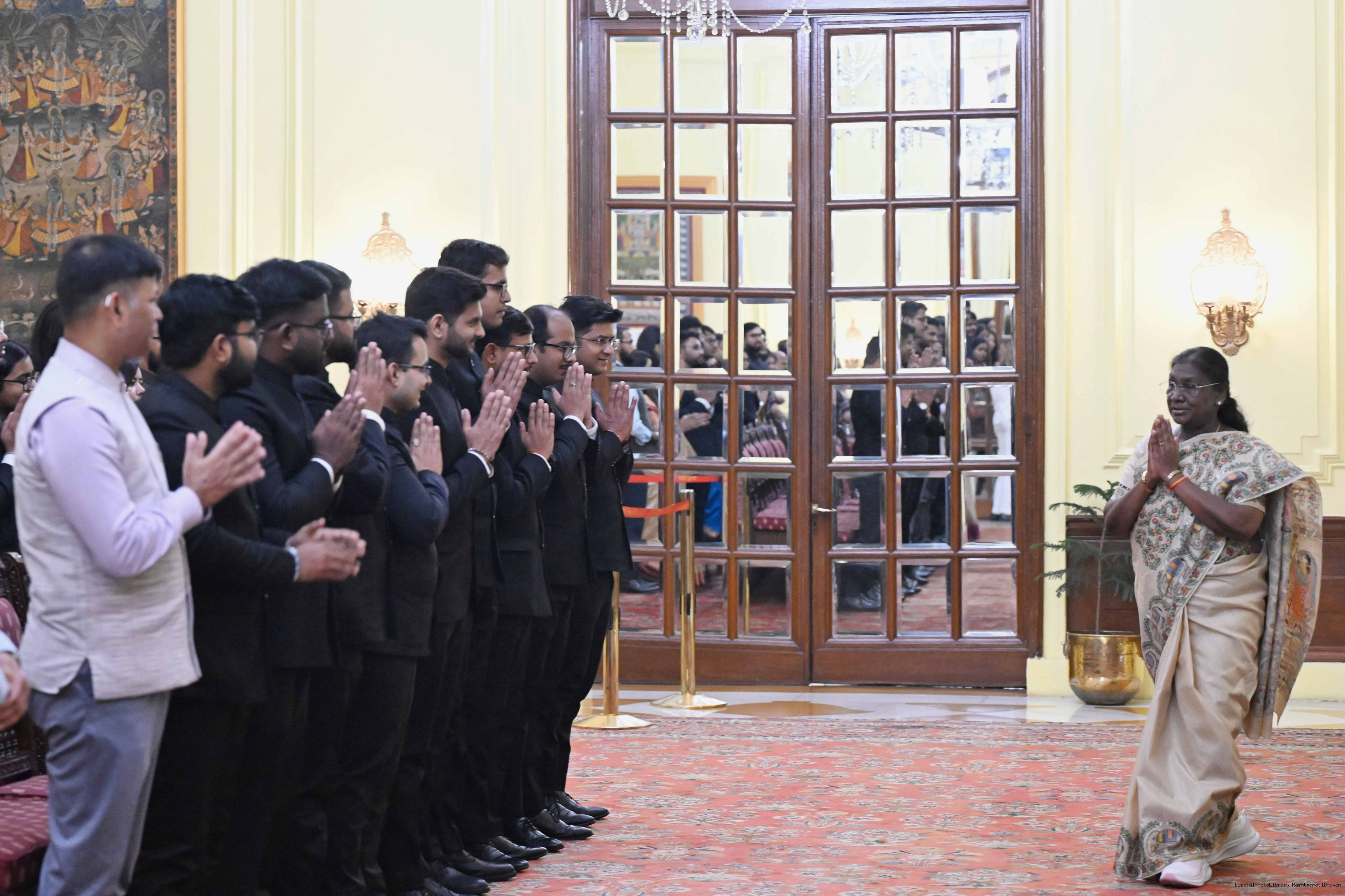 | Caption: | The Officer Trainees of Indian Foreign Service (2024 Batch) called on the President of India, Smt Droupadi Murmu at Rashtrapati Bhavan on August 19, 2025. |