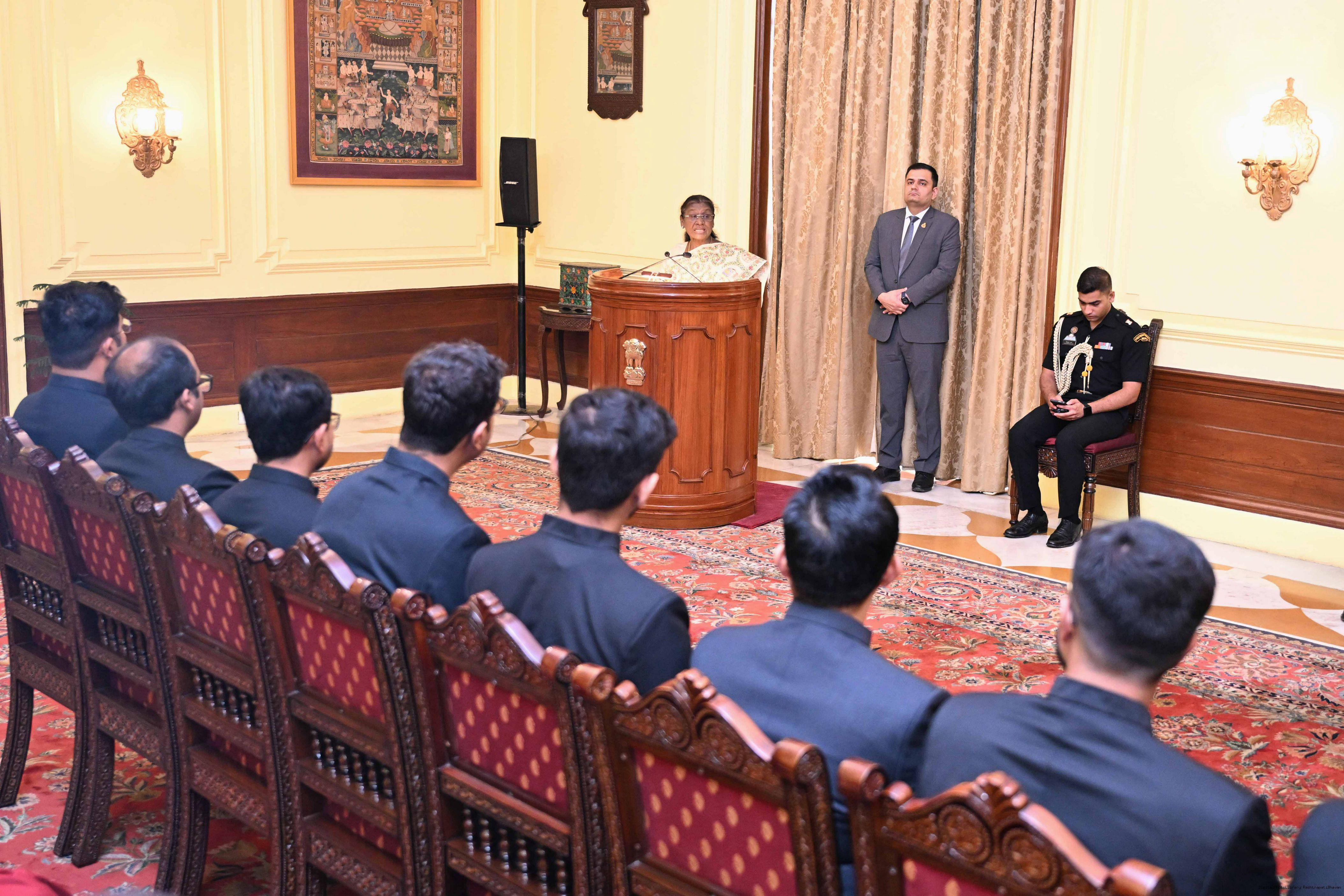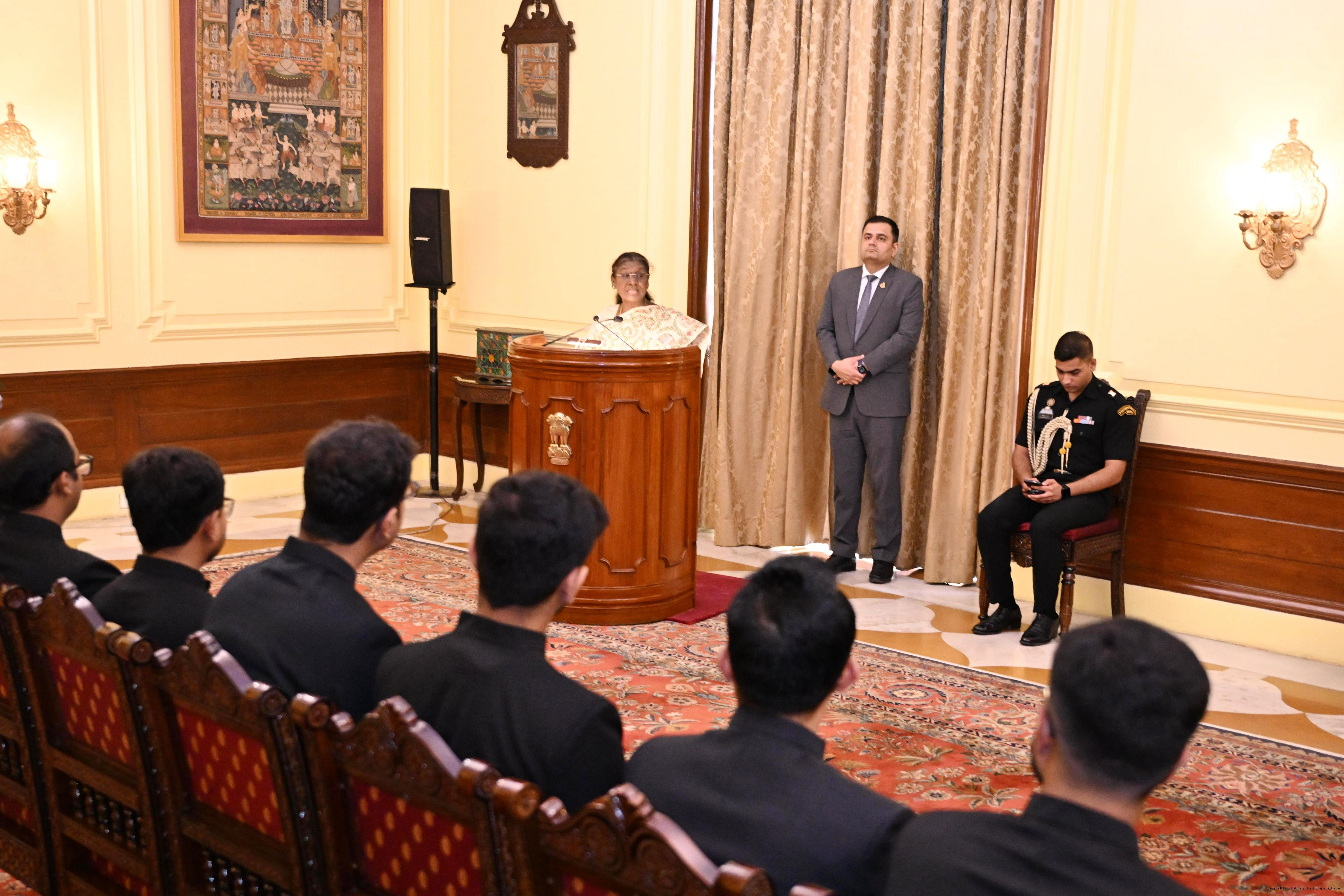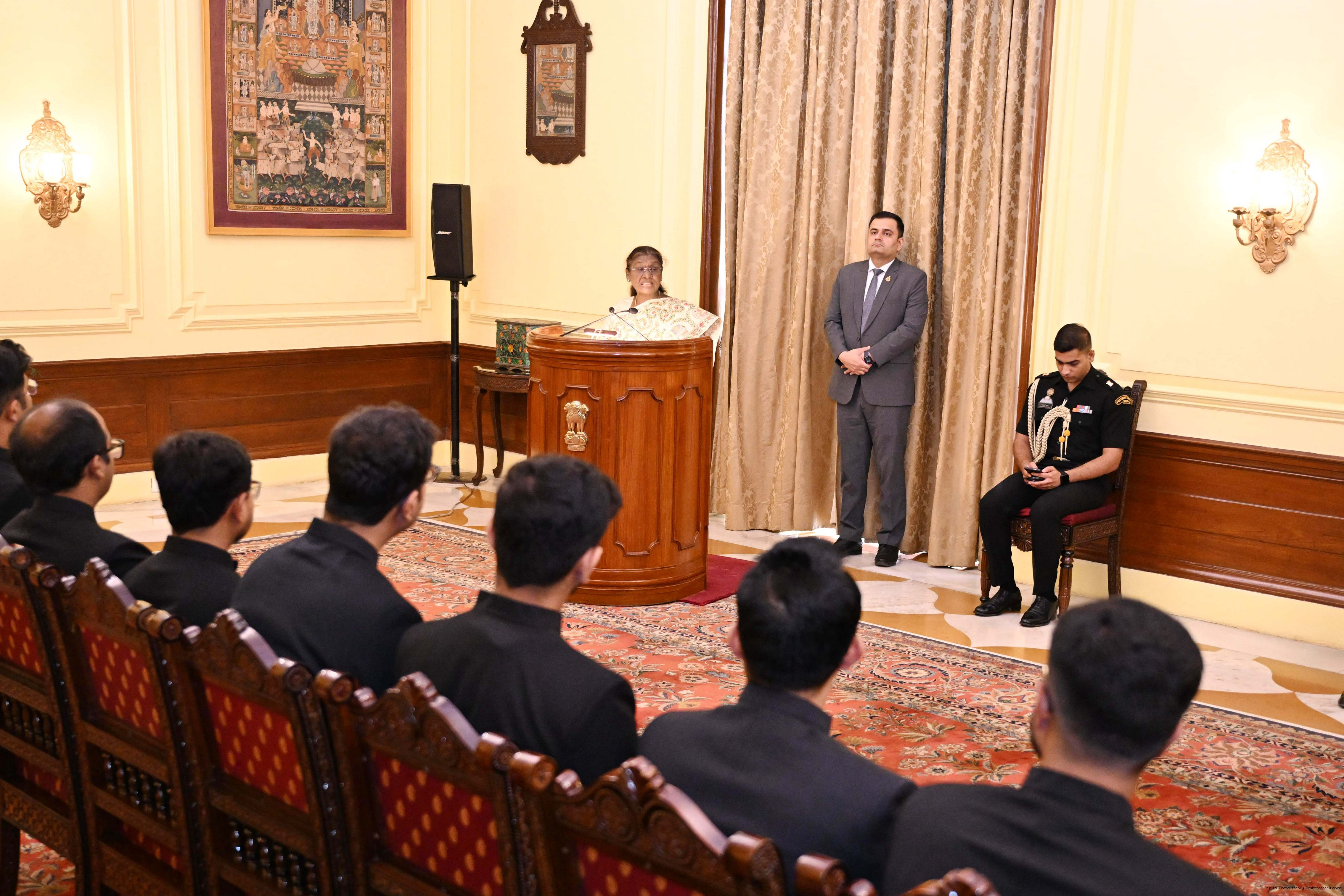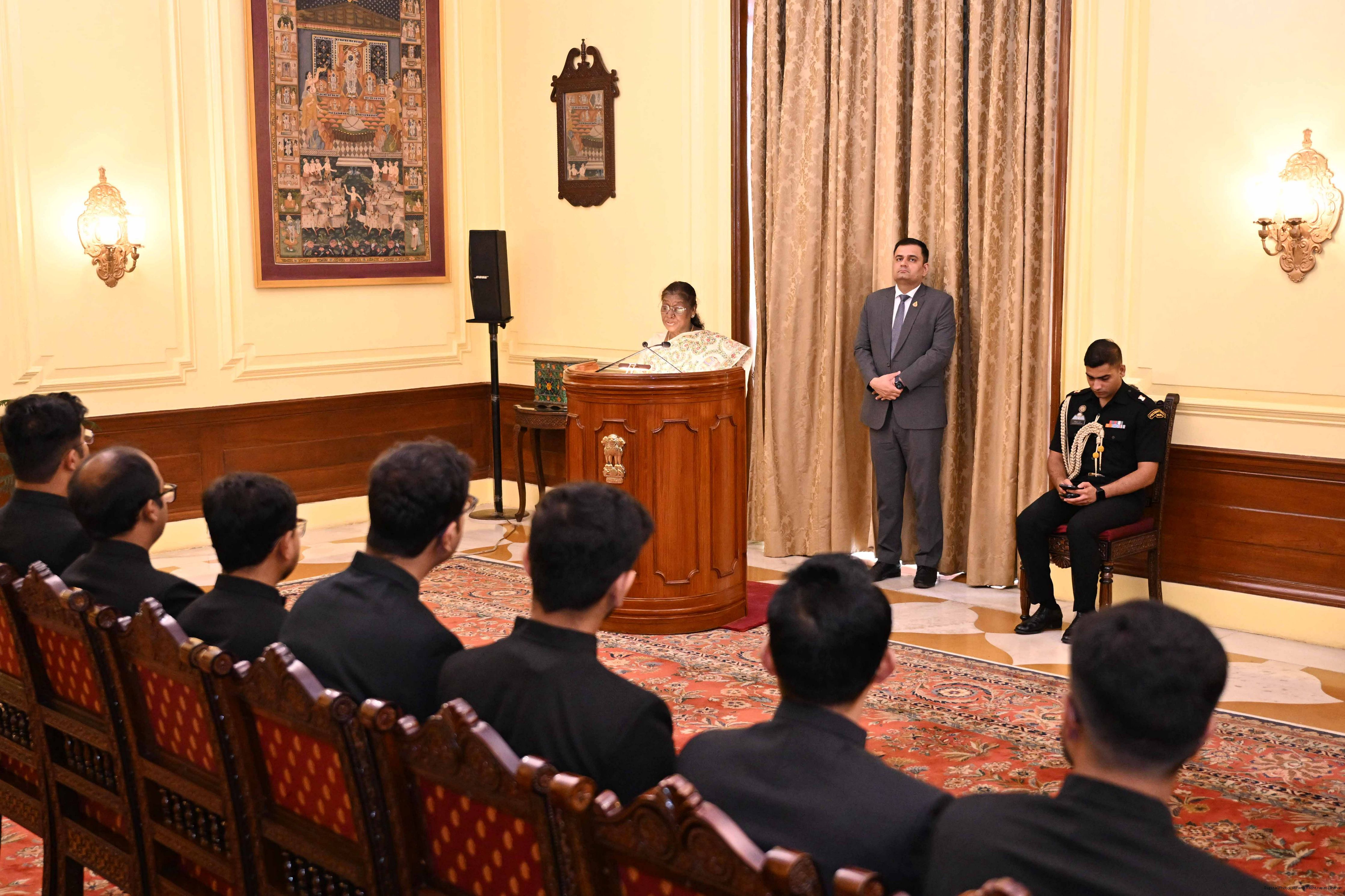 | Caption: | The Officer Trainees of Indian Foreign Service (2024 Batch) called on the President of India, Smt Droupadi Murmu at Rashtrapati Bhavan on August 19, 2025. |
