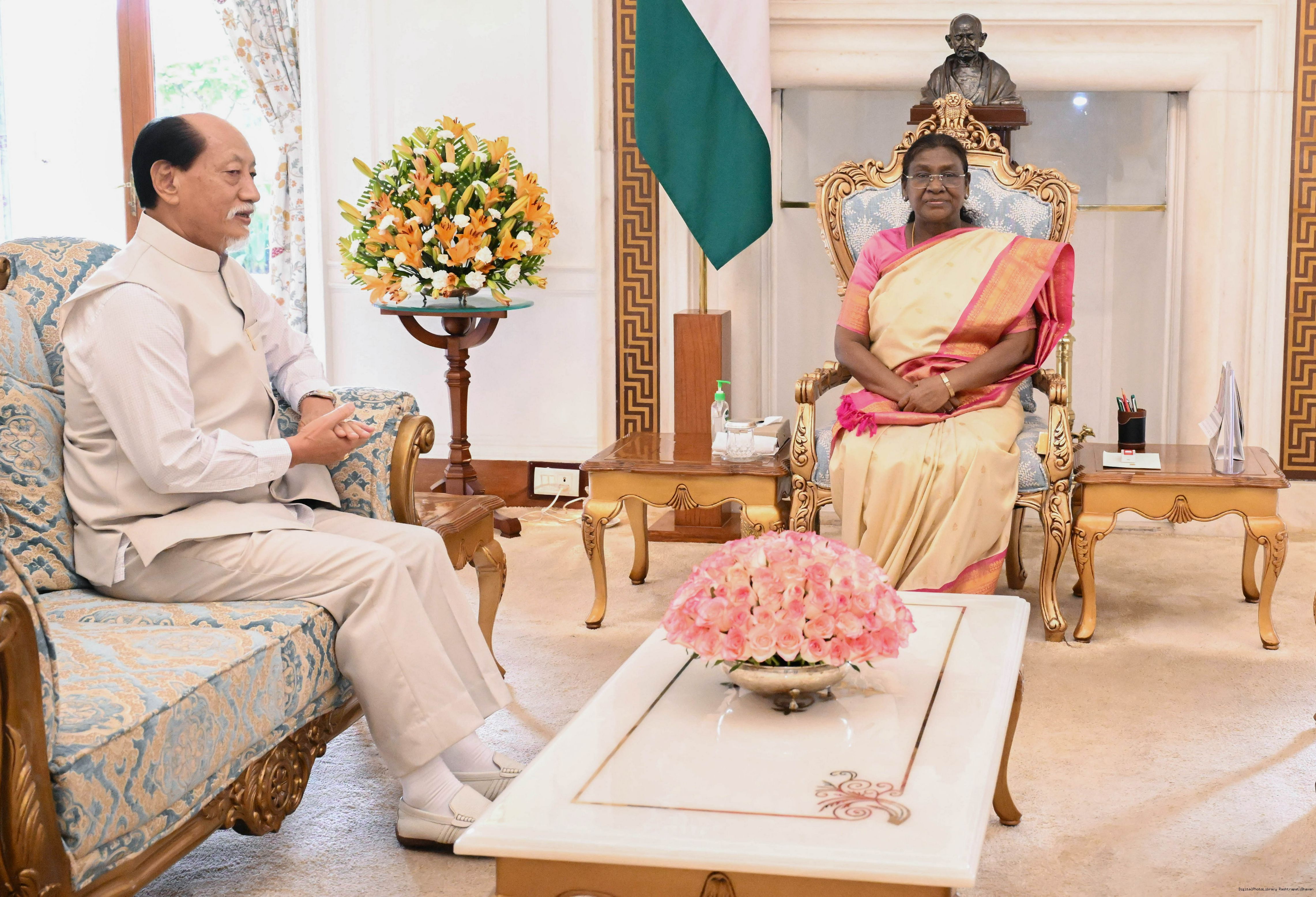 | Caption: | The Chief Minister of Nagaland, Shri Neiphiu Rio called on the President of India, Smt Droupadi Murmu at Rashtrapati Bhavan on August 21, 2025. |