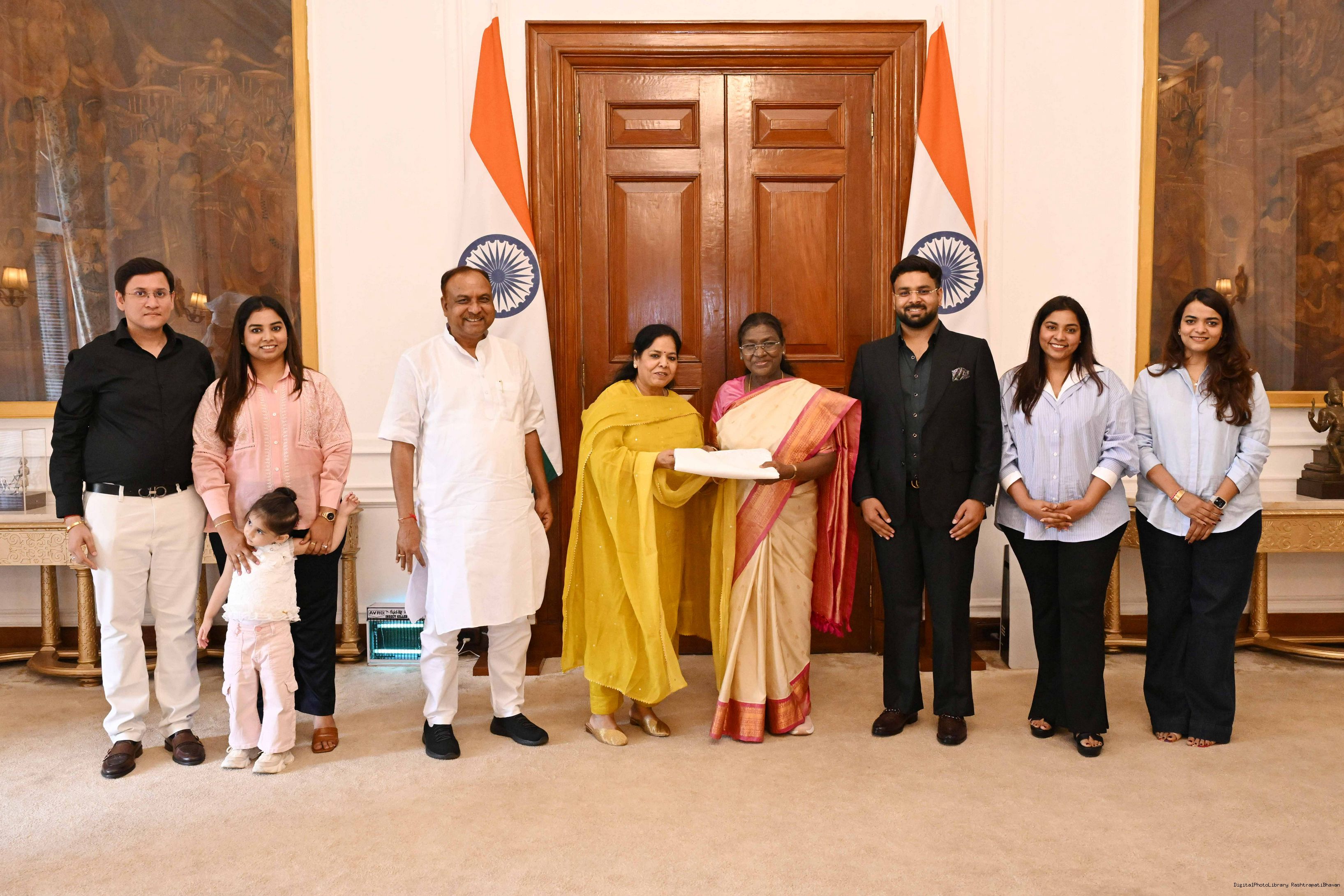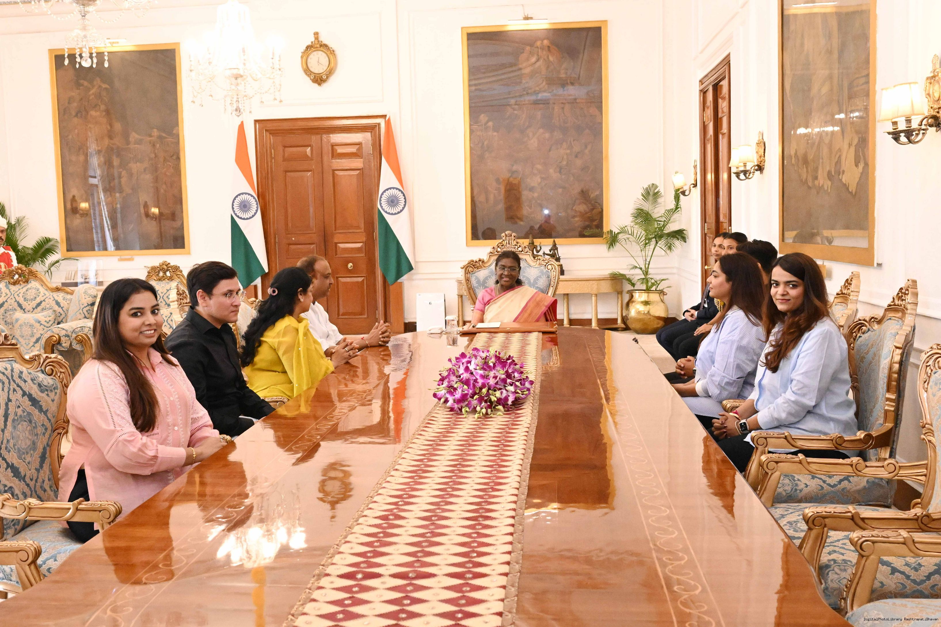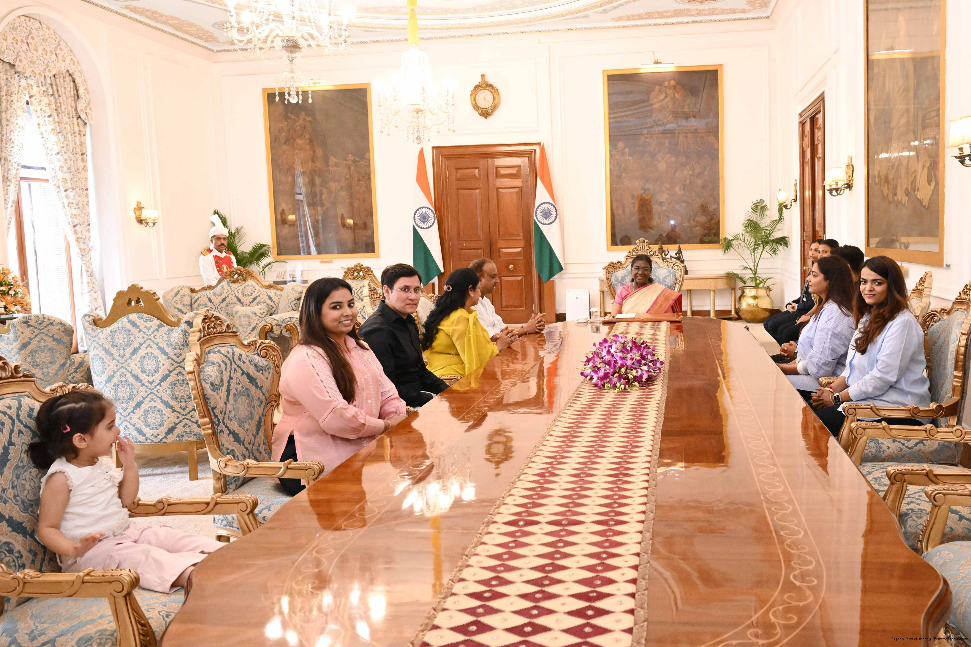 | Caption: | Shri Naveen Jain, MP (Rajya Sabha) along with others meeting the President of India, Smt Droupadi Murmu at Rashtrapati Bhavan on August 21, 2025. |