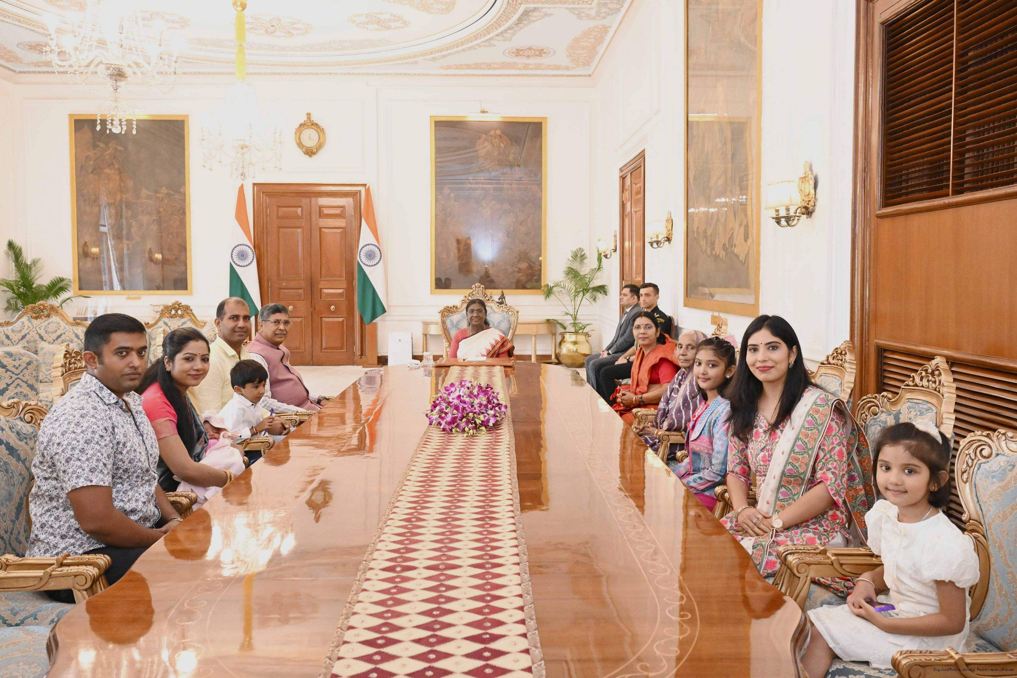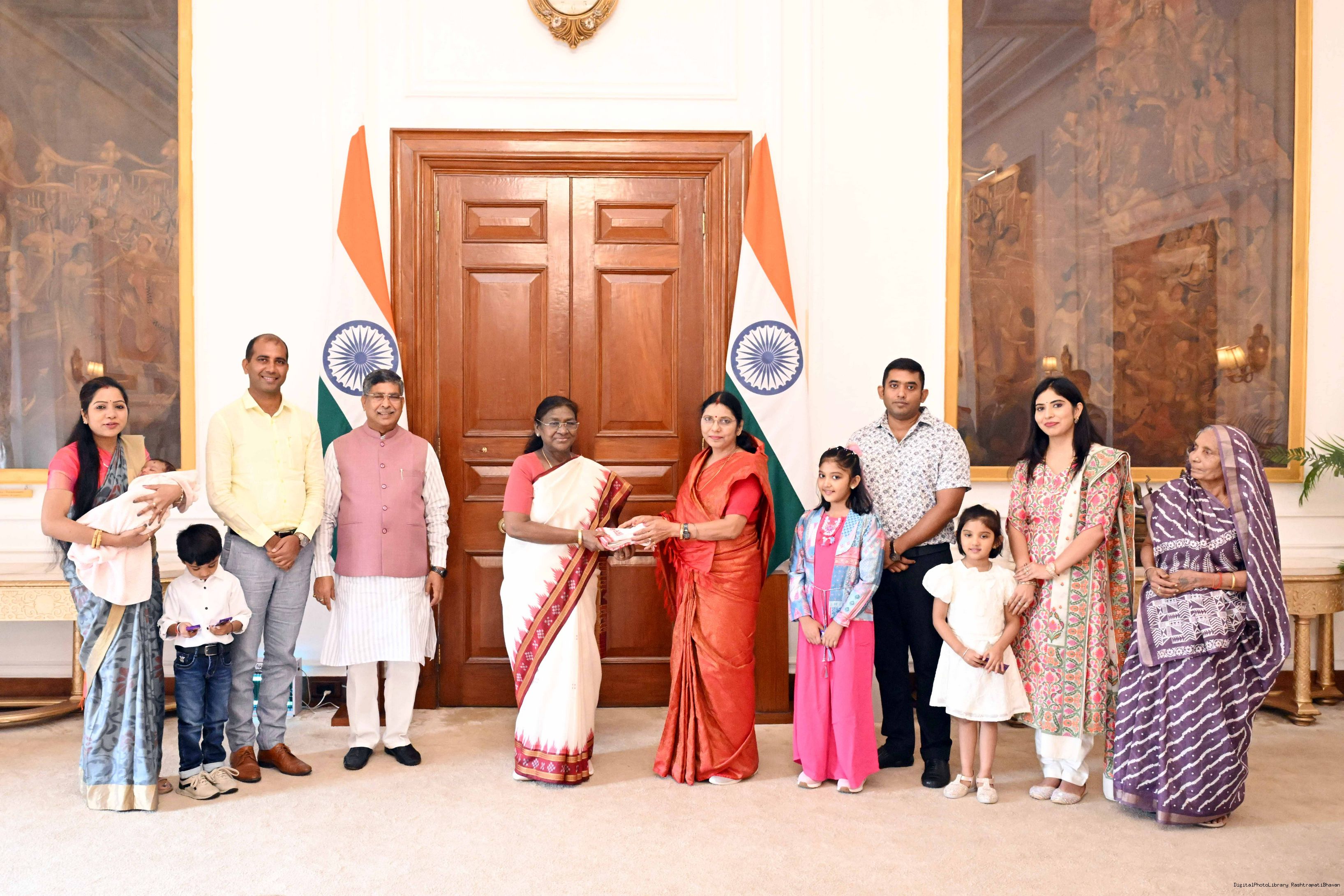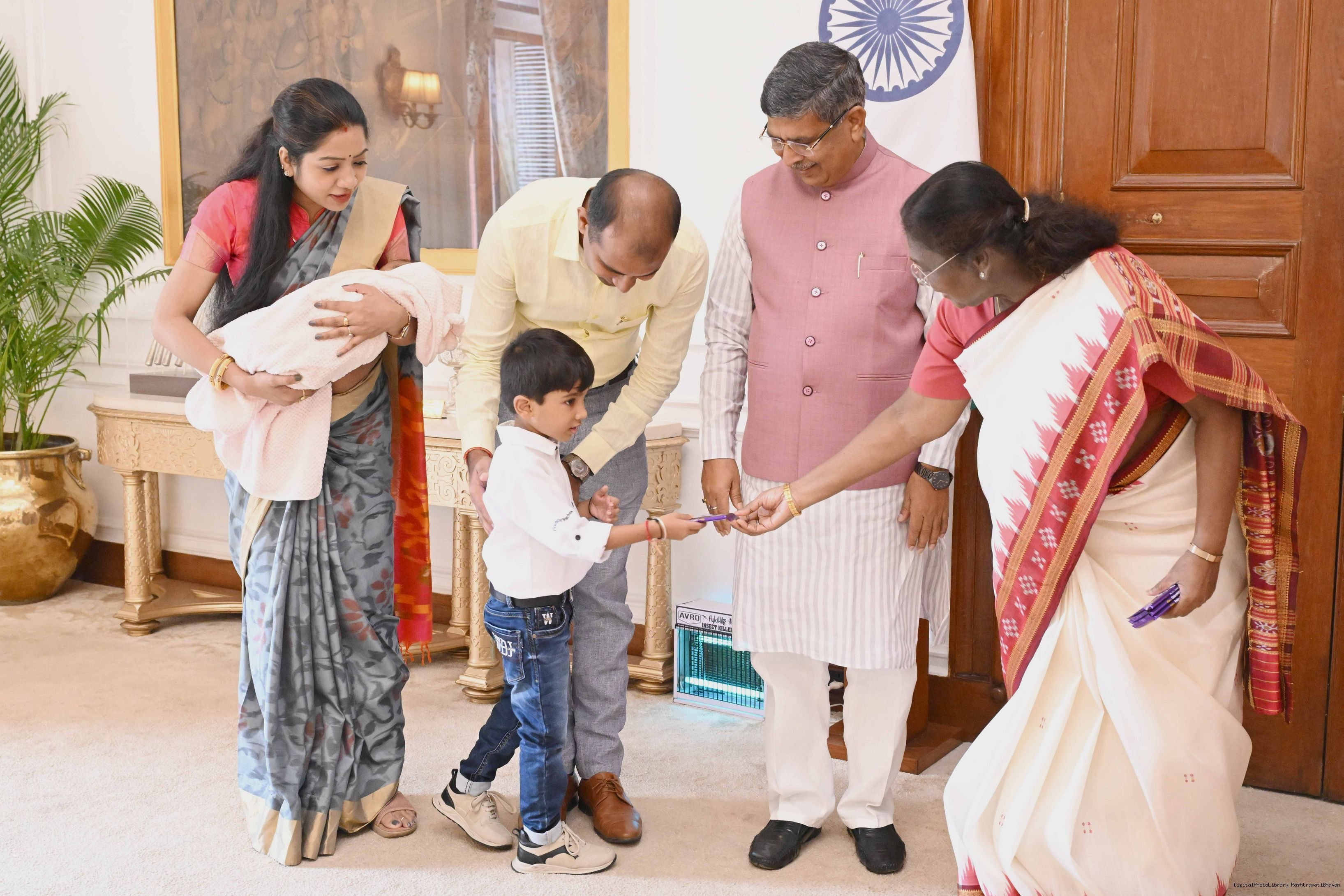 | Caption: | Shri Aditya Prasad Sahu, MP (RS) and State General Secretary, BJP, Odisha along with wife and others meeting with the President of India, Smt Droupadi Murmu at Rashtrapati Bhavan on August 22, 2025. |