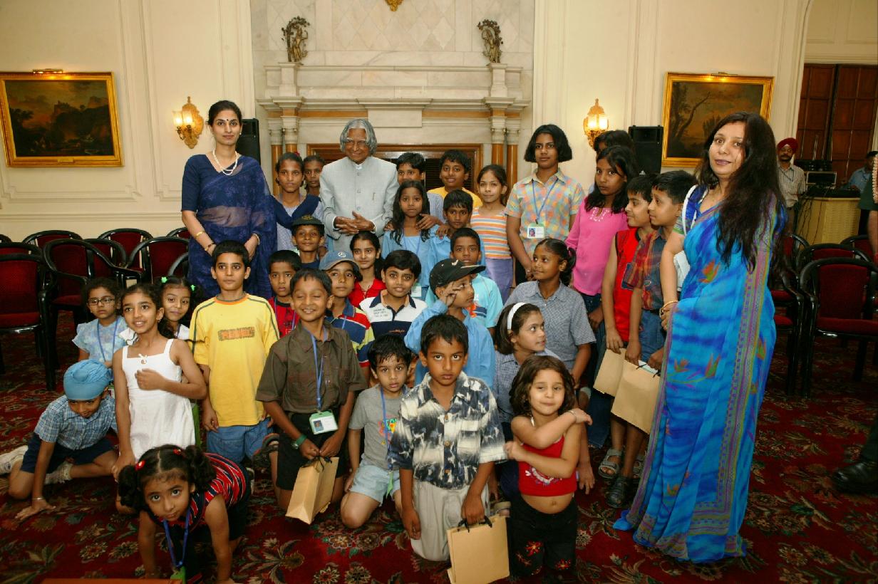 | Caption: | The Children from Unnati the Summer Camp organized by the Times Foundation calling on the President of India, Dr A P J Abdul Kalam at the Yellow Drawing Room of Rashtrapati Bhavan in New Delhi on June 02, 2004 |