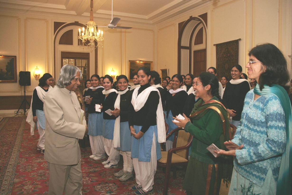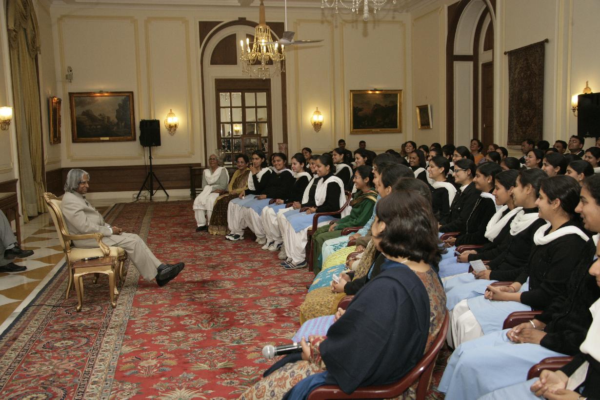 | Caption: | The Students from Dev Samaj College of Education, Chandigarh calling on the President of India, Dr A P J Abdul Kalam at the Yellow Drawing Room of Rashtrapati Bhavan in New Delhi on Dec 23, 2005 |