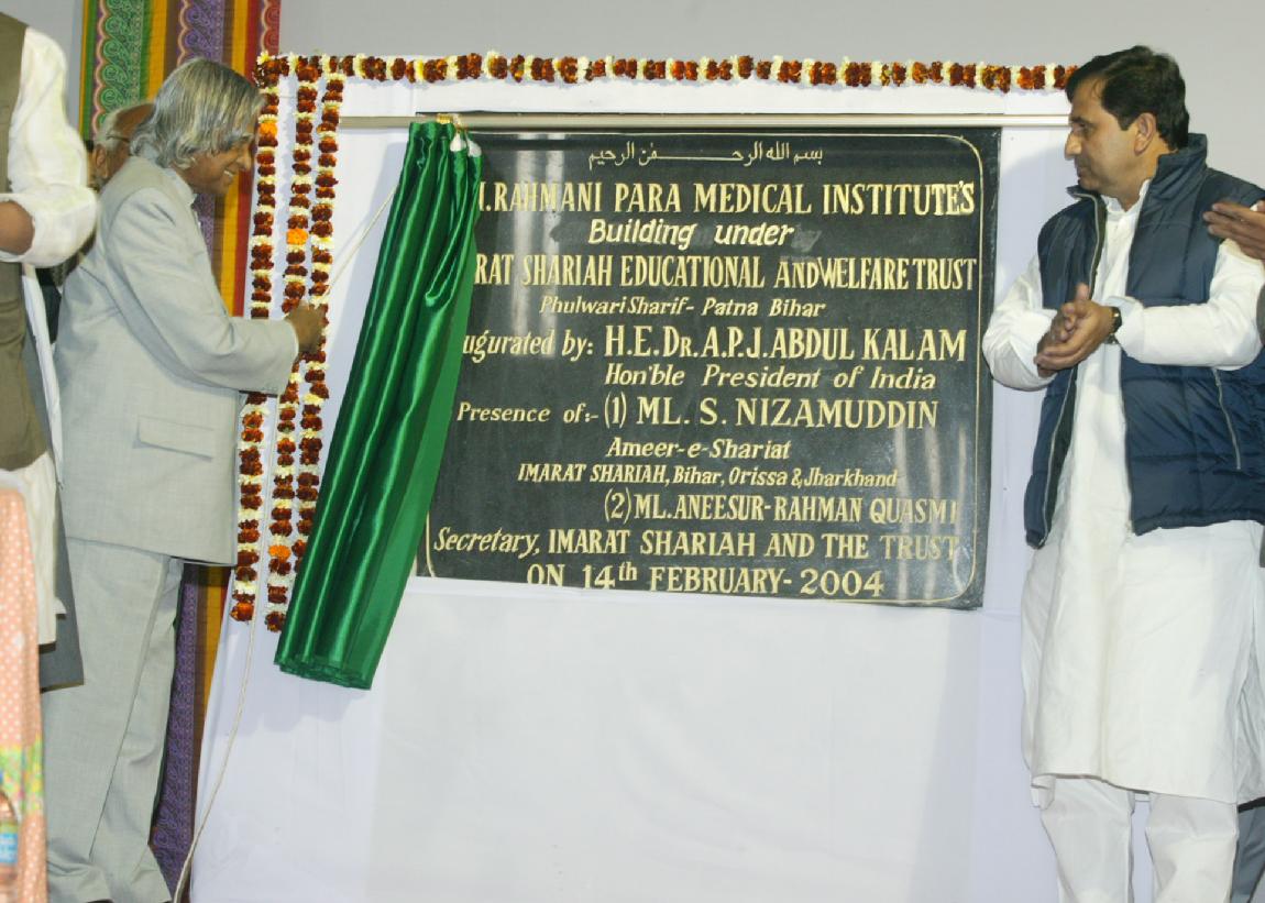 | Caption: | The President of India, Dr A P J Abdul Kalam inaugurating the Paramedical Institute of Imarat Shariah at Patna in Bihar on Feb 14, 2004 |