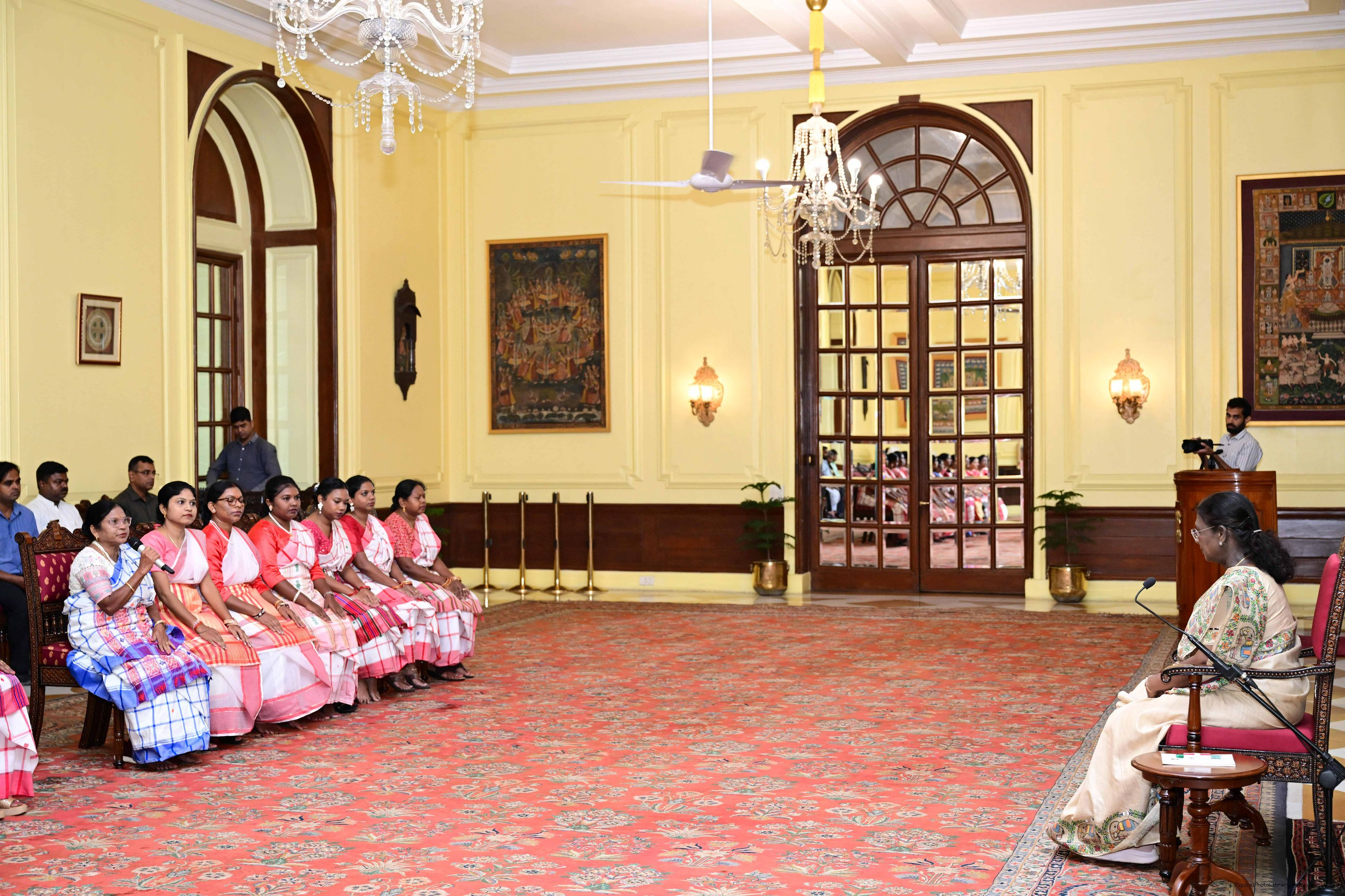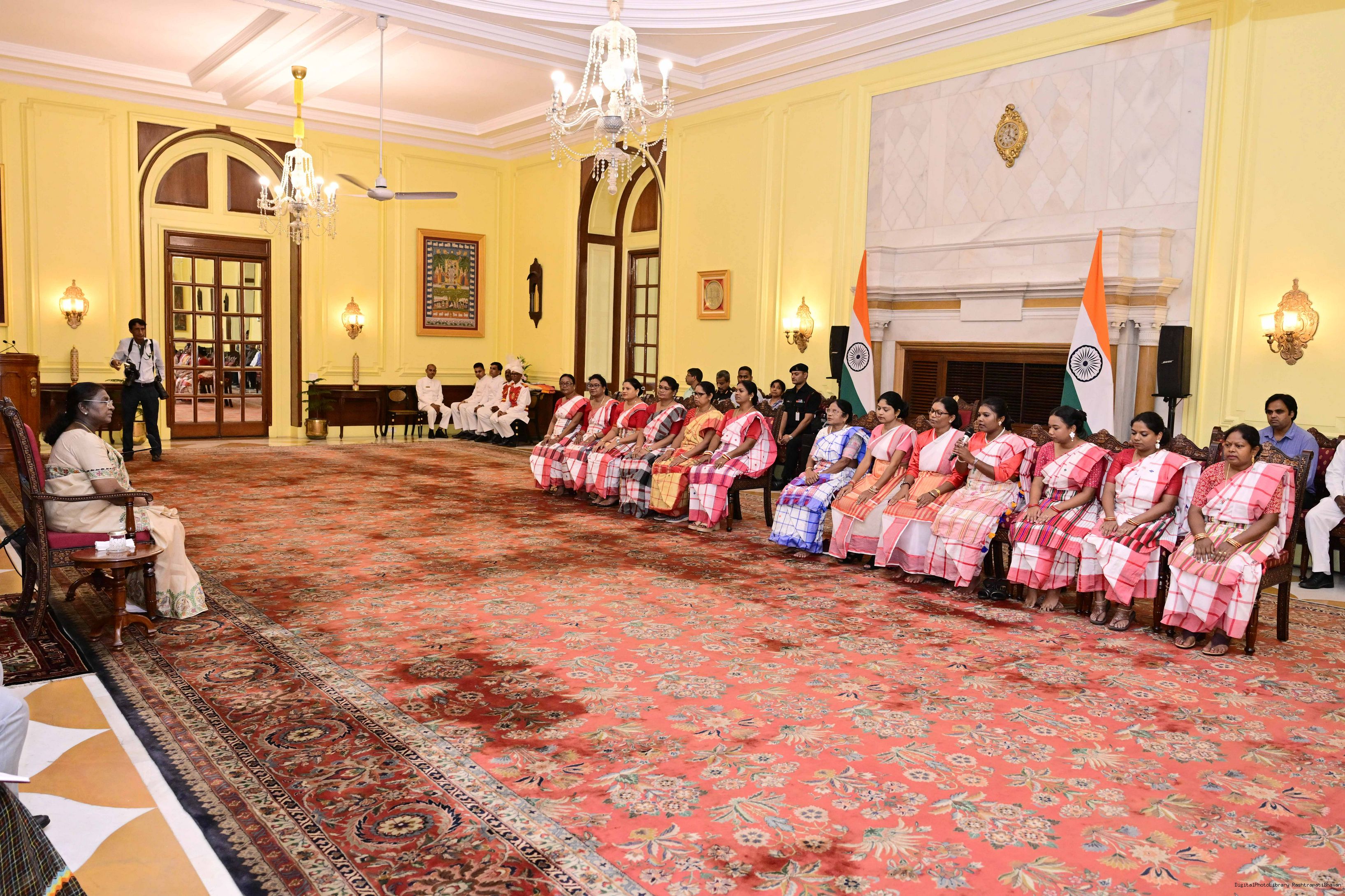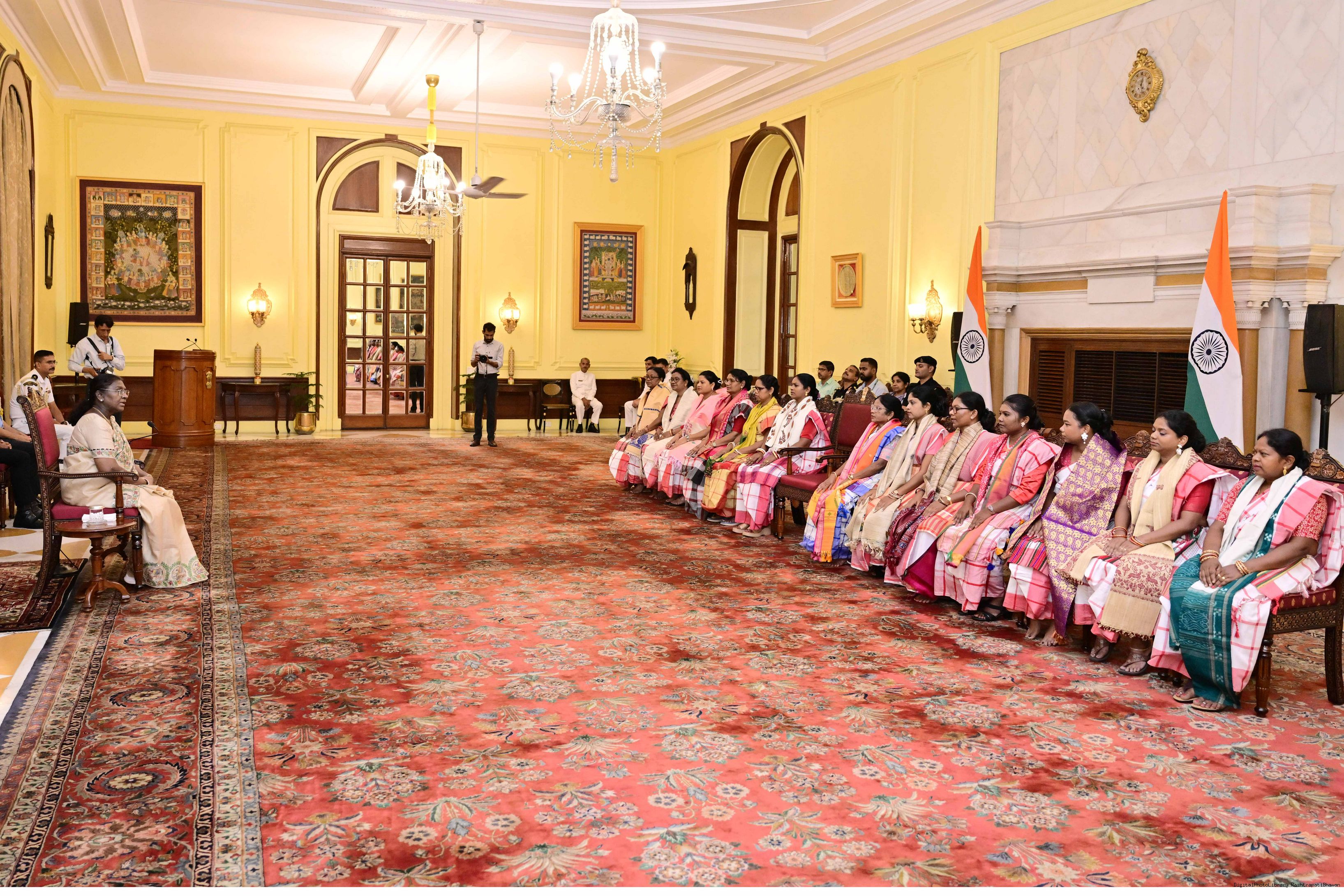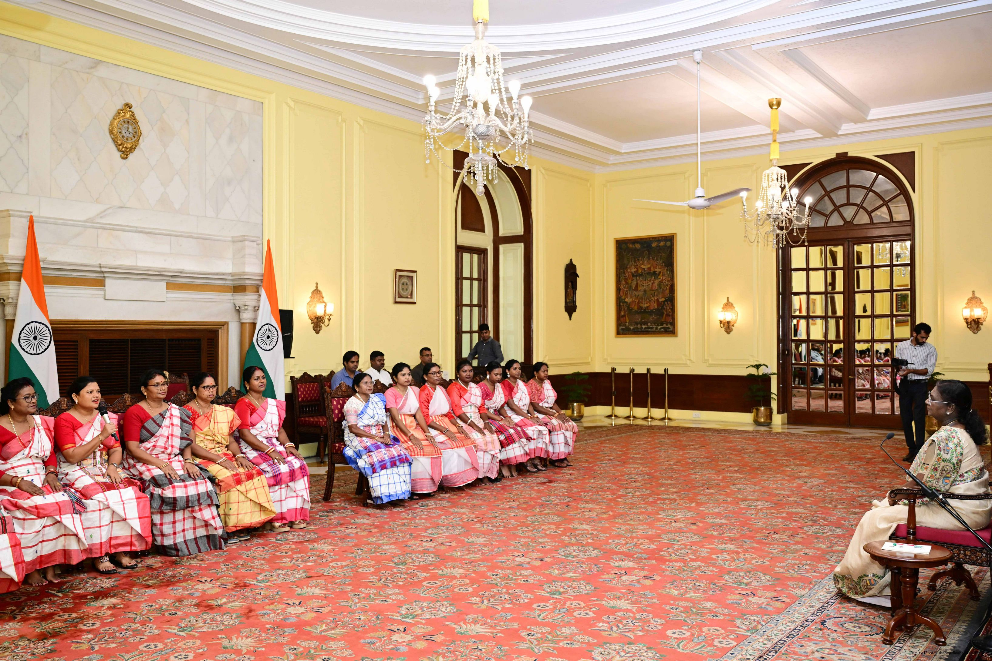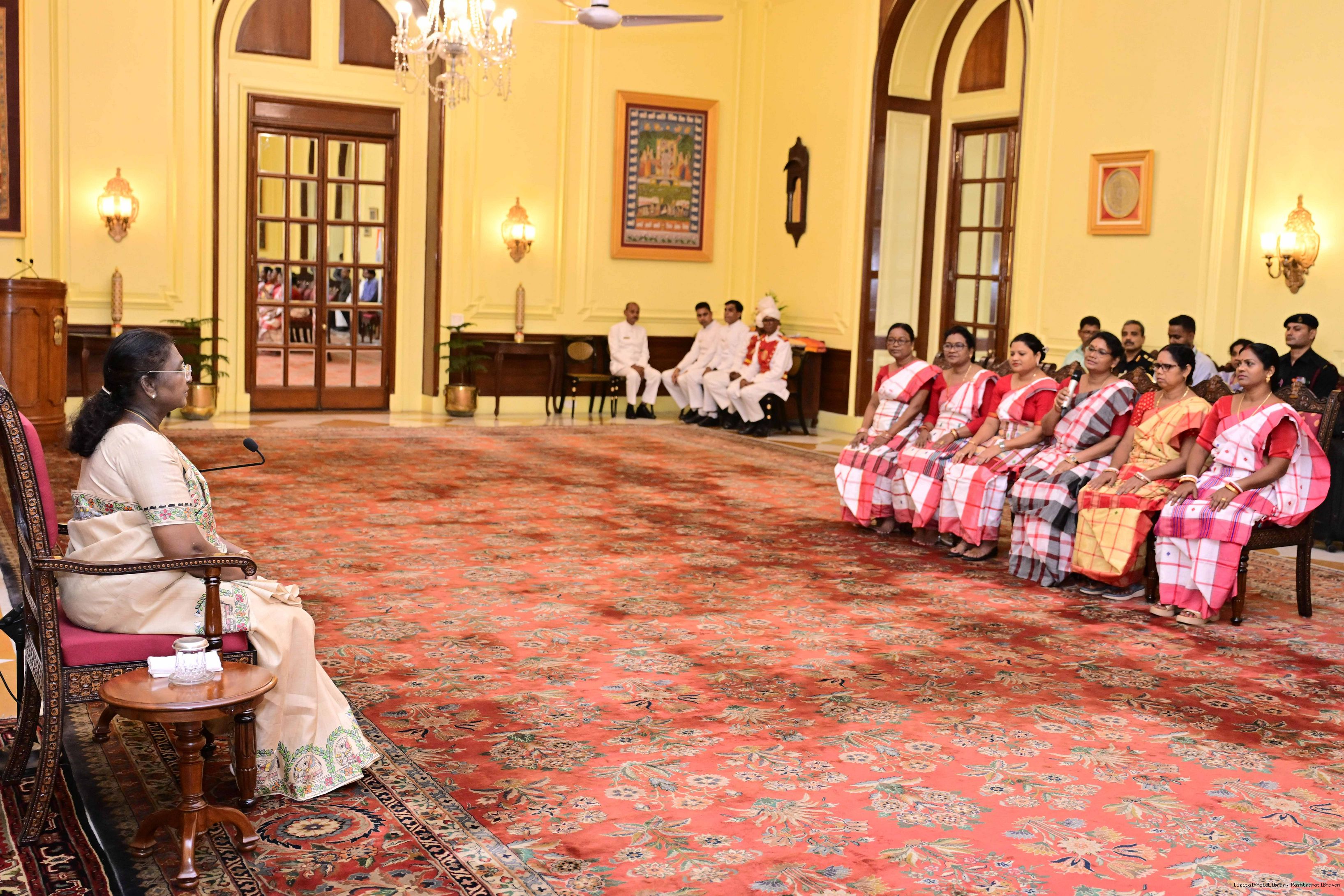 | Caption: | Dr. Damayanti Beshra along with Ms. Joba Mrumu, Ms. Tala Tudu and others from Women's Wing of the AISWA and the Jaher Than Committee, Karandih, Jamshedpur meeting the President of India, Smt Droupadi Murmu at Rashtrapati Bhavan on August 26, 2025. |
