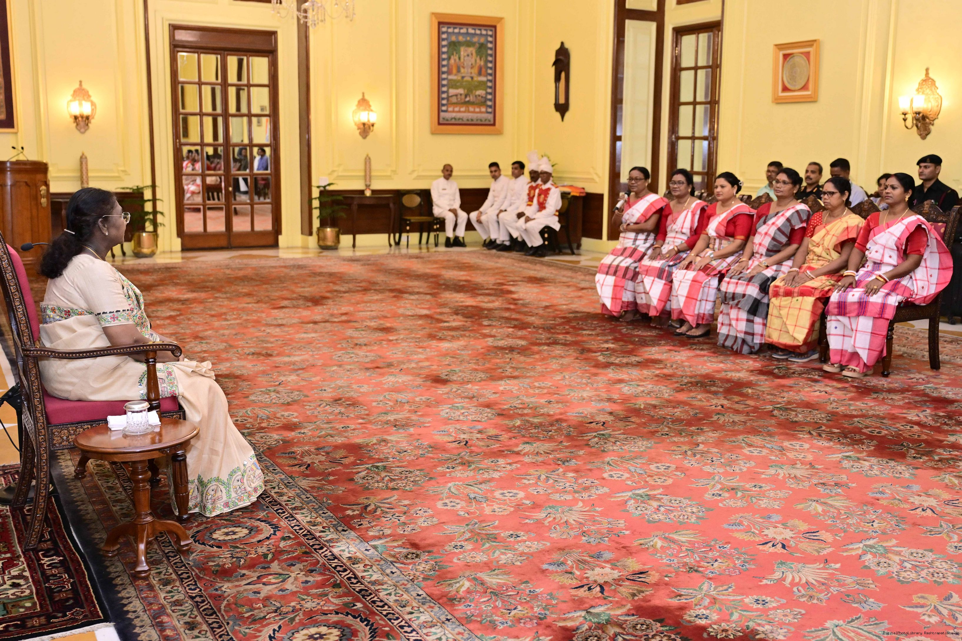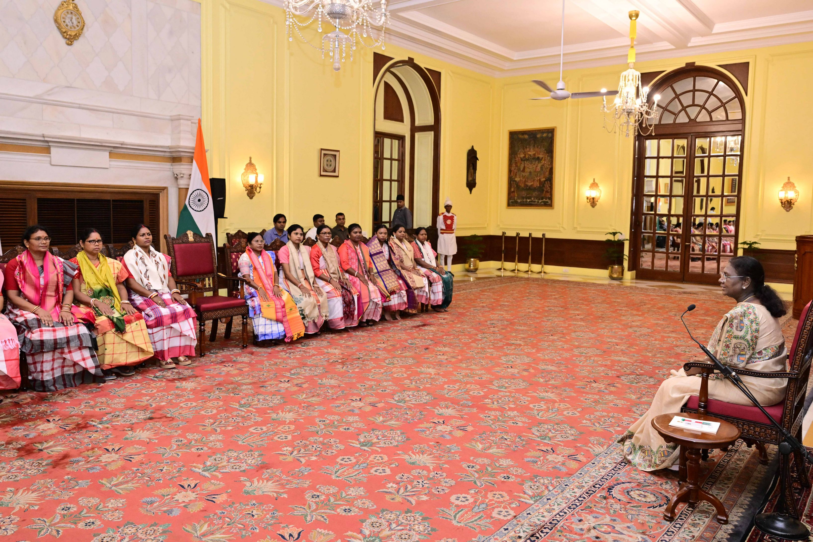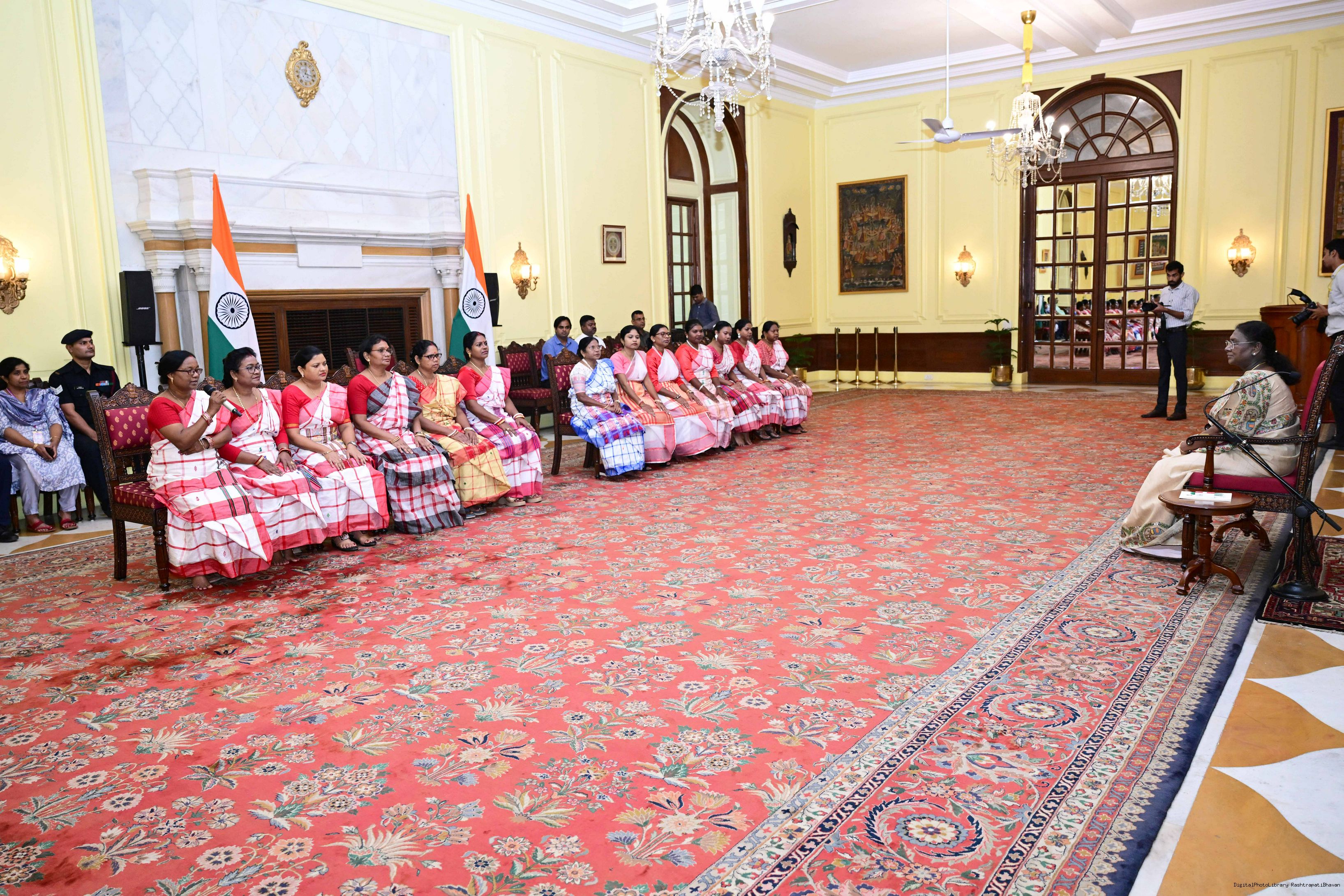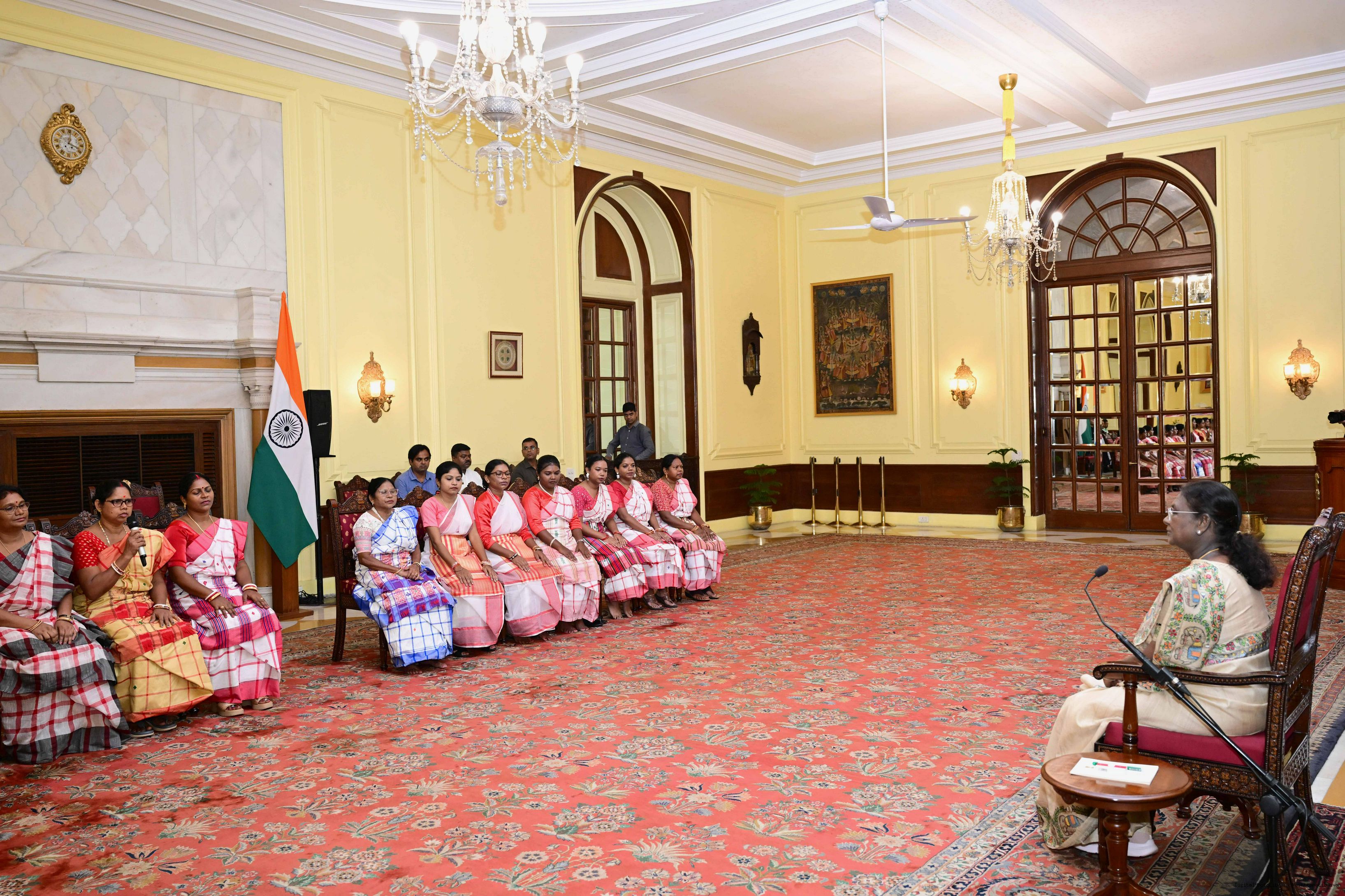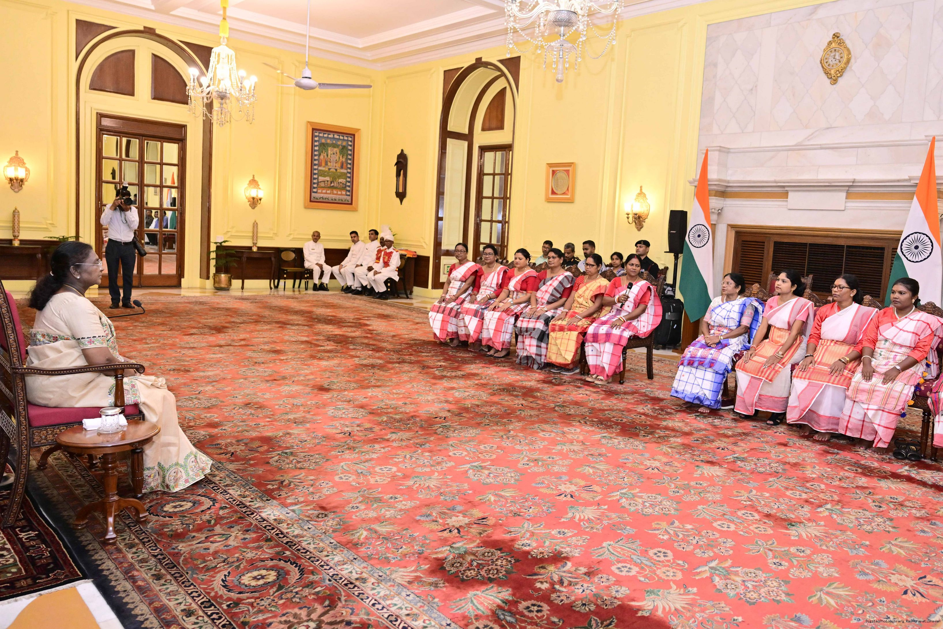 | Caption: | Dr. Damayanti Beshra along with Ms. Joba Mrumu, Ms. Tala Tudu and others from Women's Wing of the AISWA and the Jaher Than Committee, Karandih, Jamshedpur meeting the President of India, Smt Droupadi Murmu at Rashtrapati Bhavan on August 26, 2025. |