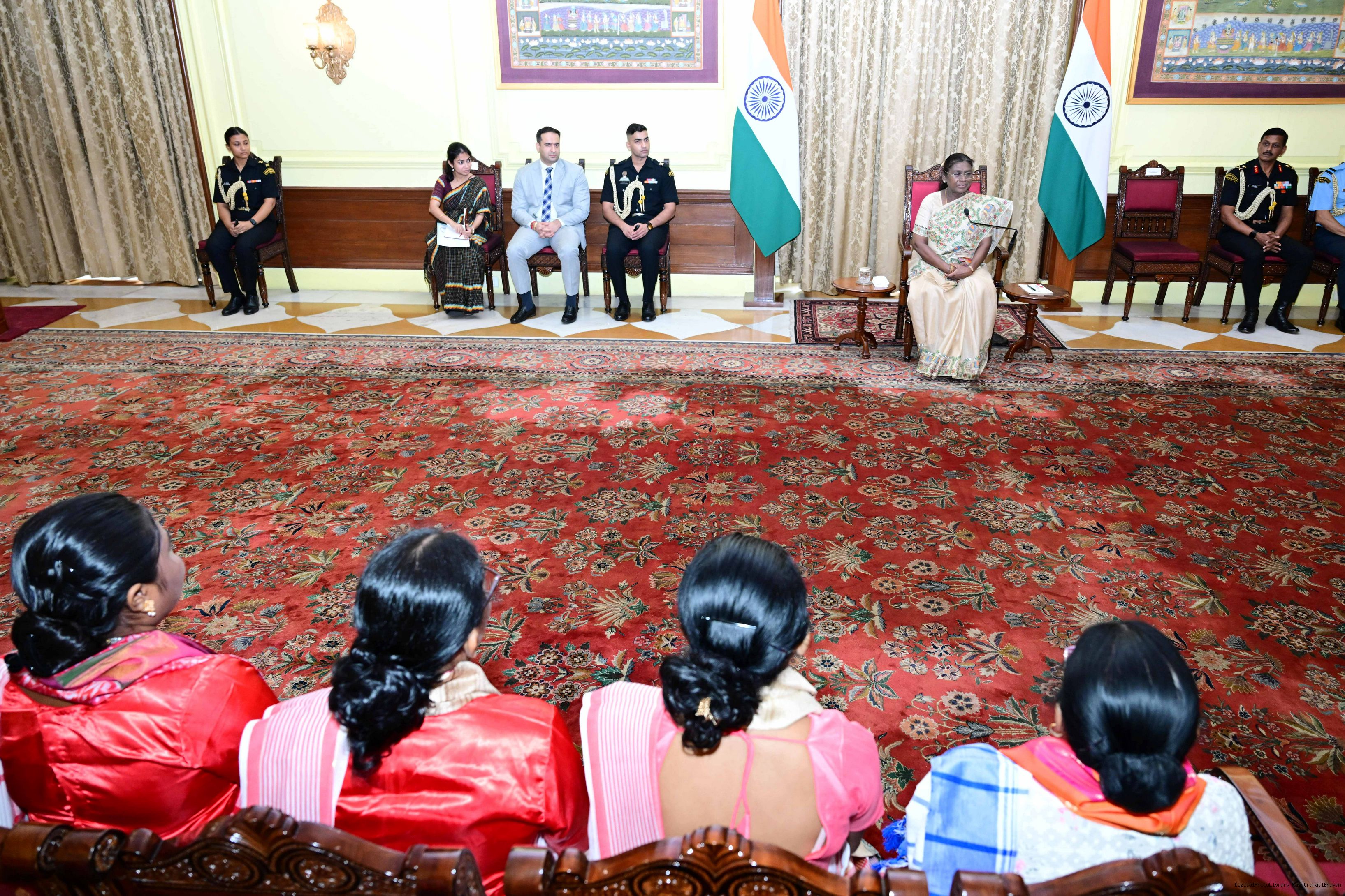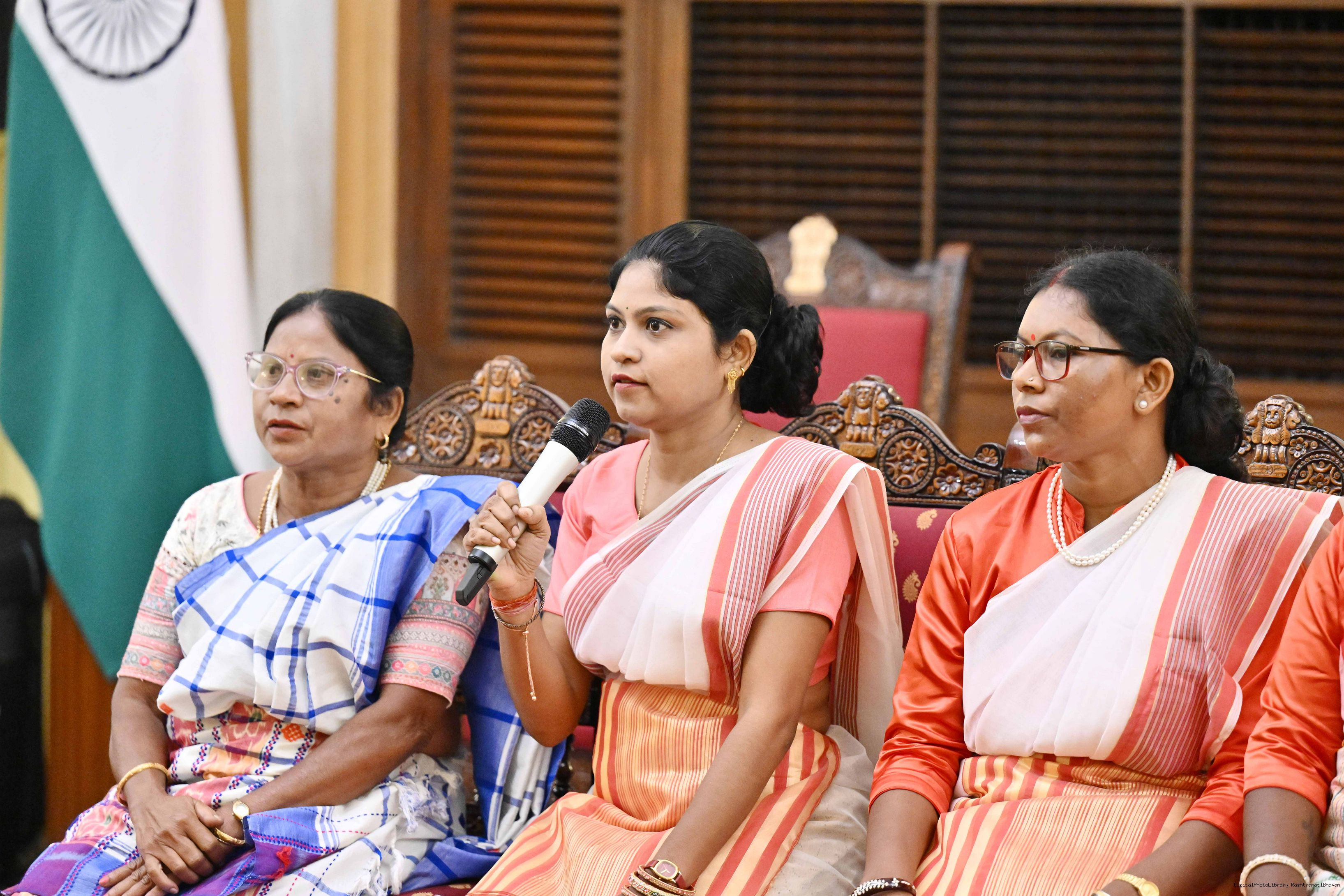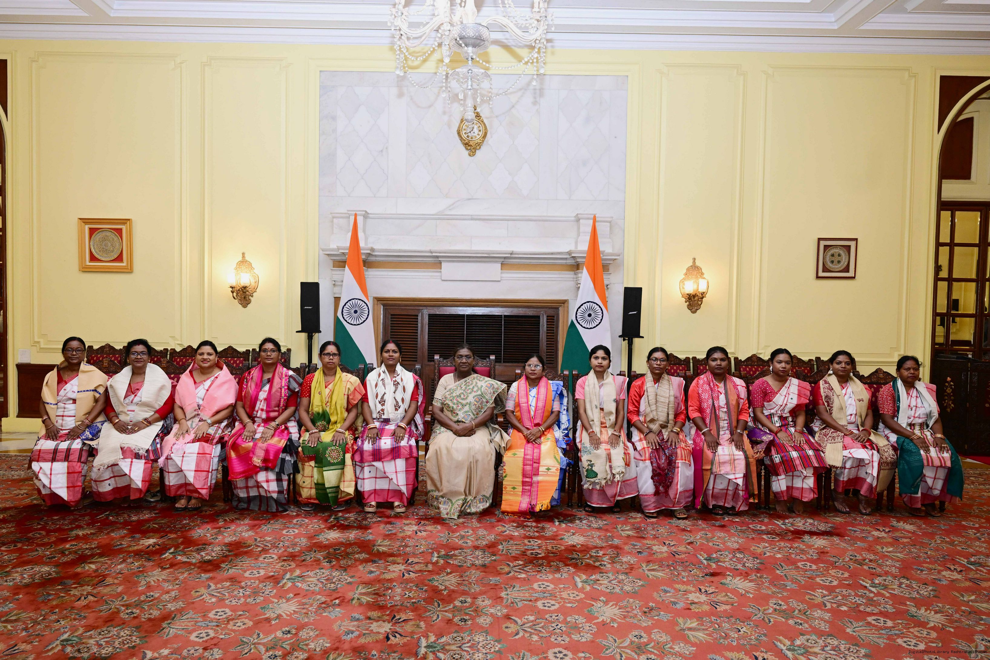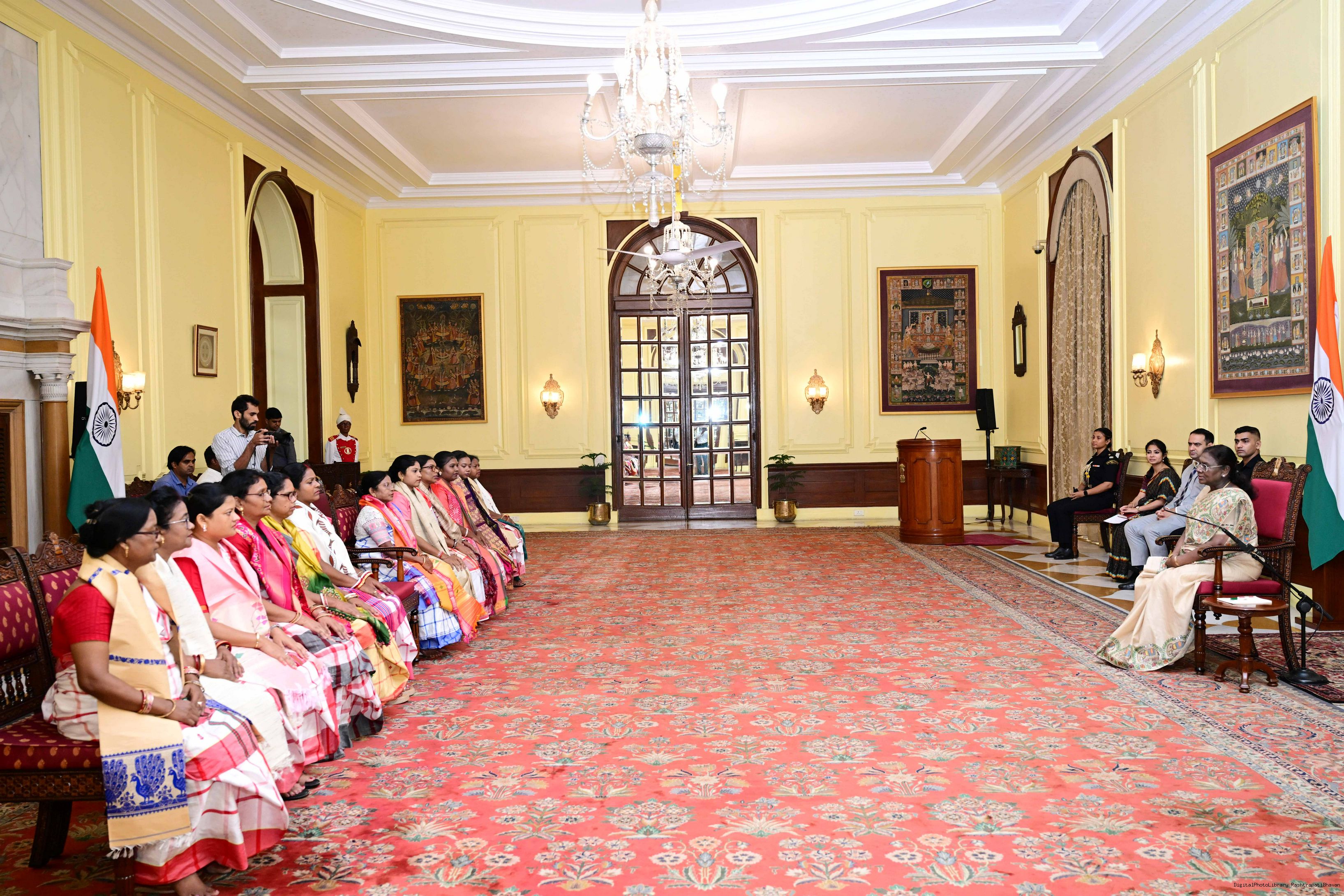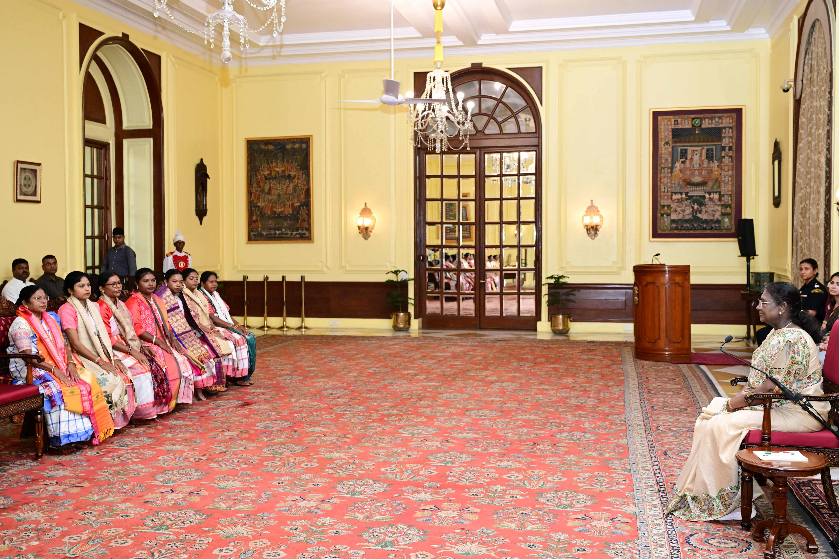 | Caption: | Dr. Damayanti Beshra along with Ms. Joba Mrumu, Ms. Tala Tudu and others from Women's Wing of the AISWA and the Jaher Than Committee, Karandih, Jamshedpur meeting the President of India, Smt Droupadi Murmu at Rashtrapati Bhavan on August 26, 2025. |