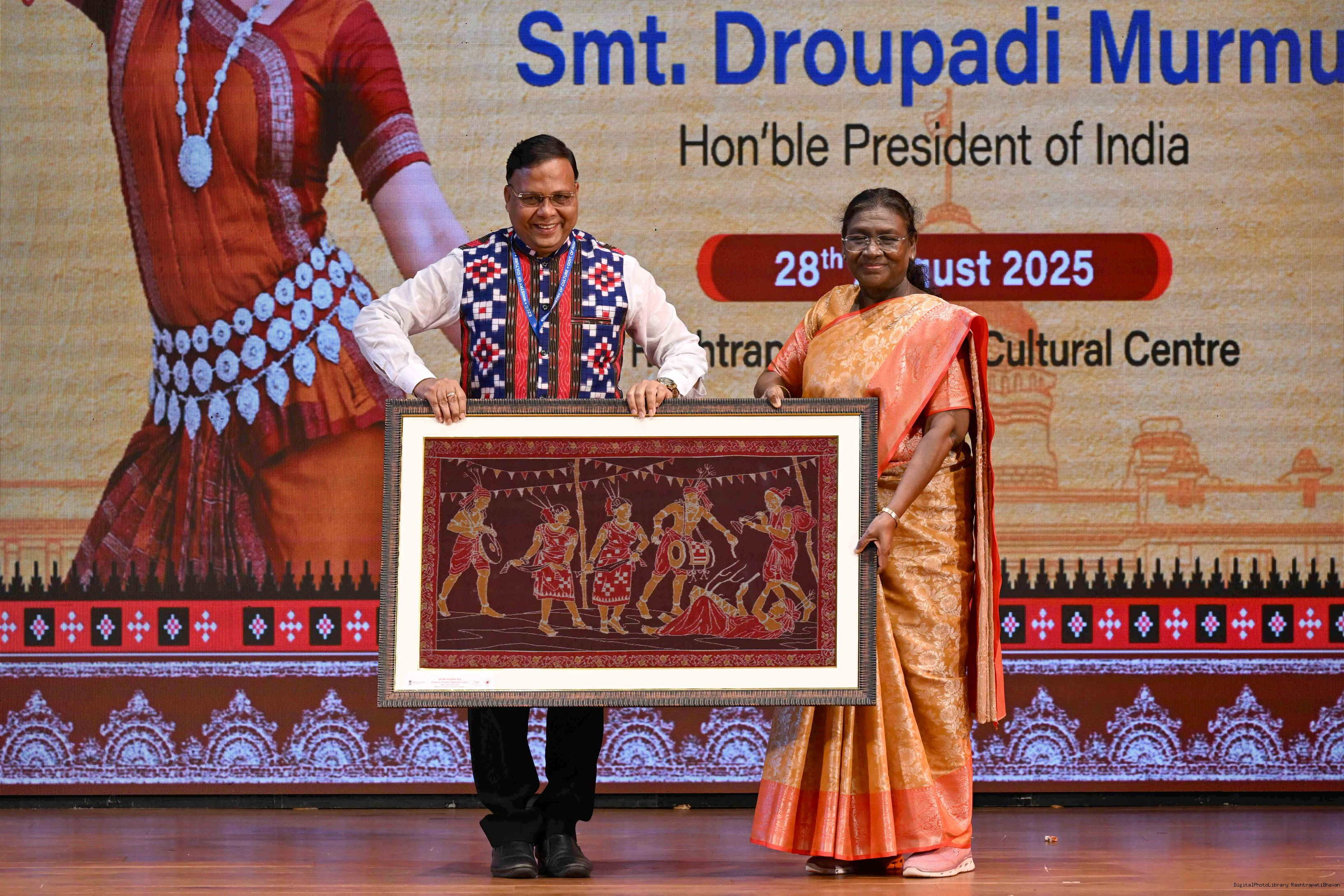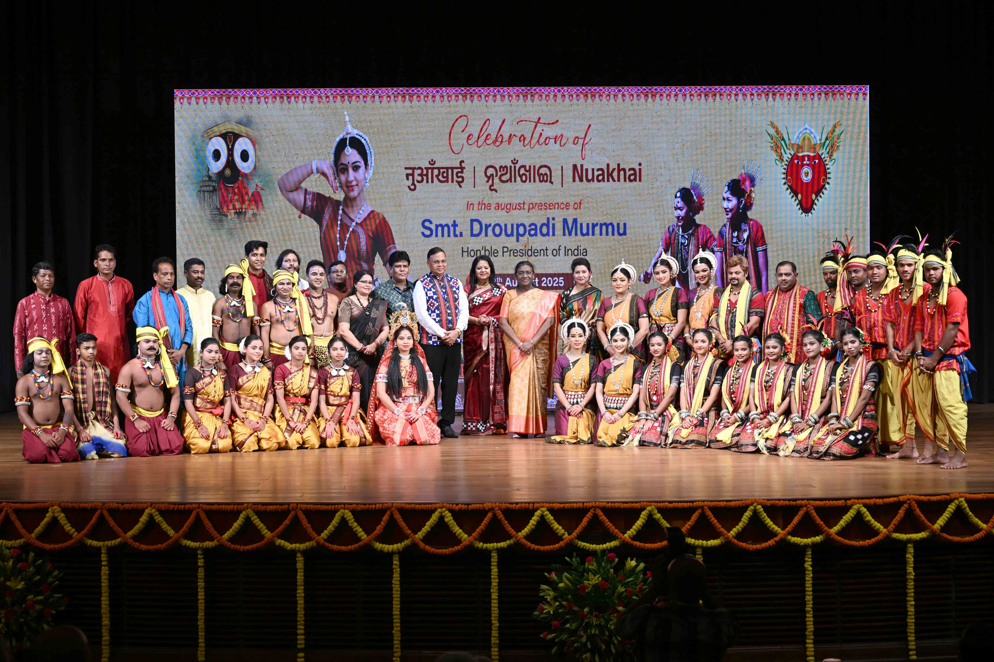 | Caption: | The President of India, Smt Droupadi Murmu witnessed a cultural event at Rashtrapati Bhavan on the occasion of the Nuakhai festival on August 28, 2025. |