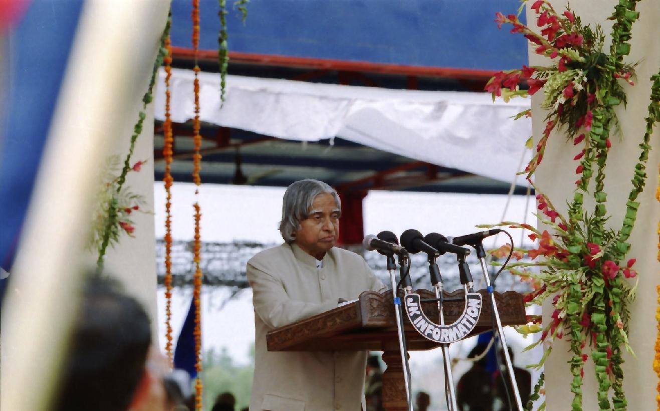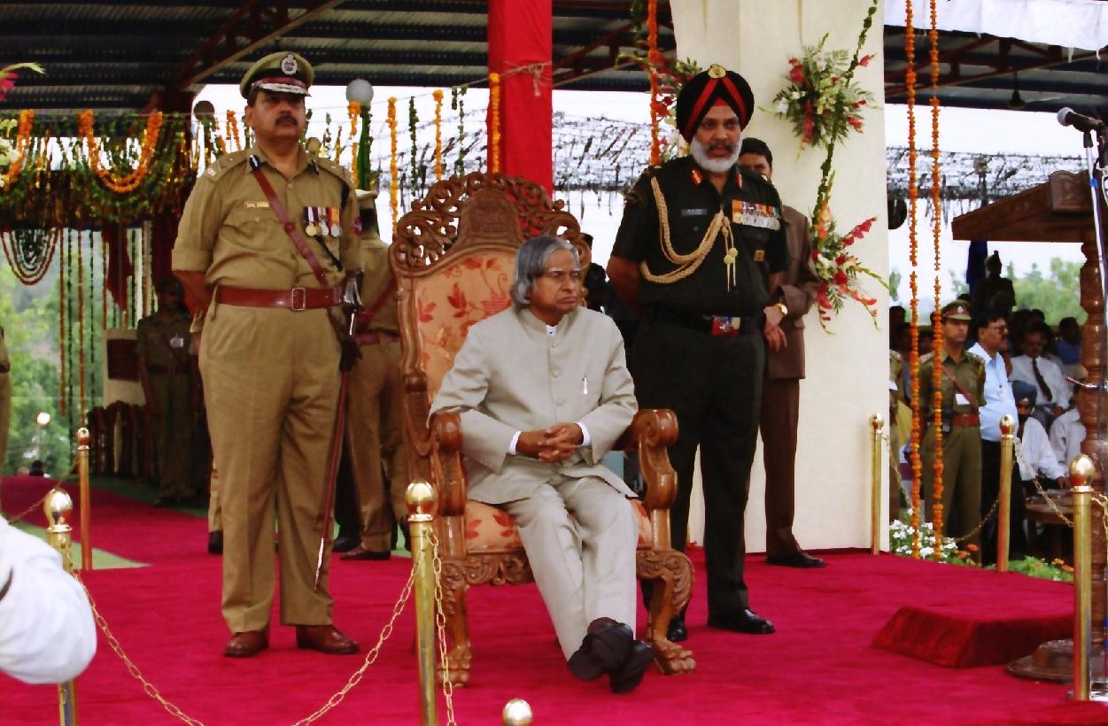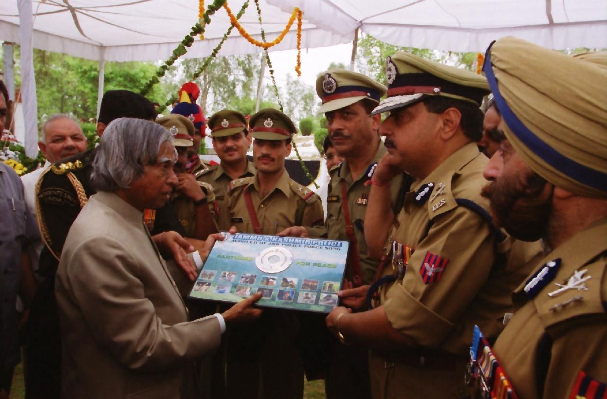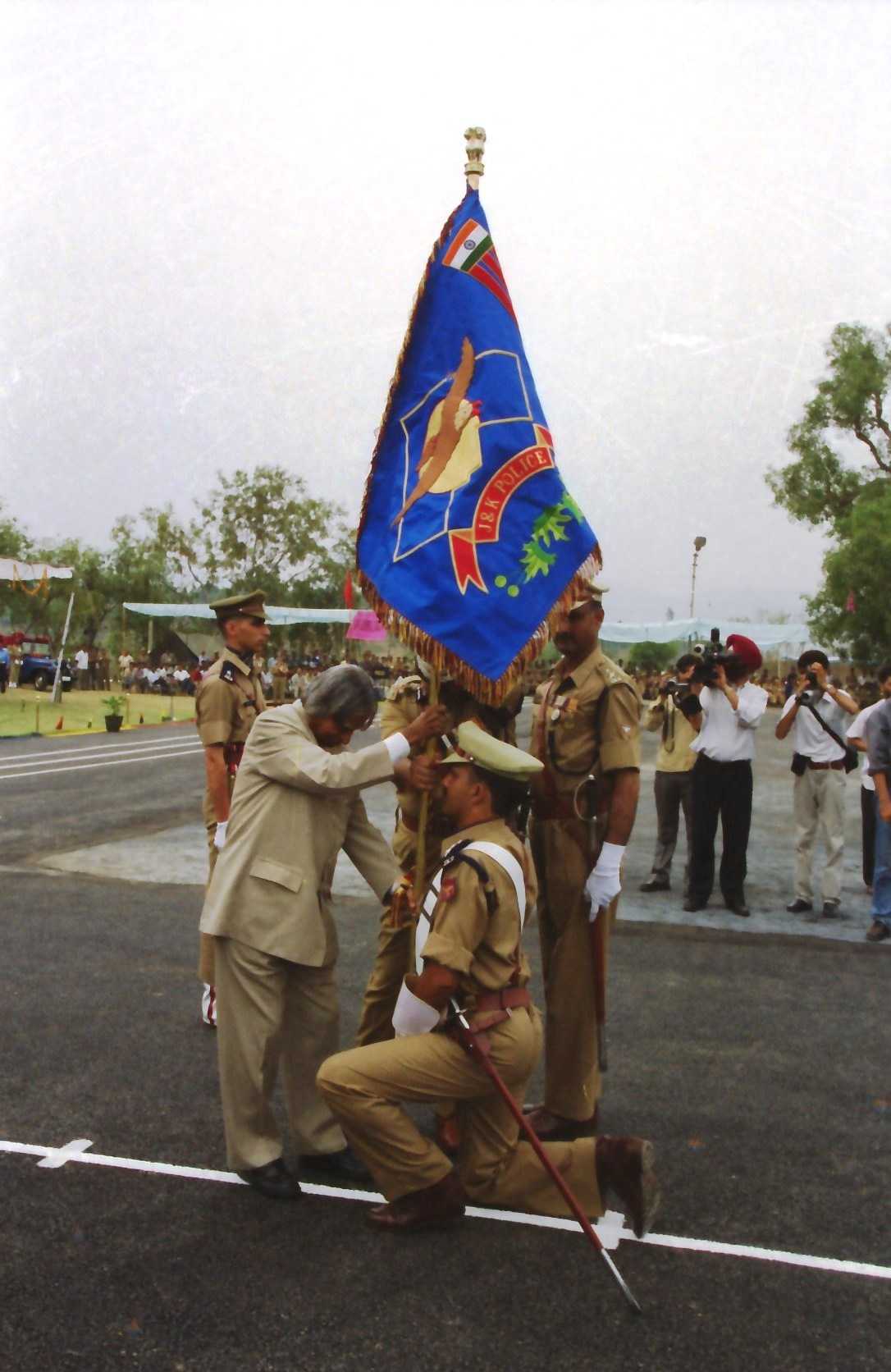 | Caption: | The President of India, Dr A P J Abdul Kalam during the Presentation of Colour to Jammu and Jammu Police at SK Police Academy at Udhampur in Jammu and Kashmir on June 26, 2003 |