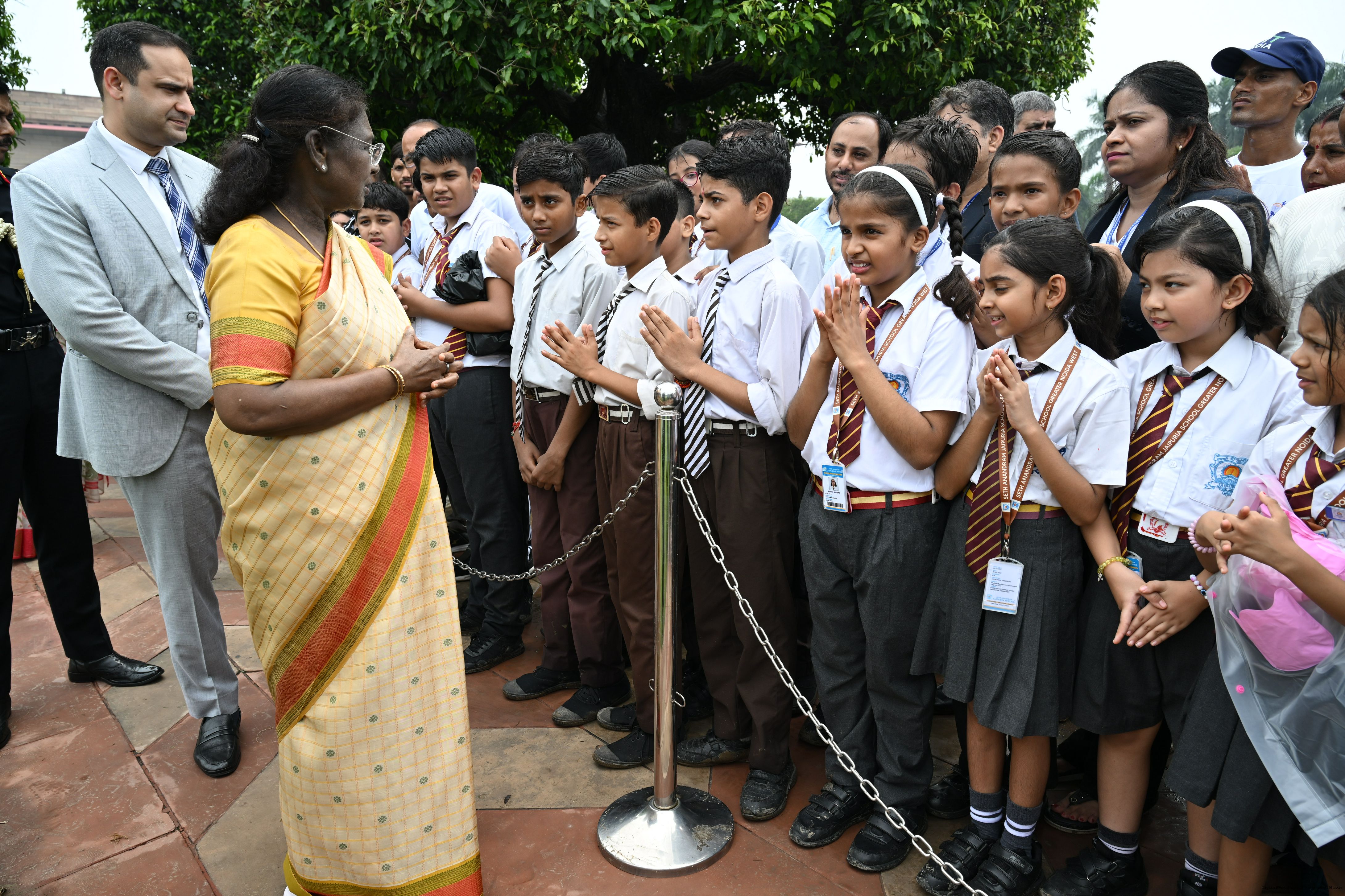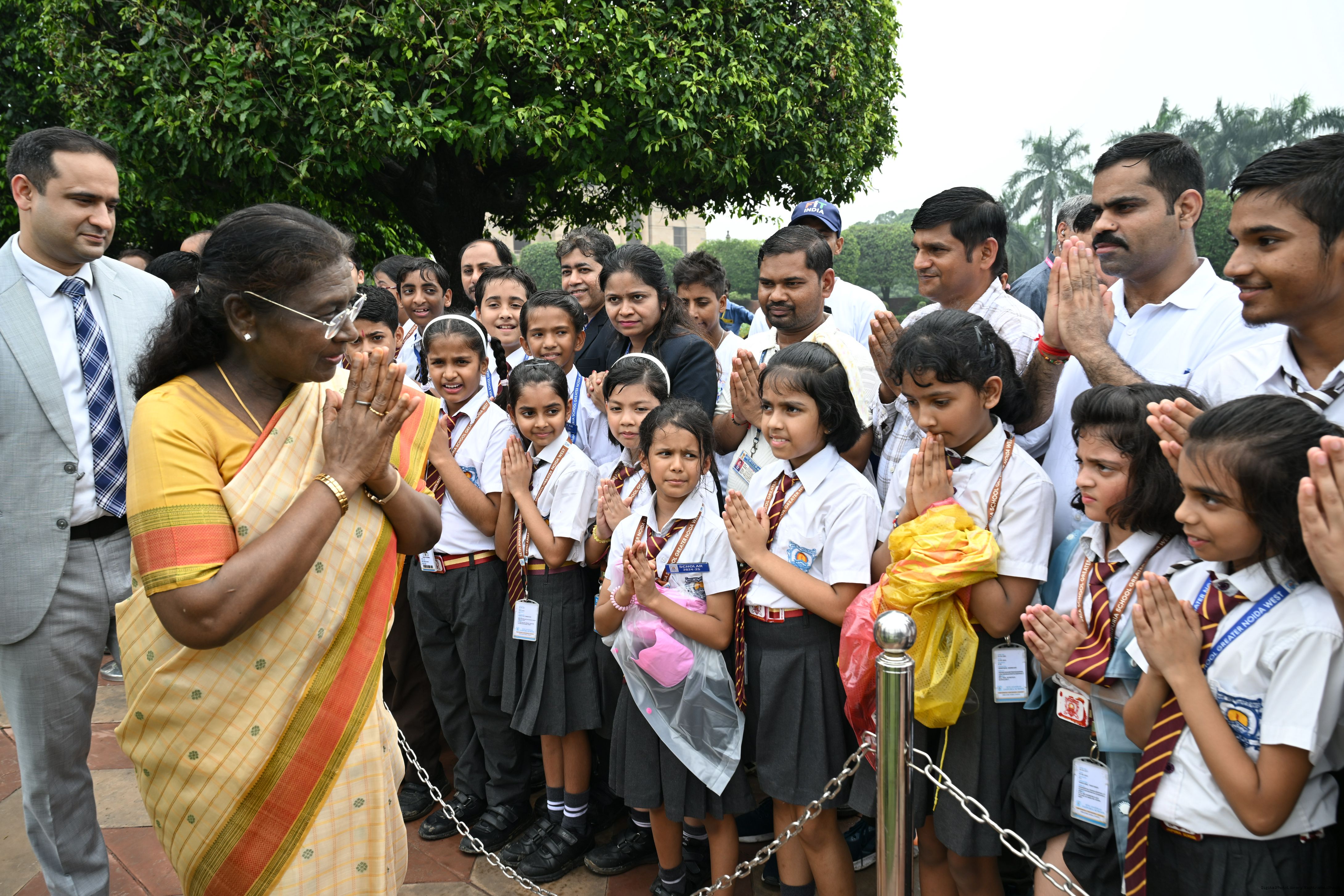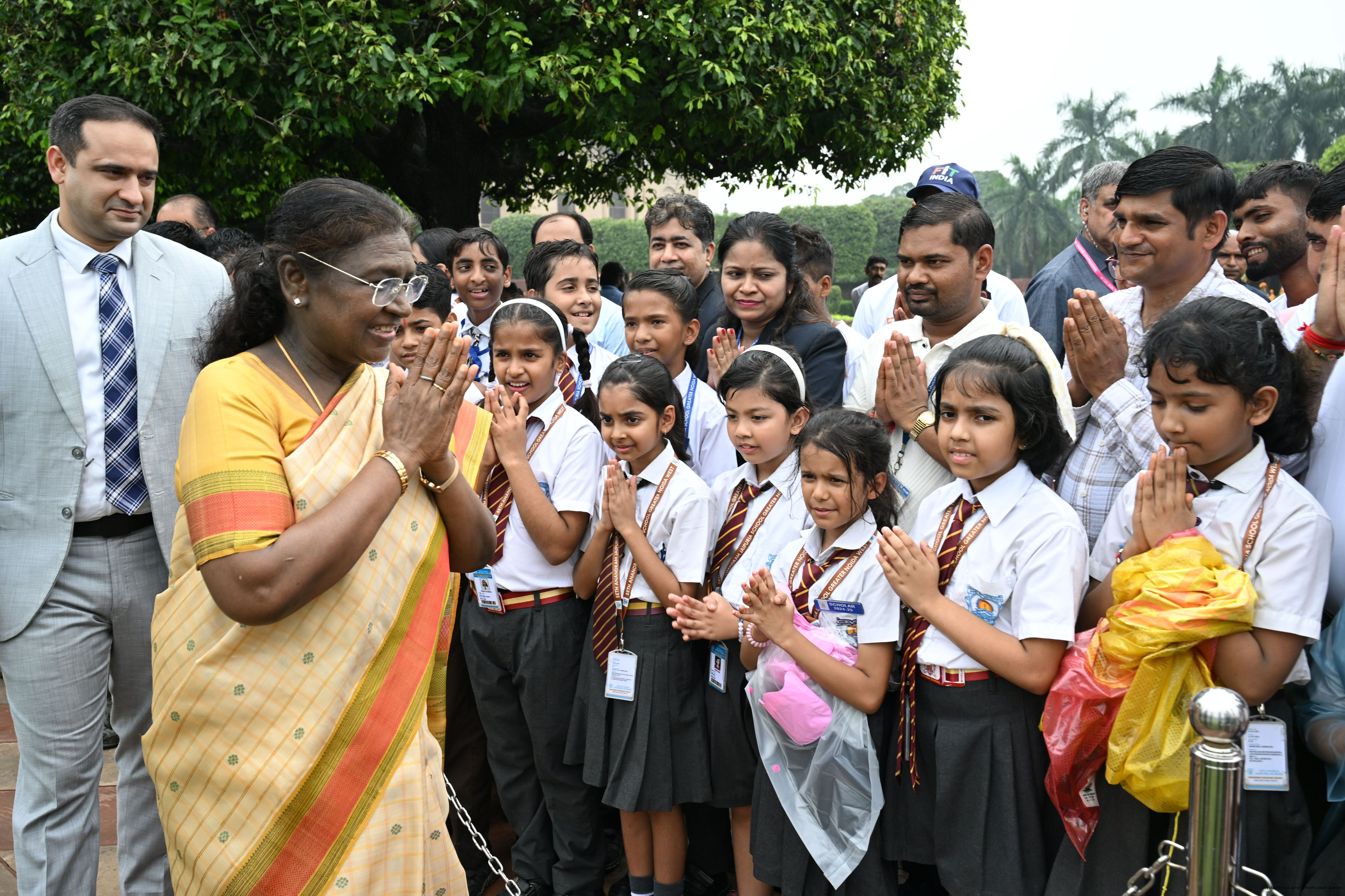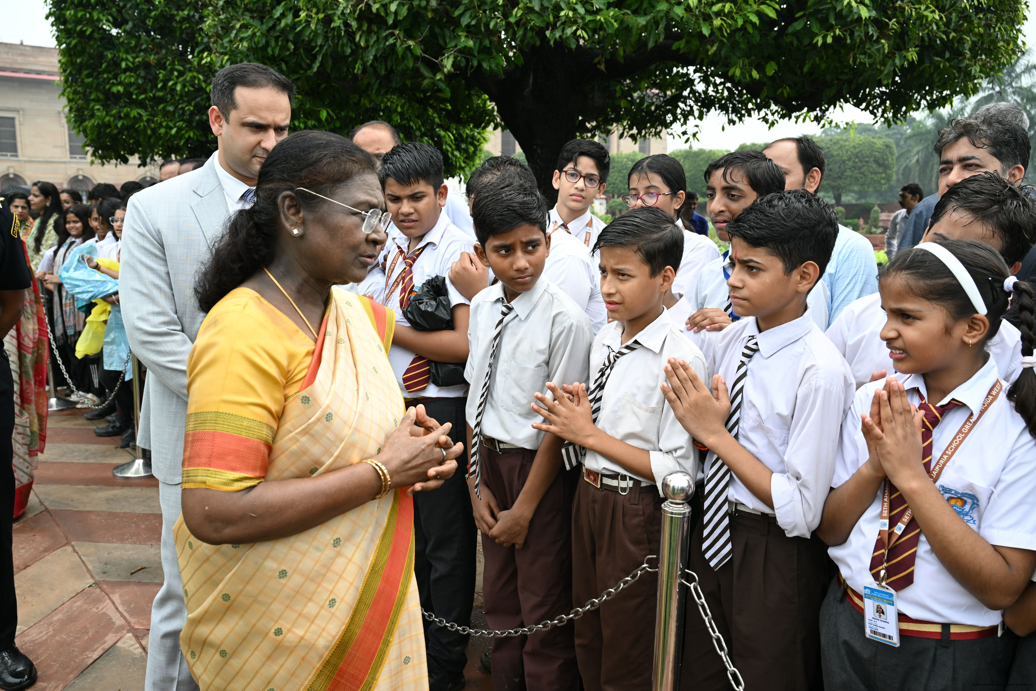 | Caption: | The President of India, Smt Droupadi Murmu interacted with sportspersons who visited Amrit Udyan on National Sports Day at Rashtrapati Bhavan on August 29, 2025. |