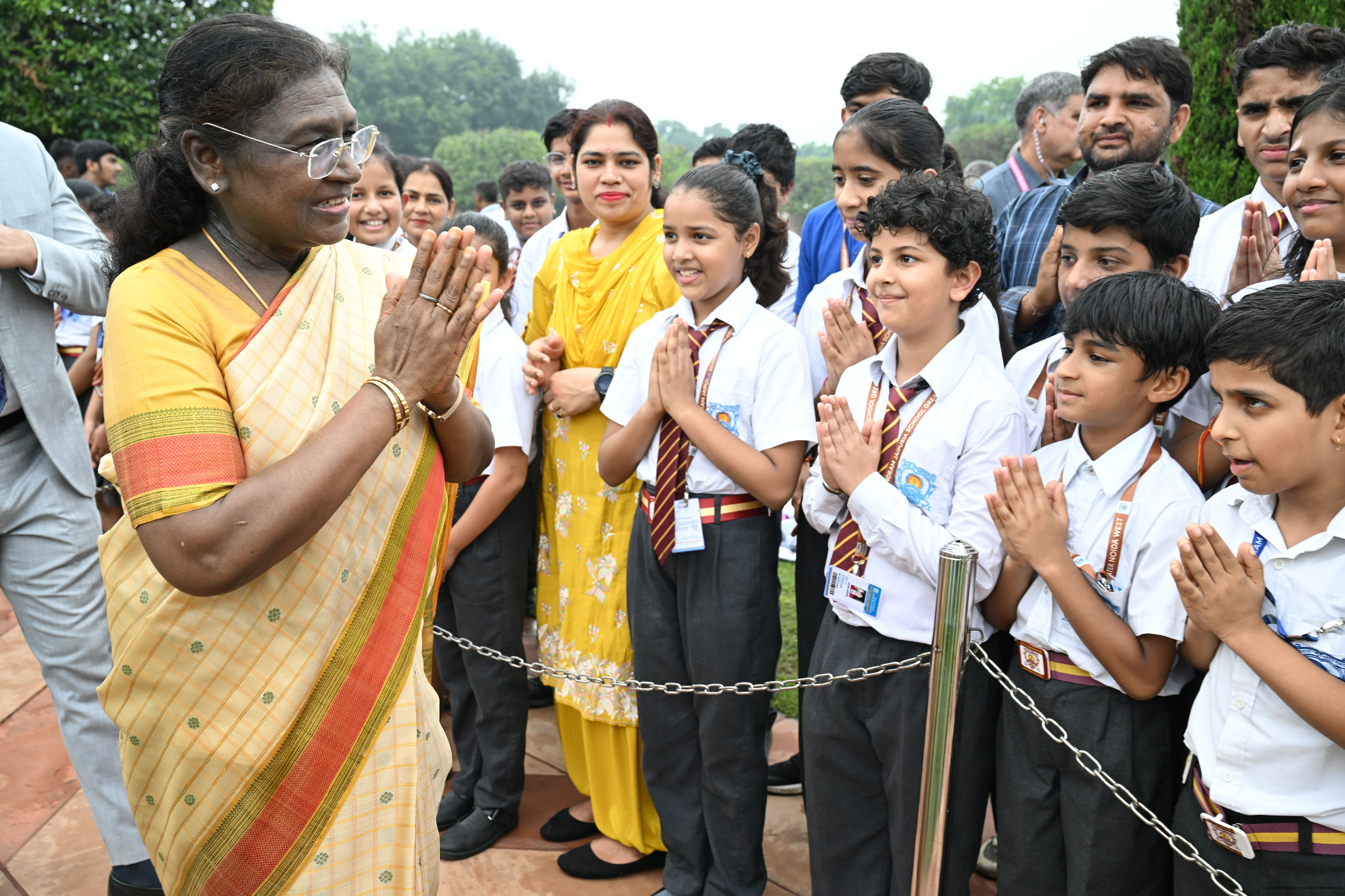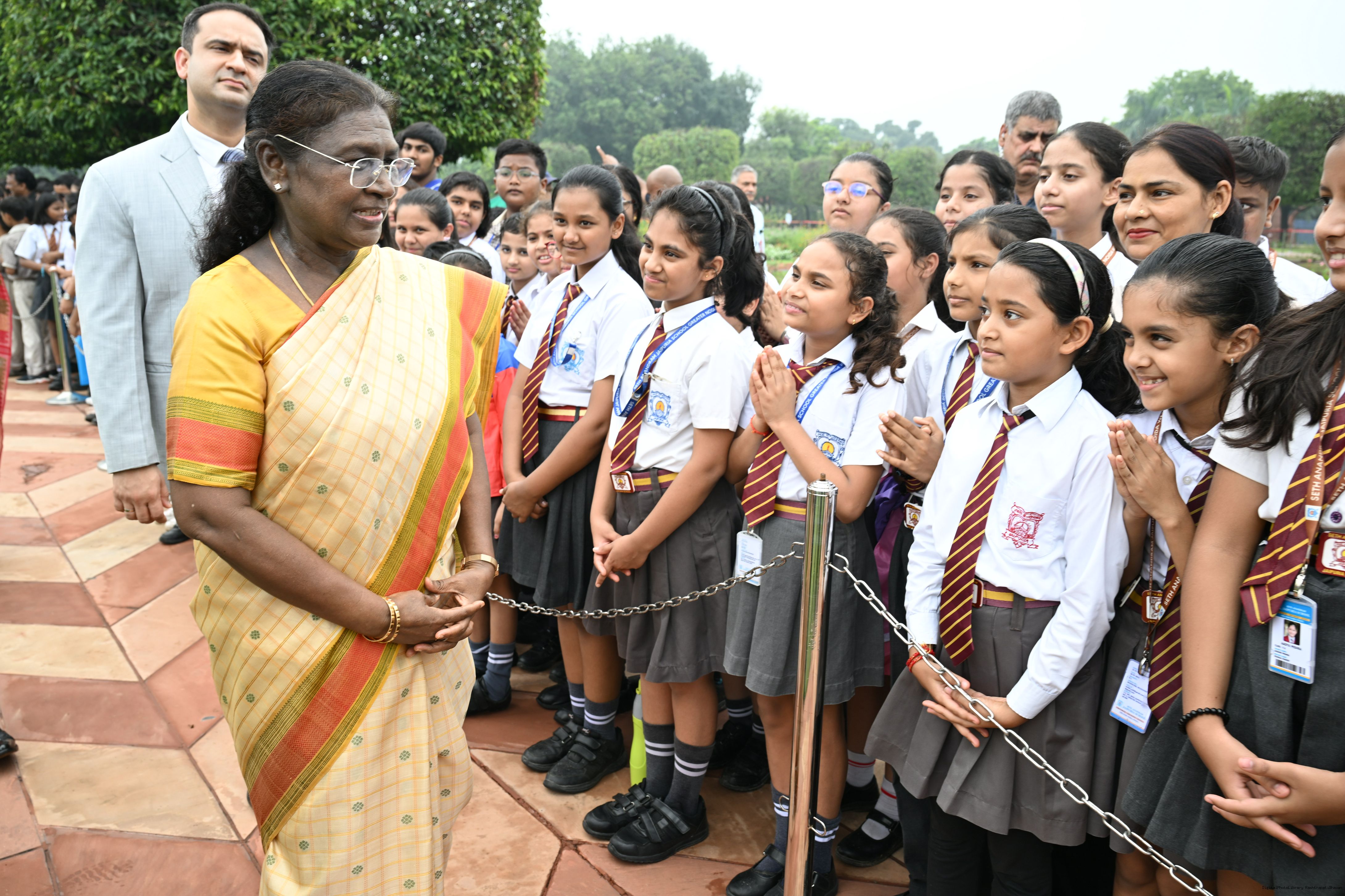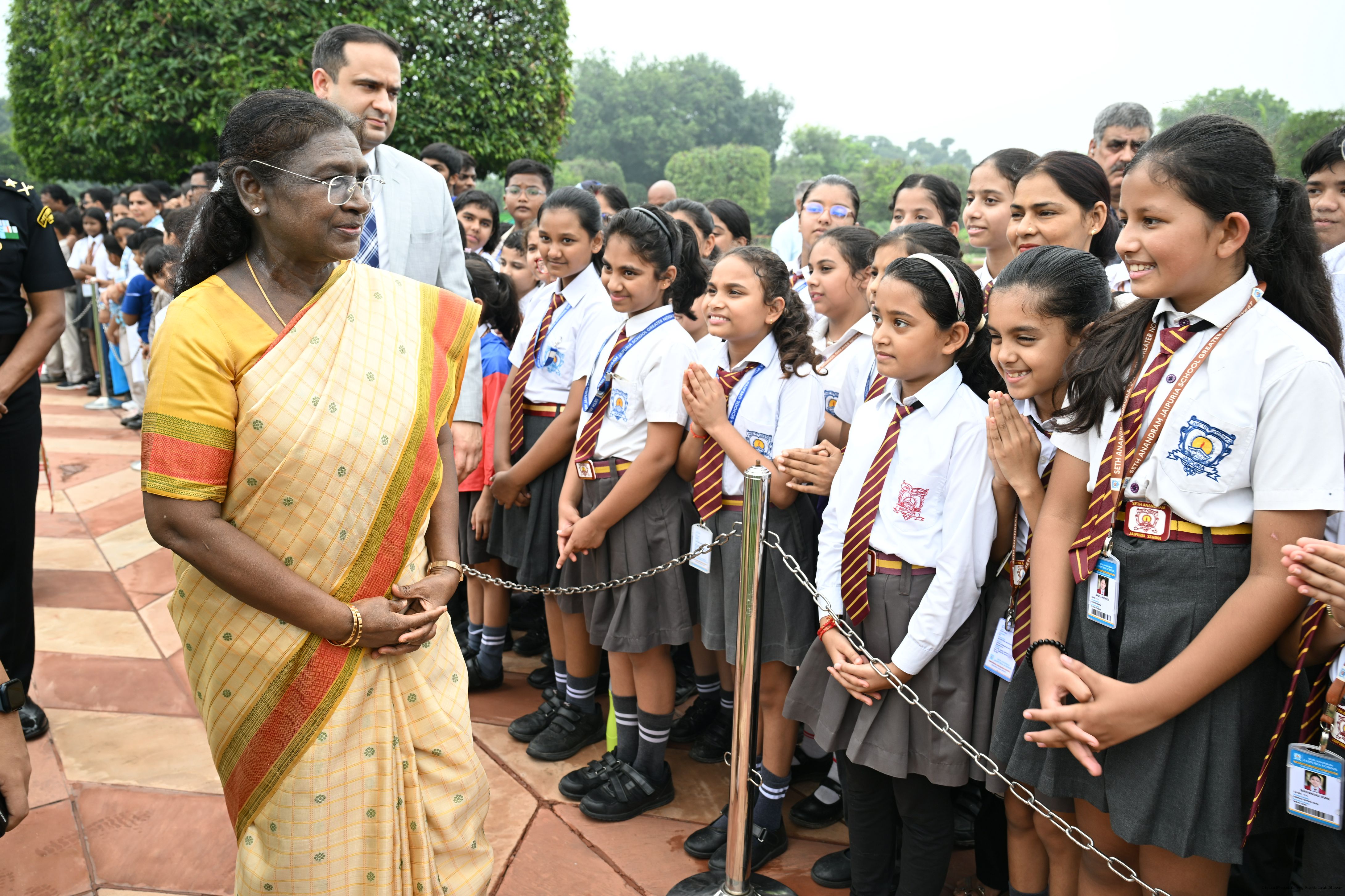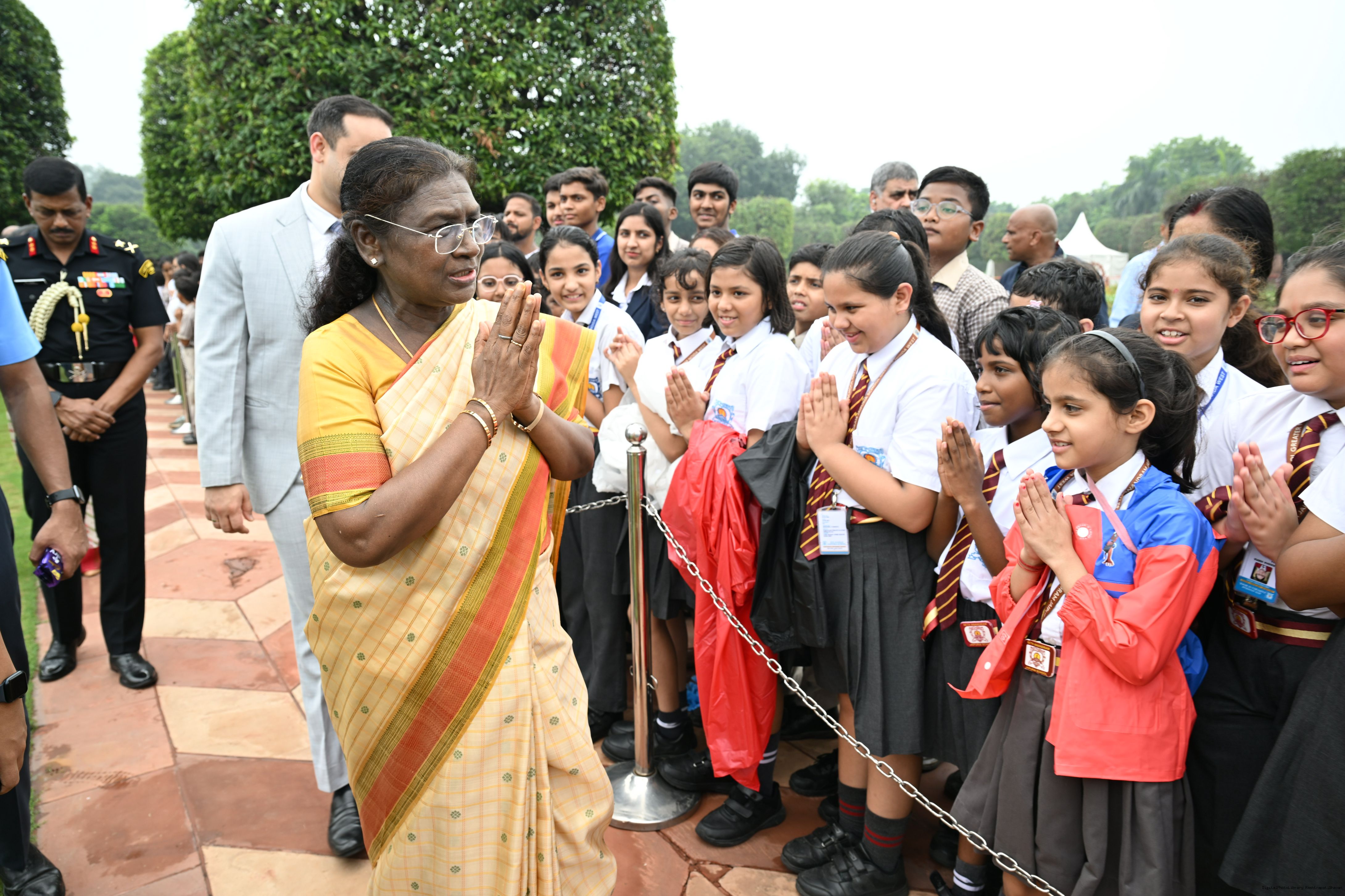 | Caption: | The President of India, Smt Droupadi Murmu interacted with sportspersons who visited Amrit Udyan on National Sports Day at Rashtrapati Bhavan on August 29, 2025. |