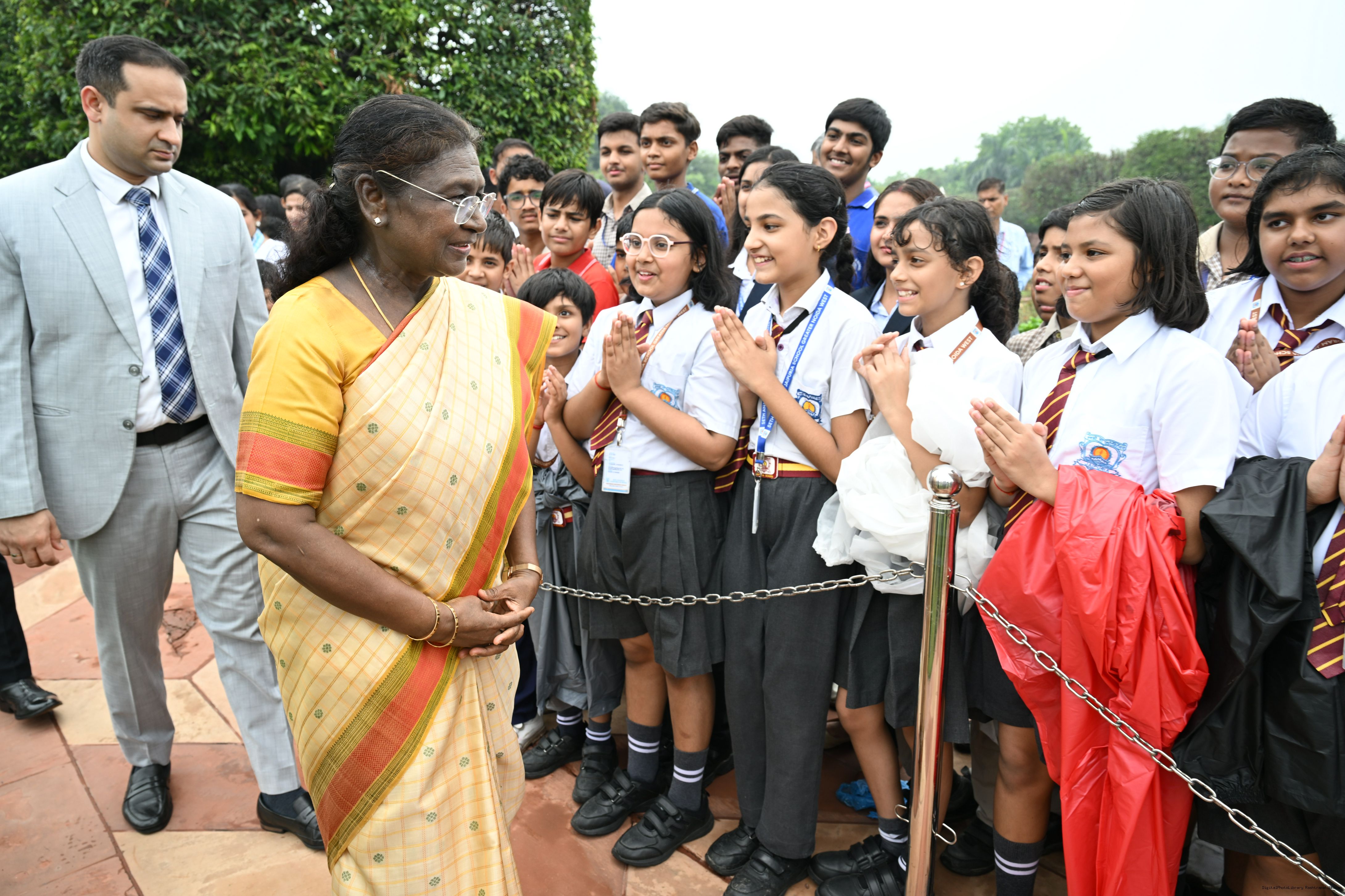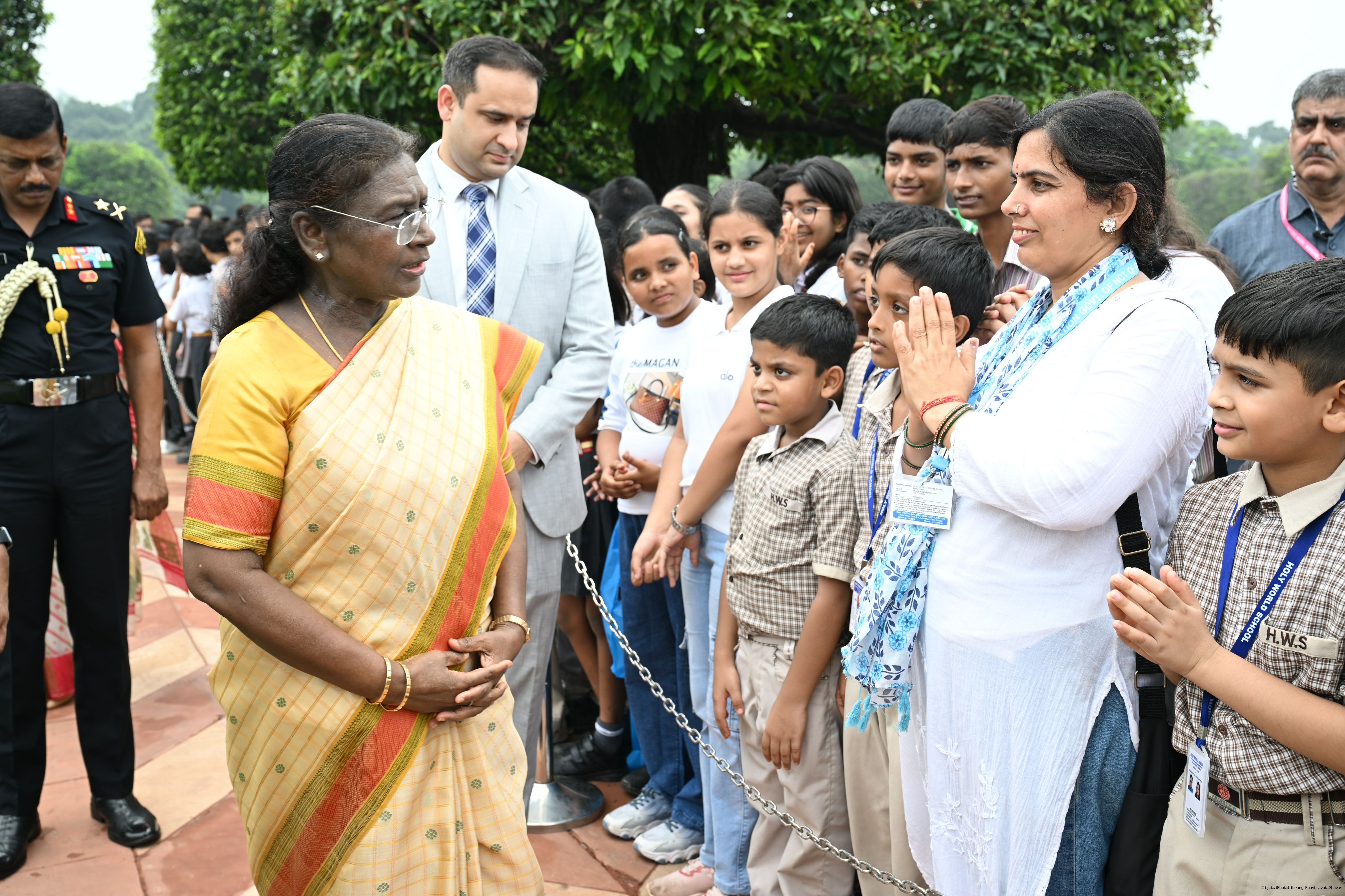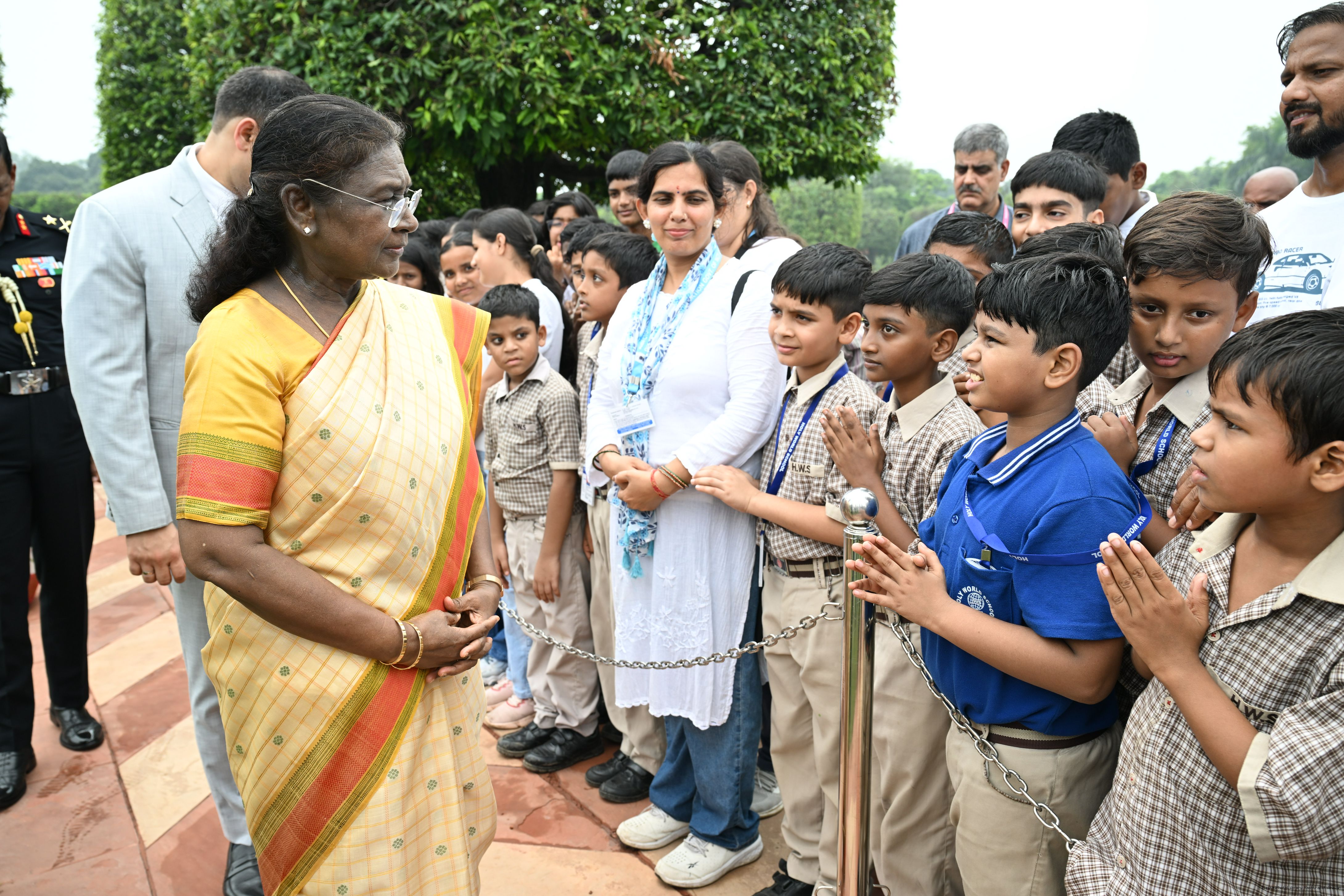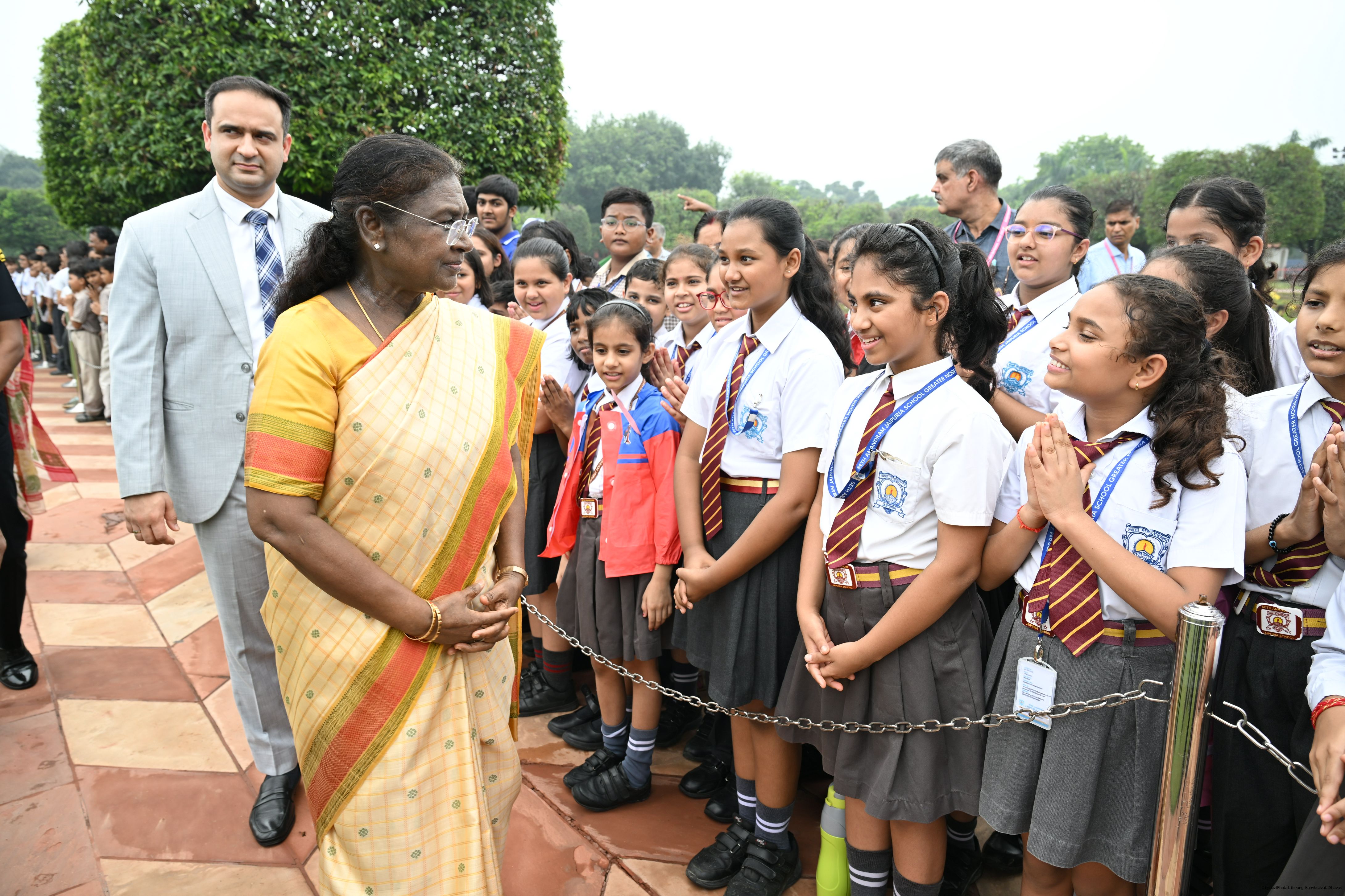 | Caption: | The President of India, Smt Droupadi Murmu interacted with sportspersons who visited Amrit Udyan on National Sports Day at Rashtrapati Bhavan on August 29, 2025. |