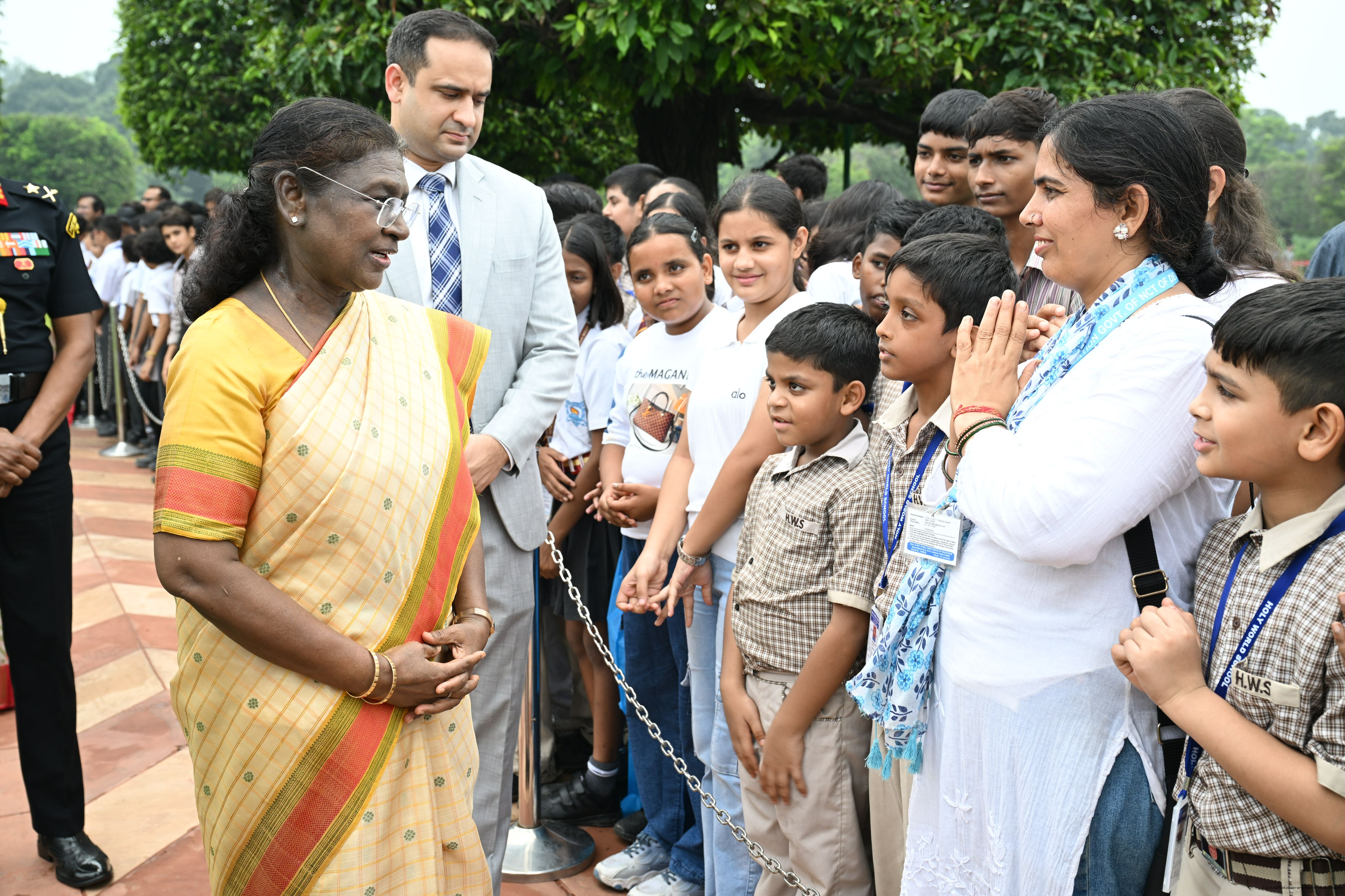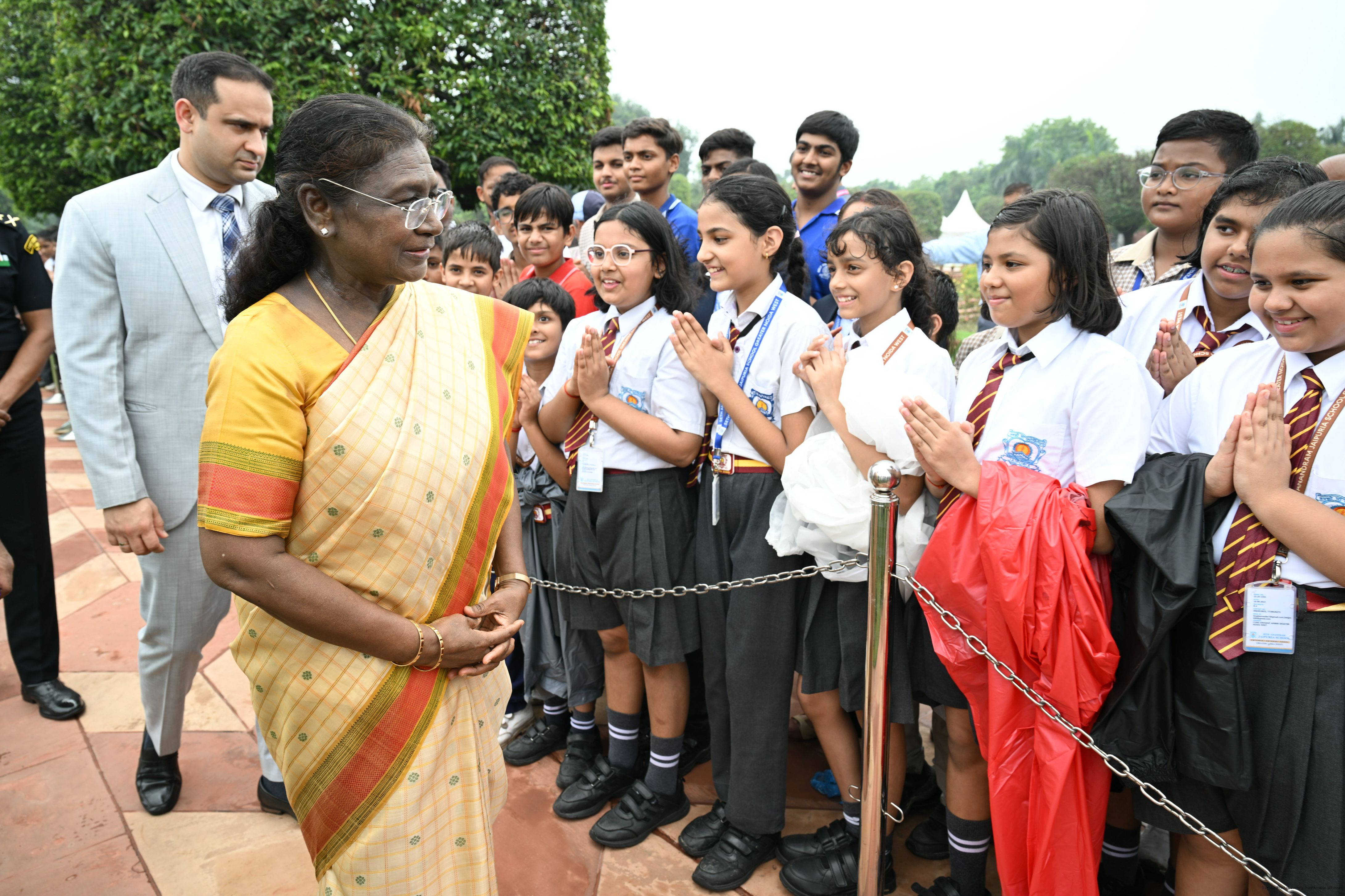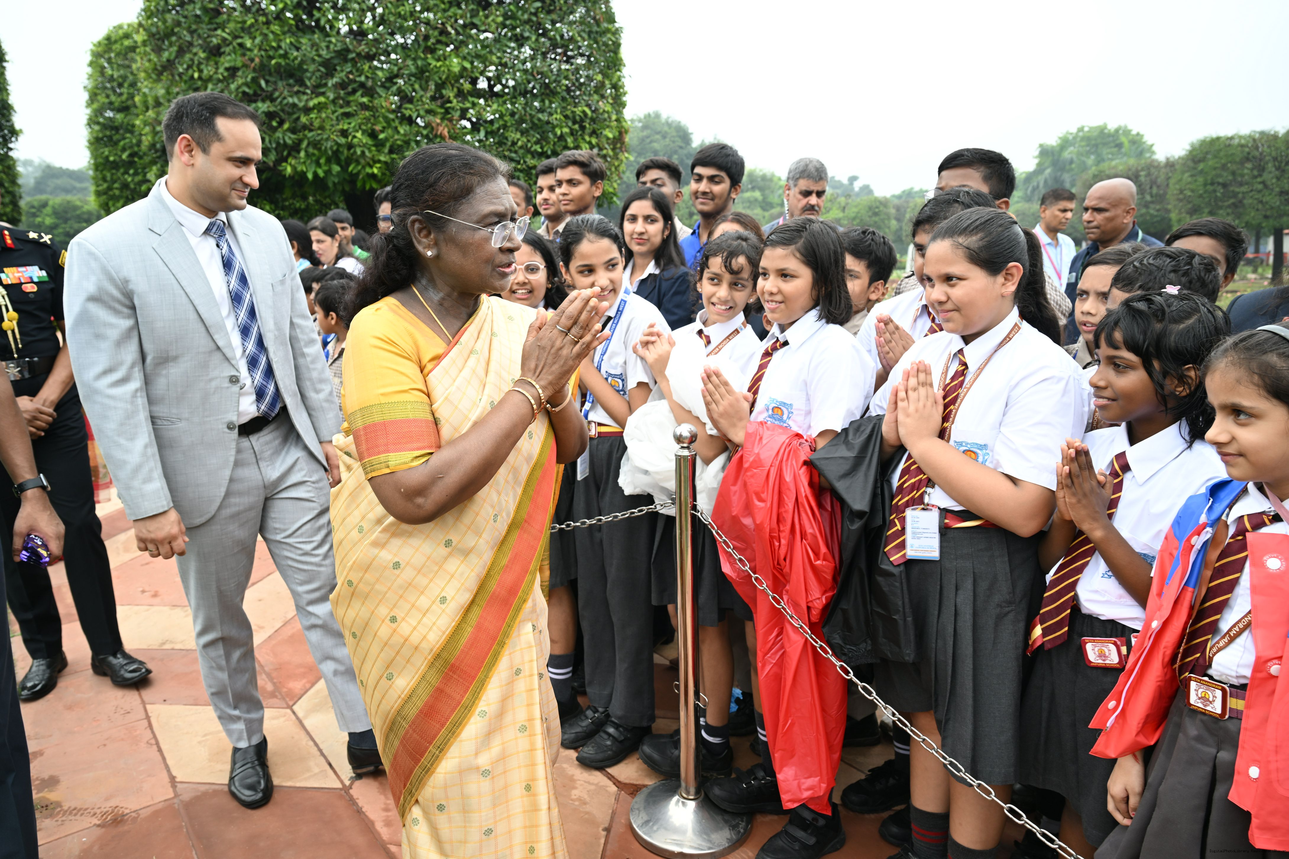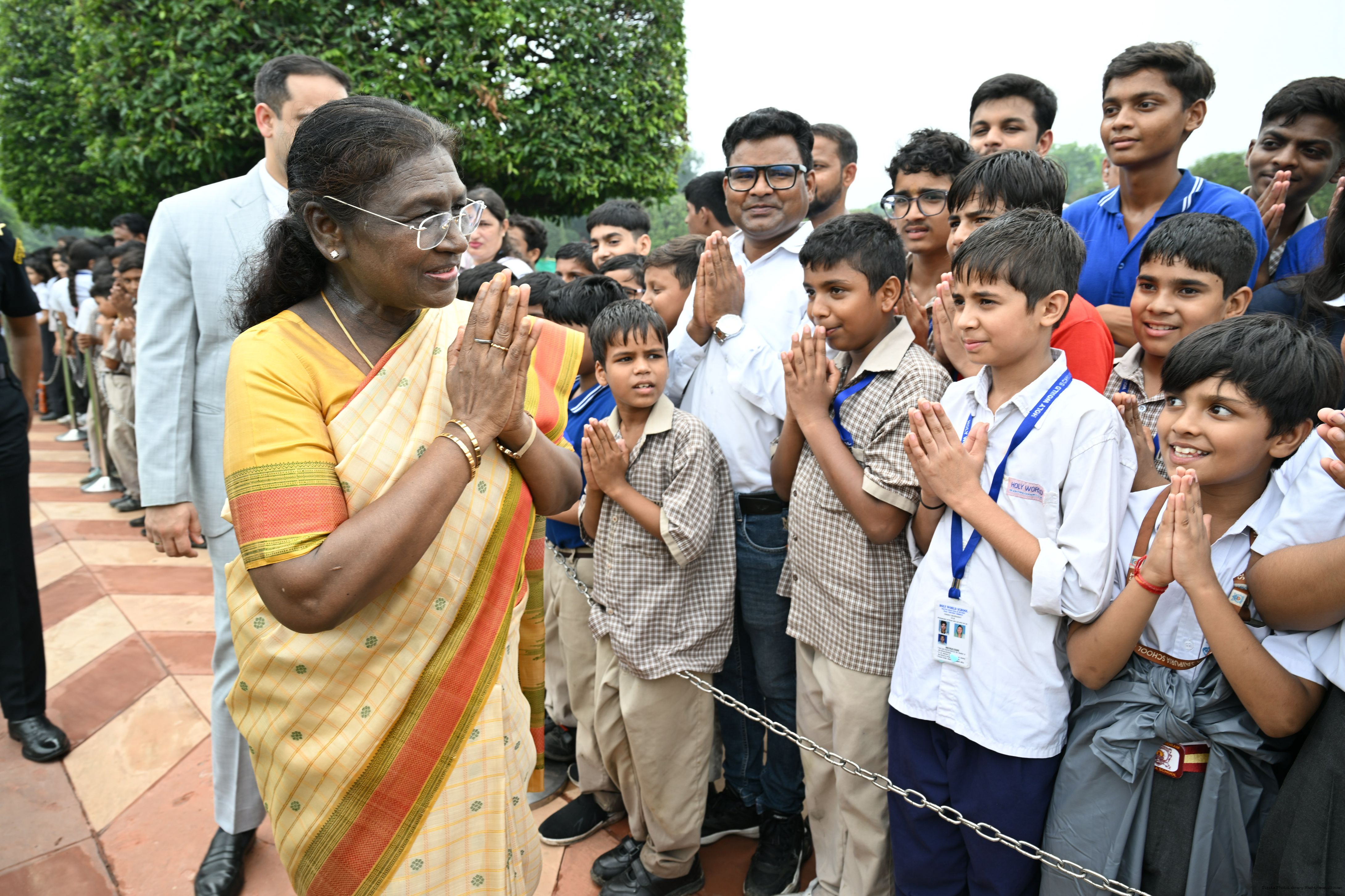 | Caption: | The President of India, Smt Droupadi Murmu interacted with sportspersons who visited Amrit Udyan on National Sports Day at Rashtrapati Bhavan on August 29, 2025. |