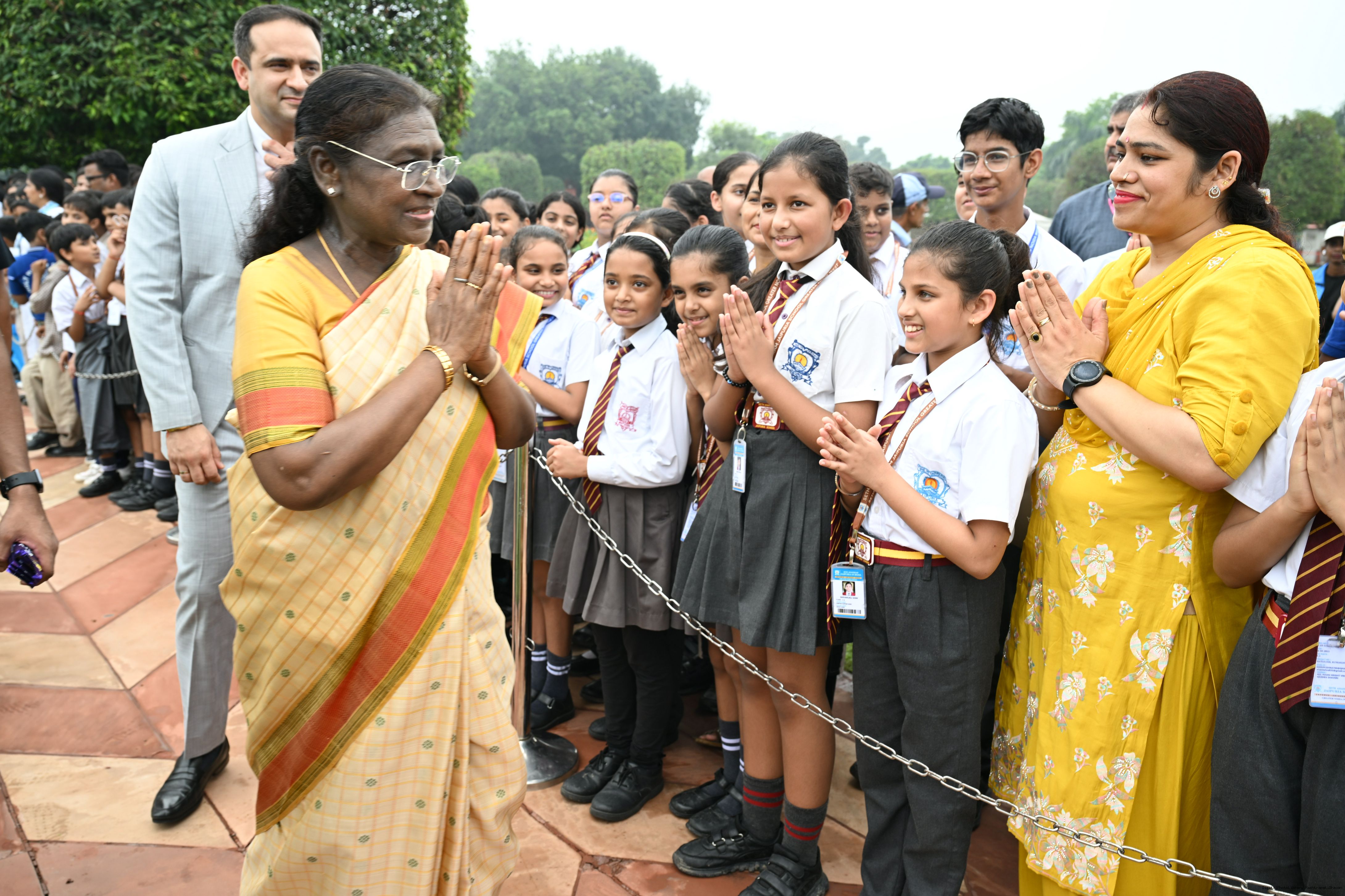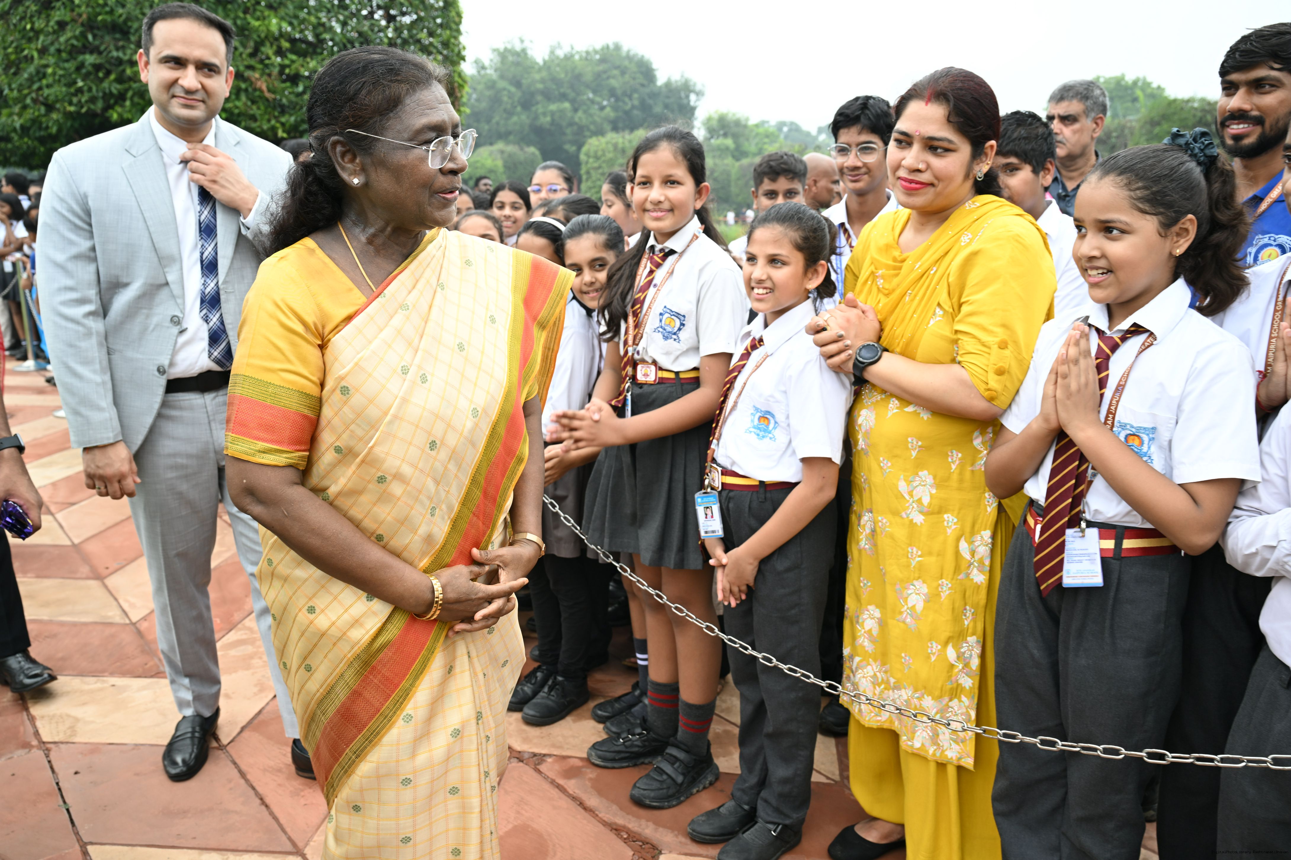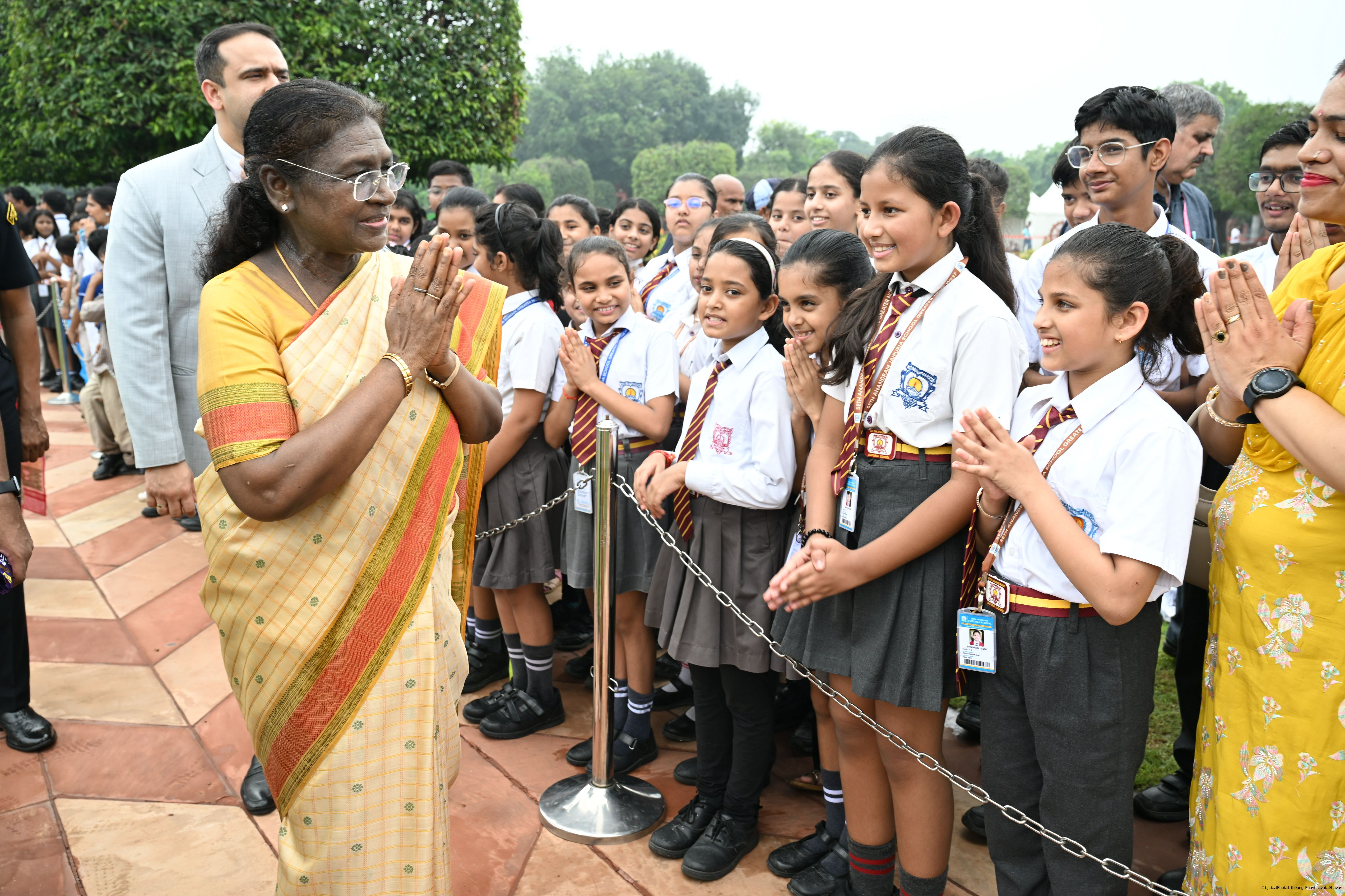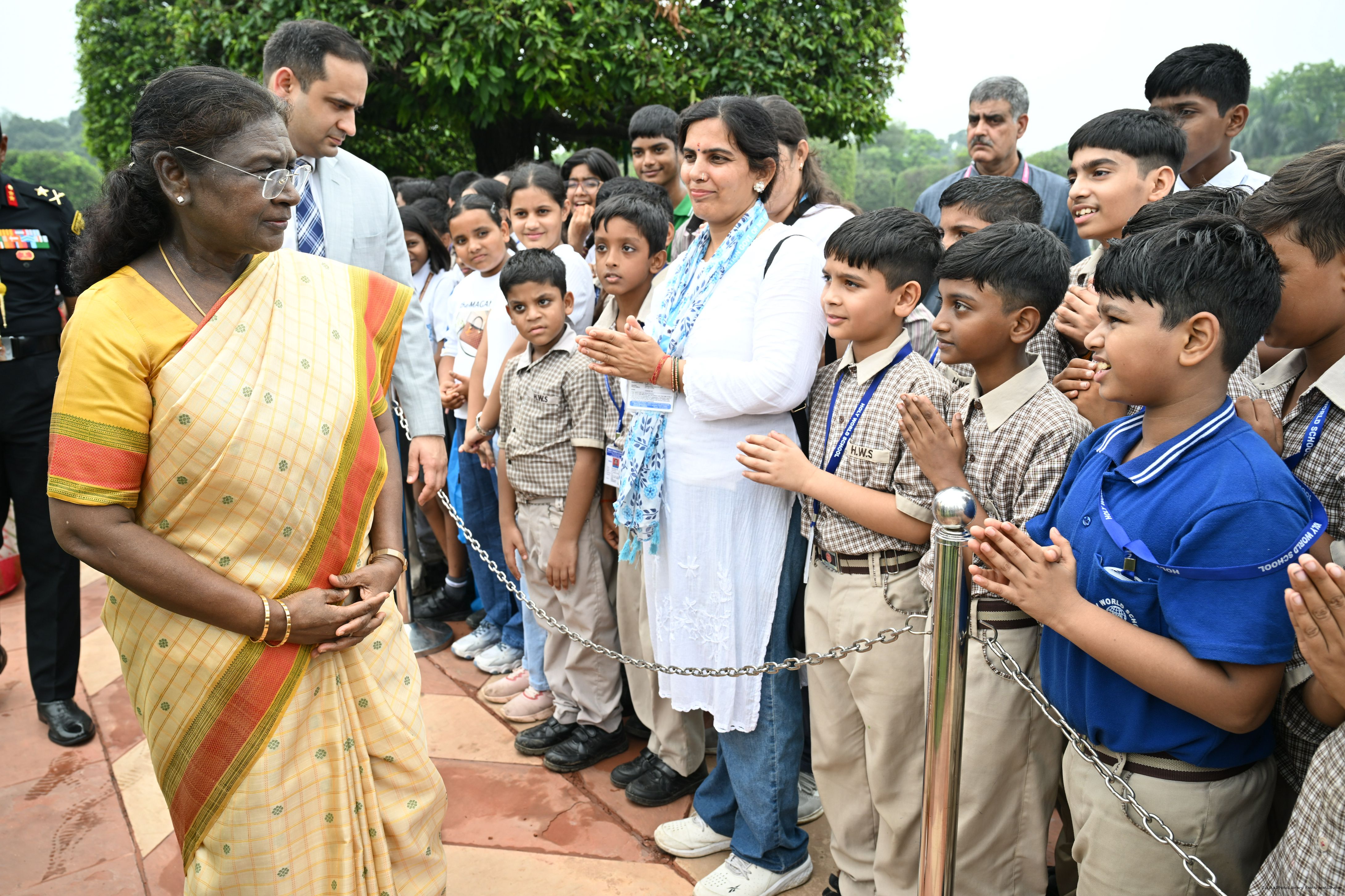| Caption: | The President of India, Smt Droupadi Murmu interacted with sportspersons who visited Amrit Udyan on National Sports Day at Rashtrapati Bhavan on August 29, 2025. |