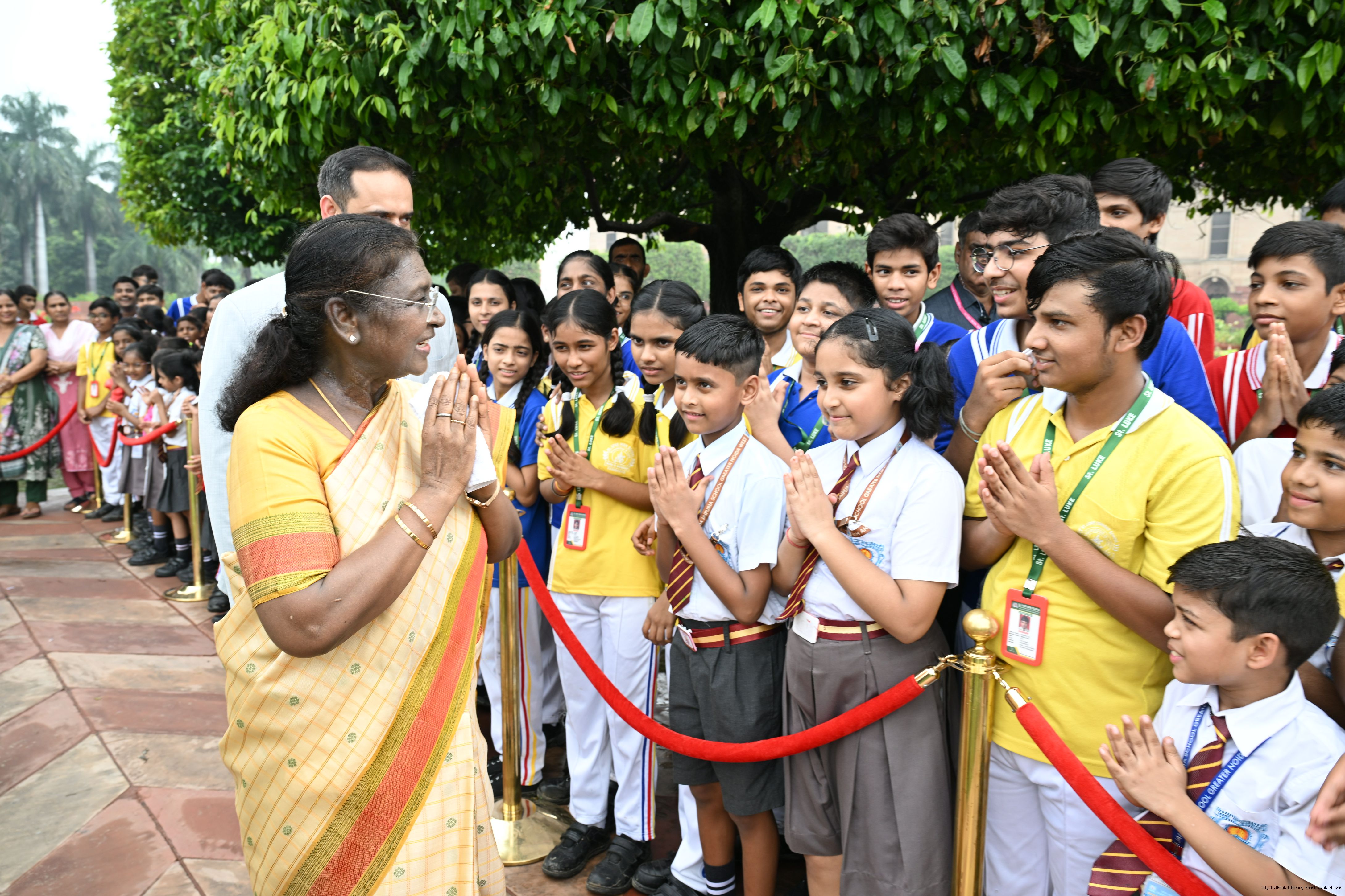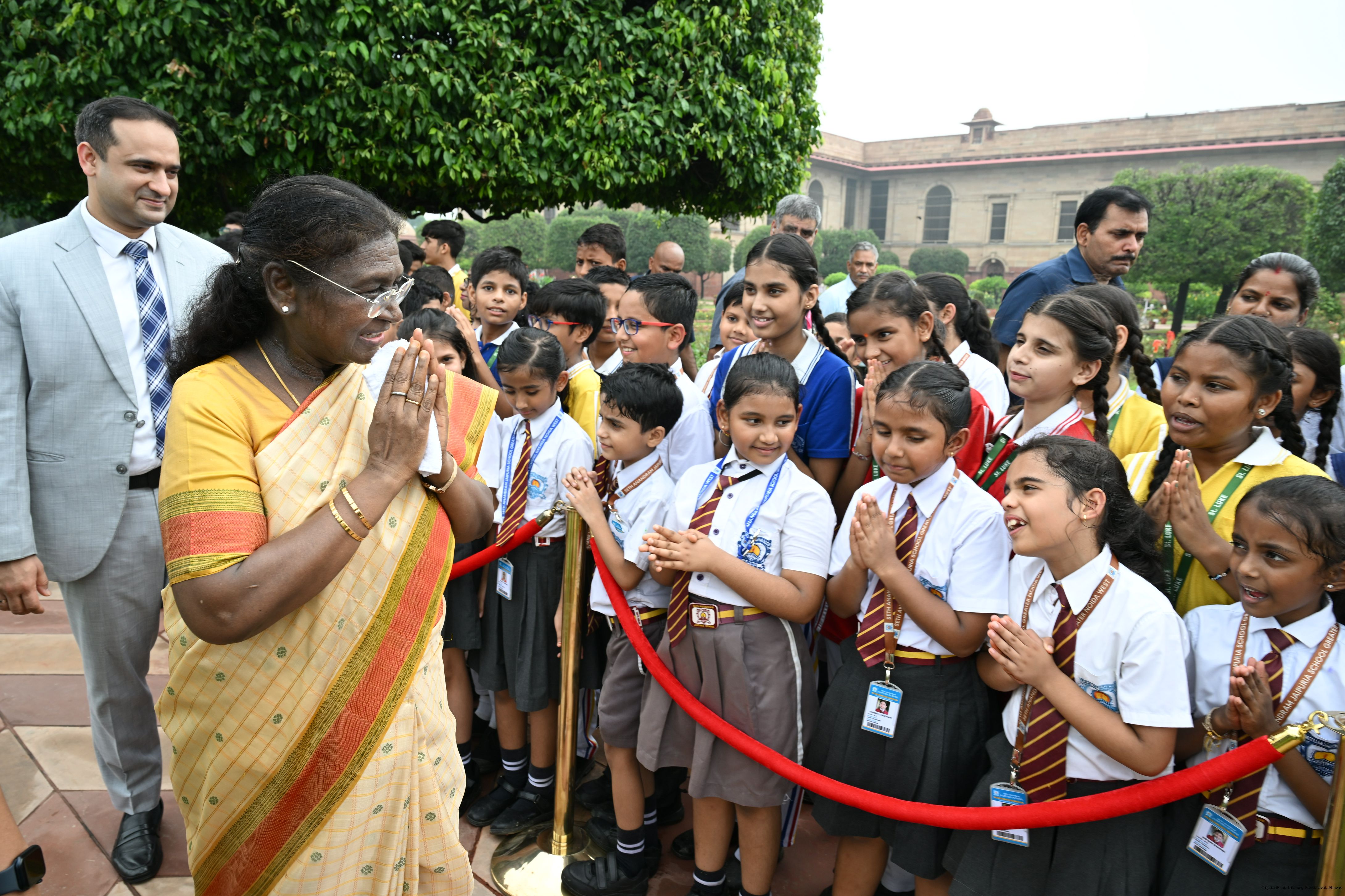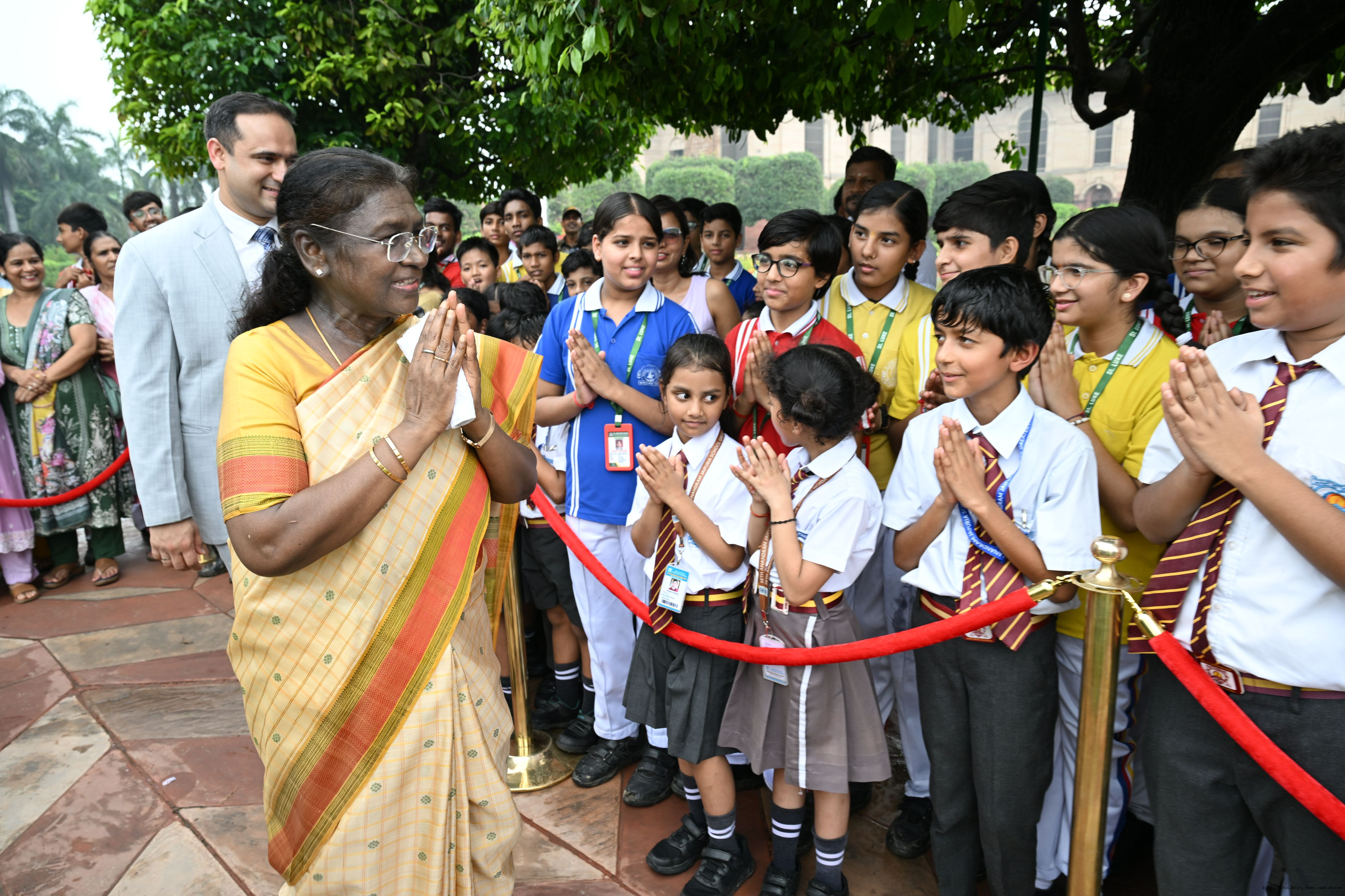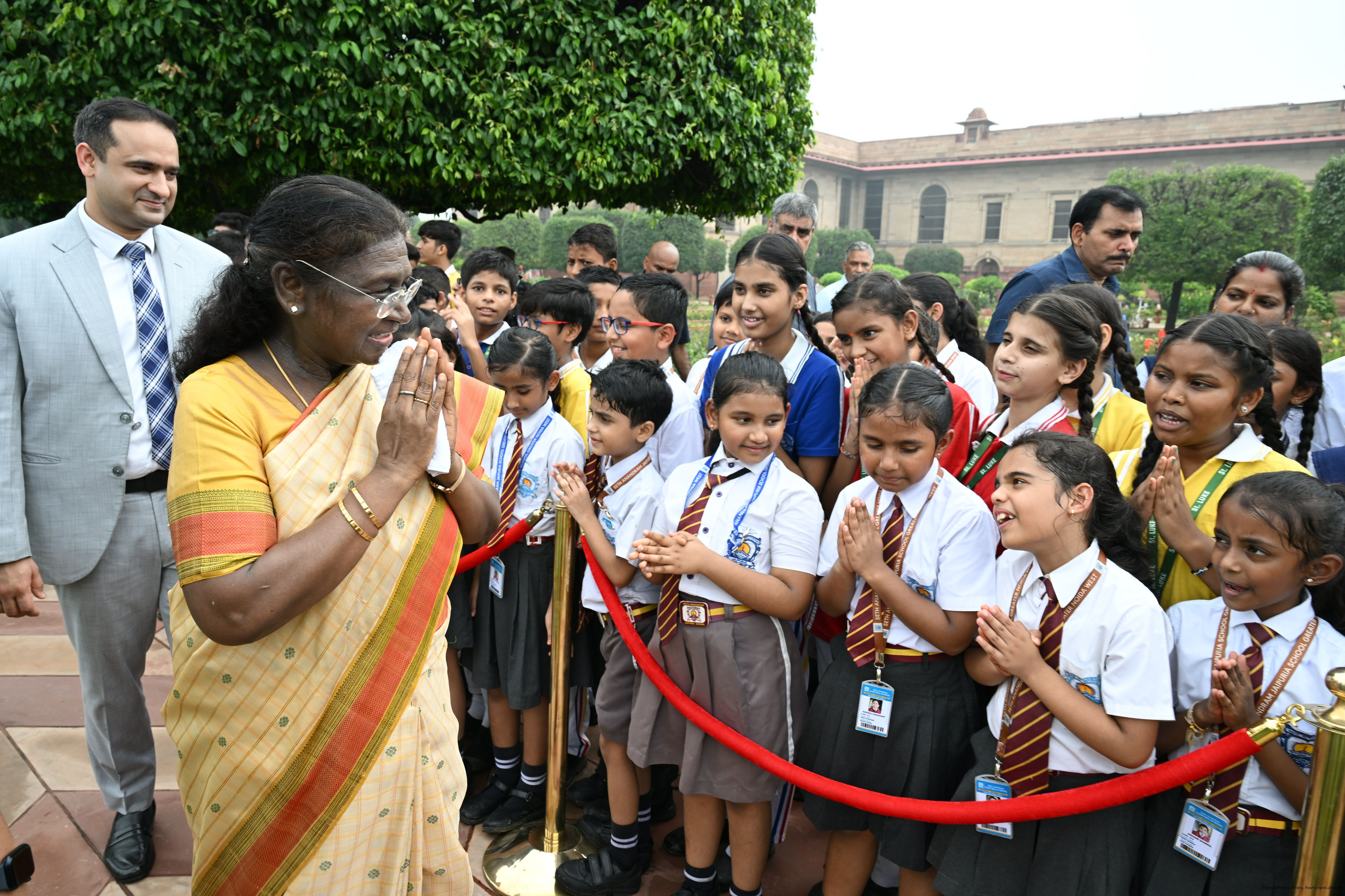 | Caption: | The President of India, Smt Droupadi Murmu interacted with sportspersons who visited Amrit Udyan on National Sports Day at Rashtrapati Bhavan on August 29, 2025. |