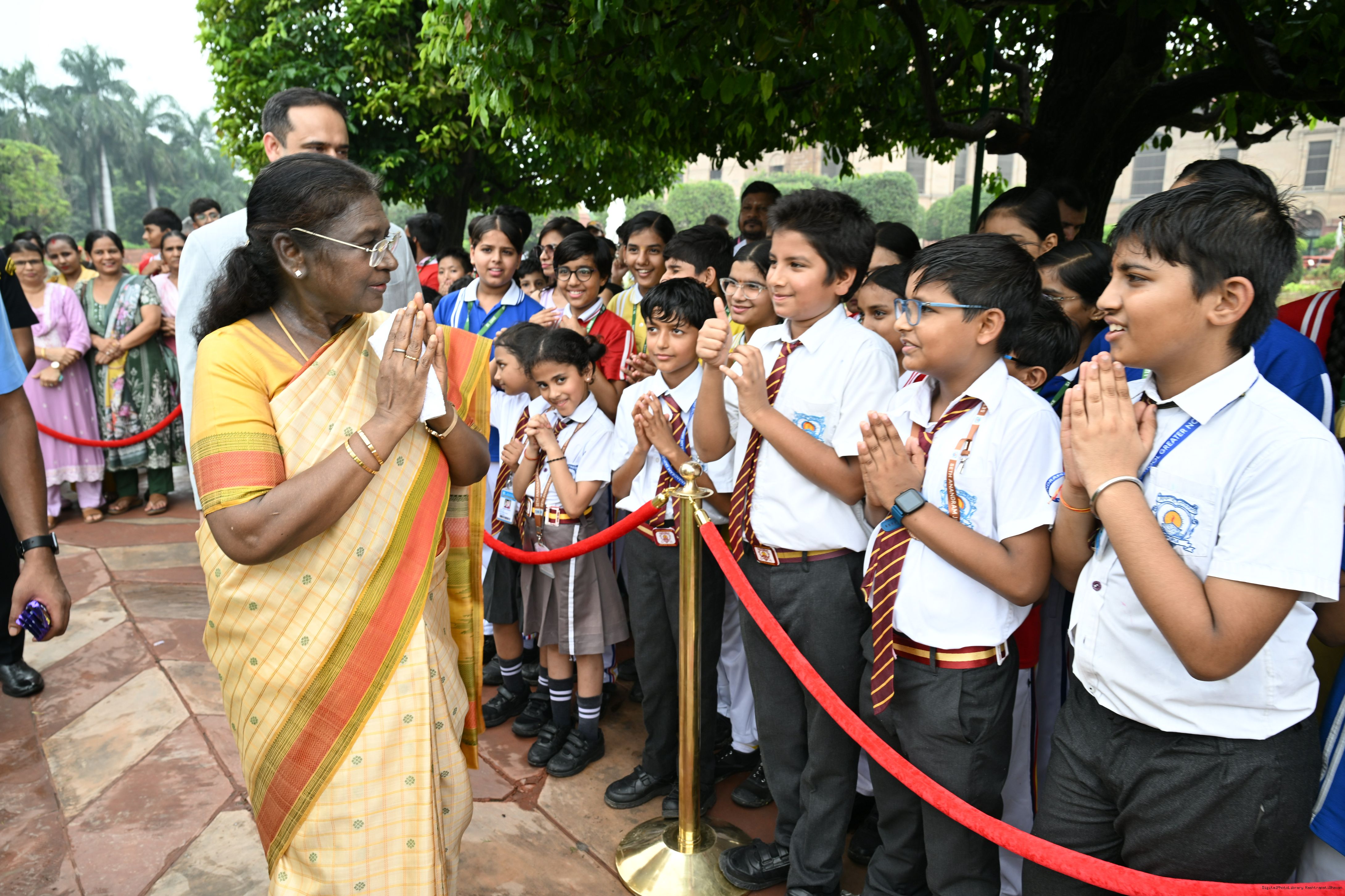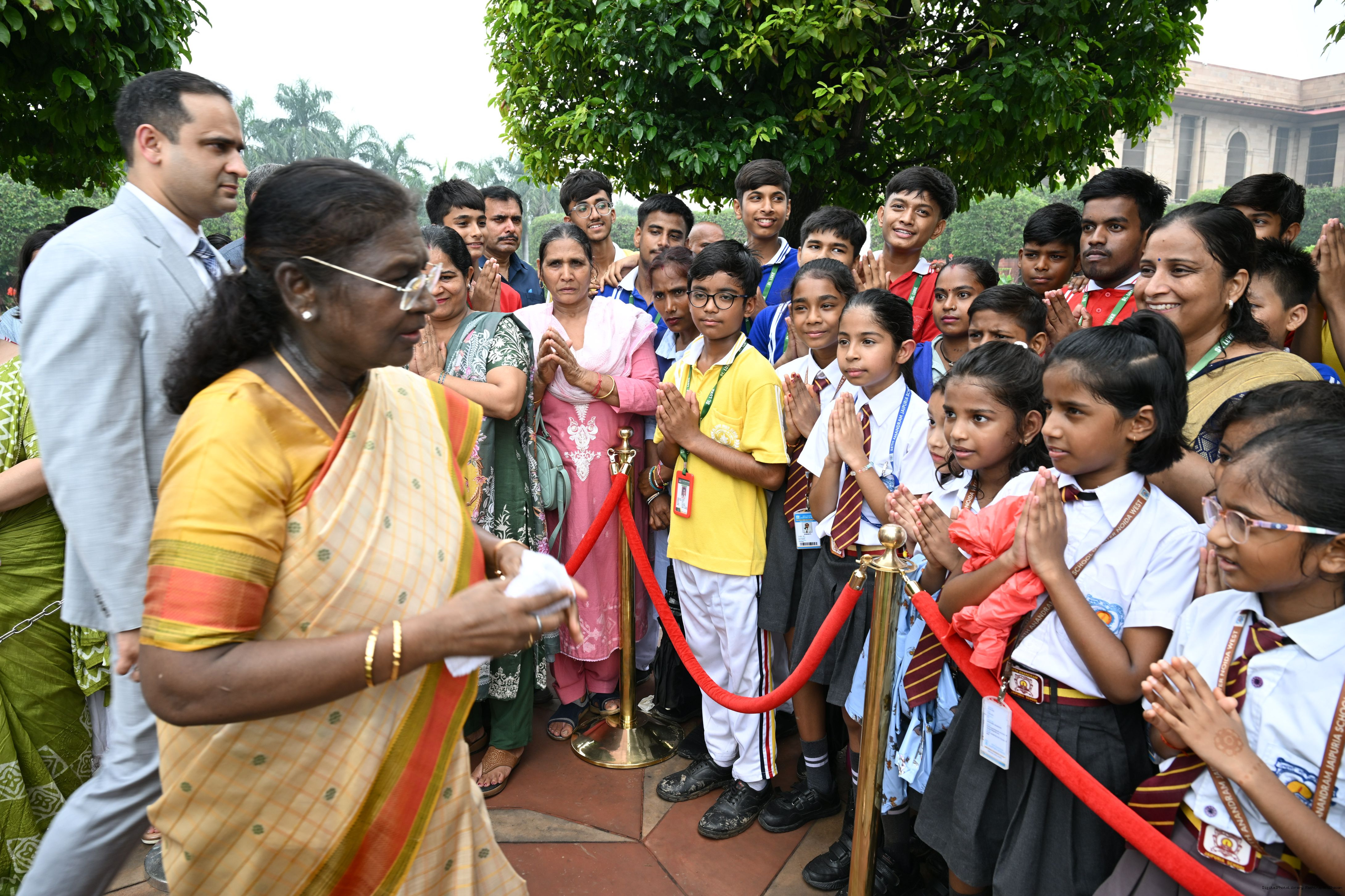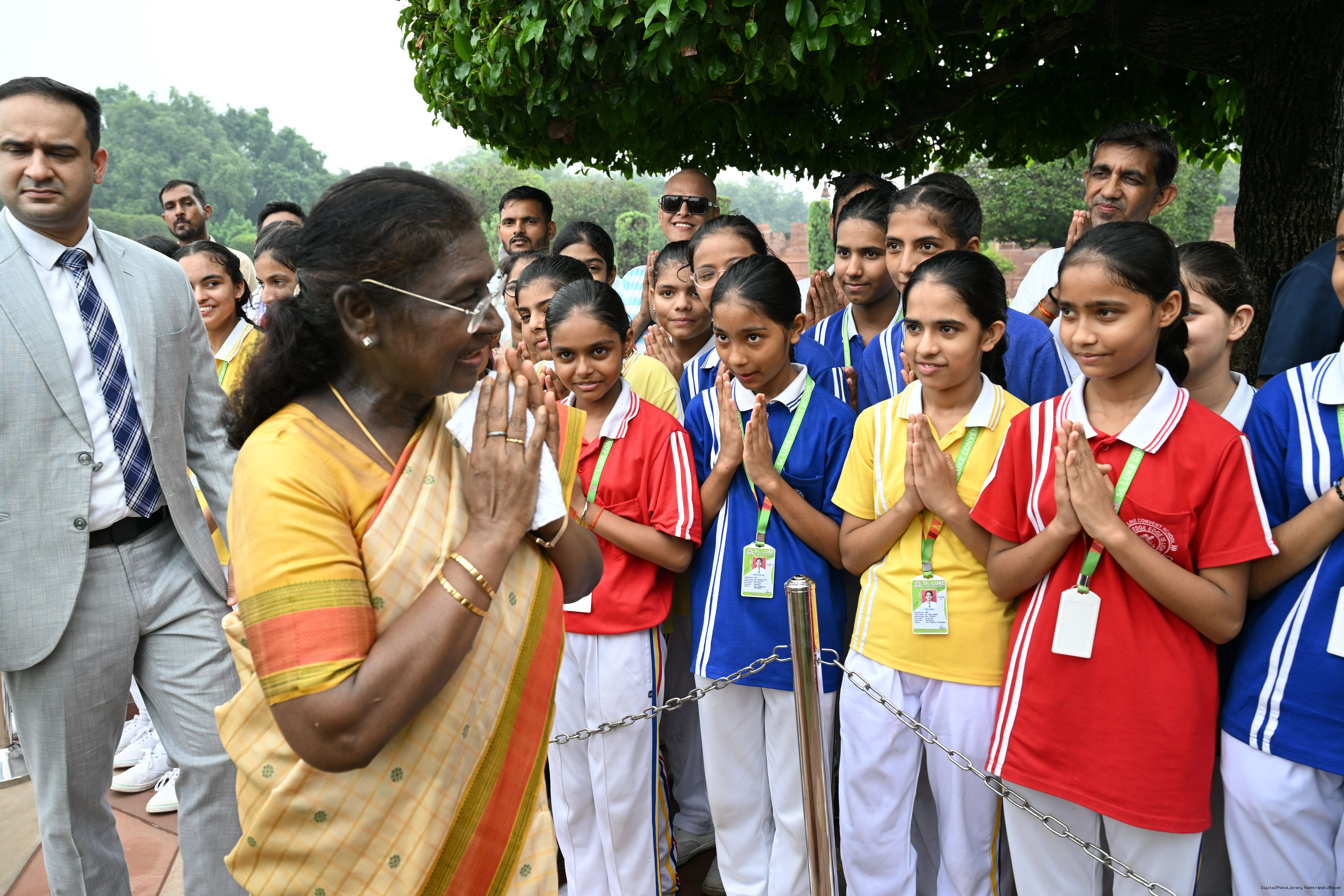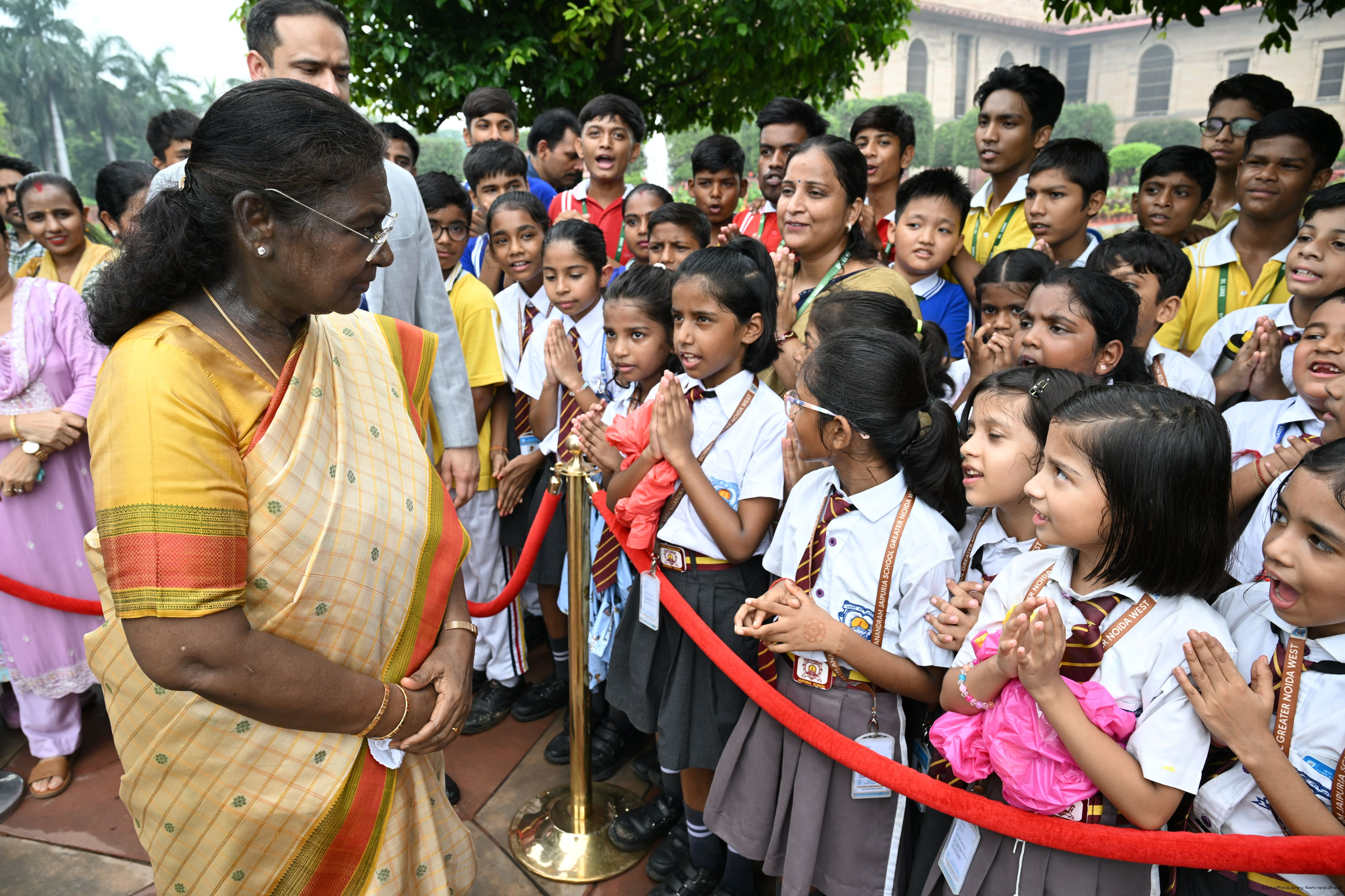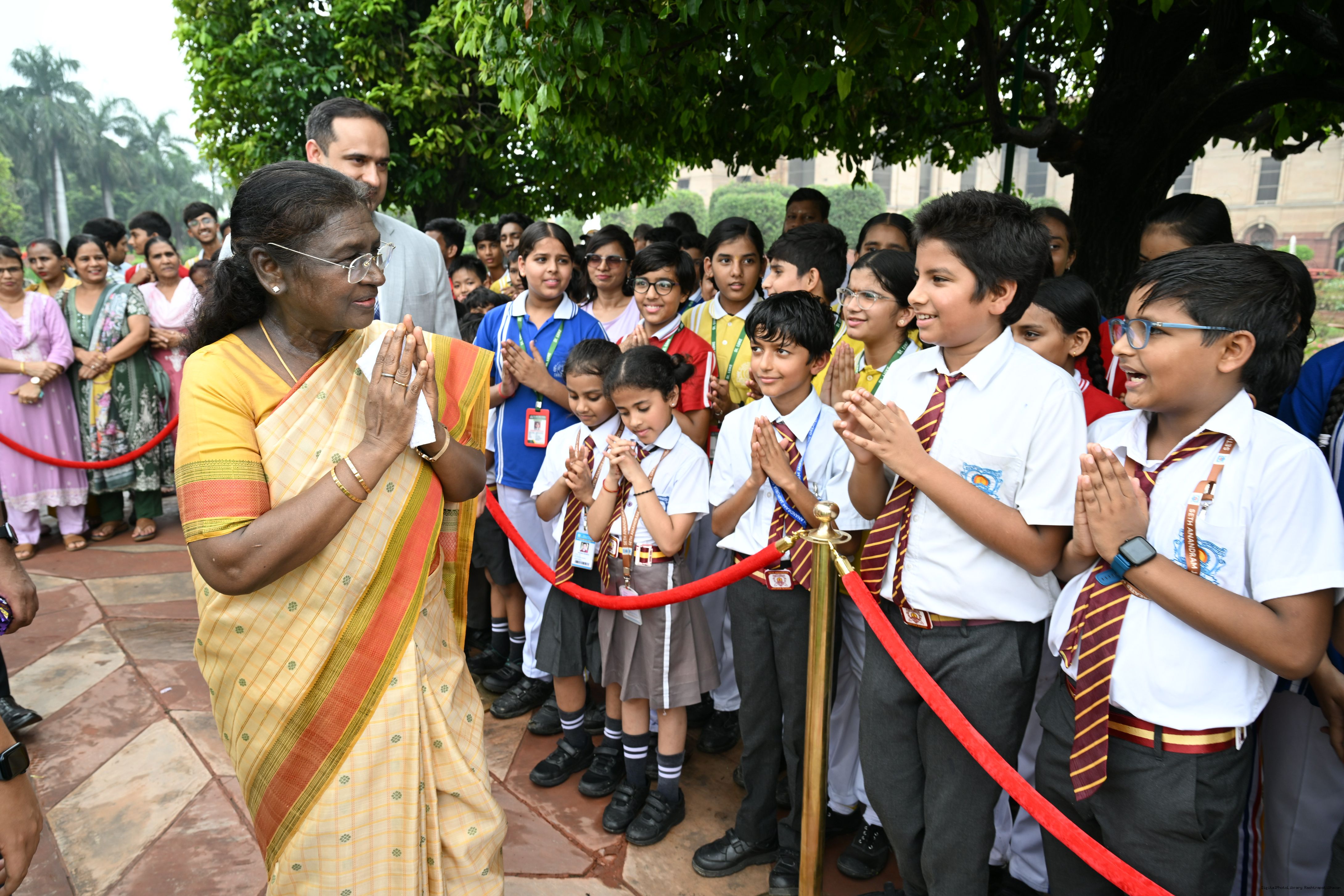 | Caption: | The President of India, Smt Droupadi Murmu interacted with sportspersons who visited Amrit Udyan on National Sports Day at Rashtrapati Bhavan on August 29, 2025. |