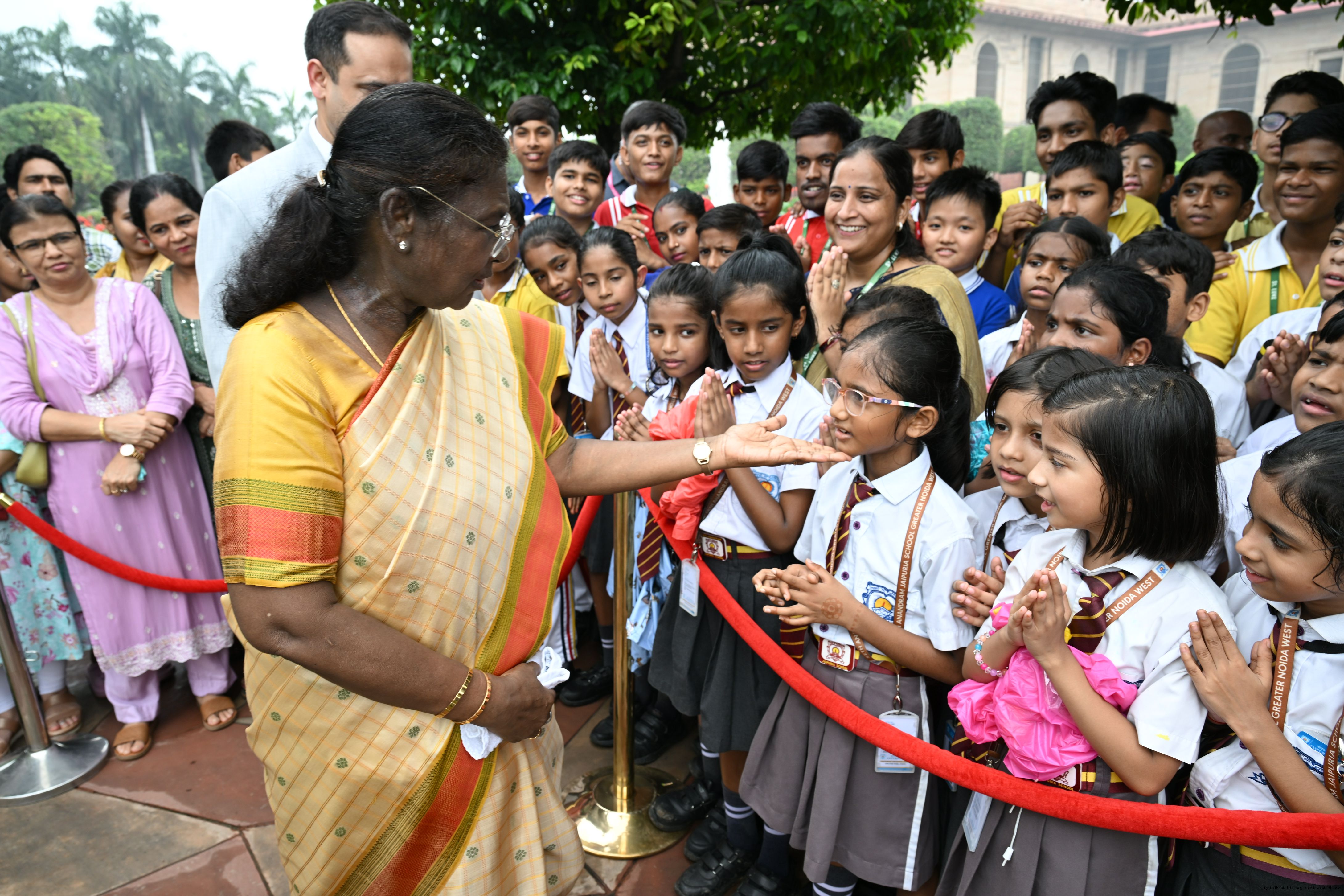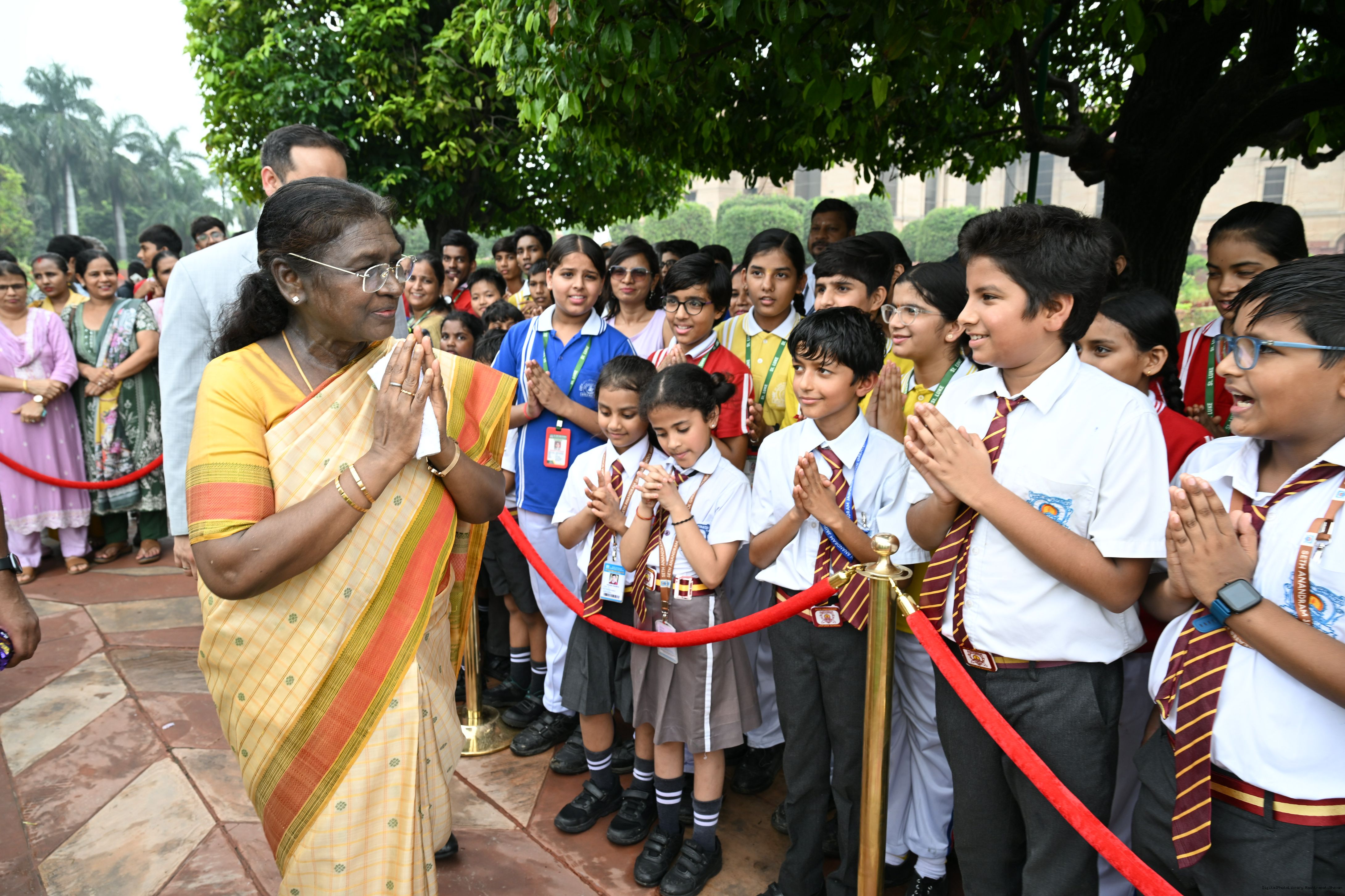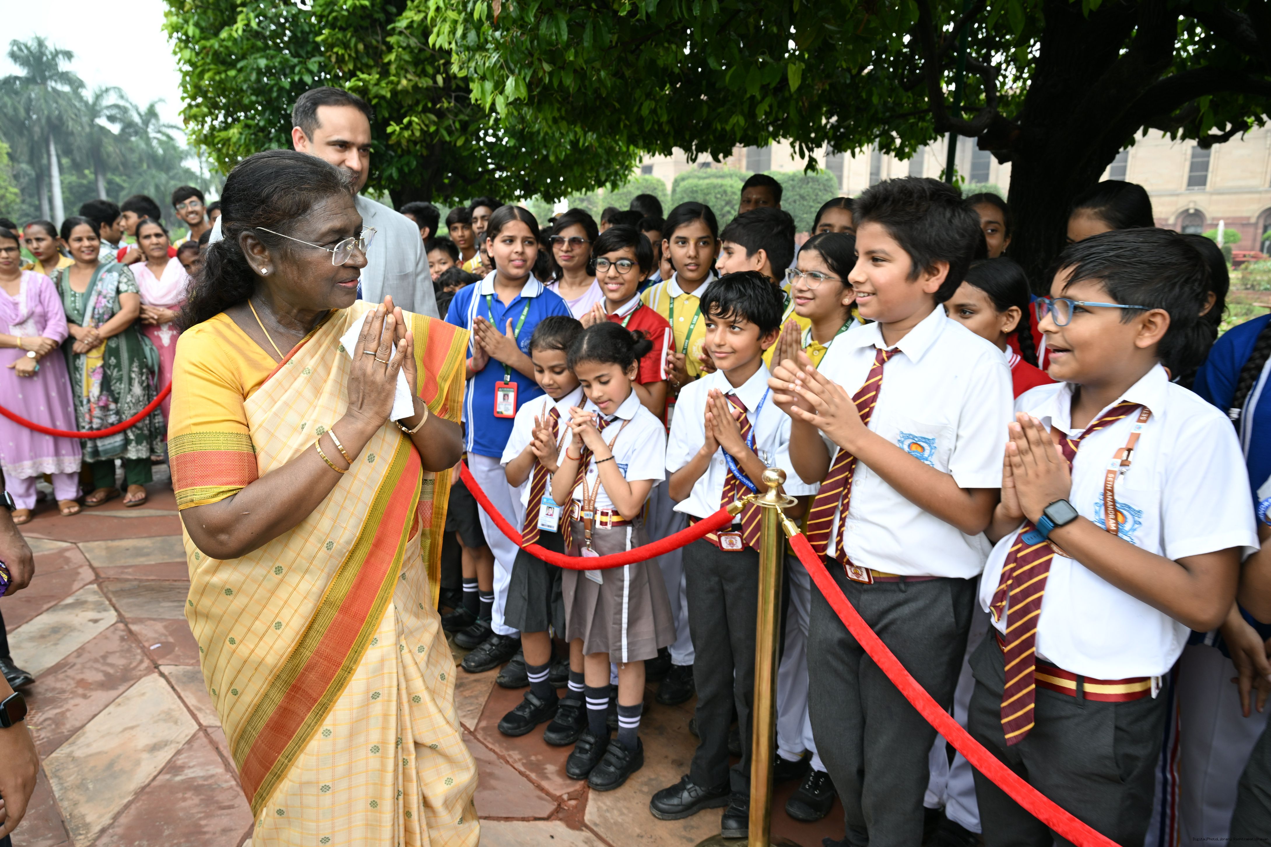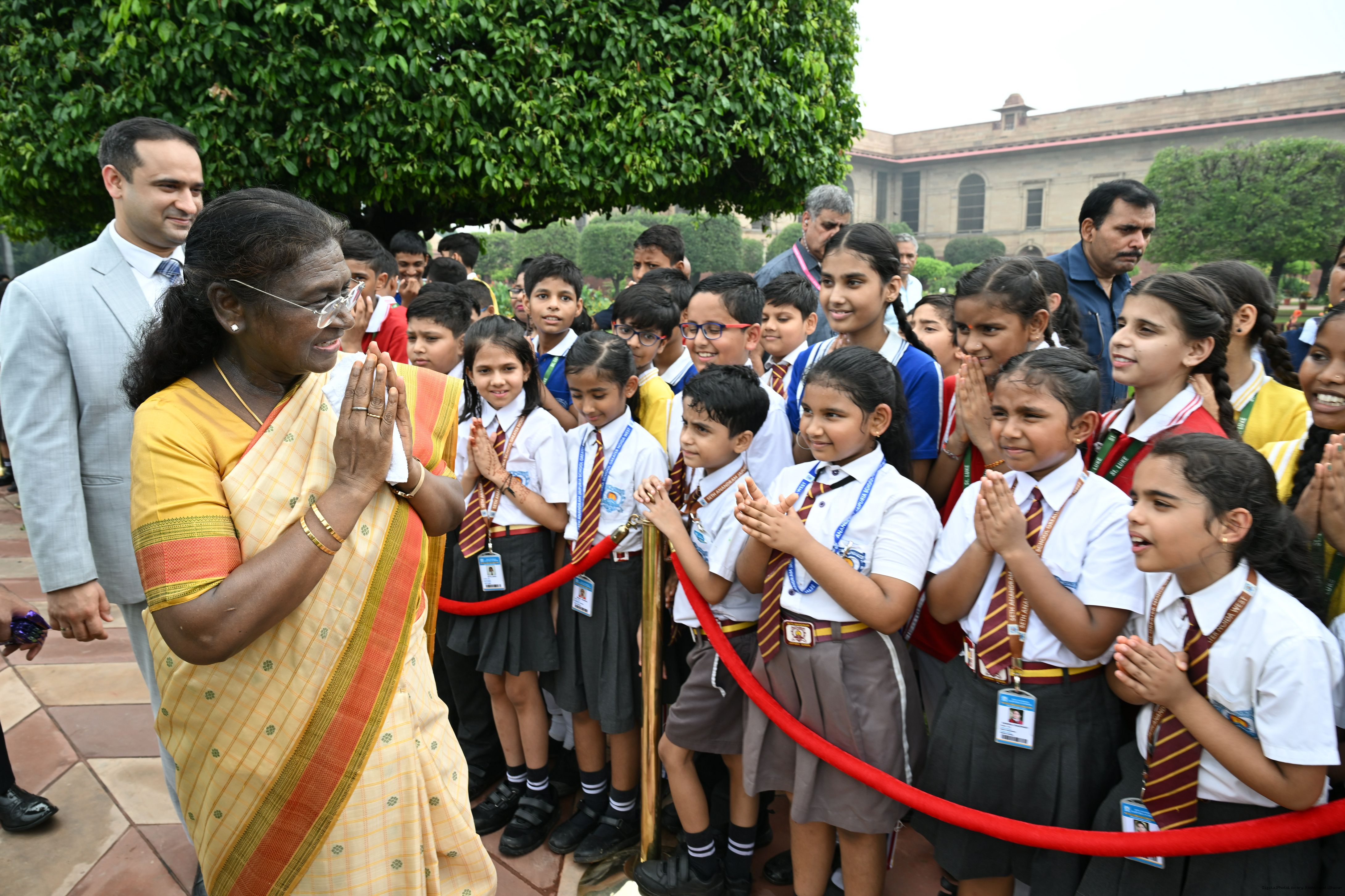 | Caption: | The President of India, Smt Droupadi Murmu interacted with sportspersons who visited Amrit Udyan on National Sports Day at Rashtrapati Bhavan on August 29, 2025. |