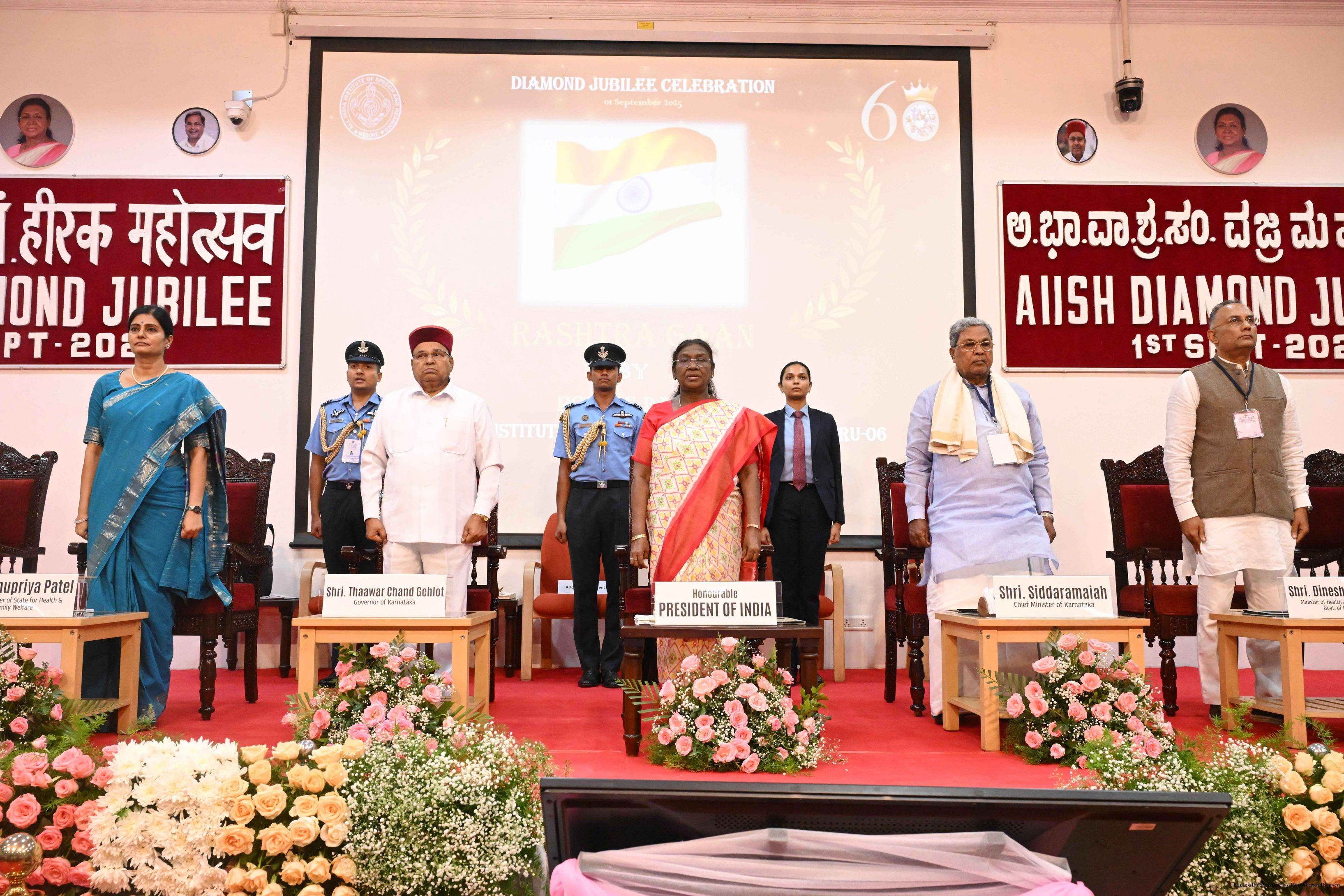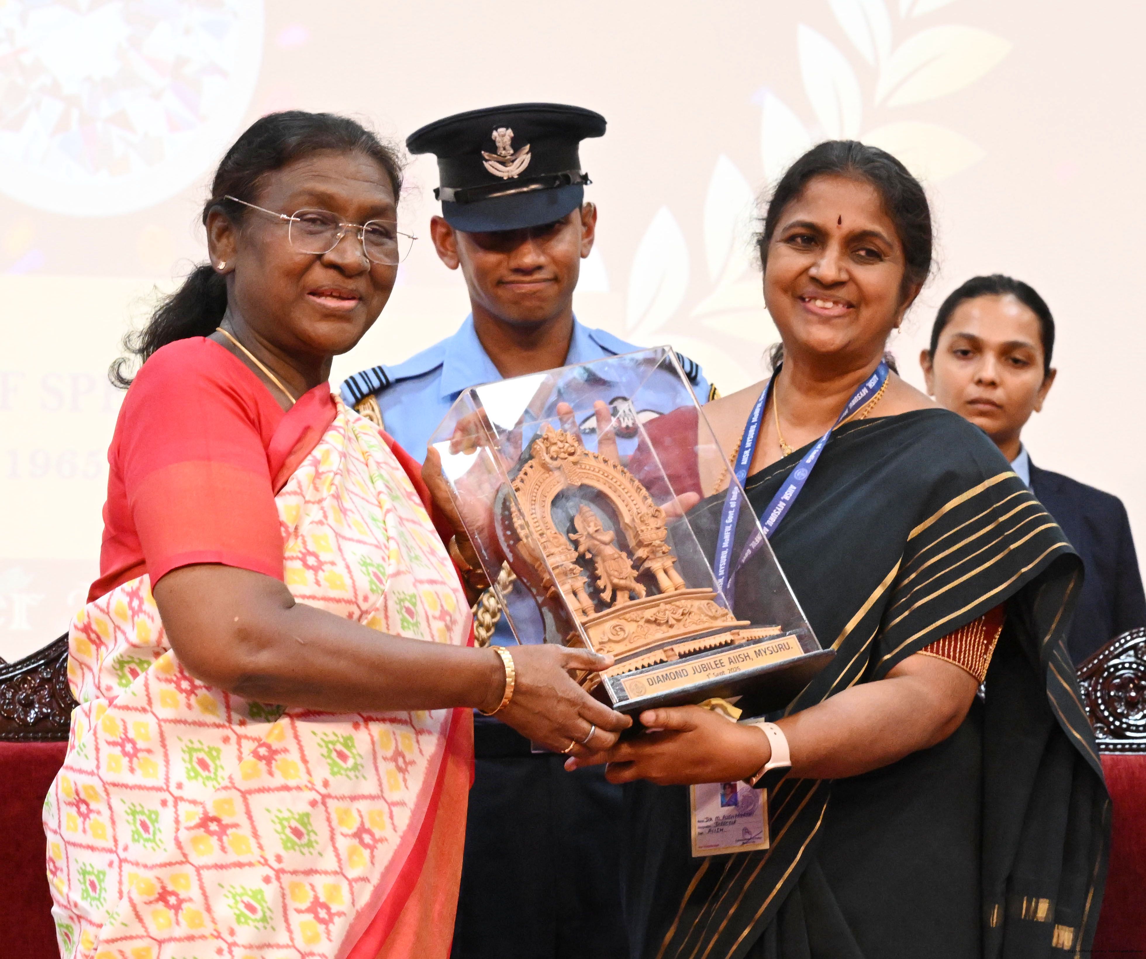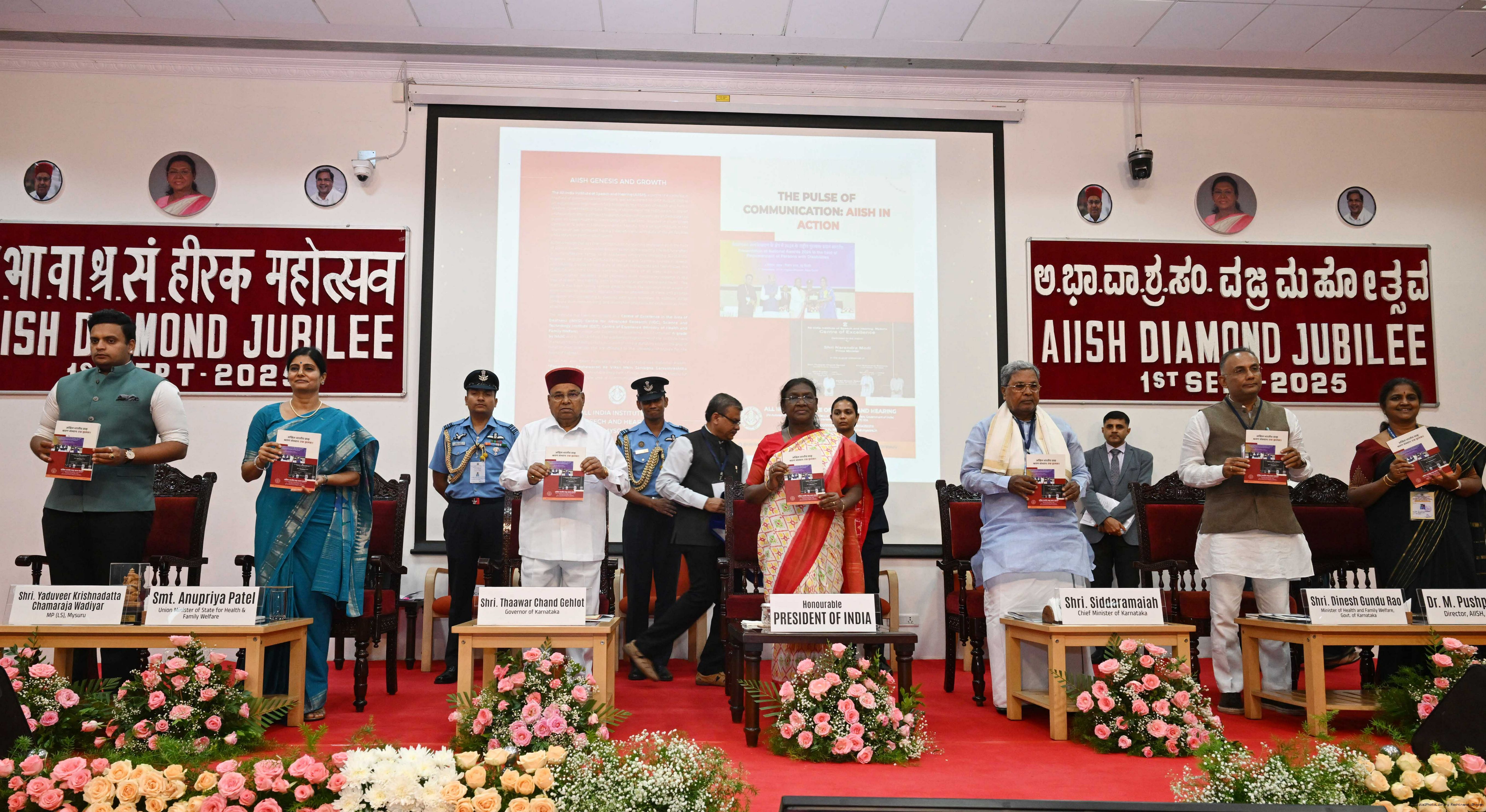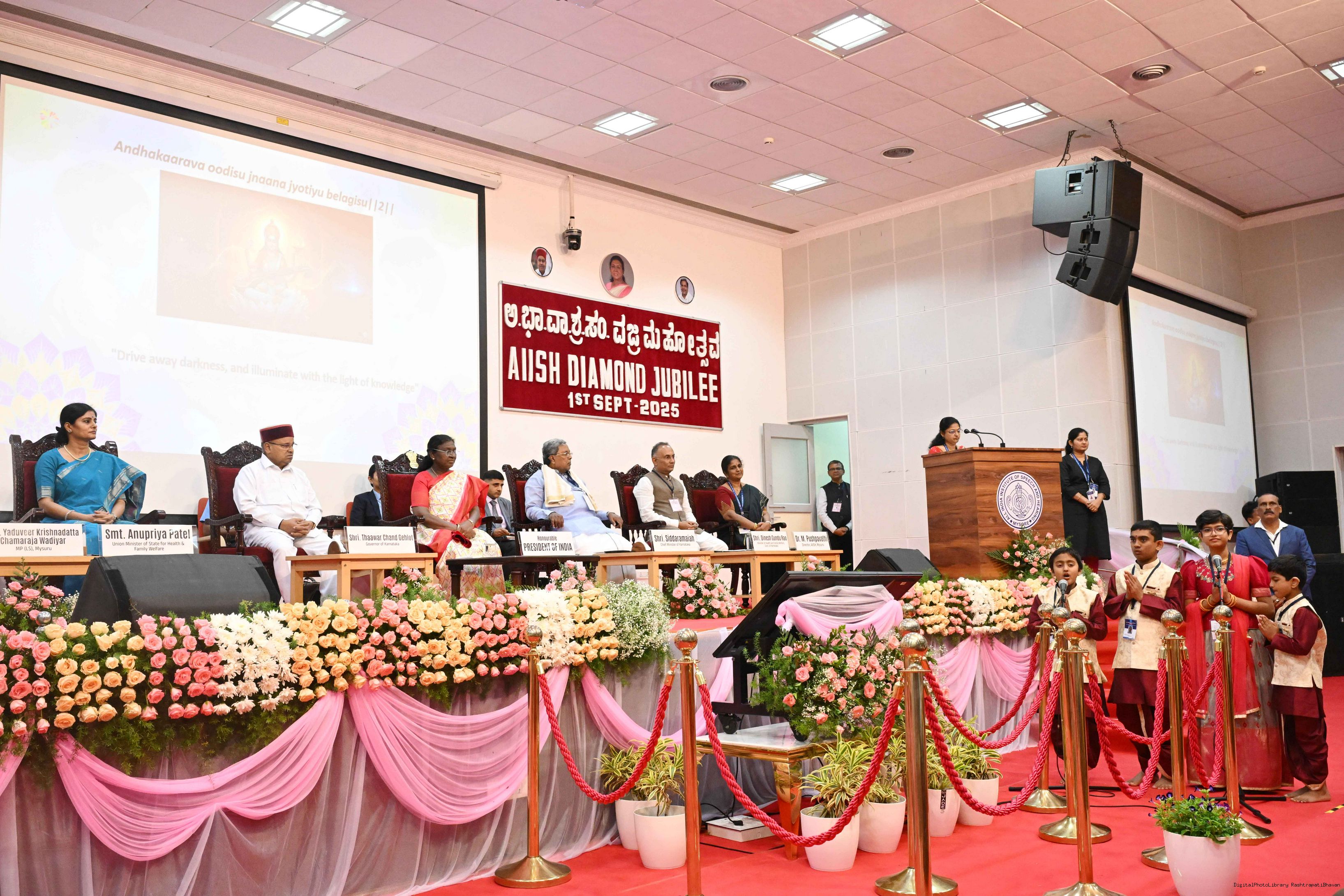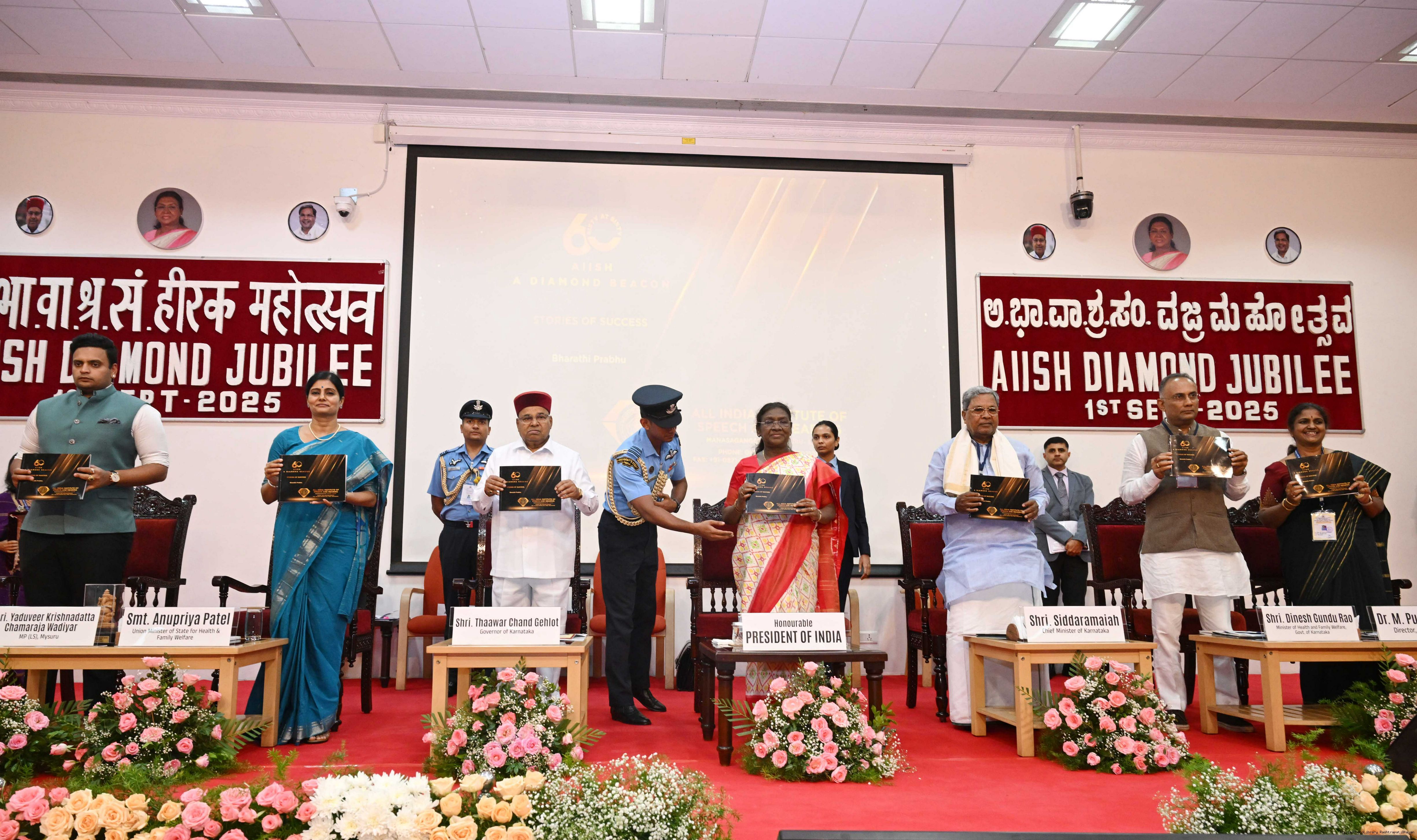 | Caption: | The President of India, Smt Droupadi Murmu graced the diamond jubilee celebrations of the All-India Institute of Speech and Hearing (AIISH) at Mysuru, Karnataka on September 1, 2025. |
