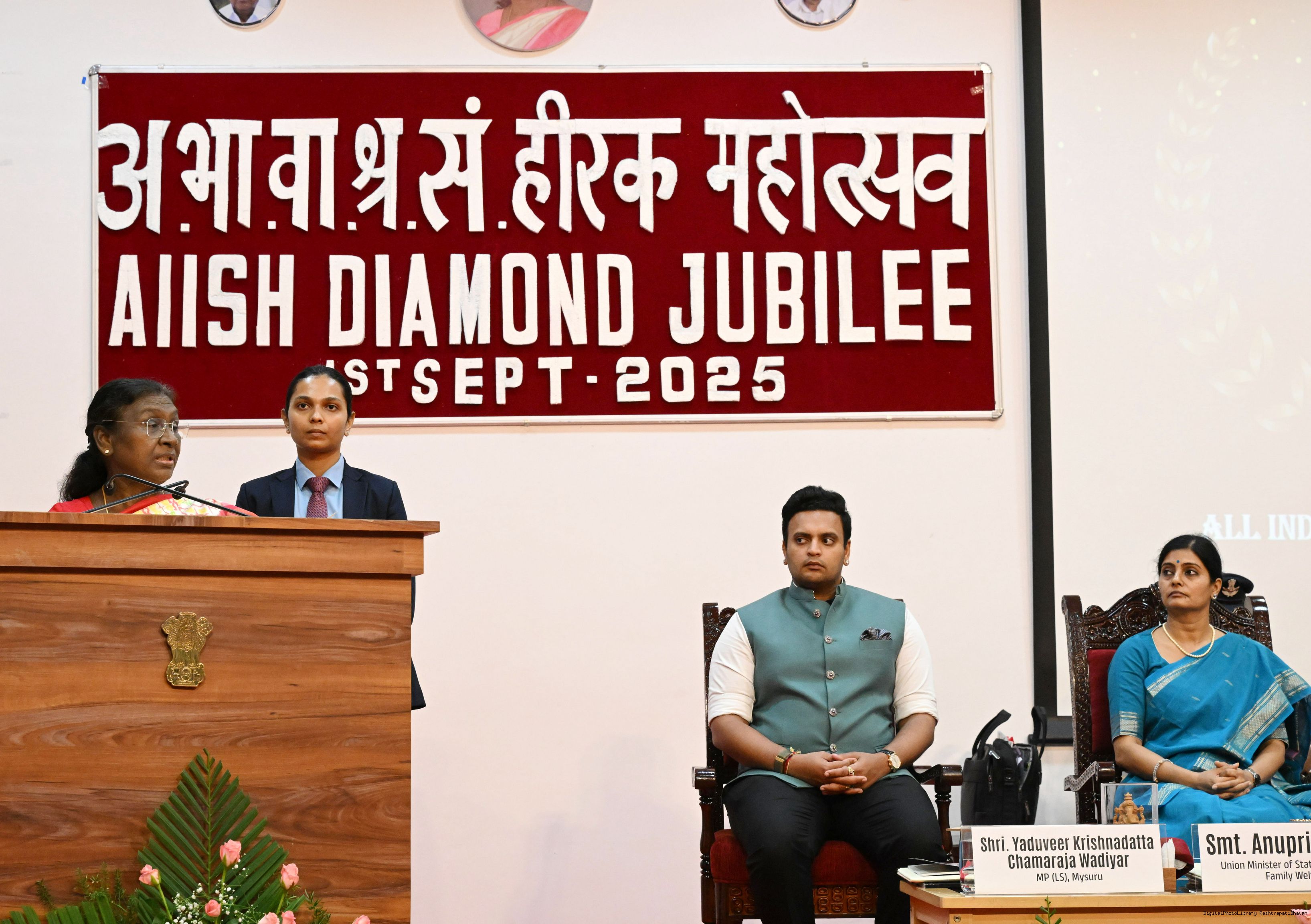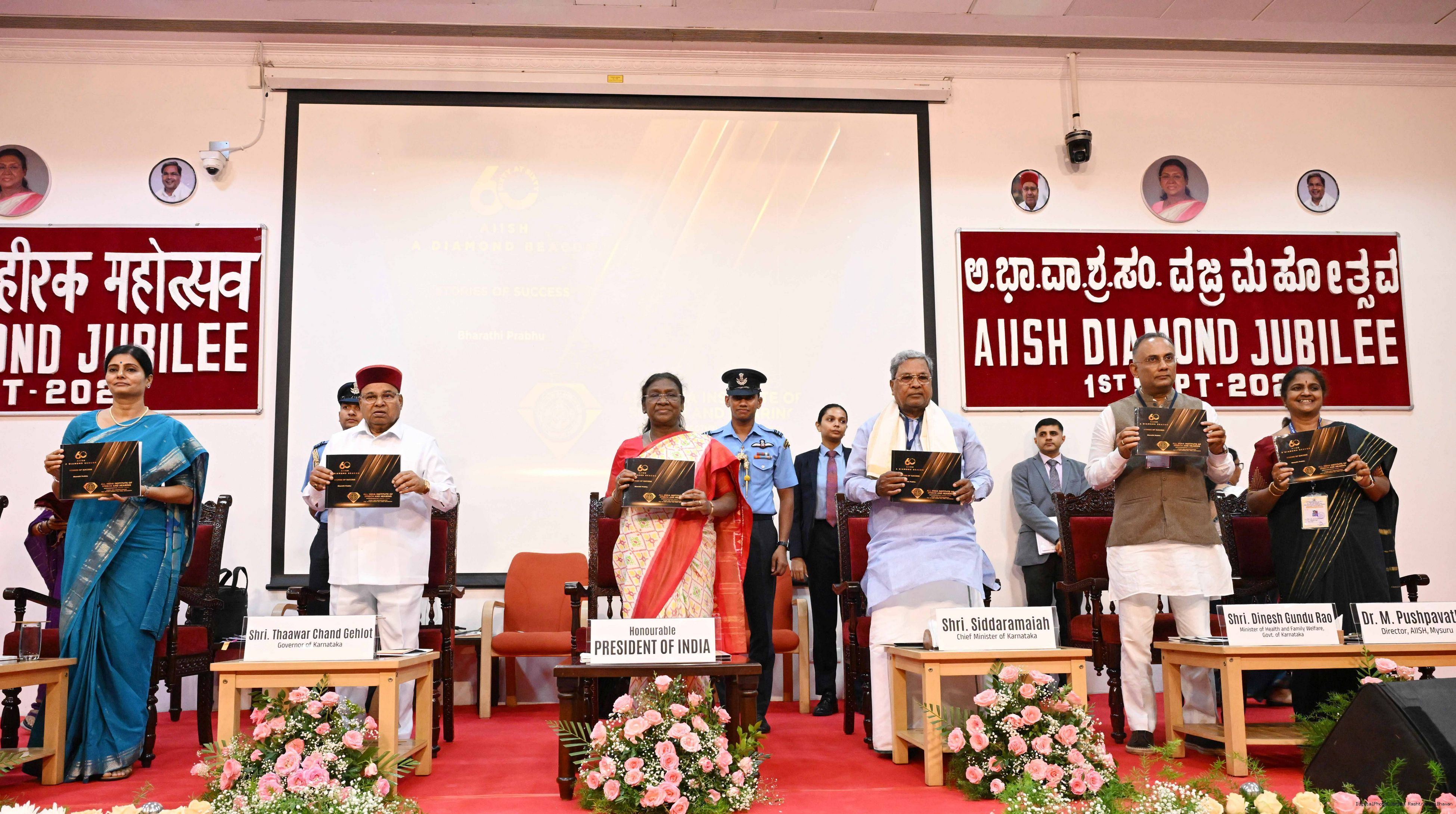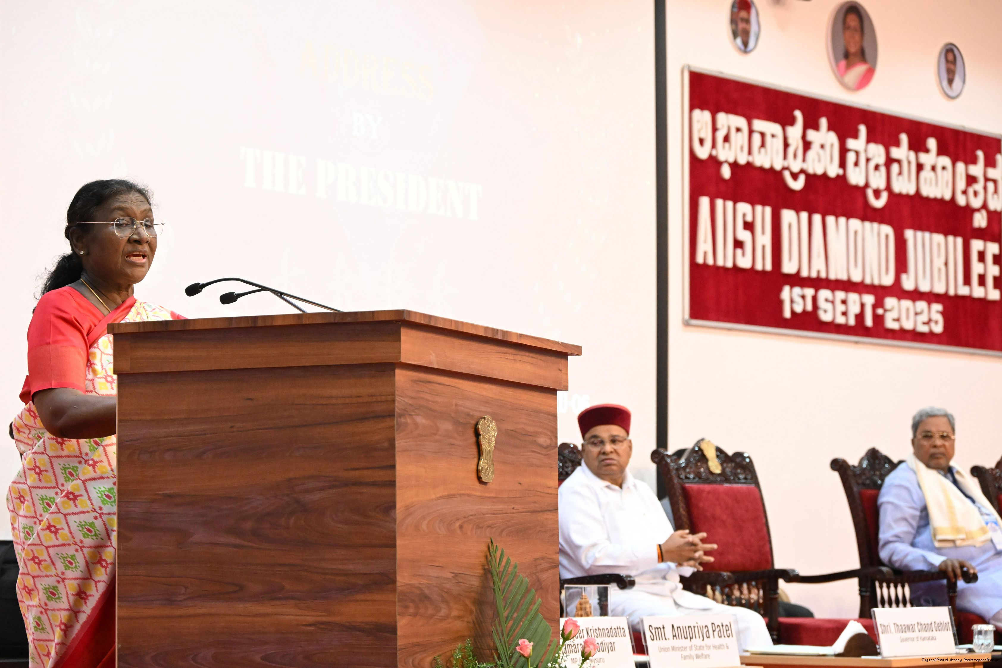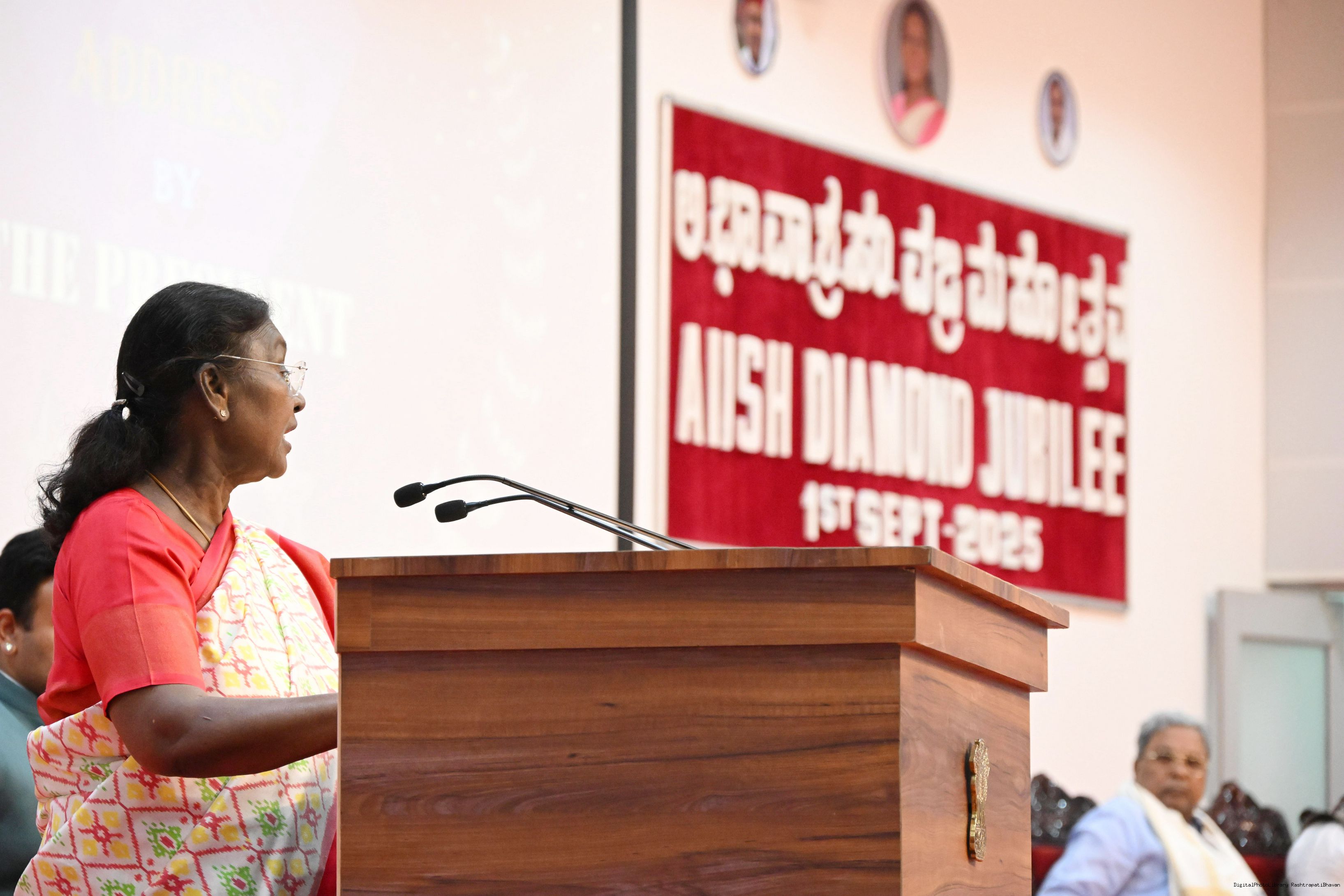 | Caption: | The President of India, Smt Droupadi Murmu graced the diamond jubilee celebrations of the All-India Institute of Speech and Hearing (AIISH) at Mysuru, Karnataka on September 1, 2025. |