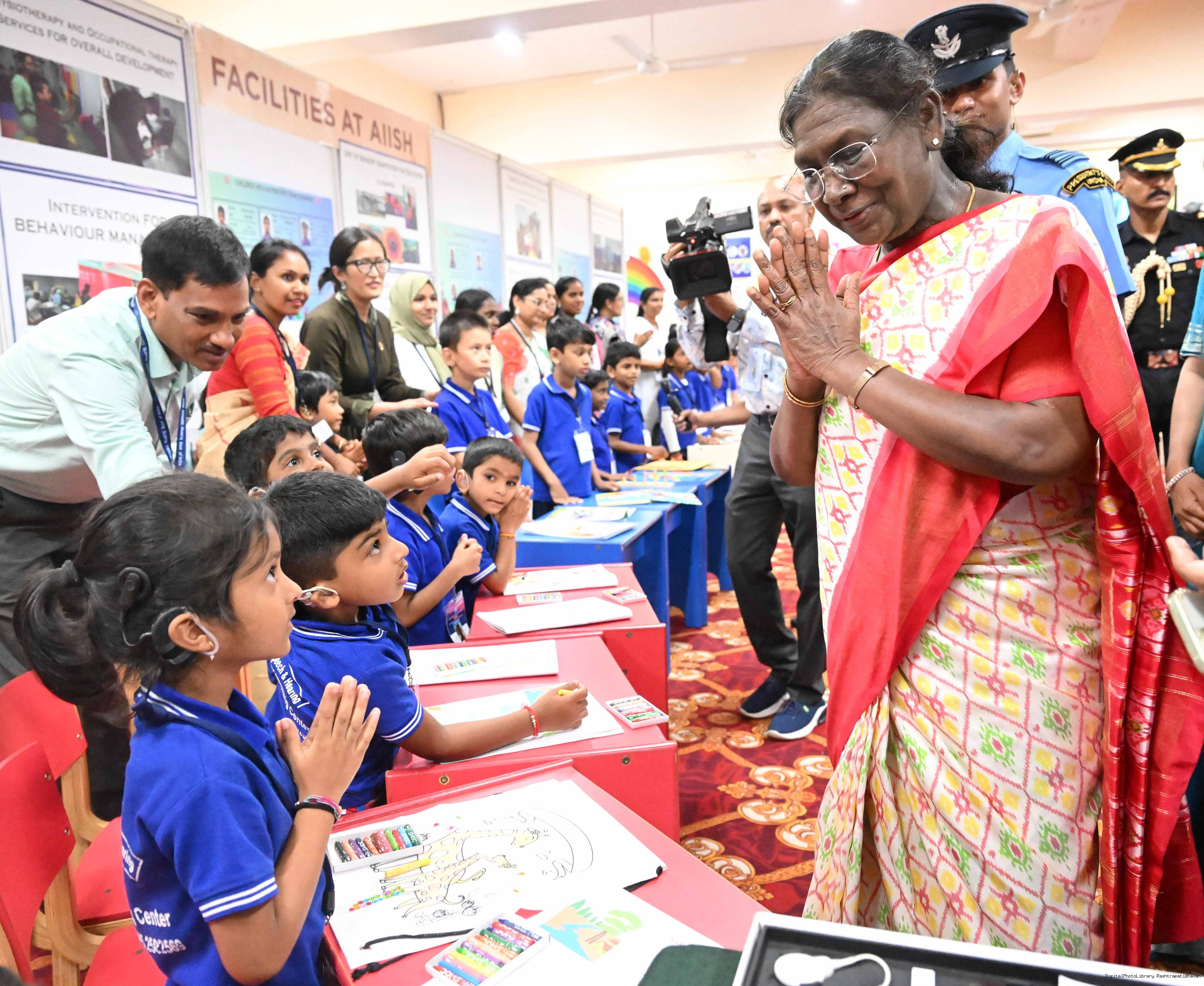 | Caption: | The President of India, Smt Droupadi Murmu interacted with Divyang Children of AIISH Pre school from AIISH Mysuru Karnataka on September 1, 2025. |