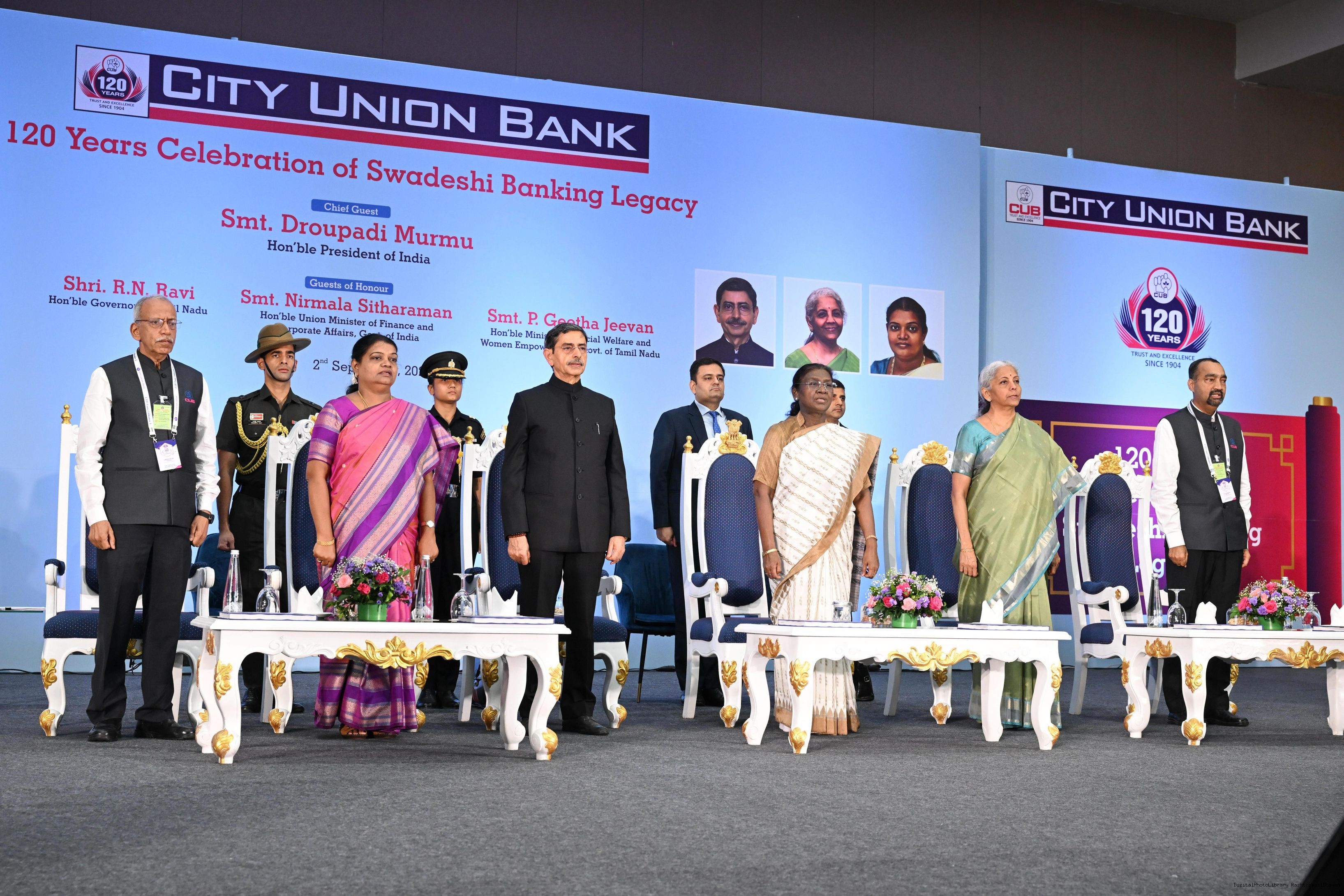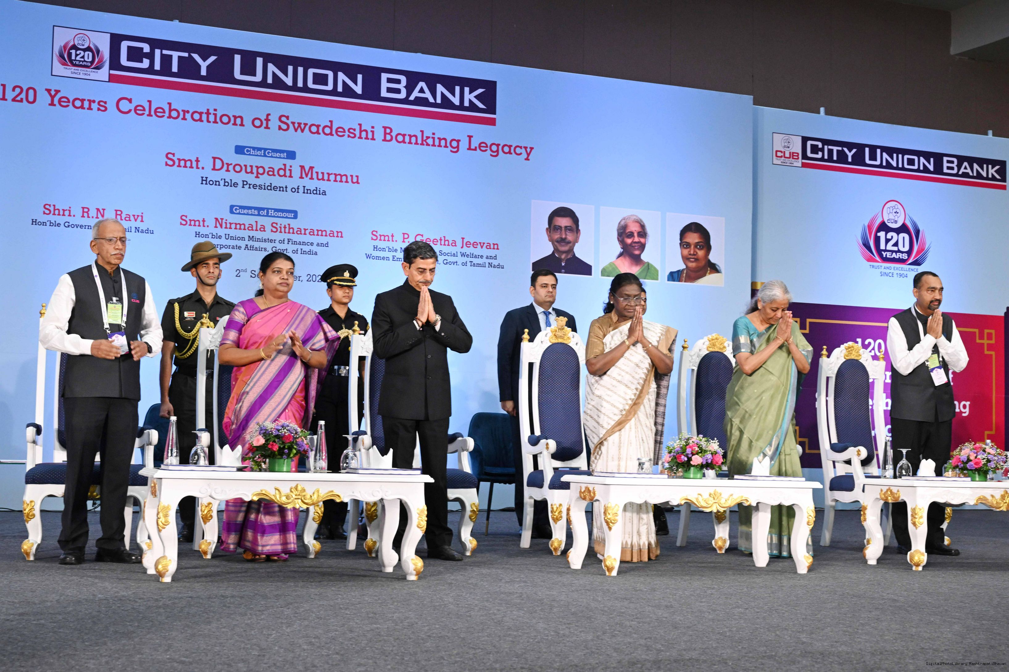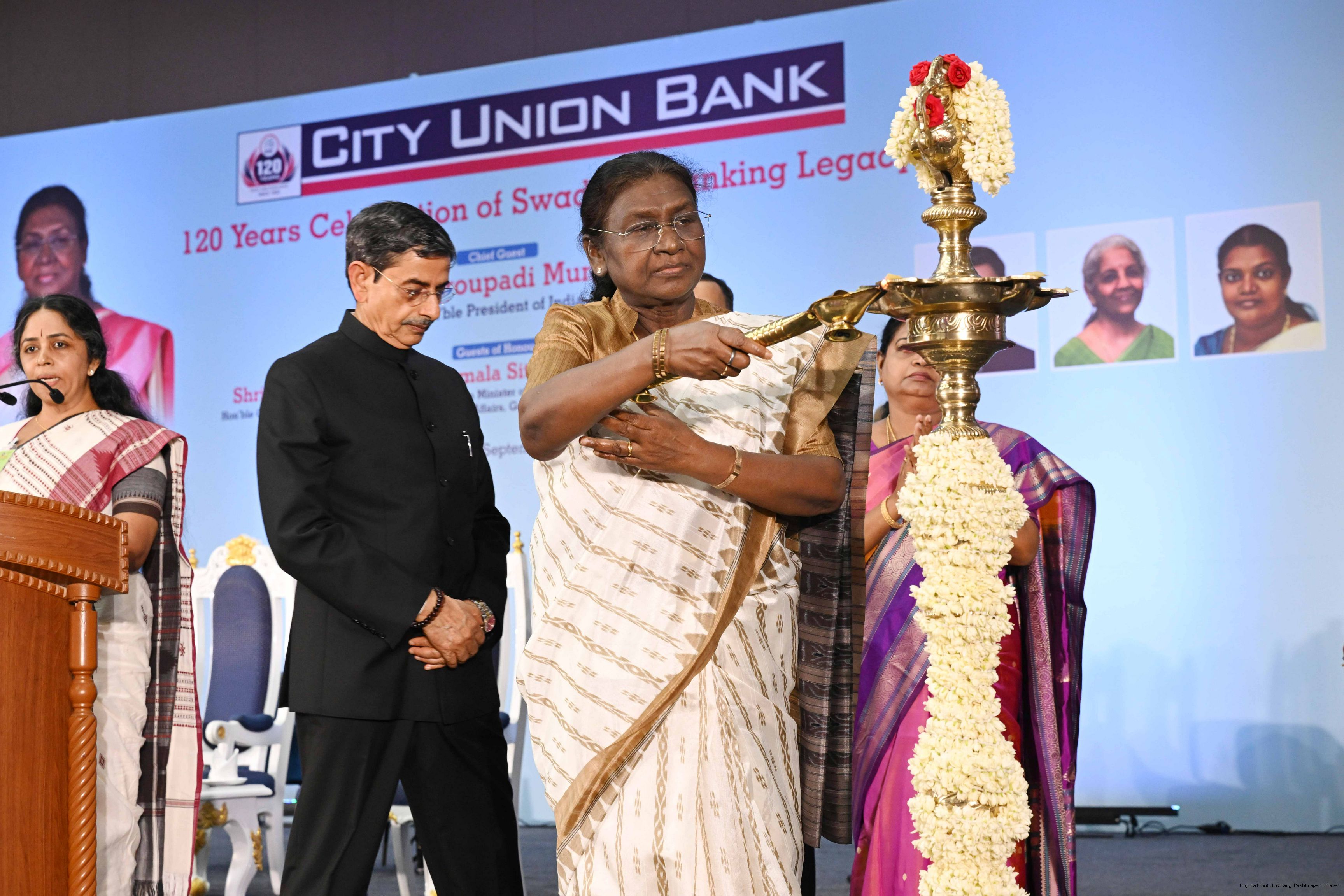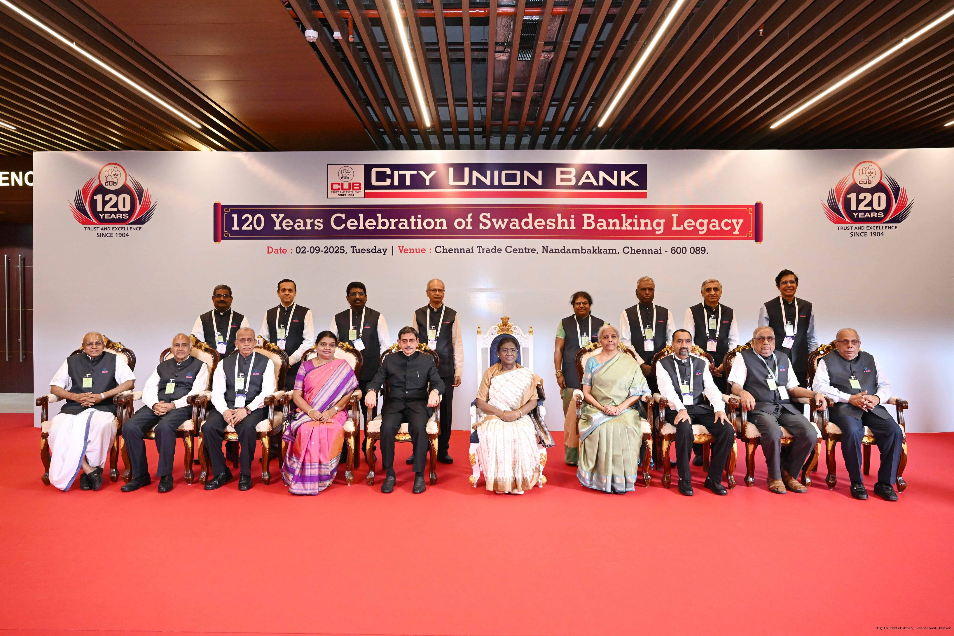 | Caption: | The President of India, Smt Droupadi Murmu graced the 120th foundation day celebrations of City Union Bank at Chennai, Tamil Nadu on September 2, 2025. |