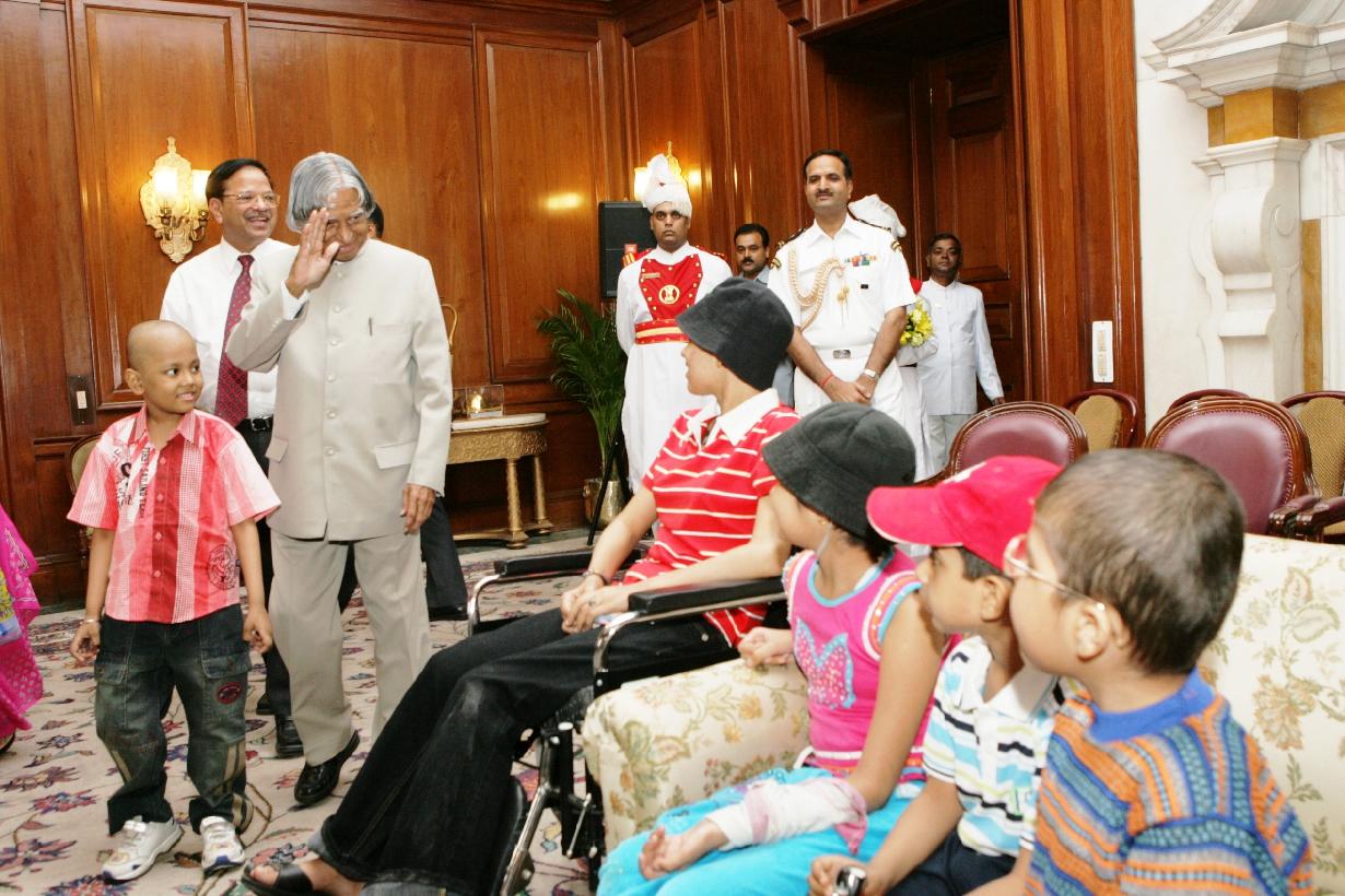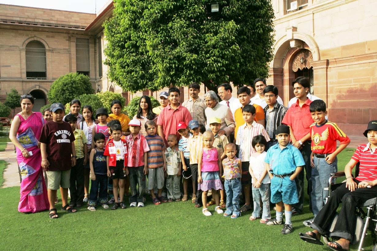 | Caption: | The President of India, Dr A P J Abdul Kalam with a Group of Children and Staff from Sir Ganga Ram Hospital who is undergoing of the treatment for Blood Cancer at the Committee Room of Rashtrapati Bhavan in New Delhi on May 30, 2007 |