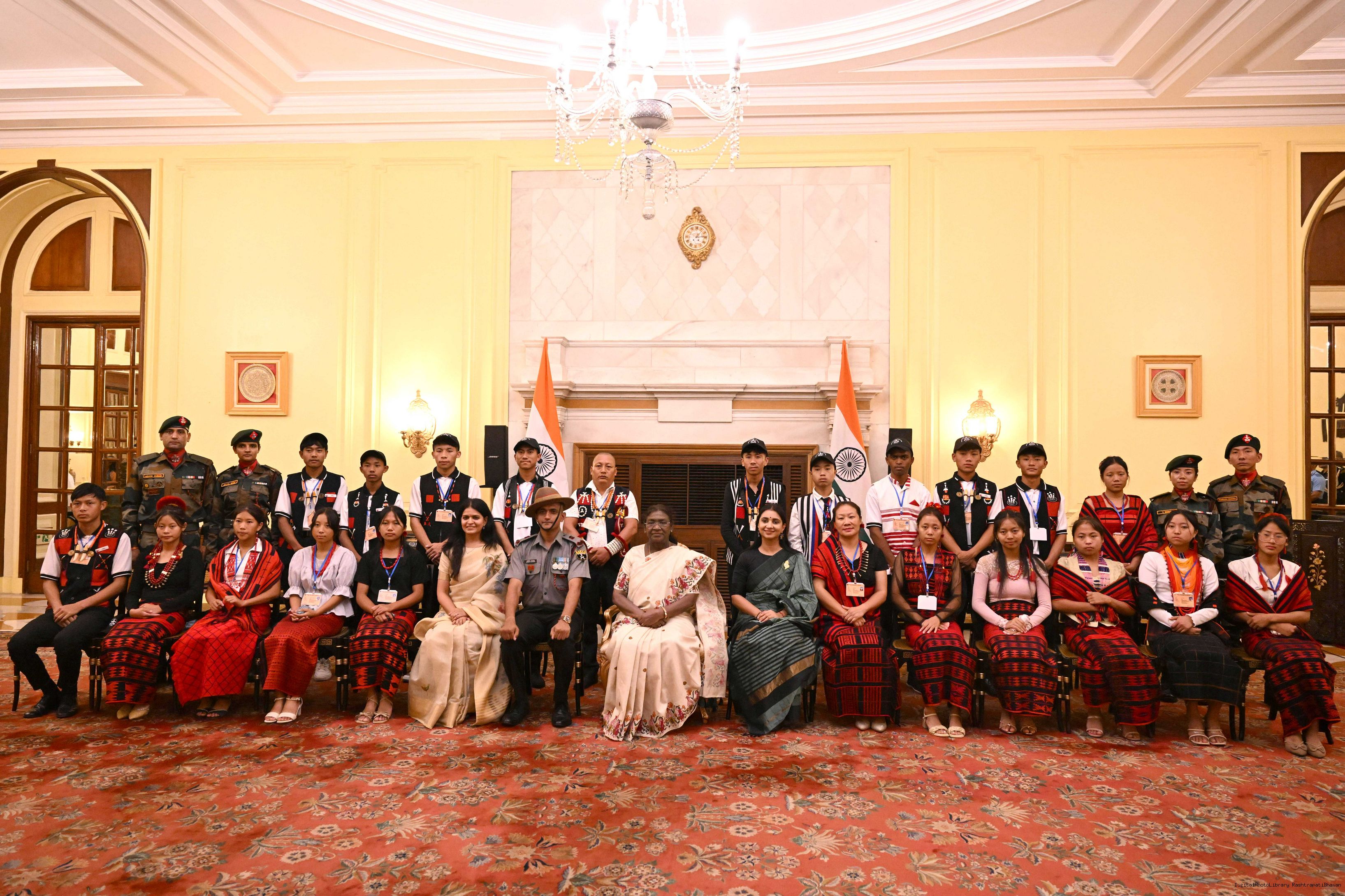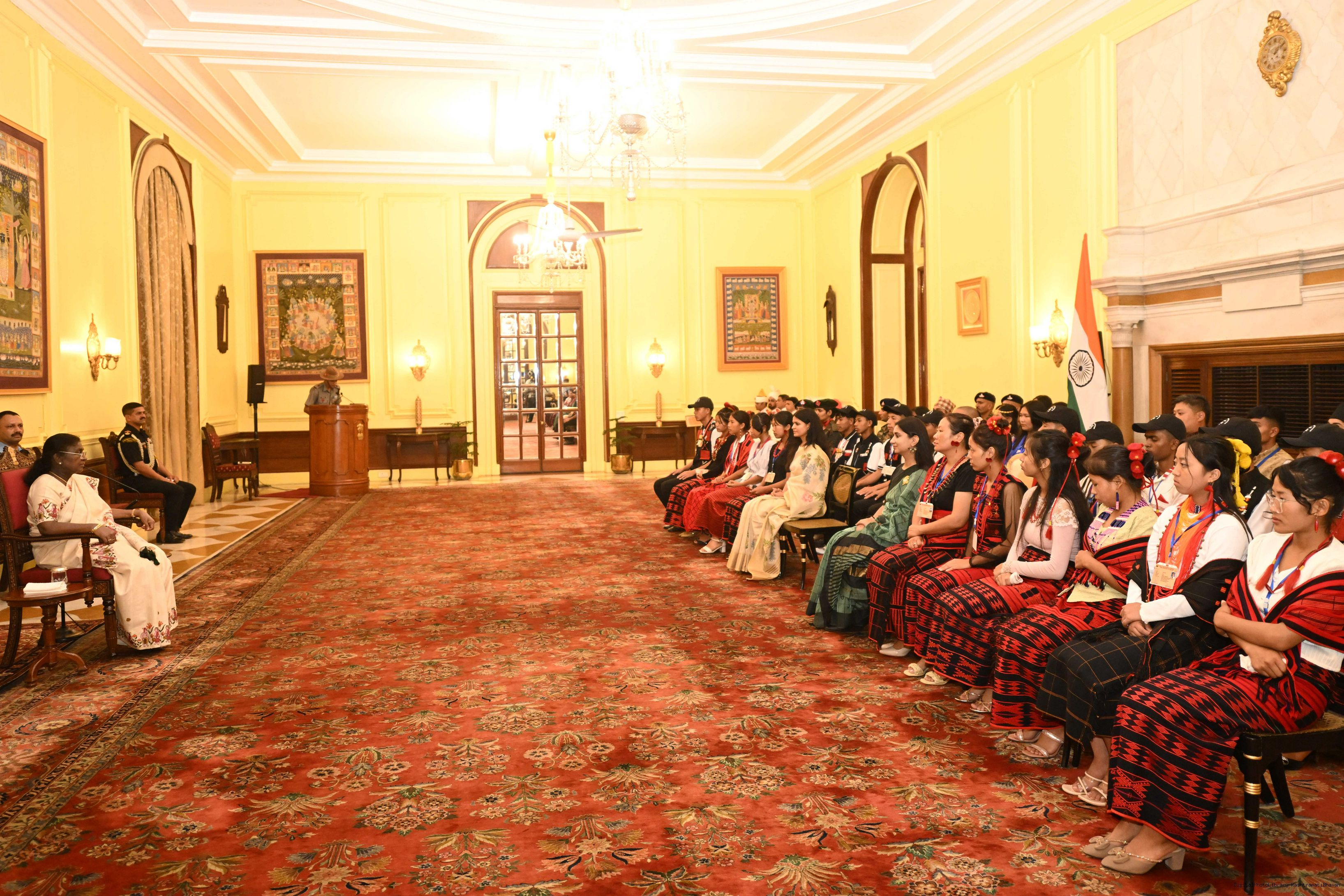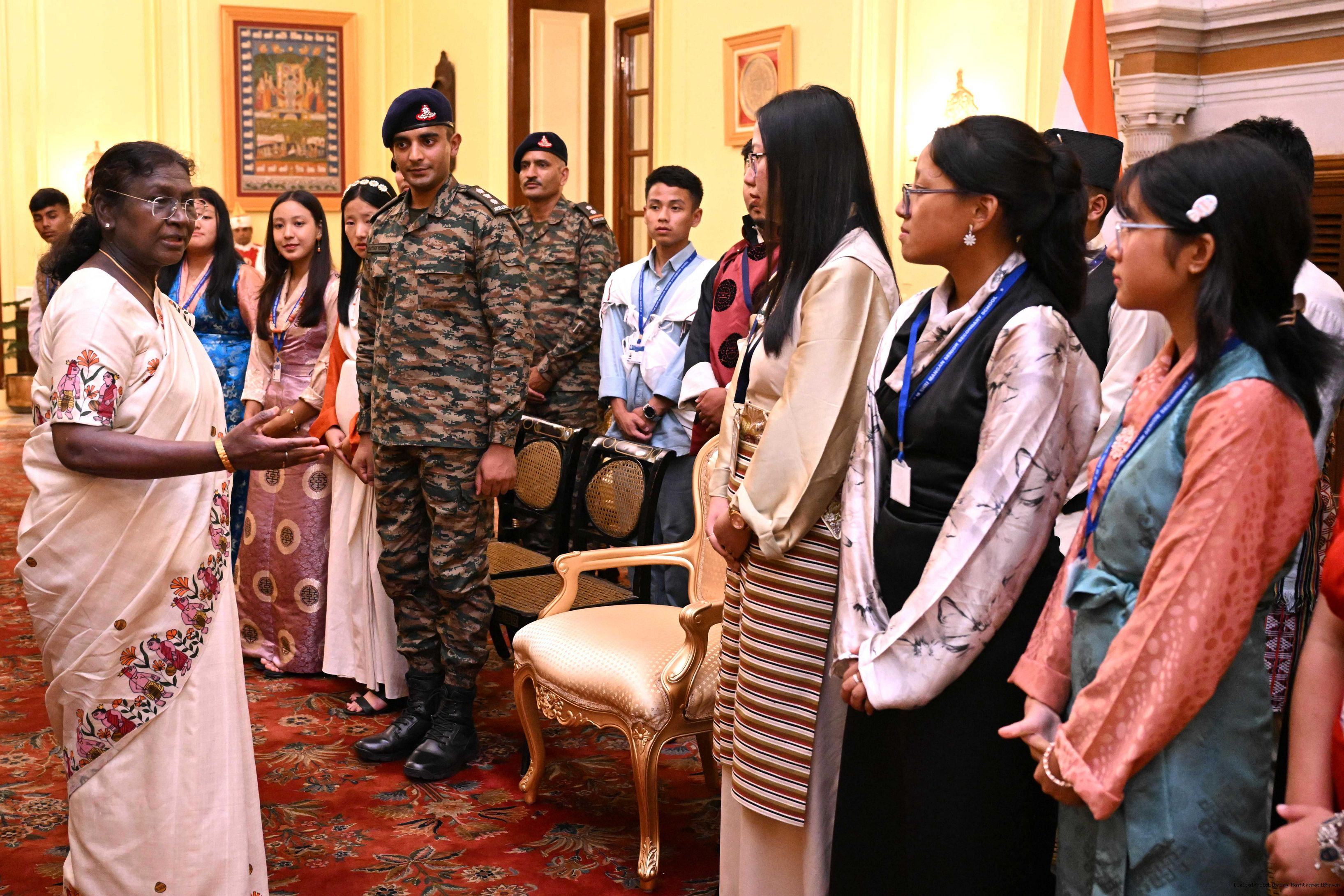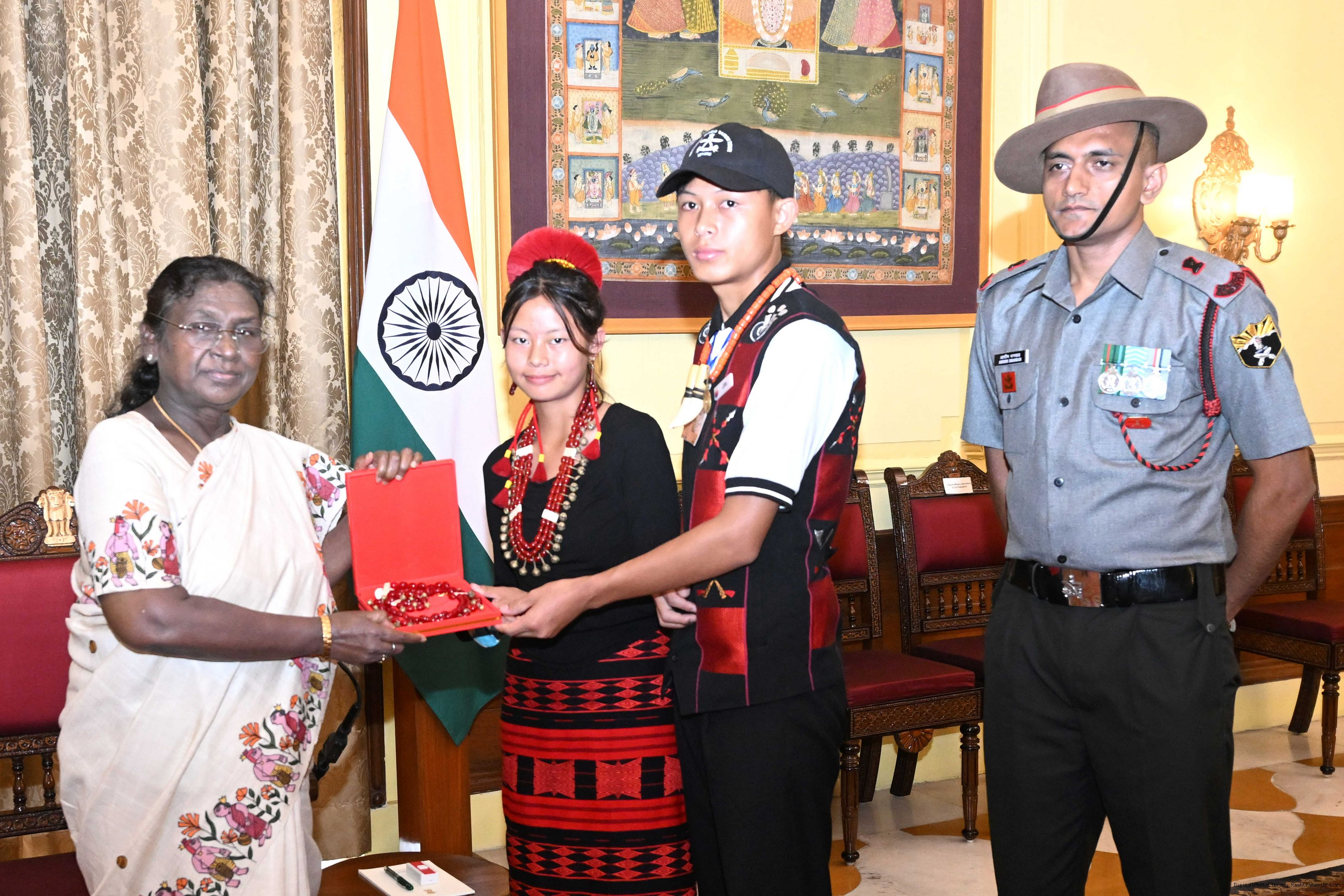 | Caption: | The President of India, Smt. Droupadi Murmu met group of students from Sikkim and Nagaland at Rashtrapati Bhavan on September 5, 2025. They visited Rashtrapati Bhavan as part of the National Integration Tour. |