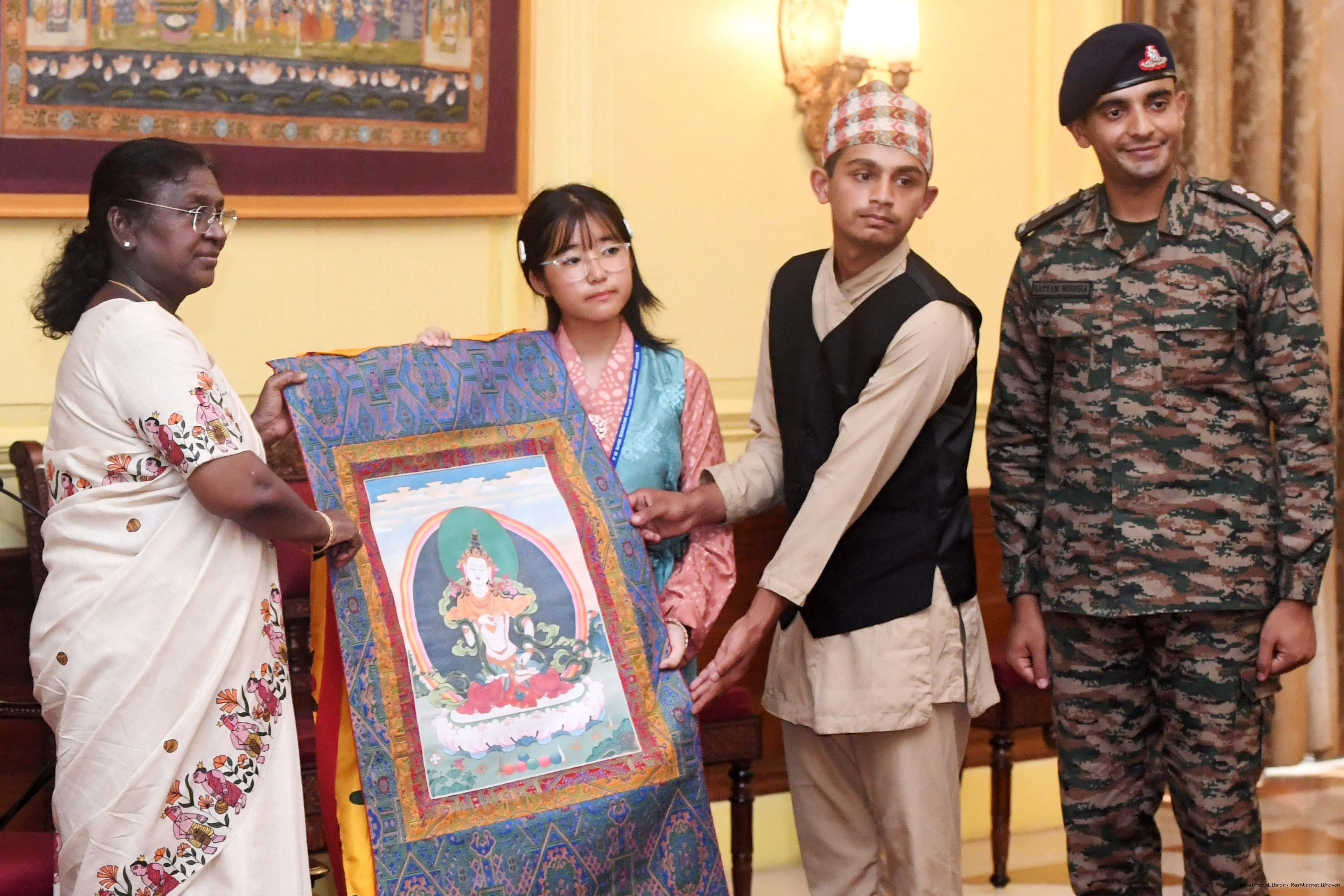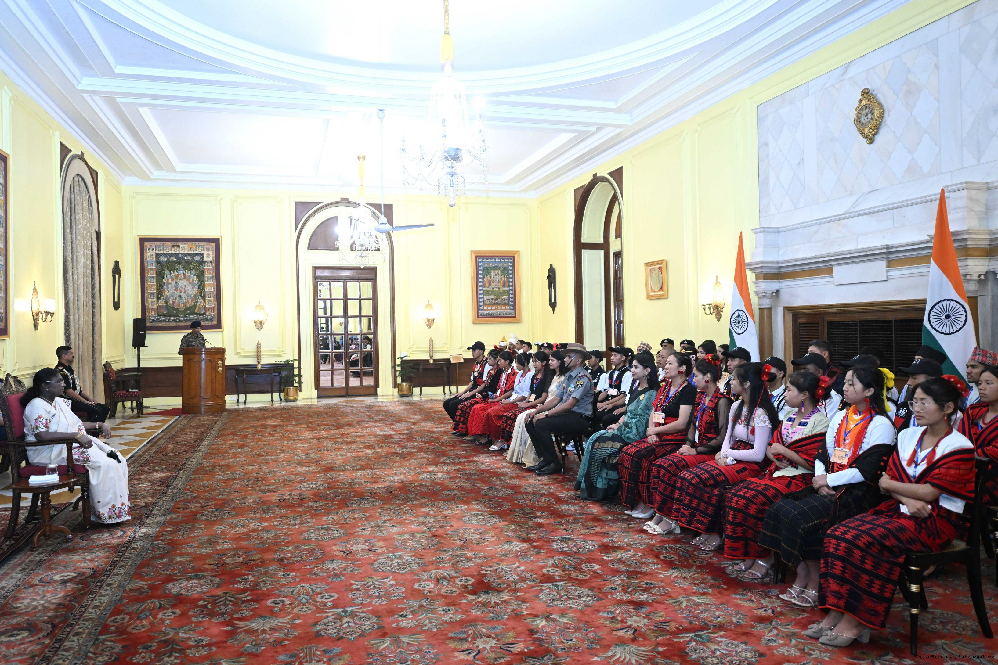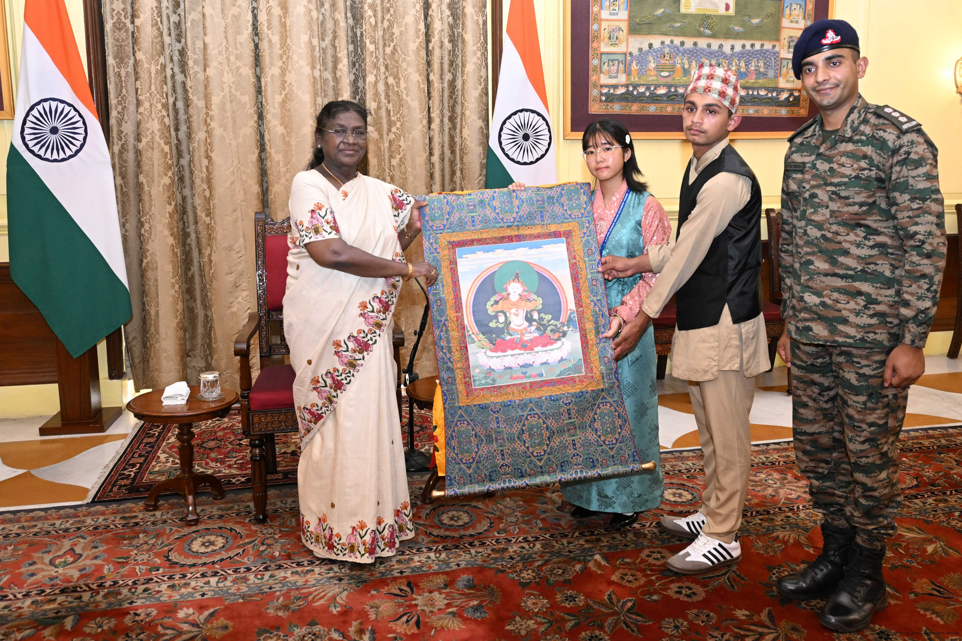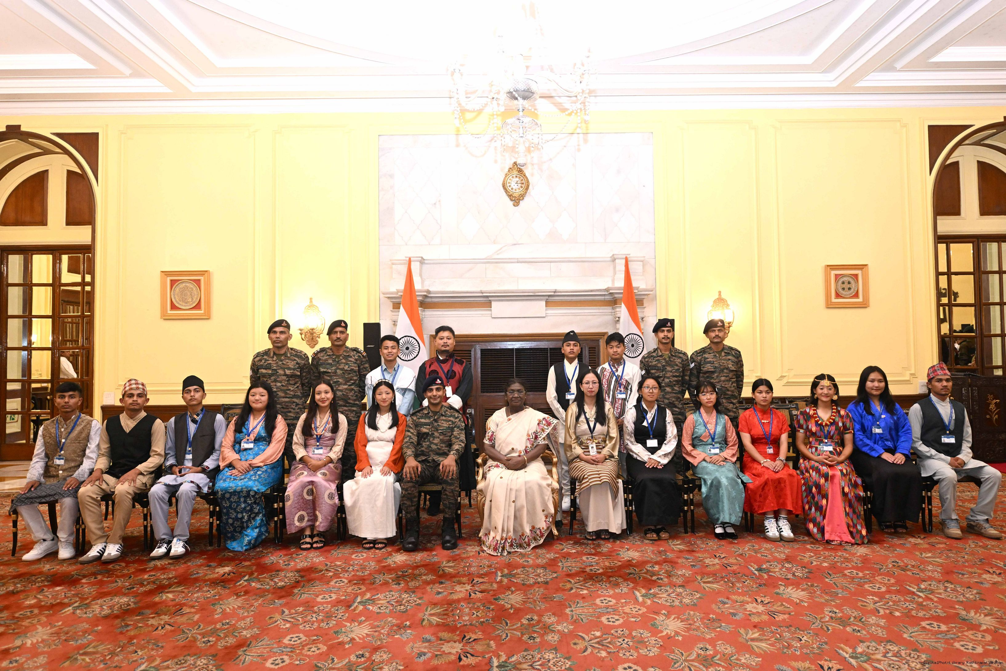 | Caption: | The President of India, Smt. Droupadi Murmu met group of students from Sikkim and Nagaland at Rashtrapati Bhavan on September 5, 2025. They visited Rashtrapati Bhavan as part of the National Integration Tour. |