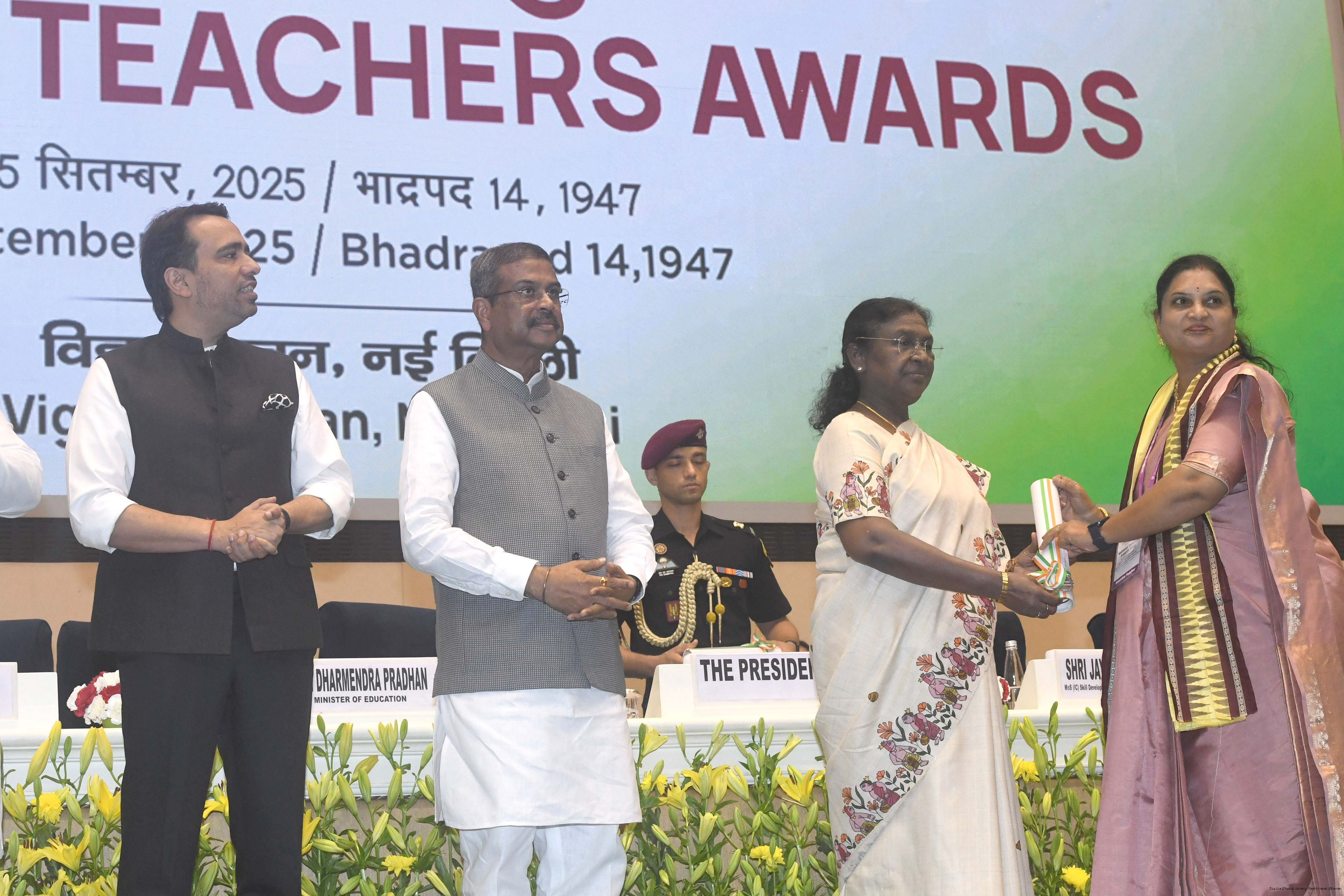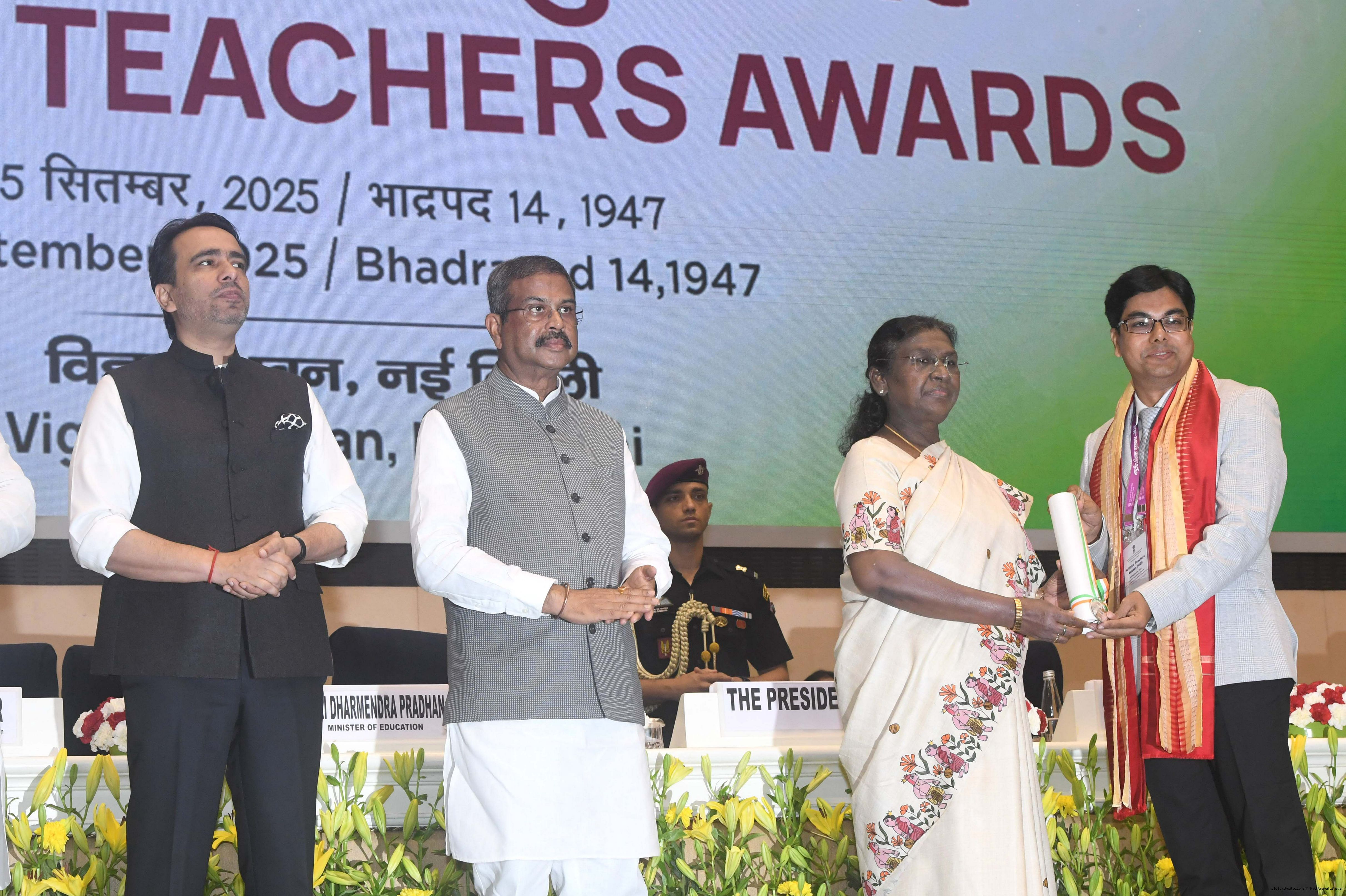 | Caption: | The President of India, Smt Droupadi Murmu, conferred National Awards on teachers from across the country at a function held in New Delhi on September 5, 2025, on Teachers’ Day. |