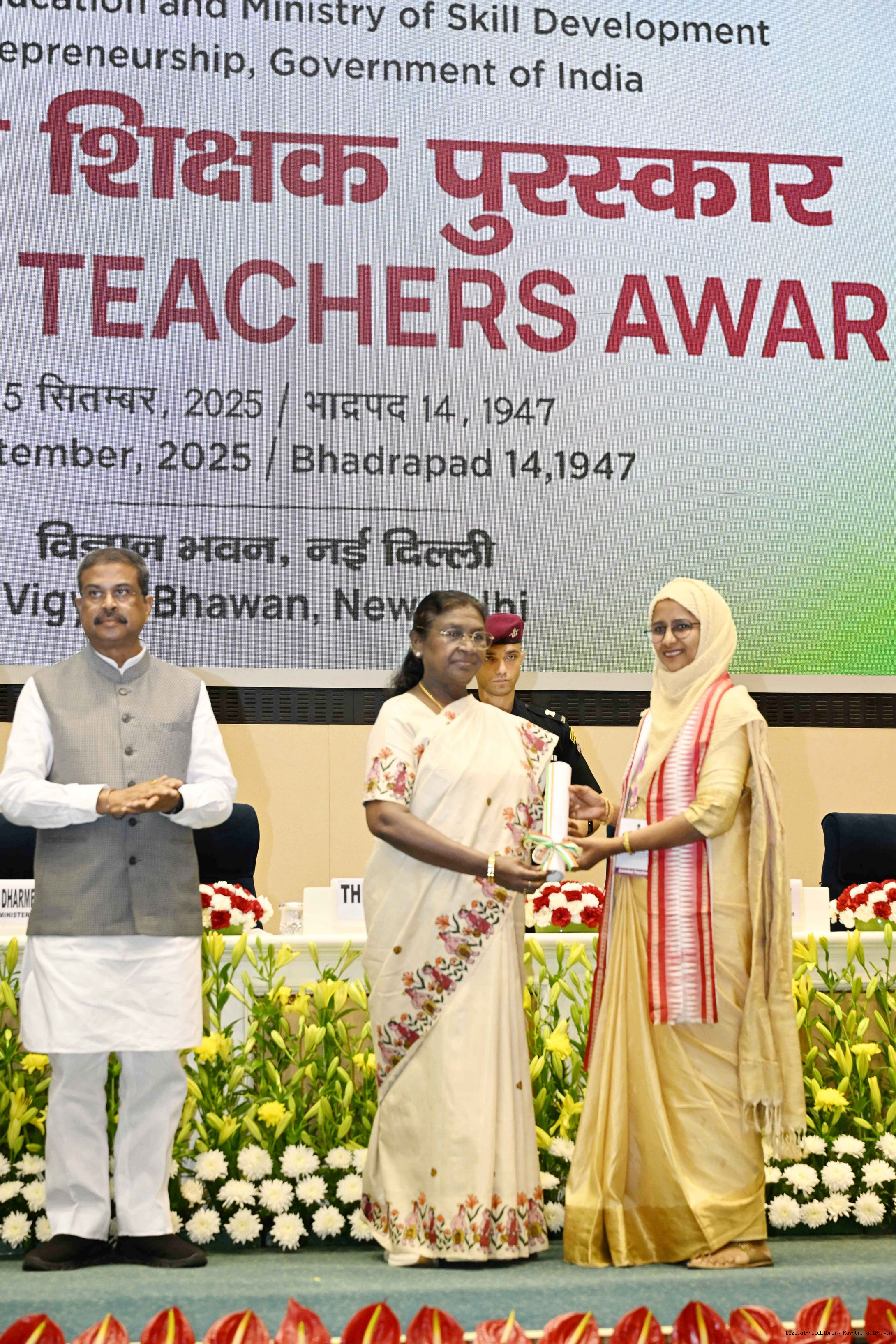| Caption: | The President of India, Smt Droupadi Murmu, conferred National Awards on teachers from across the country at a function held in New Delhi on September 5, 2025, on Teachers’ Day. |