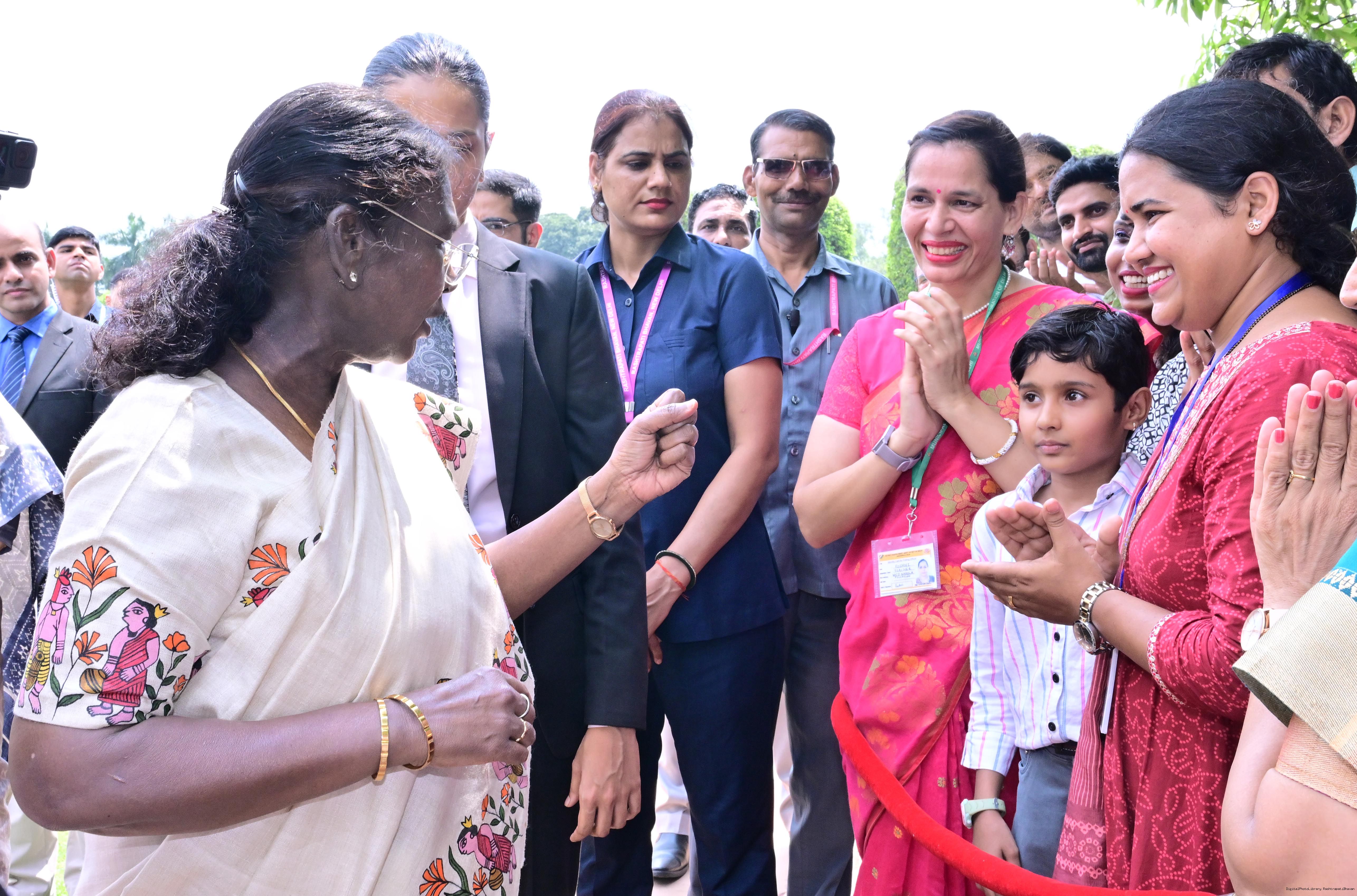 | Caption: | The President of India, Smt. Droupadi Murmu interacted with the teachers at Amrit Udyan on September 5, 2025. They were exclusively invited to visit the Udyan on the occasion of Teachers’ Day. |