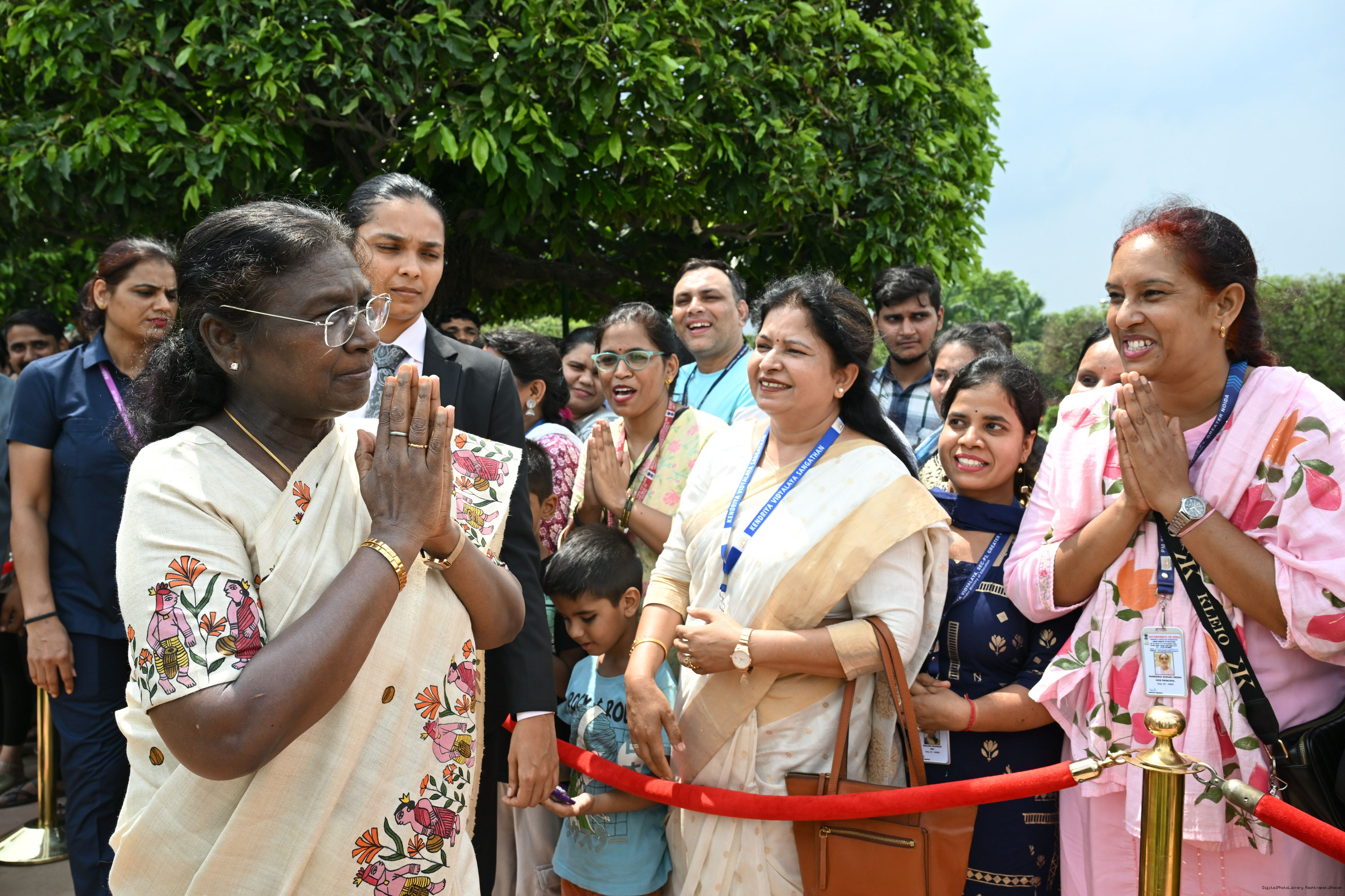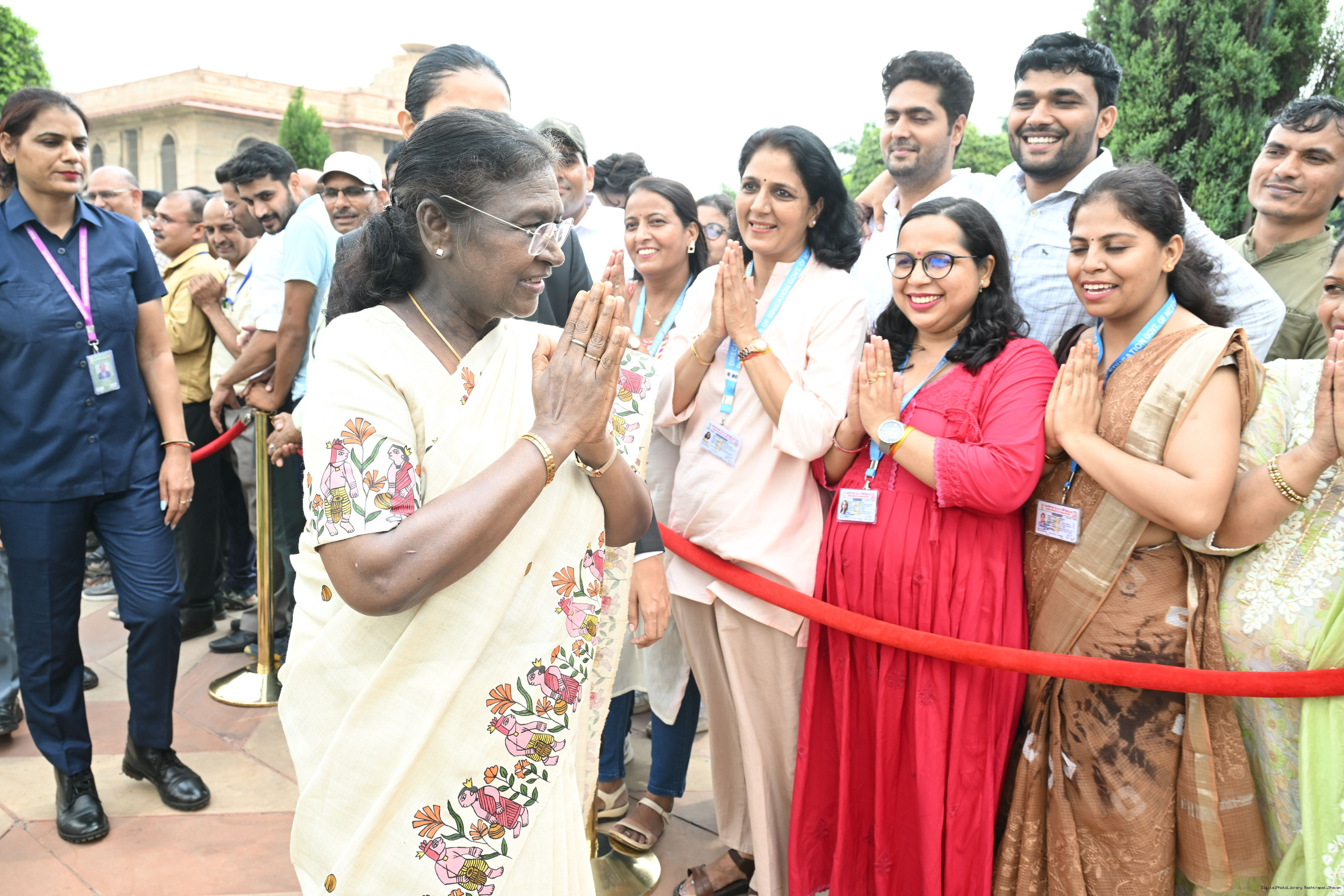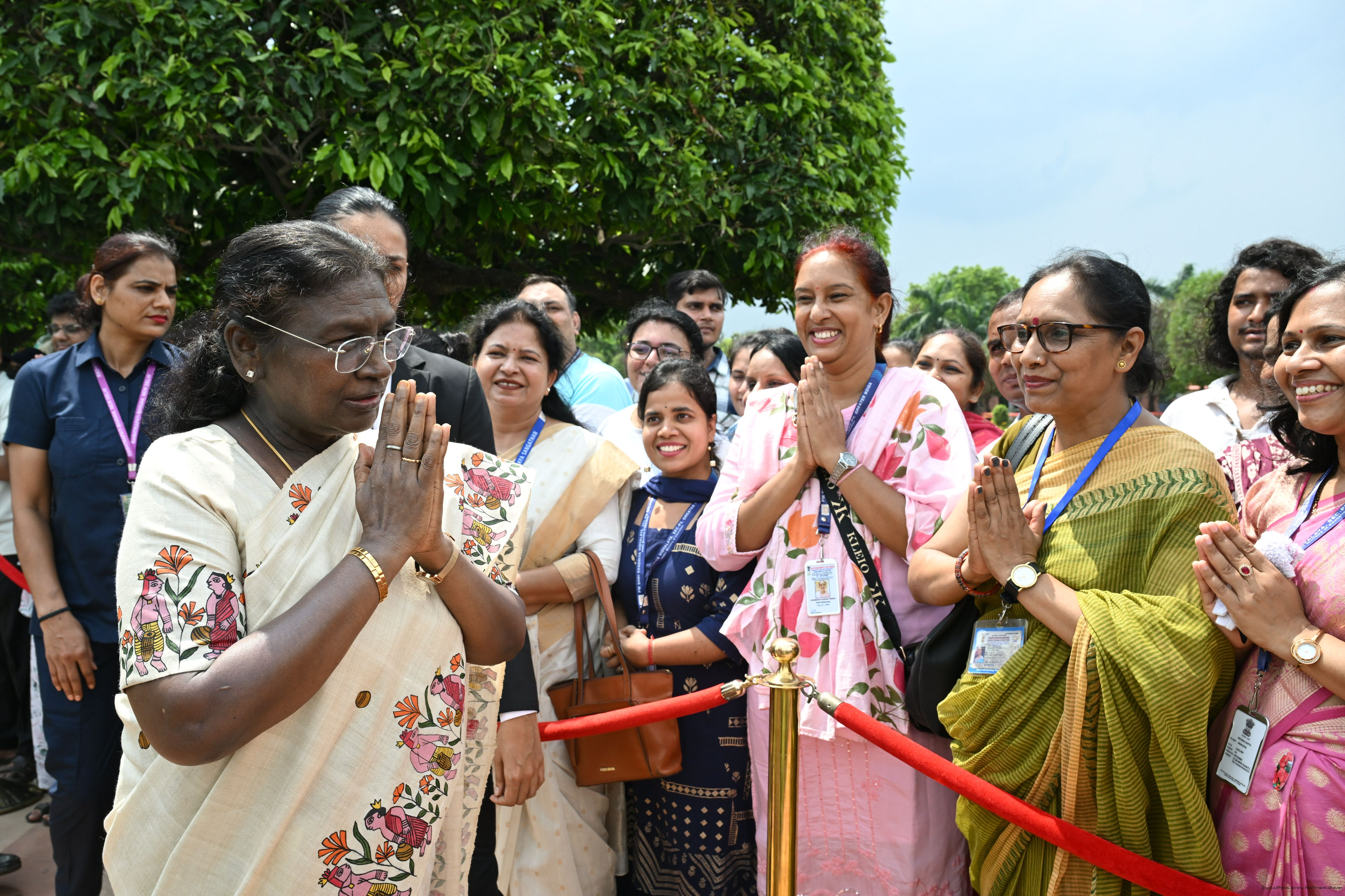 | Caption: | The President of India, Smt. Droupadi Murmu interacted with the teachers at Amrit Udyan on September 5, 2025. They were exclusively invited to visit the Udyan on the occasion of Teachers’ Day. |