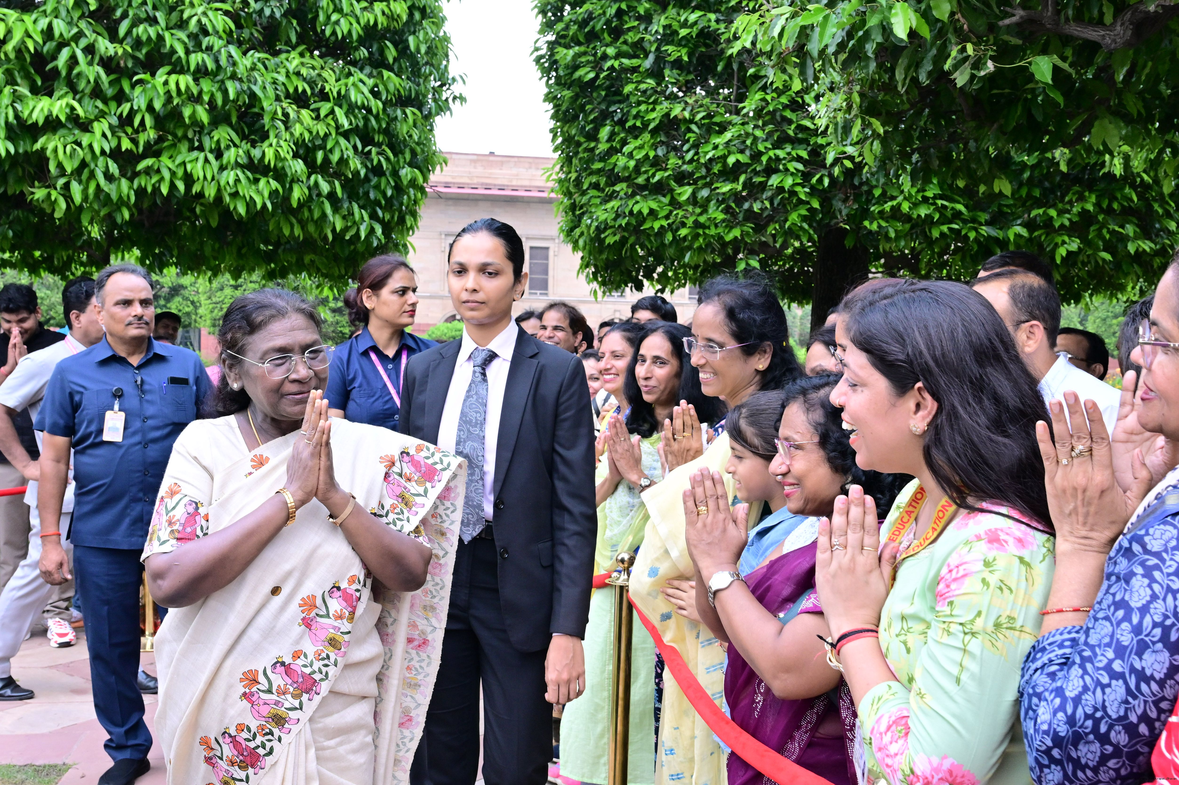 | Caption: | The President of India, Smt. Droupadi Murmu interacted with the teachers at Amrit Udyan on September 5, 2025. They were exclusively invited to visit the Udyan on the occasion of Teachers’ Day. |