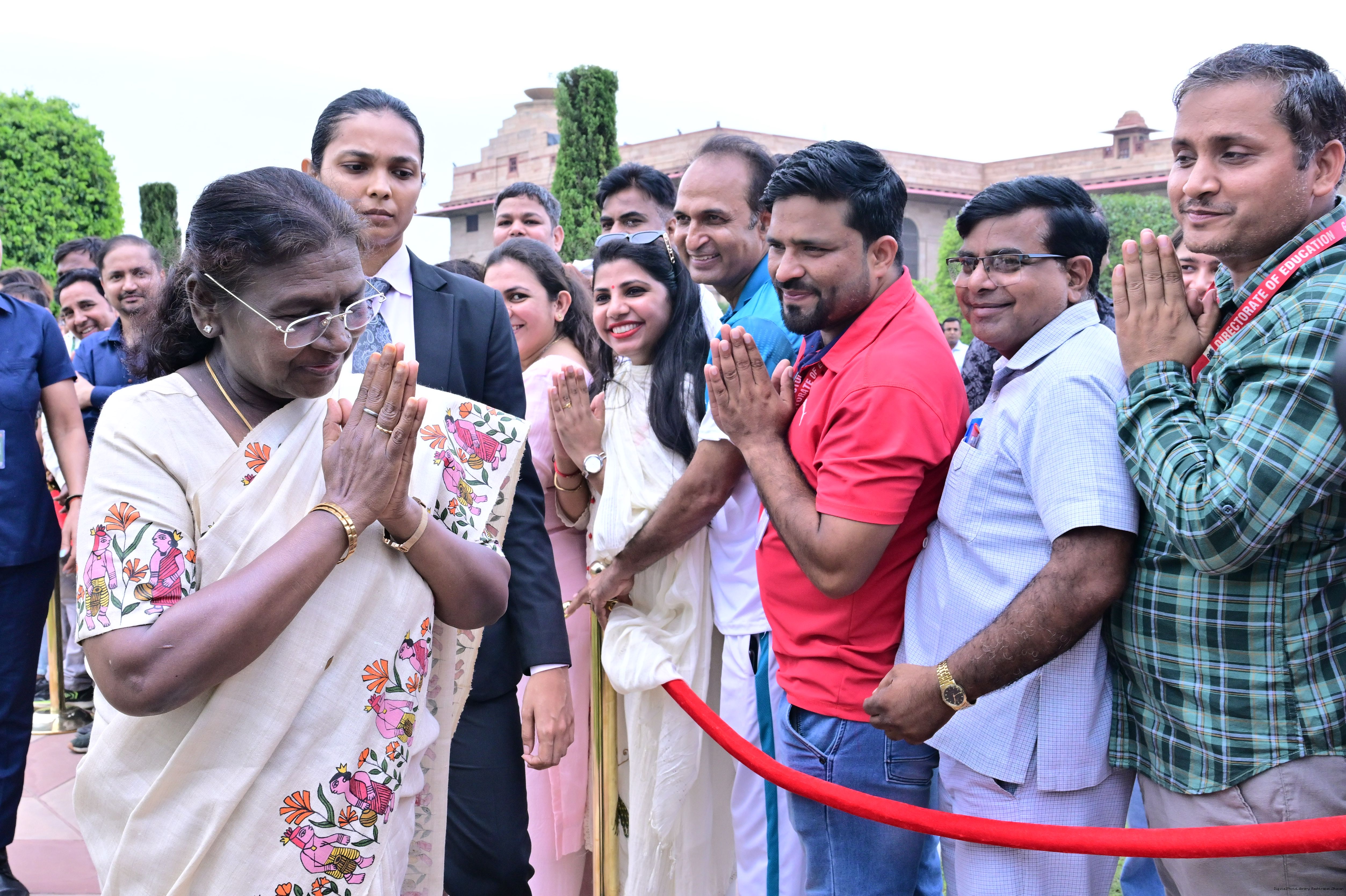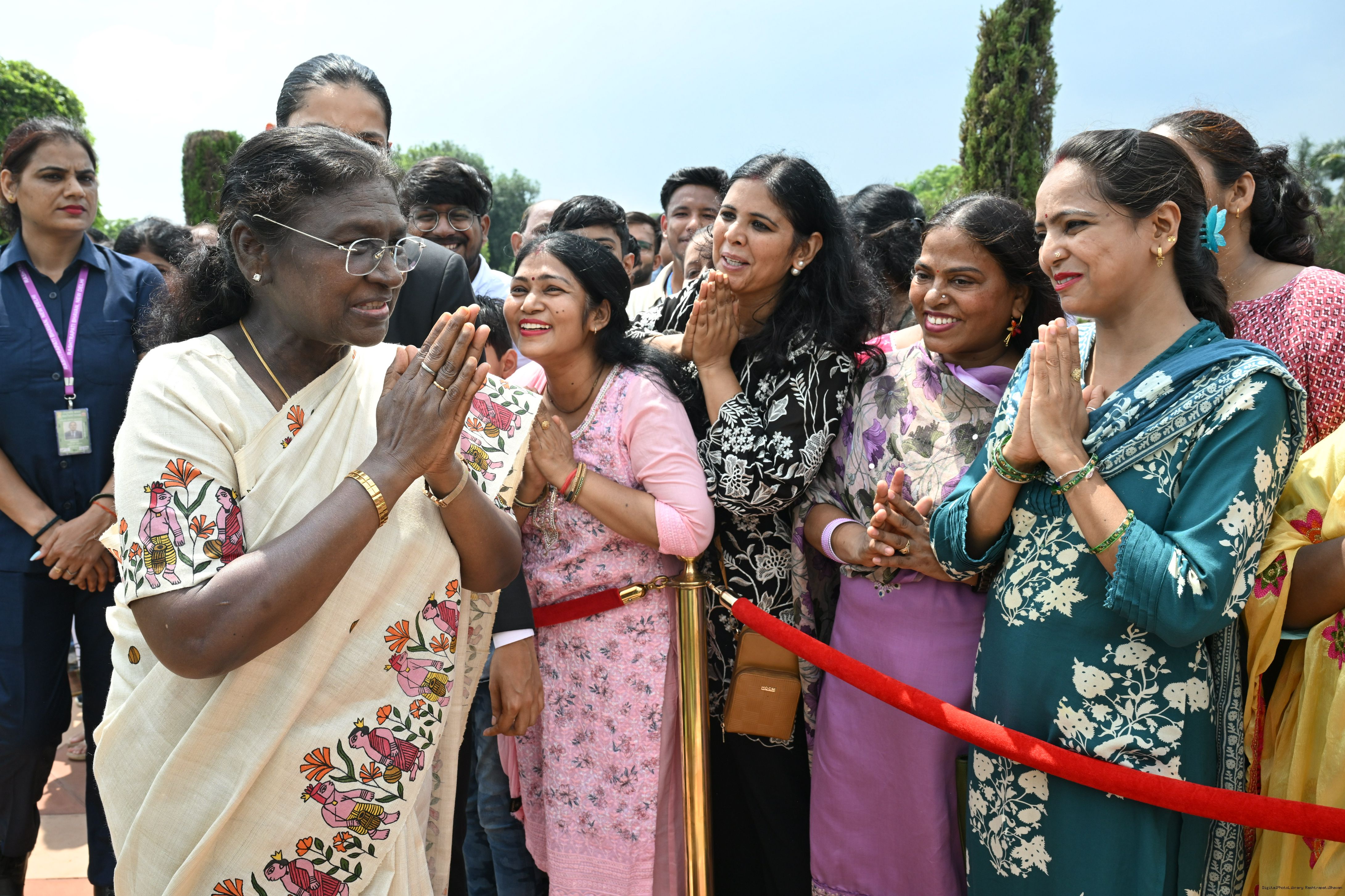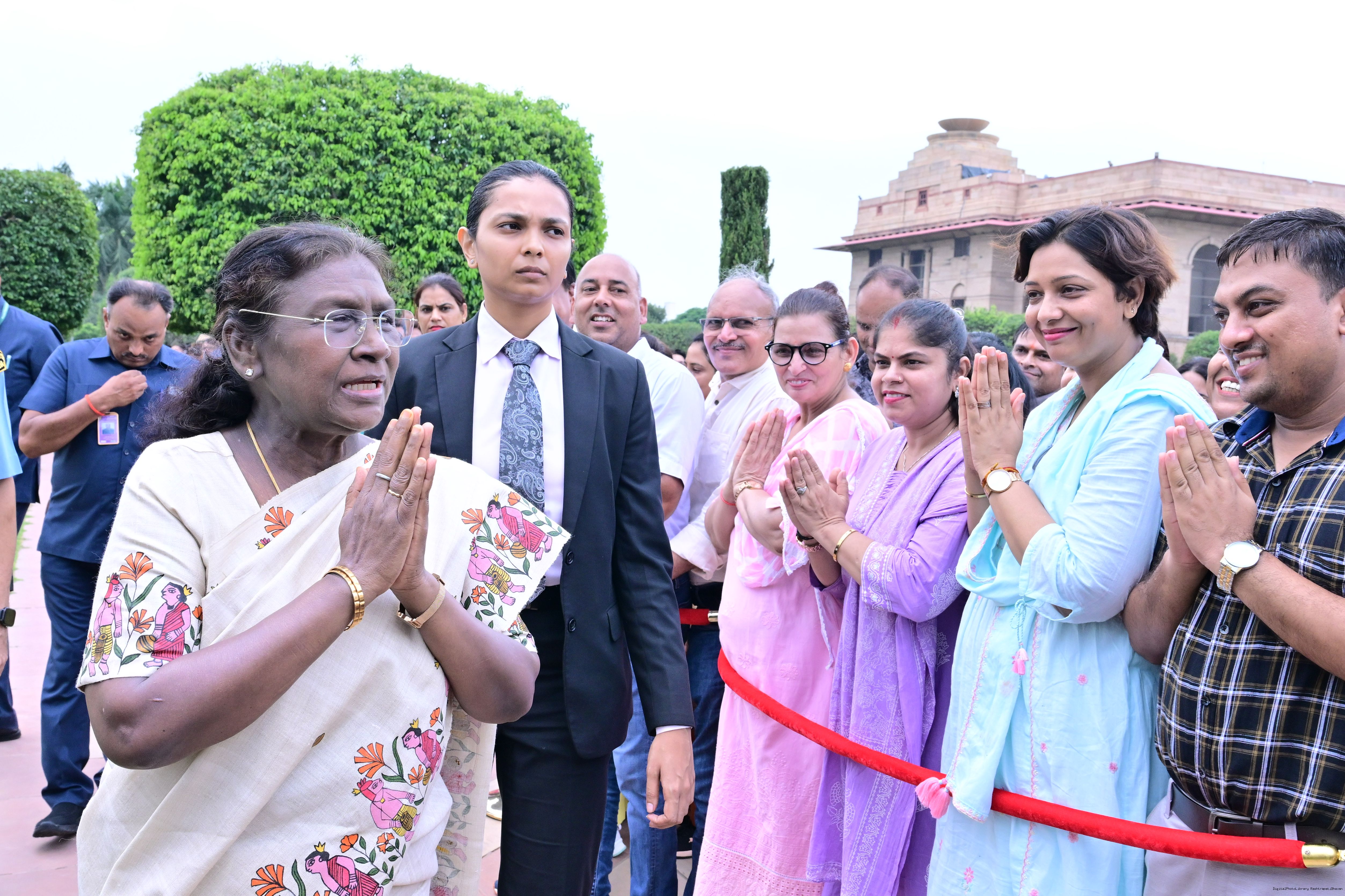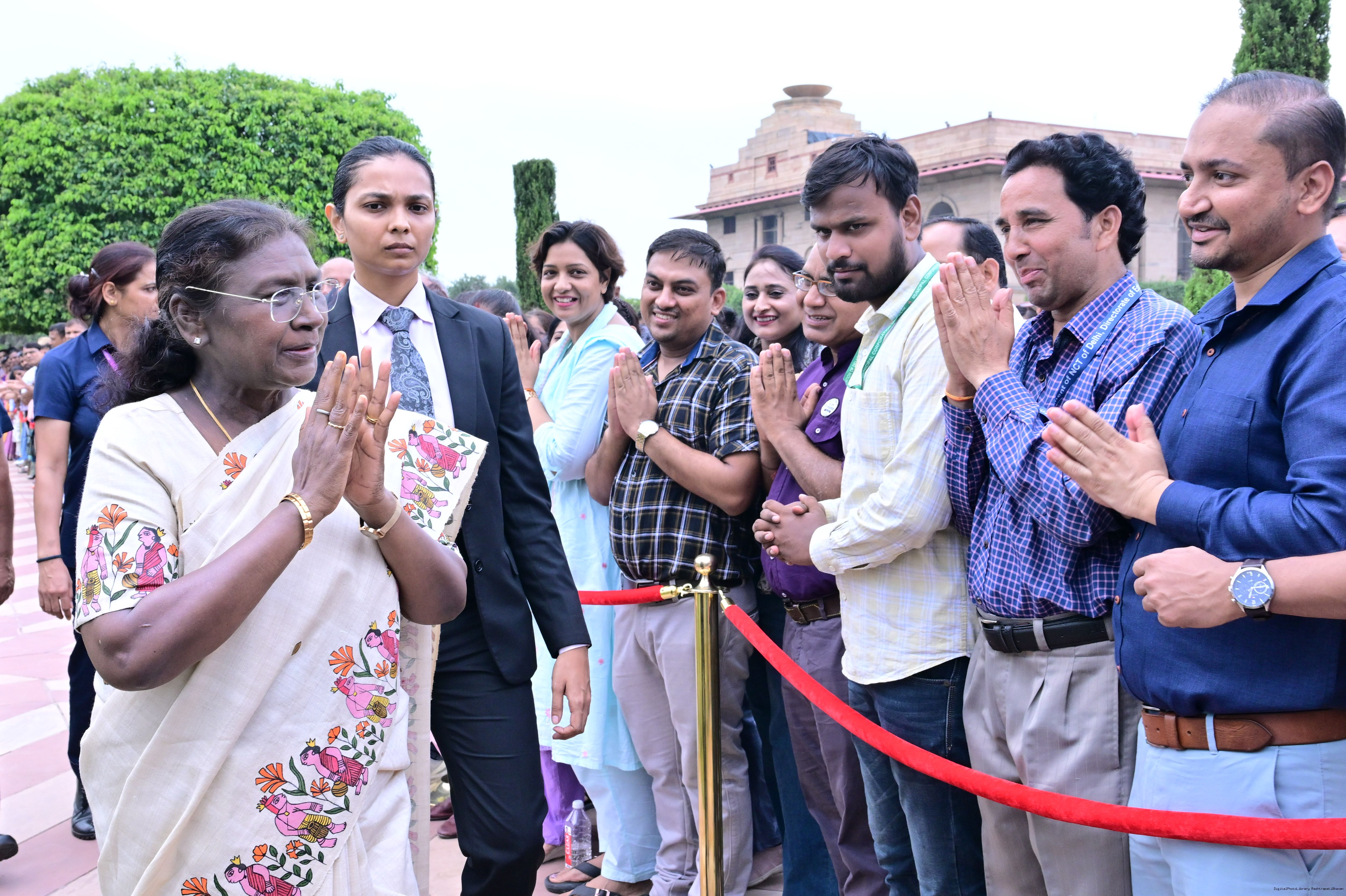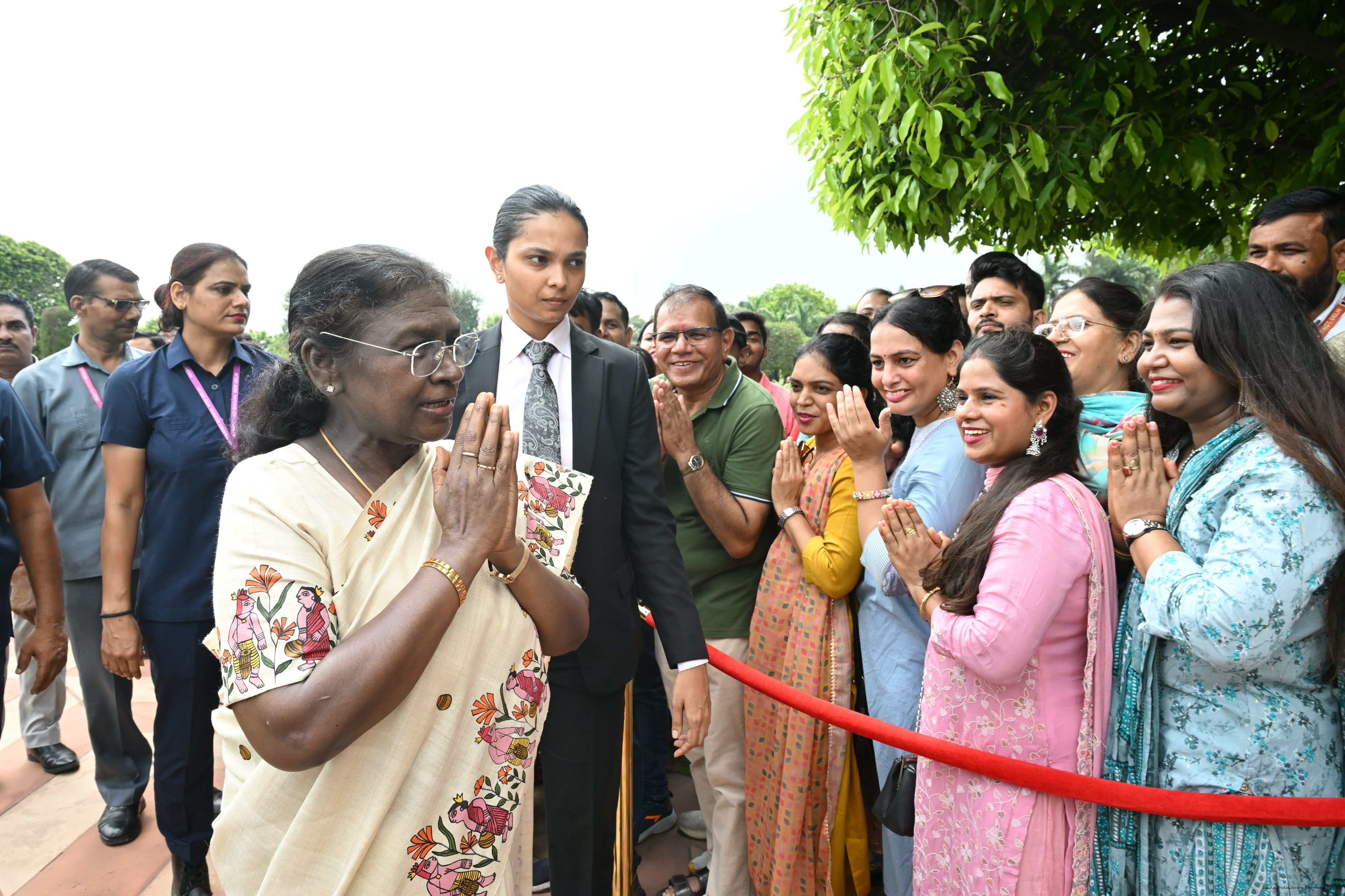 | Caption: | The President of India, Smt. Droupadi Murmu interacted with the teachers at Amrit Udyan on September 5, 2025. They were exclusively invited to visit the Udyan on the occasion of Teachers’ Day. |