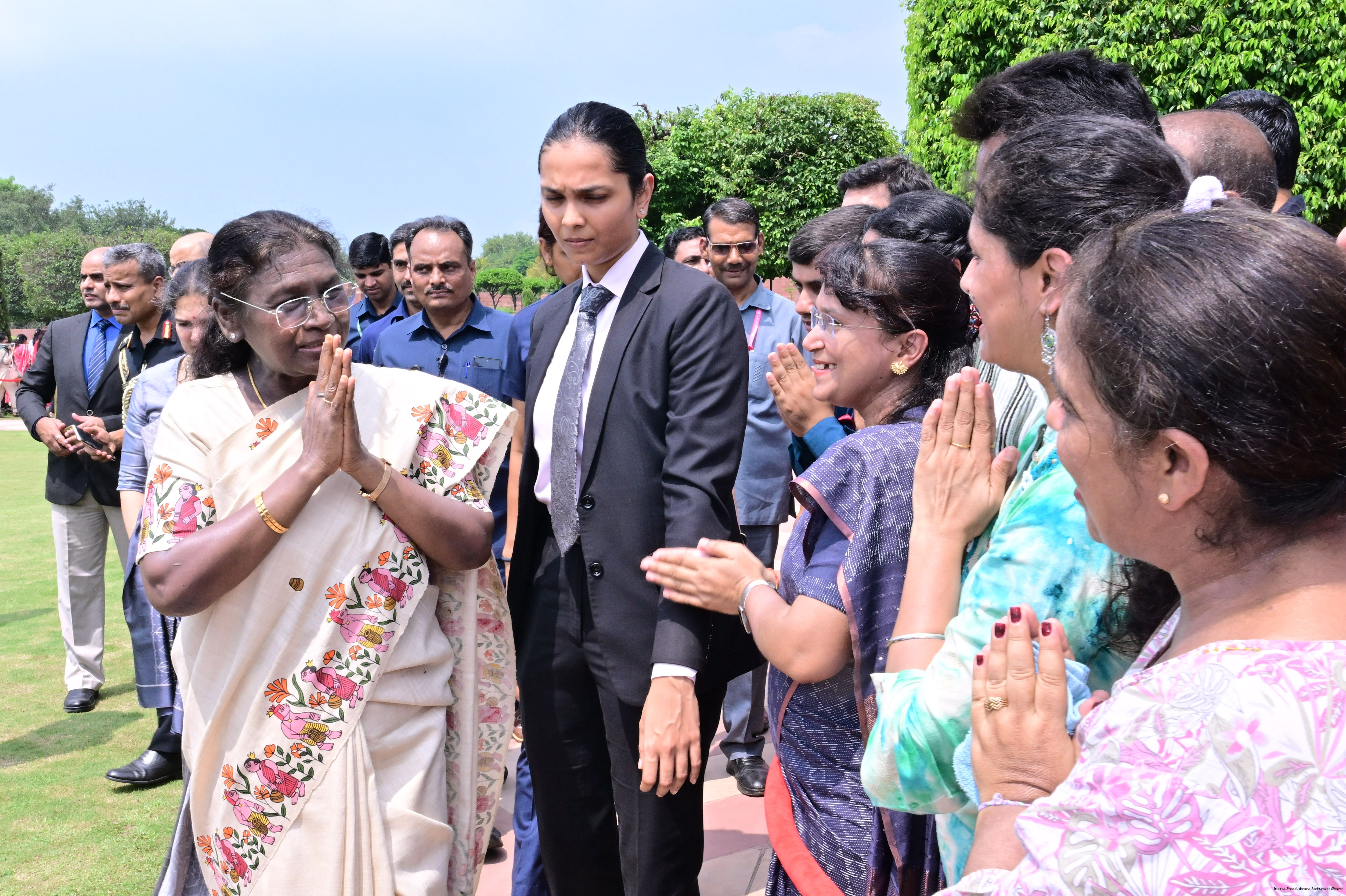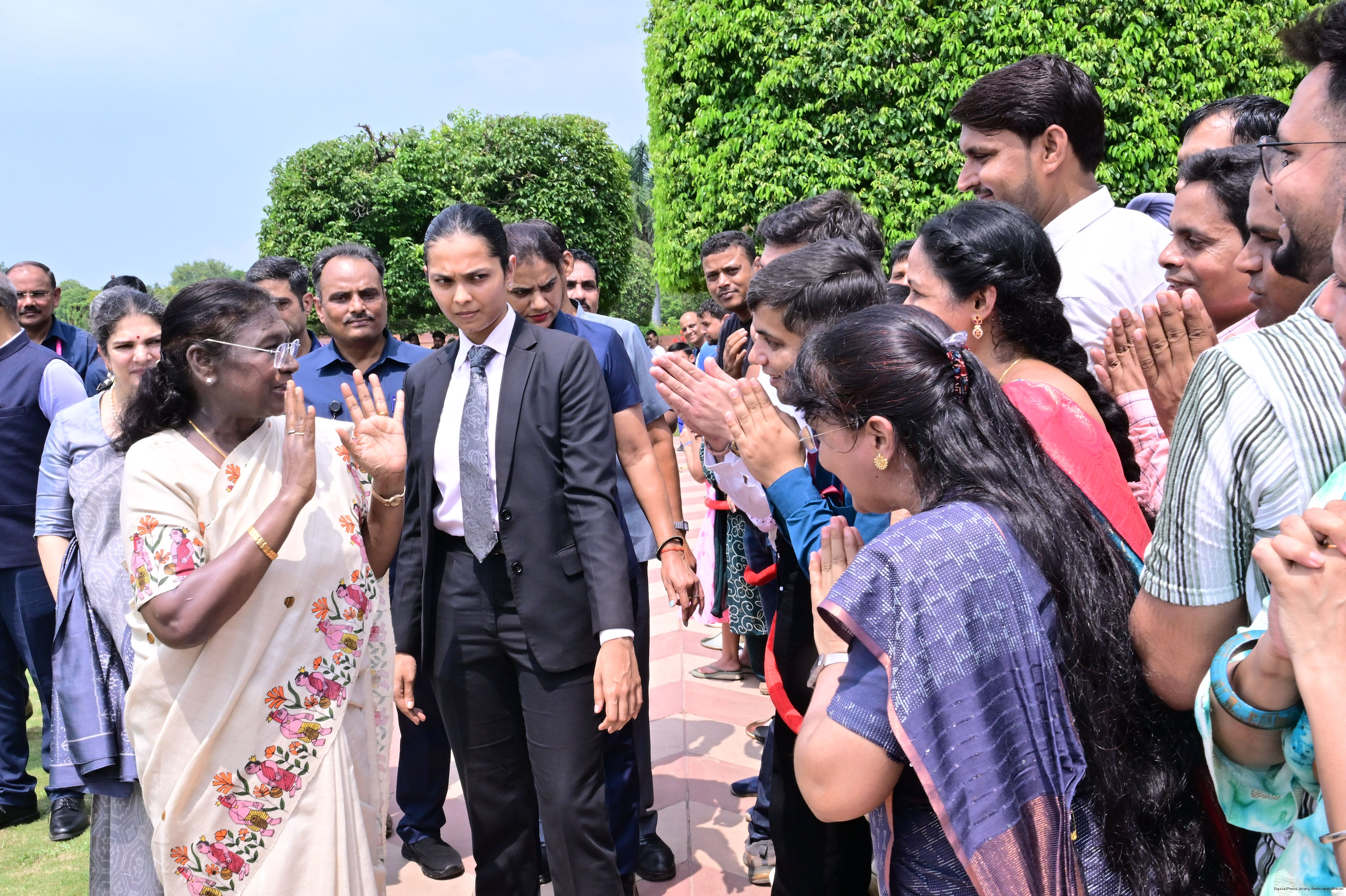 | Caption: | The President of India, Smt. Droupadi Murmu interacted with the teachers at Amrit Udyan on September 5, 2025. They were exclusively invited to visit the Udyan on the occasion of Teachers’ Day. |