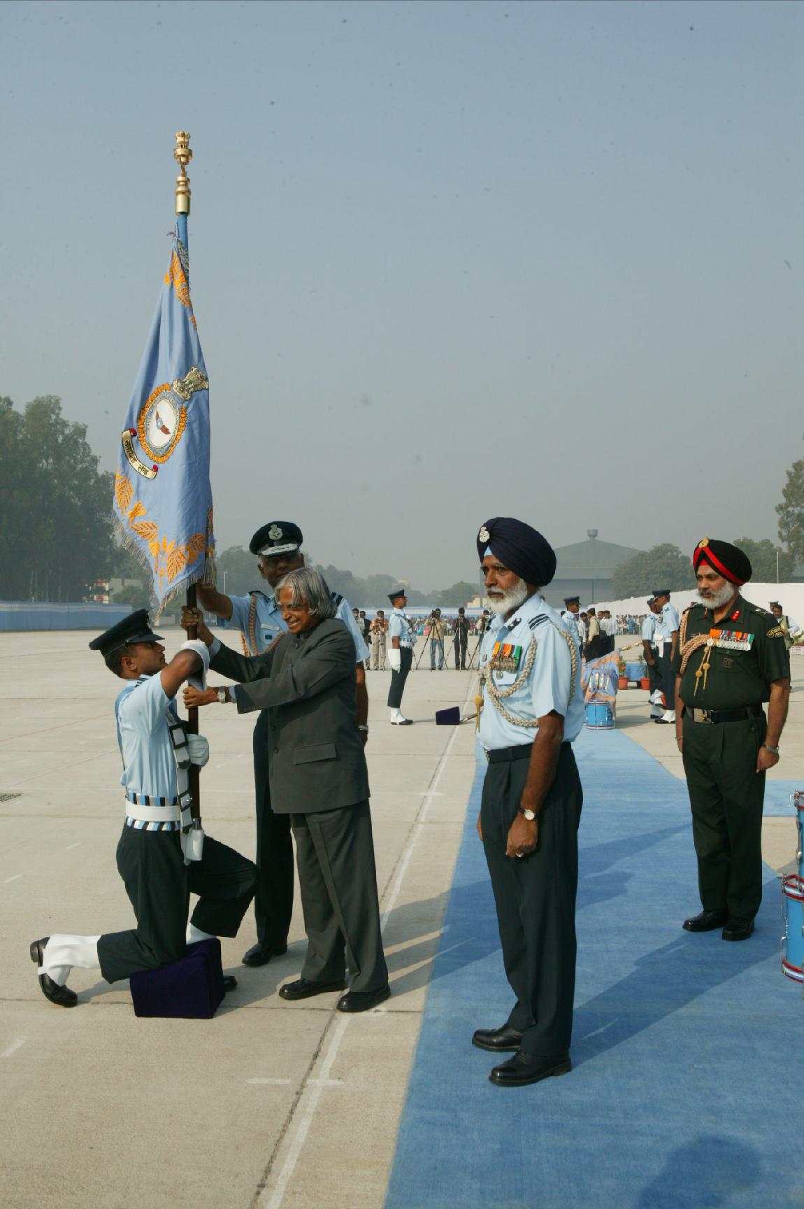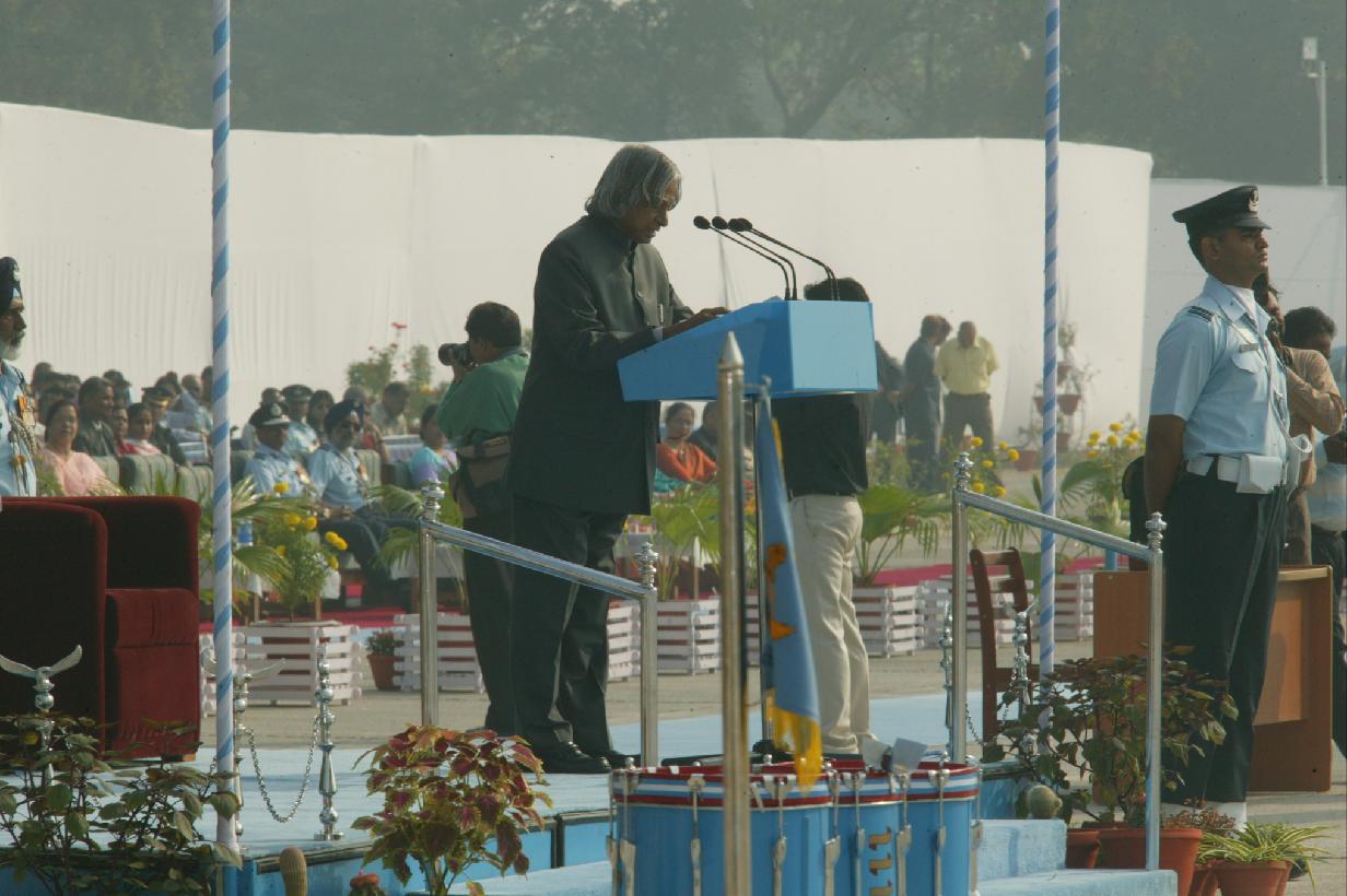 | Caption: | The President of India, Dr A P J Abdul Kalam during the Presentation of Colour to 1 Base Repair Depot and Standard to Aircrew Examining Board in Kanpur in Uttar Pradesh on Nov 01, 2004 |