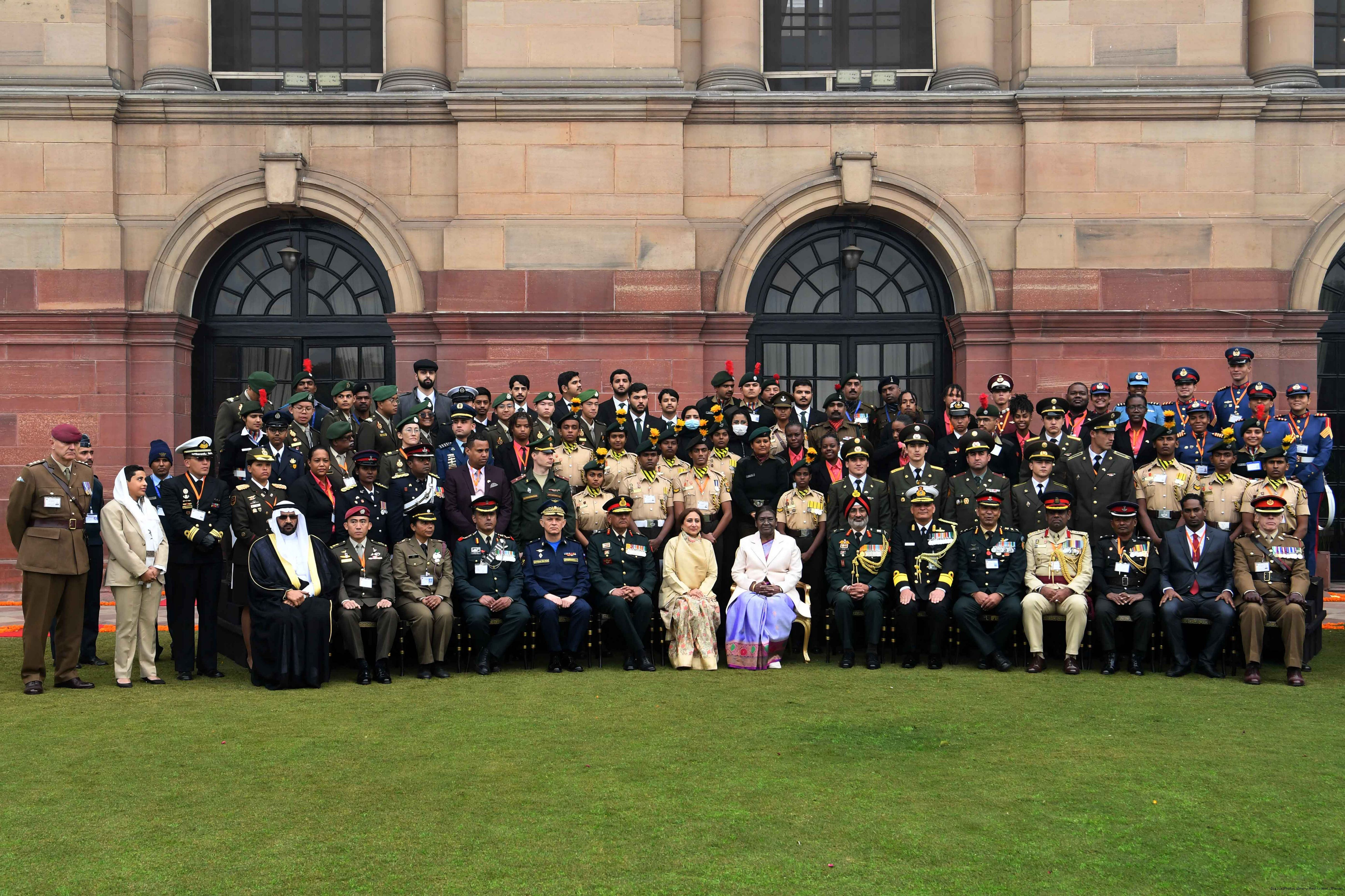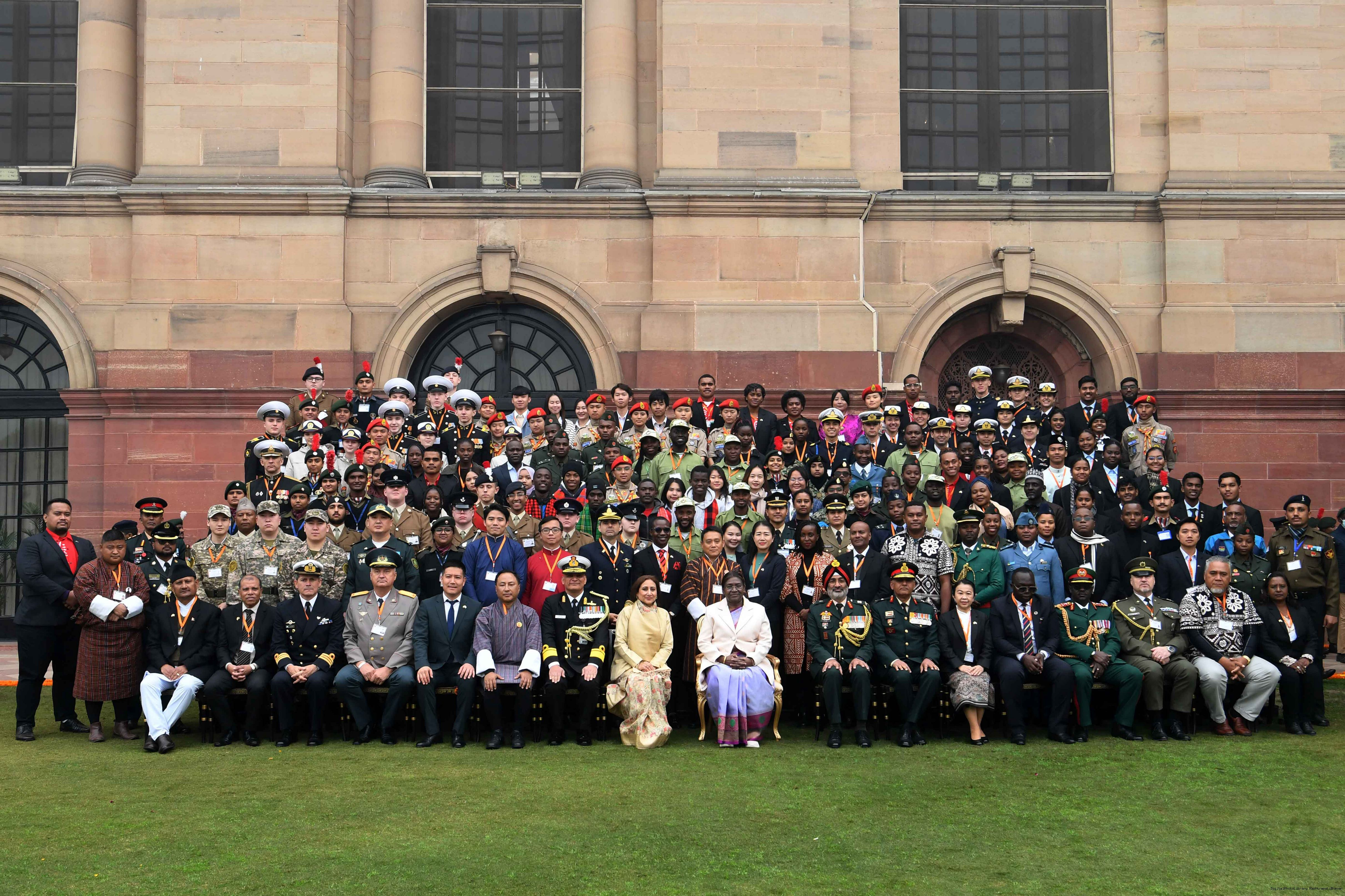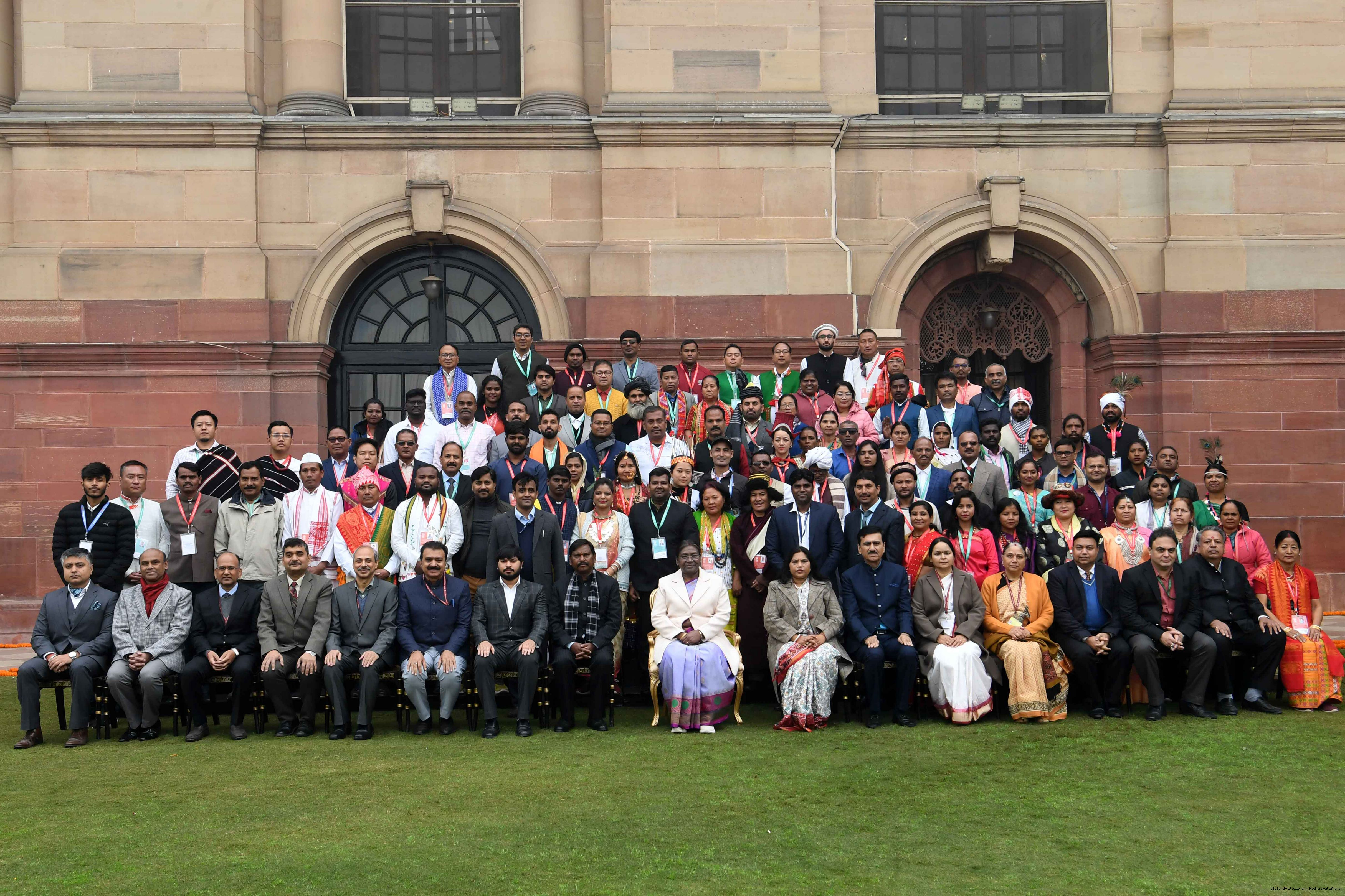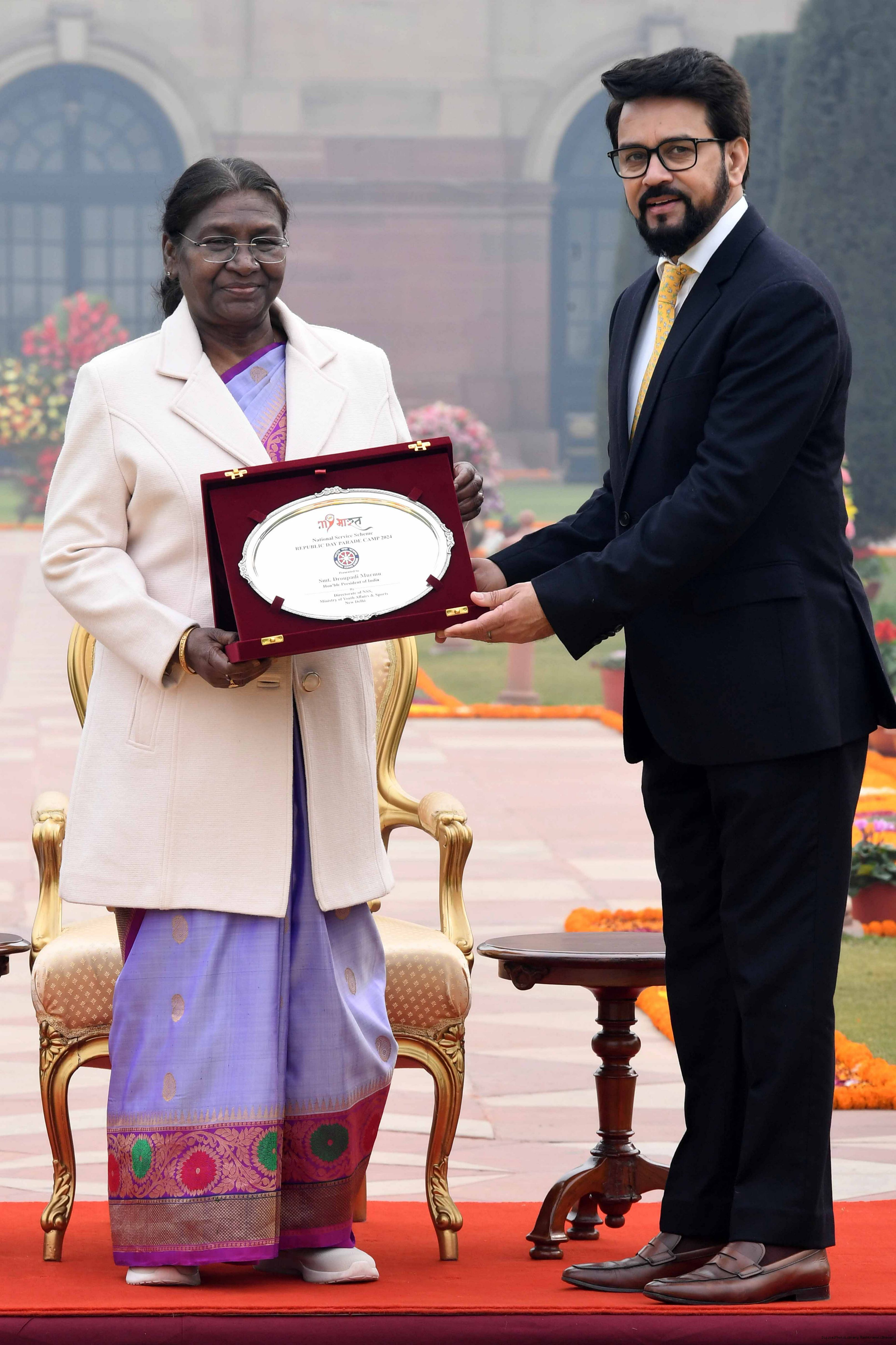 | Caption: | The President of India, Smt. Droupadi Murmu met tribal guests, tableaux artistes and tractor drivers, NSS volunteers and NCC cadets, officials and other participants of the Republic Day Parade 2024, at Rashtrapati Bhavan on January 28, 2024. |