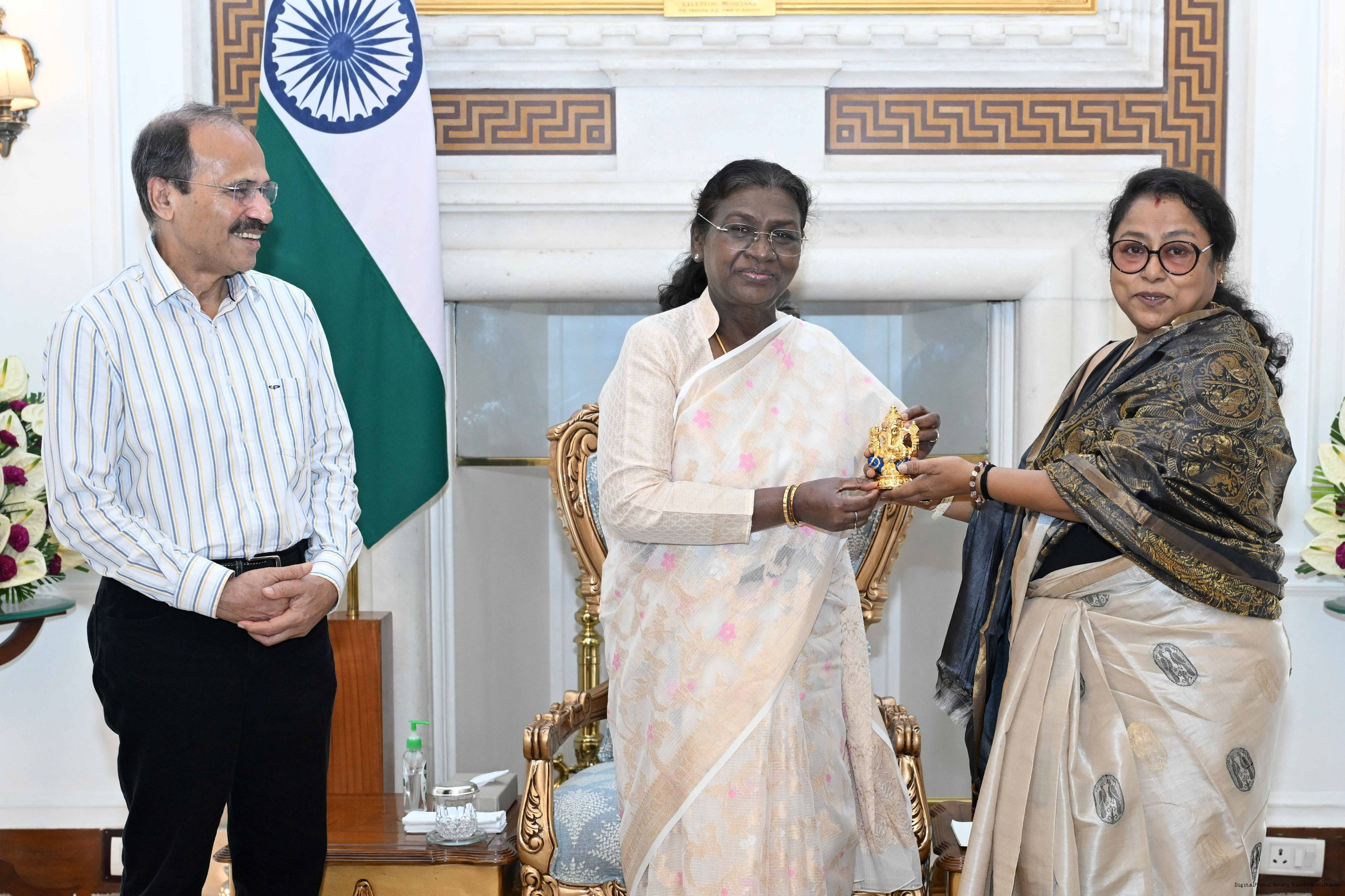 | Caption: | Shri Adhir Ranjan Chowdhary, former Union Minister and Leader of Indian National Congress in 17th Lok Sabha along with spouse Dr. Atasi Chowdhary meeting with the President of India, Smt. Droupadi Murmu at Rashtrapati Bhavan on September 10, 2025. |