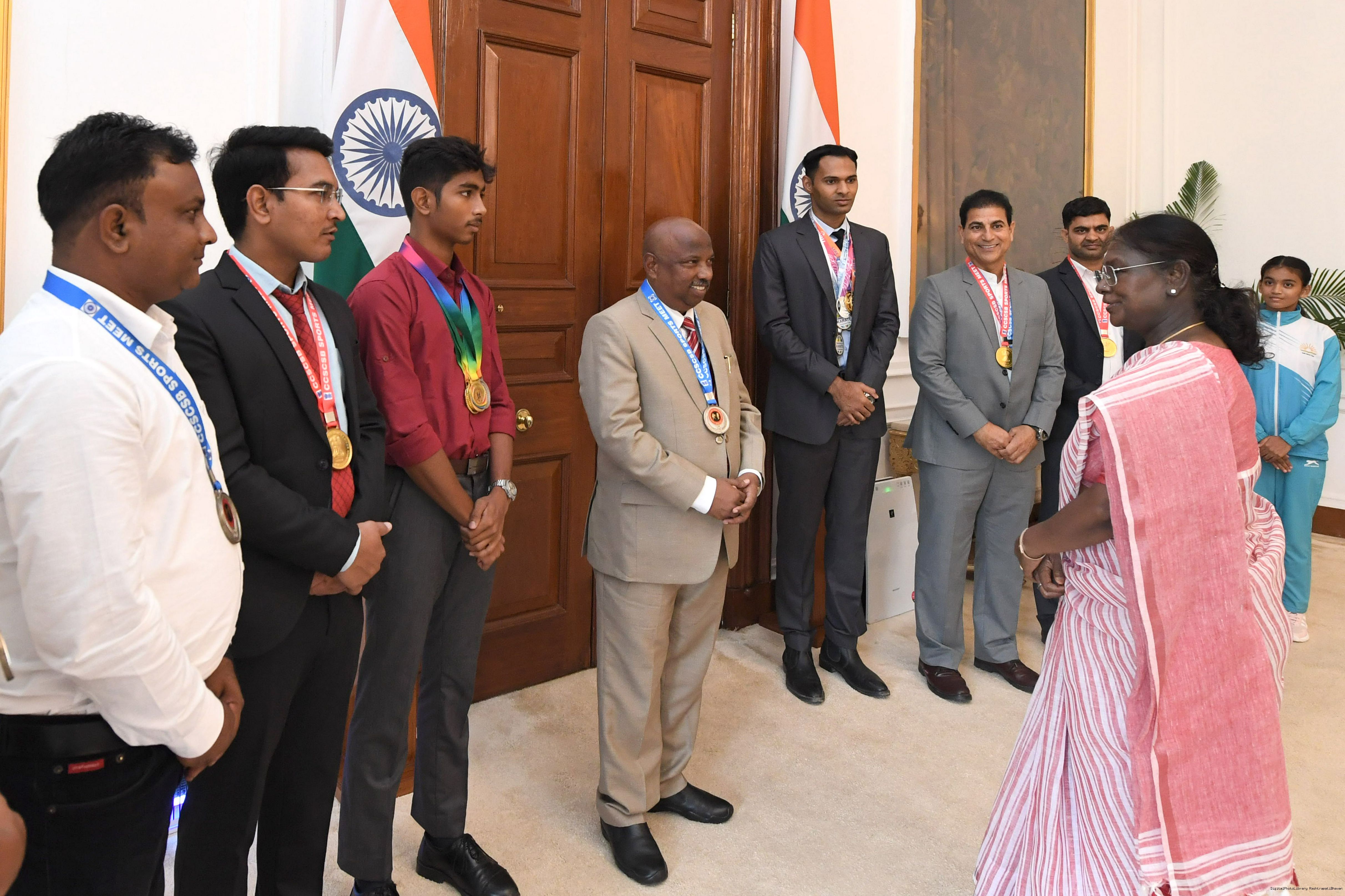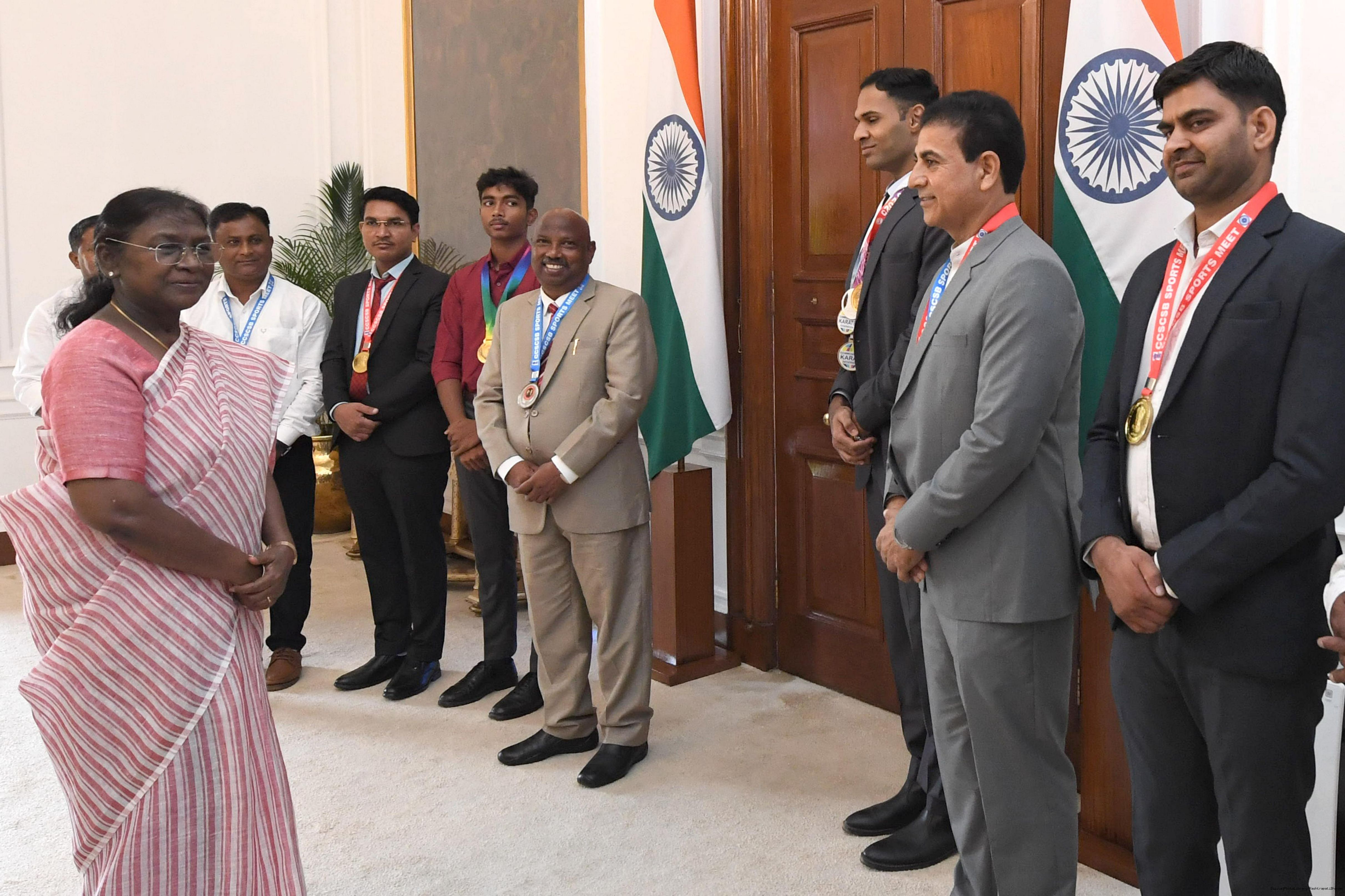 | Caption: | Shri Gautam Kumar, US along with others, sports achievers meeting with the President of India, Smt. Droupadi Murmu at Rashtrapati Bhavan on September 11, 2025. |