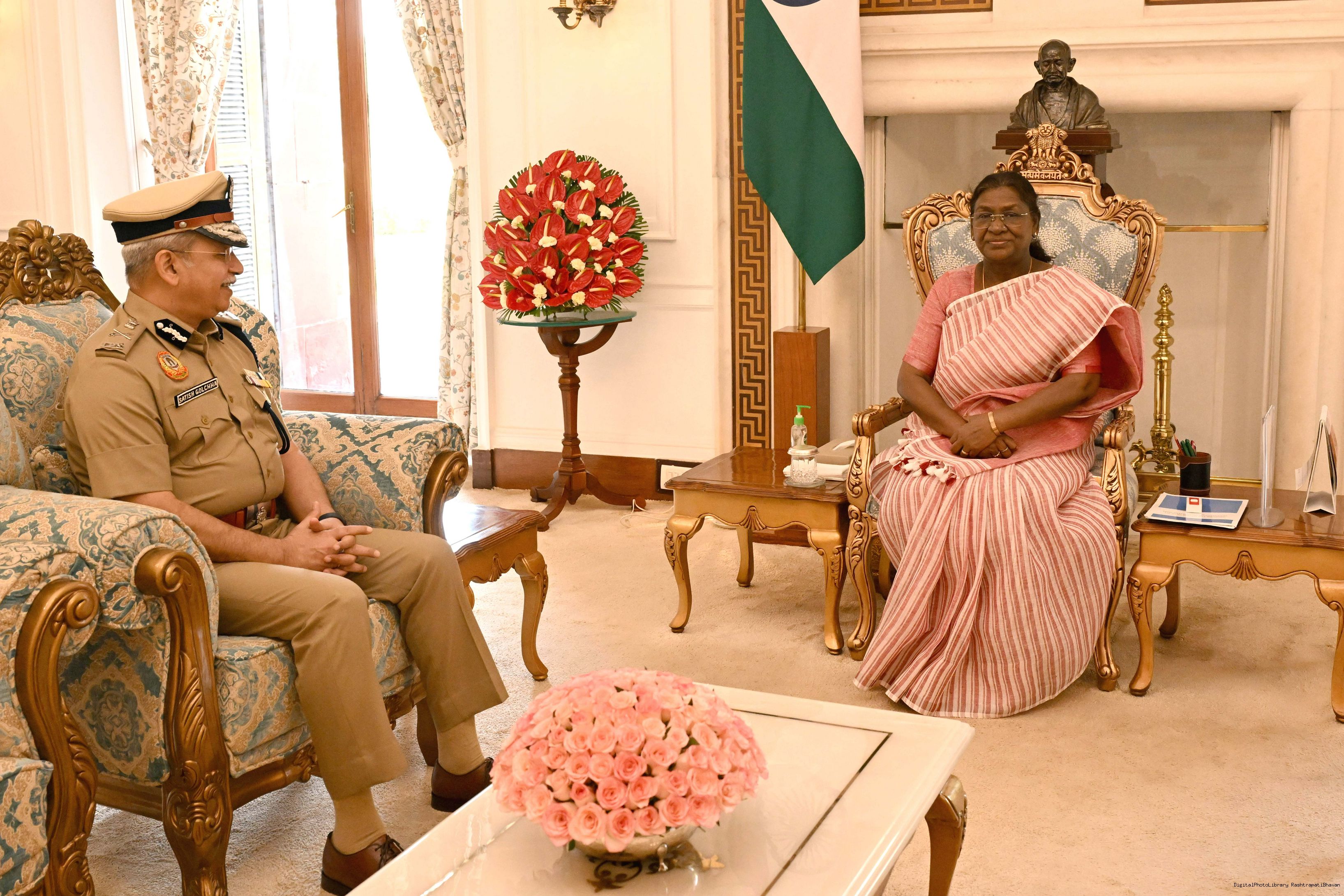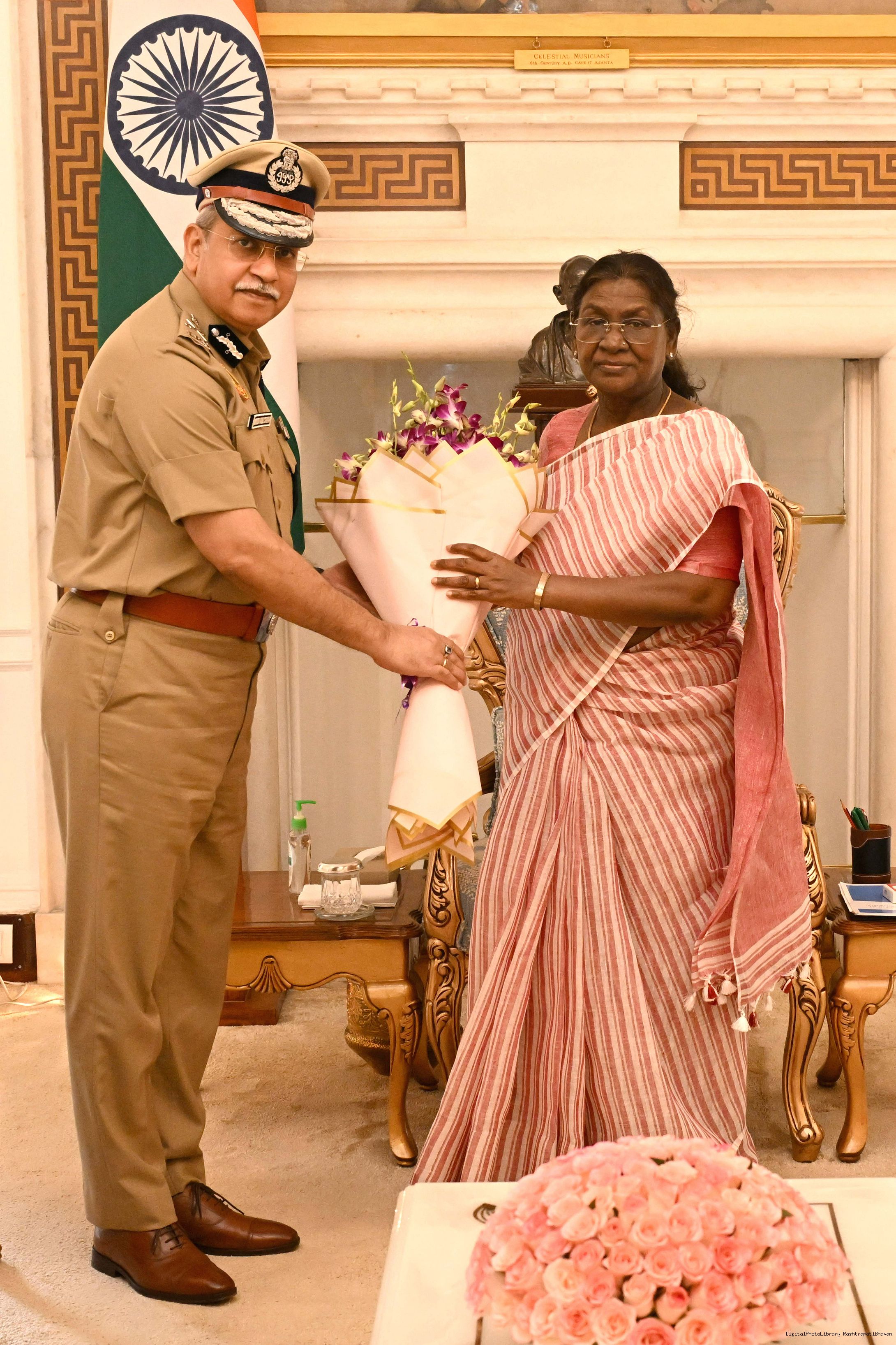 | Caption: | Shri Satish Golchha, IPS 1992 AGMUT Cadre, Commissioner of Police, Delhi meeting with the President of India, Smt. Droupadi Murmu at Rashtrapati Bhavan on September 11, 2025. |