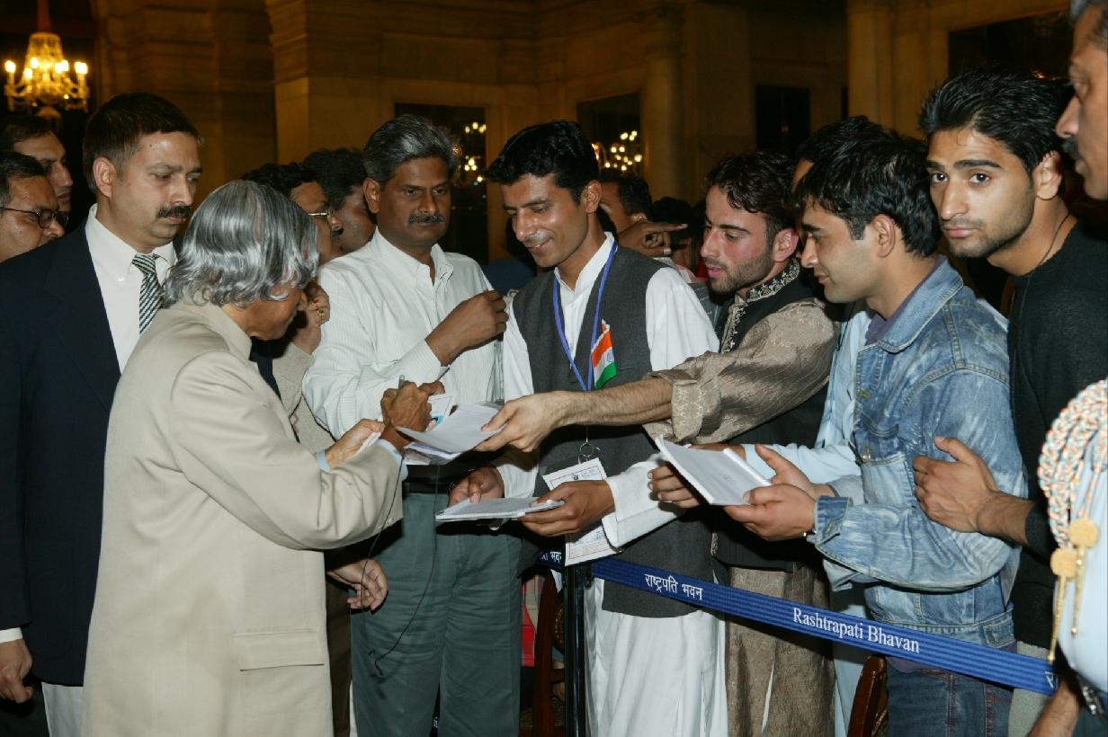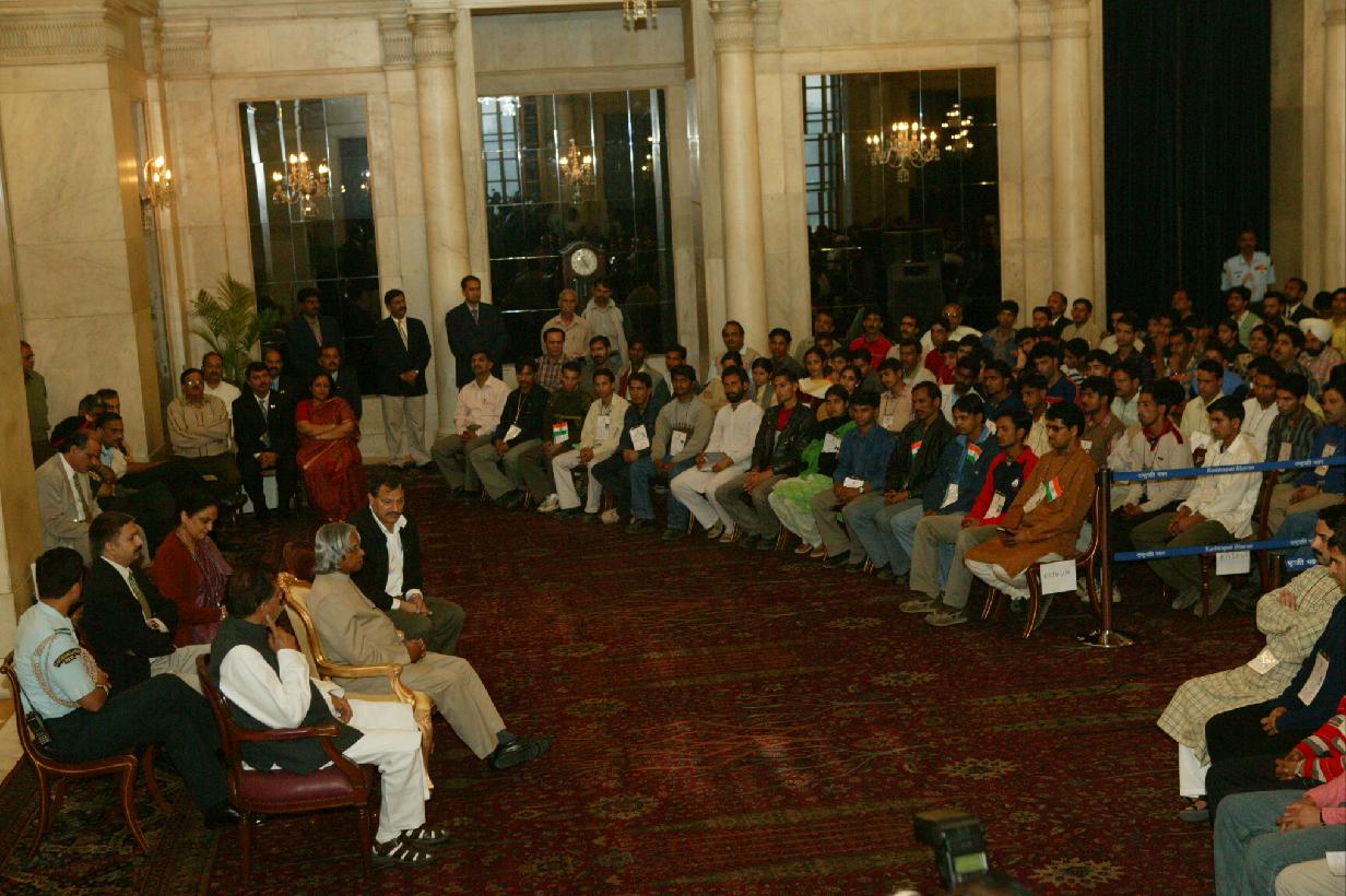 | Caption: | The Participants of the Utsav Jammu and Kashmir Cultural Exchange Programme for the Youth of Jammu and Kashmir and Officials of the Nehru Yuva Kendra Sangathan calling on the President of India, Dr A P J Abdul Kalam at the Ashok Hall of Rashtrapati Bhavan in New Delhi on Nov 24, 2004 |
